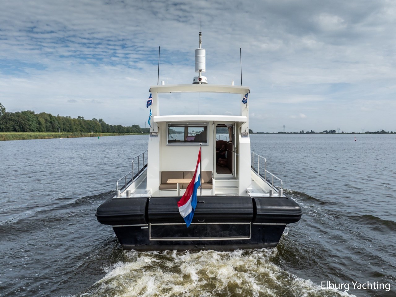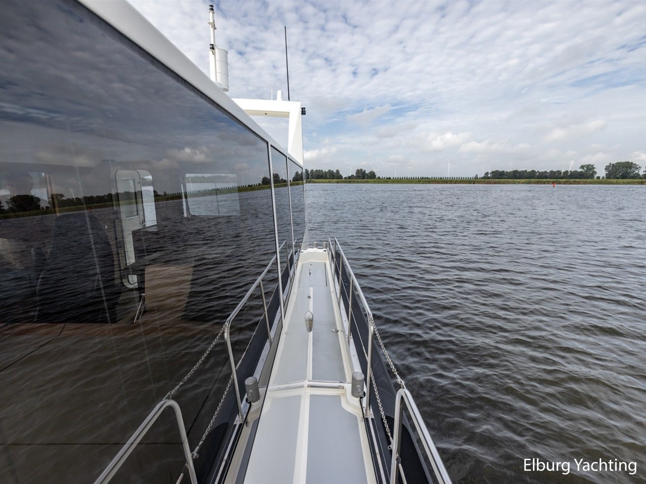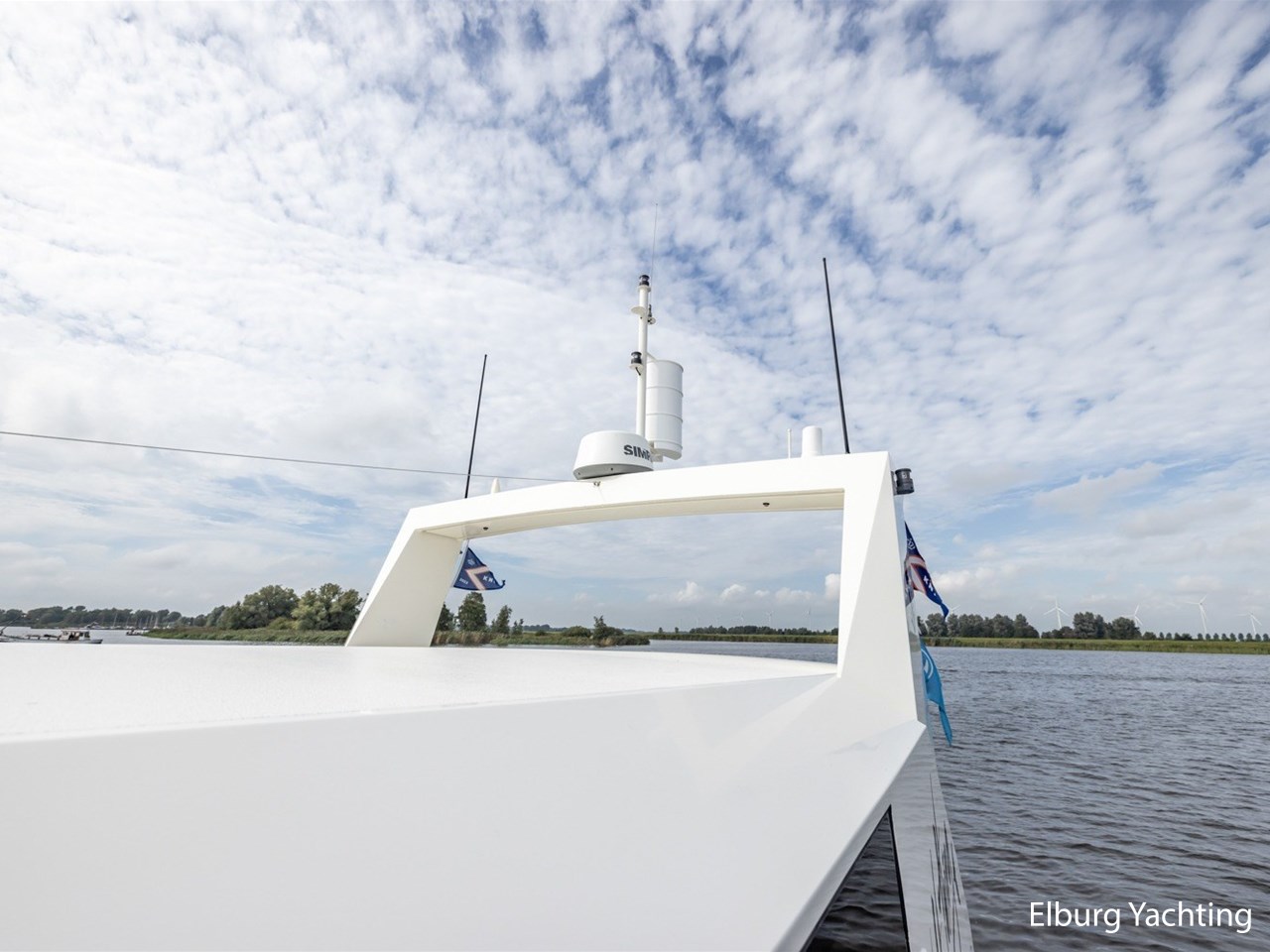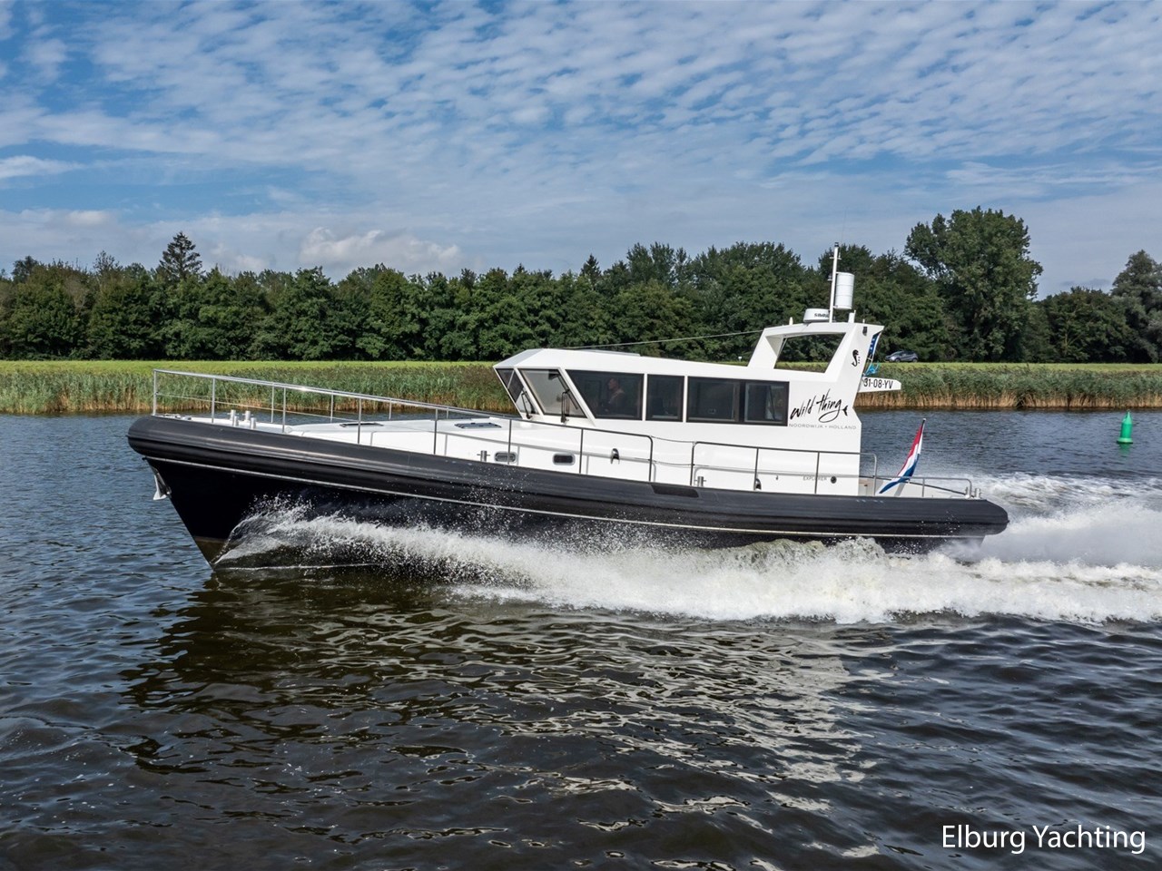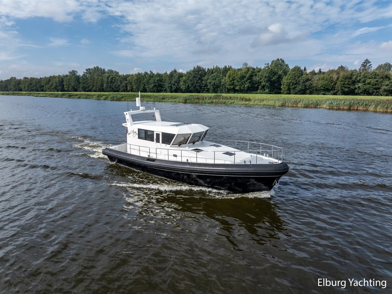 Het in 2016 gebouwde Pilot Yacht uit de Explorer-klasse van Next Generation Shipyards is een stoer en uiterst zeewaardig schip (CE-A Ocean-going) met zowel van binnen als van buiten de luxe van een jacht. Het is ontstaan door de ervaringen die de NG werfeigenaar alsmede enkele personeelsleden hebben opgedaan als toenmalig mede directeur/eigenaar en bouwers van “No limit“. Van deze “No Limits“ heeft hij er ruim 25 stuks gebouwd. Nadat de eigenaren van No Limit ieder hun eigen weg gegaan zijn wilde de nieuwe NG werf eigenaar een modernere versie van de “No Limit“ op de markt brengen wat resulteerde in het bovenstaande jacht. De werf is intussen enorm gegroeid en bouwt nu nog steeds professionele zeewaardige schepen zoals crewtenders, surveyschepen en pilot- boten voor de Nederlandse loodsdienst. Het schip is aantoonbaar goed onderhouden onder de huidige en tevens eerste eigenaar. De uitgebreide en professionele Simrad navigatiemiddelen, AIS-transponder en Simrad 4G radar zorgen voor een comfortabele tocht met hoge mate van veiligheid. De hoogwaardige 2 Component Polyurethaan blauwe romp coating is in goede staat samen met de rest van het schip. De Volvo Penta D6 dieselmotoren (elk 435 pk) drijven de in halve tunnels ingebouwde schroeven aan, wat zorgt voor minder kwetsbaarheid, betere bescherming en minder diepgang. De D-fenders rondom zorgen voor een nog grotere stabiliteit (=veiligheid) bij slecht weer. Veel bergruimte door talrijke kasten en lades door het gehele schip. Het schip is voorzien van: Ruime en verdiepte open kuip voor een beschutte zitting met vast zitbank incl. bijbehorende kussens, de kuip is voorzien van een overkapping met nacht/werk verlichting en te verlengen met een canvas zonnescherm, kuip met afgesloten (diepe) bakskisten, ruim bergluik in achterschip, klapbare spiegel te gebruiken als zwemplatform, entree stuurhuis/salon via achter- en zijdeur (SB), volledig zicht rondom vanaf stuurstand, luxe Norsapp stuurstoel, professioneel ingericht dashboard met hoogwaardige Simrad navigatie-instrumenten, Wifi boordnet via 4G, voor de co- pilot is er een in hoogte elektrisch verstelbare meevaar zitting aanwezig welke in ruststand tevens versteld kan worden naar een gezellige zit aan de borrel tafel, het interieur is voorzien van comfortabele vloerverwarming, luxaflex plisse´ zonwering, Samsung TV op lift in salon, Samsung TV in voorhut, groot schuifdak boven stuurstand, Bosch keukenapparatuur met een inductie kookplaat / magnetron oven / vaatwasmachine, muggenhorren, Samsung was/droogcombinatie, elektrisch gevoelige apparatuur ondergebracht “ technische ruimte”. In het vooronder is ruimte voor opslag van diversen zoals trossen en fenders maar ook de ankerketting. De machinekamer heeft een automatisch blussysteem & dubbele brandstoffilters. De radarbeugel is elektrisch klapbaar, evenals de spiegel die zowel in de kuip buiten als op het dashboard binnen elektrisch bedienbaar is. Een comfortabele vaarsnelheid voor binnenwateren ligt rondom de 6@7 knopen hierbij is het verbruik totaal ca. 10 liter p/uur. De maximale snelheid ligt op ca. 25 knopen. Een uitgebreidere verbruikstabel is verzoek beschikbaar. De doorvaarthoogte met geklapte beugel is ca. 3,60 meter en met beugel op ca. 6,20 meter. Voor vragen en/of het maken van een afspraak bent u 7 dagen per week van harte welkom bij Elburg Yachting.