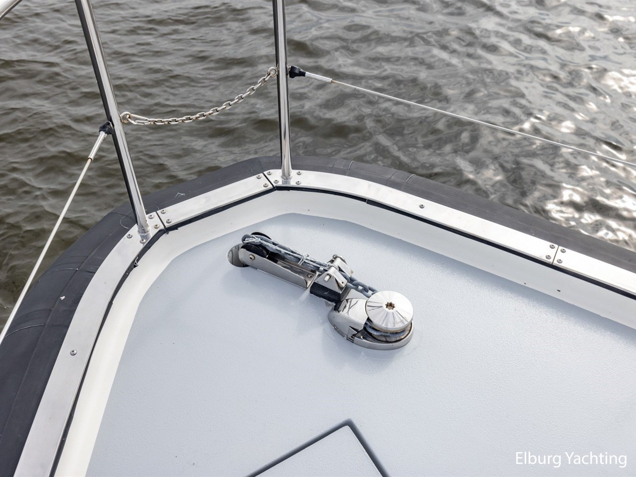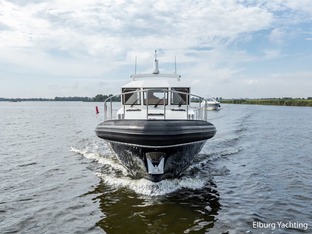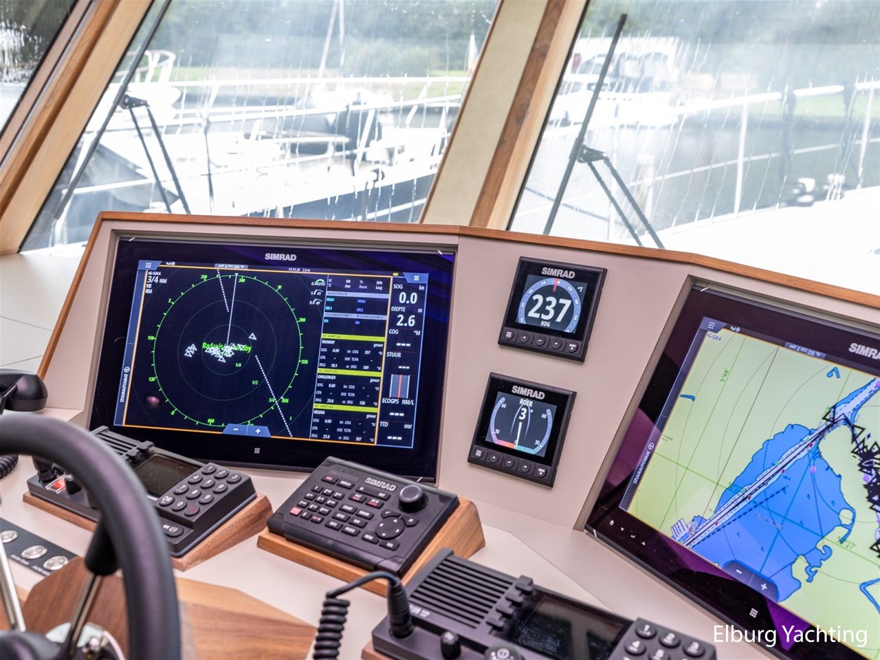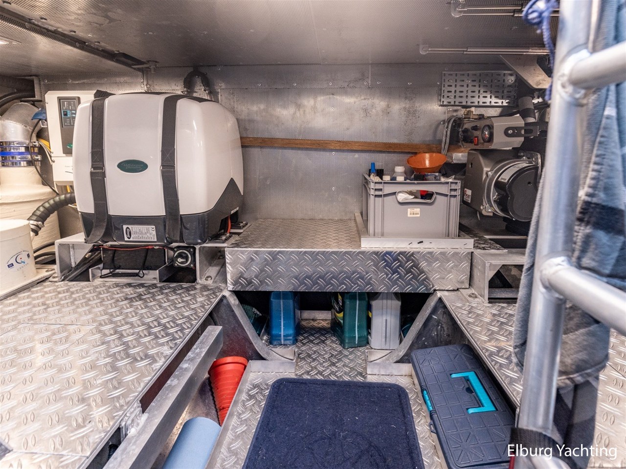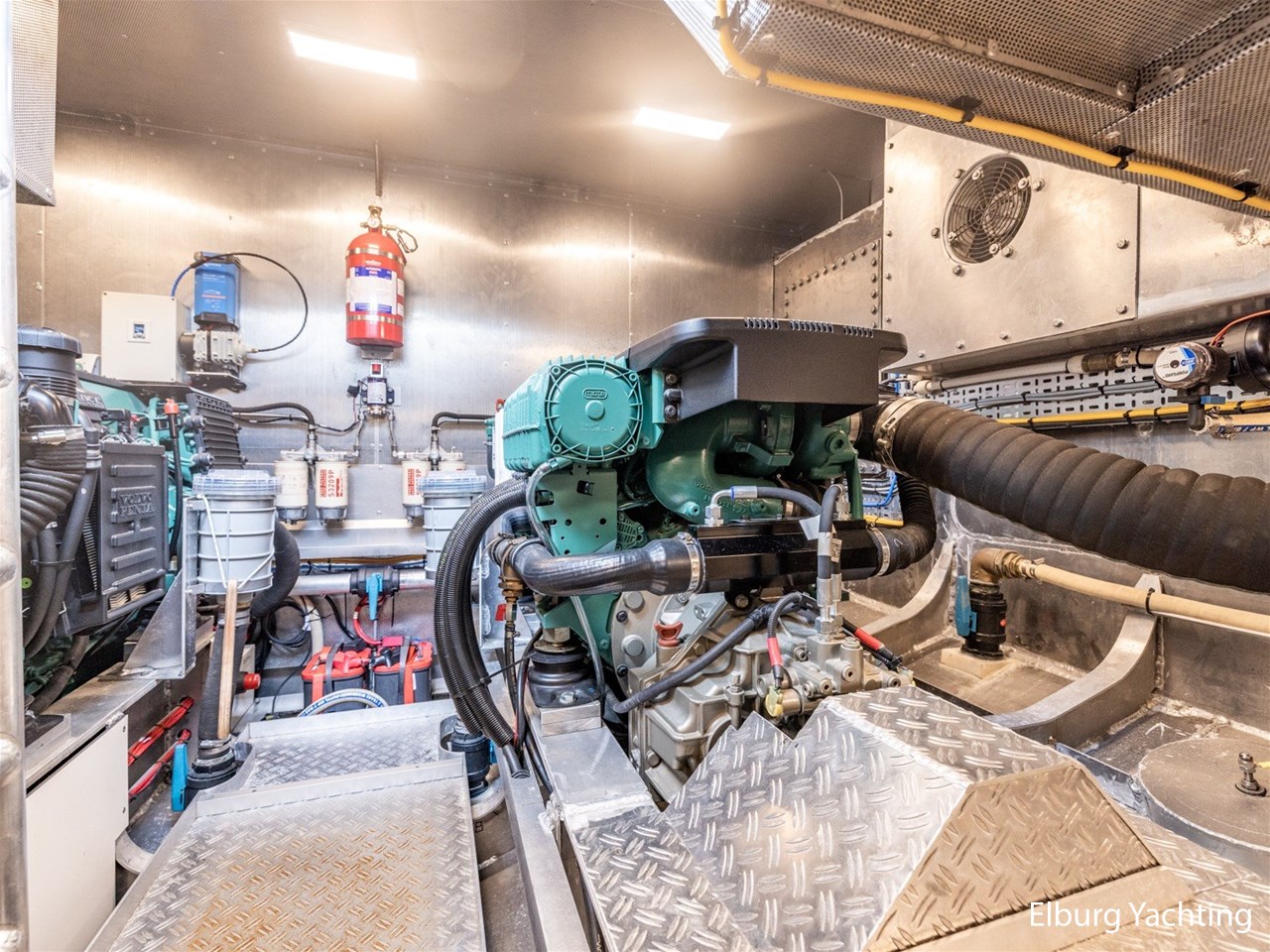 Het in 2016 gebouwde Pilot Yacht uit de Explorer-klasse van Next Generation Shipyards is een stoer en uiterst zeewaardig schip (CE-A Ocean-going) met zowel van binnen als van buiten de luxe van een jacht. Het is ontstaan door de ervaringen die de NG werfeigenaar alsmede enkele personeelsleden hebben opgedaan als toenmalig mede directeur/eigenaar en bouwers van “No limit“. Van deze “No Limits“ heeft hij er ruim 25 stuks gebouwd. Nadat de eigenaren van No Limit ieder hun eigen weg gegaan zijn wilde de nieuwe NG werf eigenaar een modernere versie van de “No Limit“ op de markt brengen wat resulteerde in het bovenstaande jacht. De werf is intussen enorm gegroeid en bouwt nu nog steeds professionele zeewaardige schepen zoals crewtenders, surveyschepen en pilot- boten voor de Nederlandse loodsdienst. Het schip is aantoonbaar goed onderhouden onder de huidige en tevens eerste eigenaar. De uitgebreide en professionele Simrad navigatiemiddelen, AIS-transponder en Simrad 4G radar zorgen voor een comfortabele tocht met hoge mate van veiligheid. De hoogwaardige 2 Component Polyurethaan blauwe romp coating is in goede staat samen met de rest van het schip. De Volvo Penta D6 dieselmotoren (elk 435 pk) drijven de in halve tunnels ingebouwde schroeven aan, wat zorgt voor minder kwetsbaarheid, betere bescherming en minder diepgang. De D-fenders rondom zorgen voor een nog grotere stabiliteit (=veiligheid) bij slecht weer. Veel bergruimte door talrijke kasten en lades door het gehele schip. Het schip is voorzien van: Ruime en verdiepte open kuip voor een beschutte zitting met vast zitbank incl. bijbehorende kussens, de kuip is voorzien van een overkapping met nacht/werk verlichting en te verlengen met een canvas zonnescherm, kuip met afgesloten (diepe) bakskisten, ruim bergluik in achterschip, klapbare spiegel te gebruiken als zwemplatform, entree stuurhuis/salon via achter- en zijdeur (SB), volledig zicht rondom vanaf stuurstand, luxe Norsapp stuurstoel, professioneel ingericht dashboard met hoogwaardige Simrad navigatie-instrumenten, Wifi boordnet via 4G, voor de co- pilot is er een in hoogte elektrisch verstelbare meevaar zitting aanwezig welke in ruststand tevens versteld kan worden naar een gezellige zit aan de borrel tafel, het interieur is voorzien van comfortabele vloerverwarming, luxaflex plisse´ zonwering, Samsung TV op lift in salon, Samsung TV in voorhut, groot schuifdak boven stuurstand, Bosch keukenapparatuur met een inductie kookplaat / magnetron oven / vaatwasmachine, muggenhorren, Samsung was/droogcombinatie, elektrisch gevoelige apparatuur ondergebracht “ technische ruimte”. In het vooronder is ruimte voor opslag van diversen zoals trossen en fenders maar ook de ankerketting. De machinekamer heeft een automatisch blussysteem & dubbele brandstoffilters. De radarbeugel is elektrisch klapbaar, evenals de spiegel die zowel in de kuip buiten als op het dashboard binnen elektrisch bedienbaar is. Een comfortabele vaarsnelheid voor binnenwateren ligt rondom de 6@7 knopen hierbij is het verbruik totaal ca. 10 liter p/uur. De maximale snelheid ligt op ca. 25 knopen. Een uitgebreidere verbruikstabel is verzoek beschikbaar. De doorvaarthoogte met geklapte beugel is ca. 3,60 meter en met beugel op ca. 6,20 meter. Voor vragen en/of het maken van een afspraak bent u 7 dagen per week van harte welkom bij Elburg Yachting.