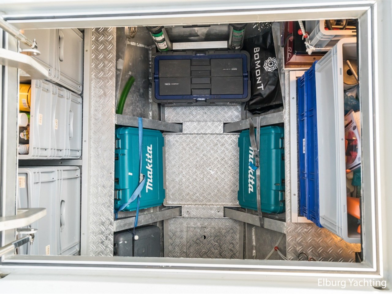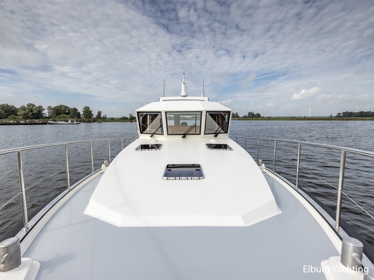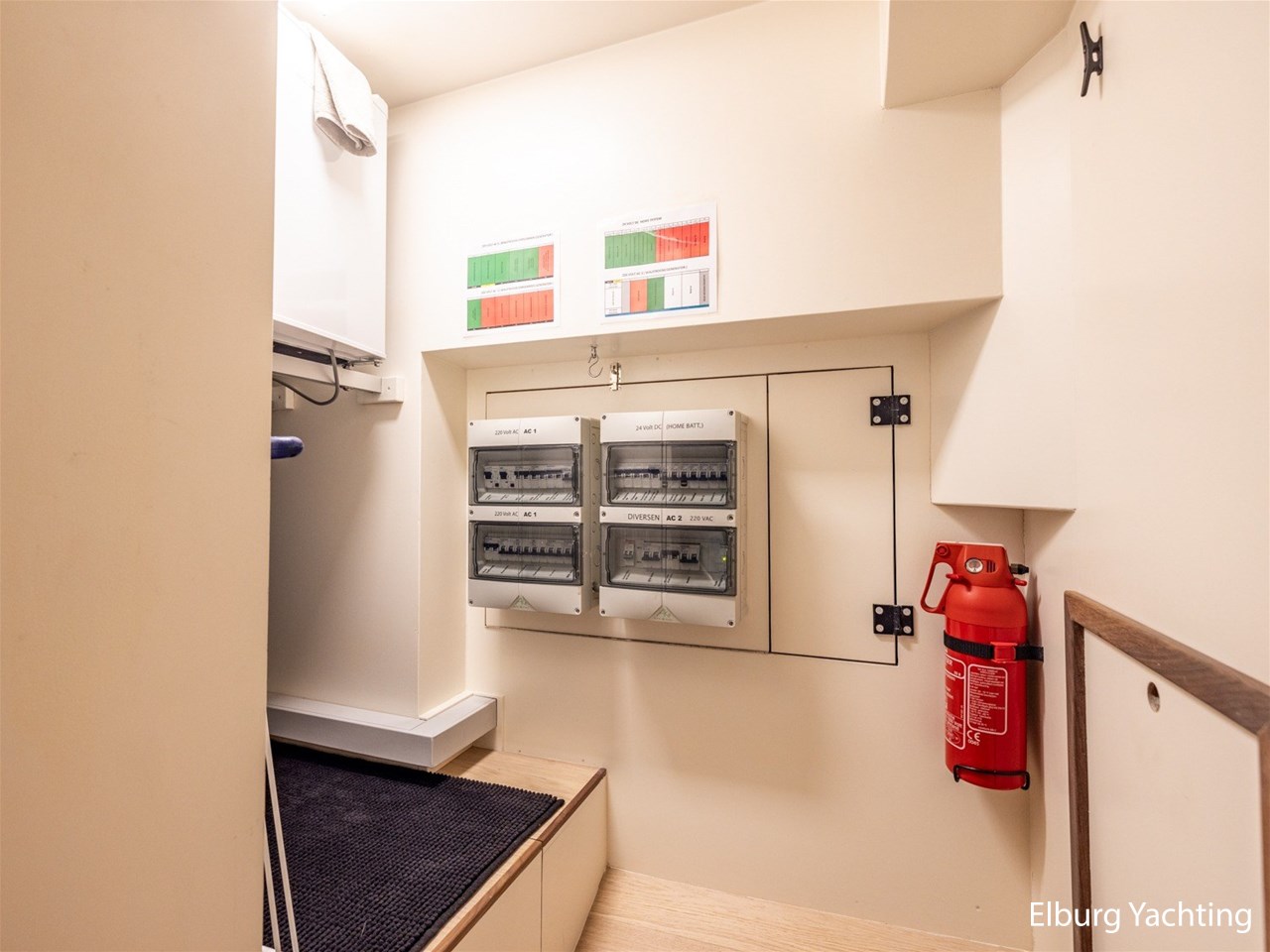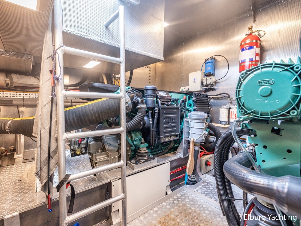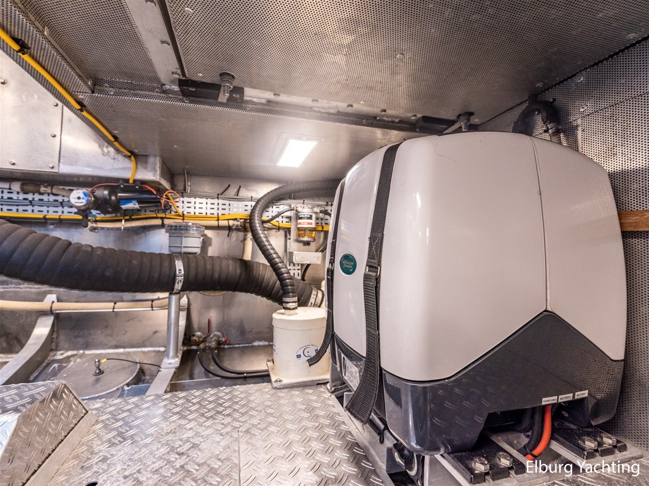Het in 2016 gebouwde Pilot Yacht uit de Explorer-klasse van Next Generation Shipyards is een stoer en uiterst zeewaardig schip (CE-A Ocean-going) met zowel van binnen als van buiten de luxe van een jacht. Het is ontstaan door de ervaringen die de NG werfeigenaar alsmede enkele personeelsleden hebben opgedaan als toenmalig mede directeur/eigenaar en bouwers van “No limit“. Van deze “No Limits“ heeft hij er ruim 25 stuks gebouwd. Nadat de eigenaren van No Limit ieder hun eigen weg gegaan zijn wilde de nieuwe NG werf eigenaar een modernere versie van de “No Limit“ op de markt brengen wat resulteerde in het bovenstaande jacht. De werf is intussen enorm gegroeid en bouwt nu nog steeds professionele zeewaardige schepen zoals crewtenders, surveyschepen en pilot- boten voor de Nederlandse loodsdienst. Het schip is aantoonbaar goed onderhouden onder de huidige en tevens eerste eigenaar. De uitgebreide en professionele Simrad navigatiemiddelen, AIS-transponder en Simrad 4G radar zorgen voor een comfortabele tocht met hoge mate van veiligheid. De hoogwaardige 2 Component Polyurethaan blauwe romp coating is in goede staat samen met de rest van het schip. De Volvo Penta D6 dieselmotoren (elk 435 pk) drijven de in halve tunnels ingebouwde schroeven aan, wat zorgt voor minder kwetsbaarheid, betere bescherming en minder diepgang. De D-fenders rondom zorgen voor een nog grotere stabiliteit (=veiligheid) bij slecht weer. Veel bergruimte door talrijke kasten en lades door het gehele schip. Het schip is voorzien van: Ruime en verdiepte open kuip voor een beschutte zitting met vast zitbank incl. bijbehorende kussens, de kuip is voorzien van een overkapping met nacht/werk verlichting en te verlengen met een canvas zonnescherm, kuip met afgesloten (diepe) bakskisten, ruim bergluik in achterschip, klapbare spiegel te gebruiken als zwemplatform, entree stuurhuis/salon via achter- en zijdeur (SB), volledig zicht rondom vanaf stuurstand, luxe Norsapp stuurstoel, professioneel ingericht dashboard met hoogwaardige Simrad navigatie-instrumenten, Wifi boordnet via 4G, voor de co- pilot is er een in hoogte elektrisch verstelbare meevaar zitting aanwezig welke in ruststand tevens versteld kan worden naar een gezellige zit aan de borrel tafel, het interieur is voorzien van comfortabele vloerverwarming, luxaflex plisse´ zonwering, Samsung TV op lift in salon, Samsung TV in voorhut, groot schuifdak boven stuurstand, Bosch keukenapparatuur met een inductie kookplaat / magnetron oven / vaatwasmachine, muggenhorren, Samsung was/droogcombinatie, elektrisch gevoelige apparatuur ondergebracht “ technische ruimte”. In het vooronder is ruimte voor opslag van diversen zoals trossen en fenders maar ook de ankerketting. De machinekamer heeft een automatisch blussysteem & dubbele brandstoffilters. De radarbeugel is elektrisch klapbaar, evenals de spiegel die zowel in de kuip buiten als op het dashboard binnen elektrisch bedienbaar is. Een comfortabele vaarsnelheid voor binnenwateren ligt rondom de 6@7 knopen hierbij is het verbruik totaal ca. 10 liter p/uur. De maximale snelheid ligt op ca. 25 knopen. Een uitgebreidere verbruikstabel is verzoek beschikbaar. De doorvaarthoogte met geklapte beugel is ca. 3,60 meter en met beugel op ca. 6,20 meter. Voor vragen en/of het maken van een afspraak bent u 7 dagen per week van harte welkom bij Elburg Yachting.