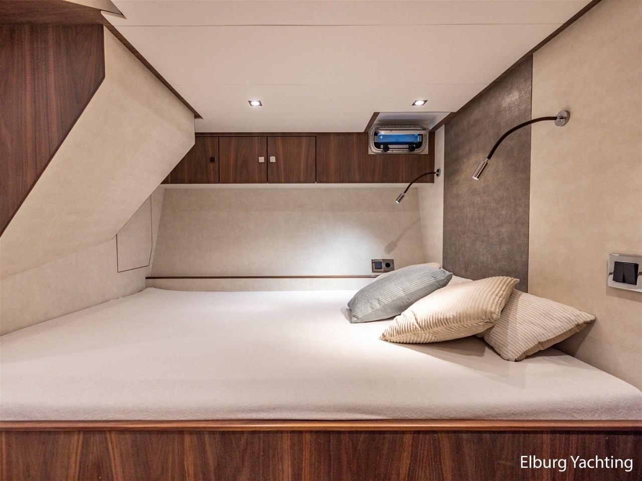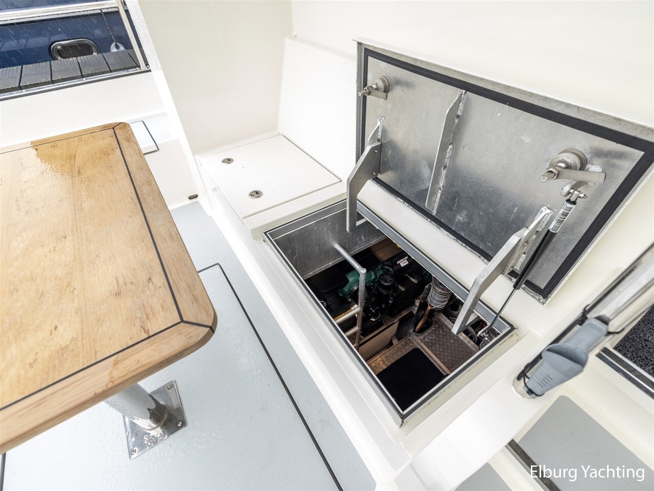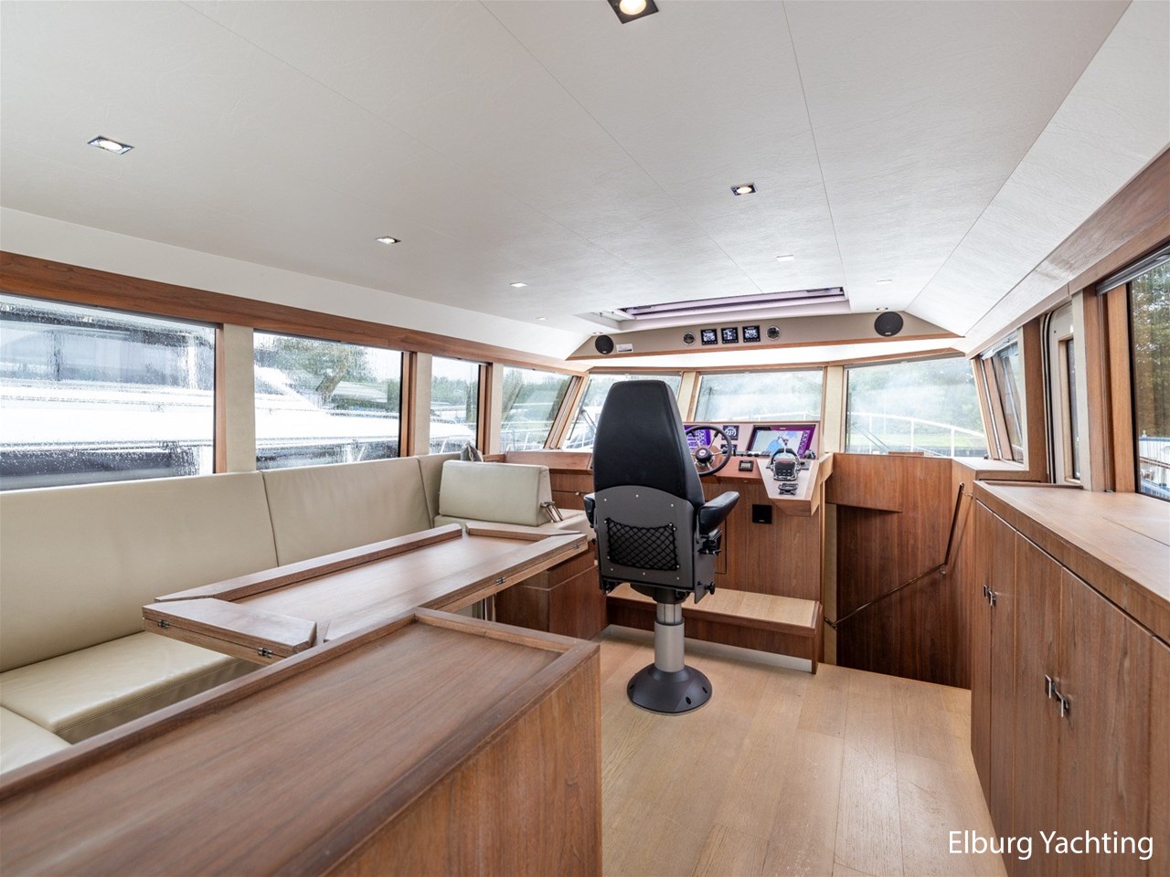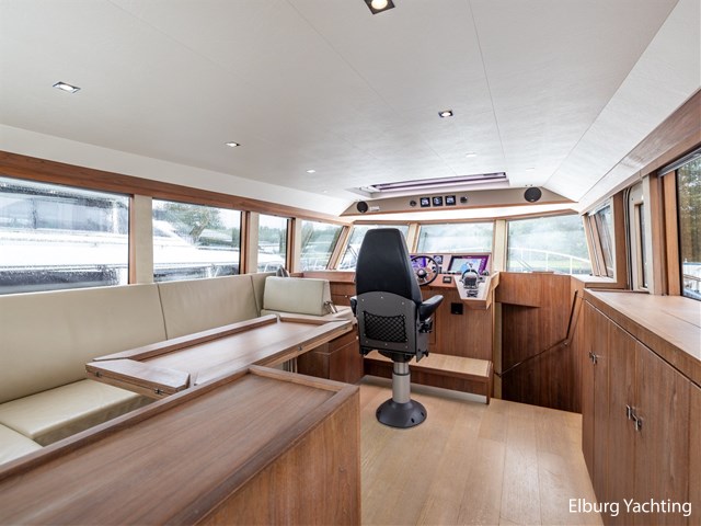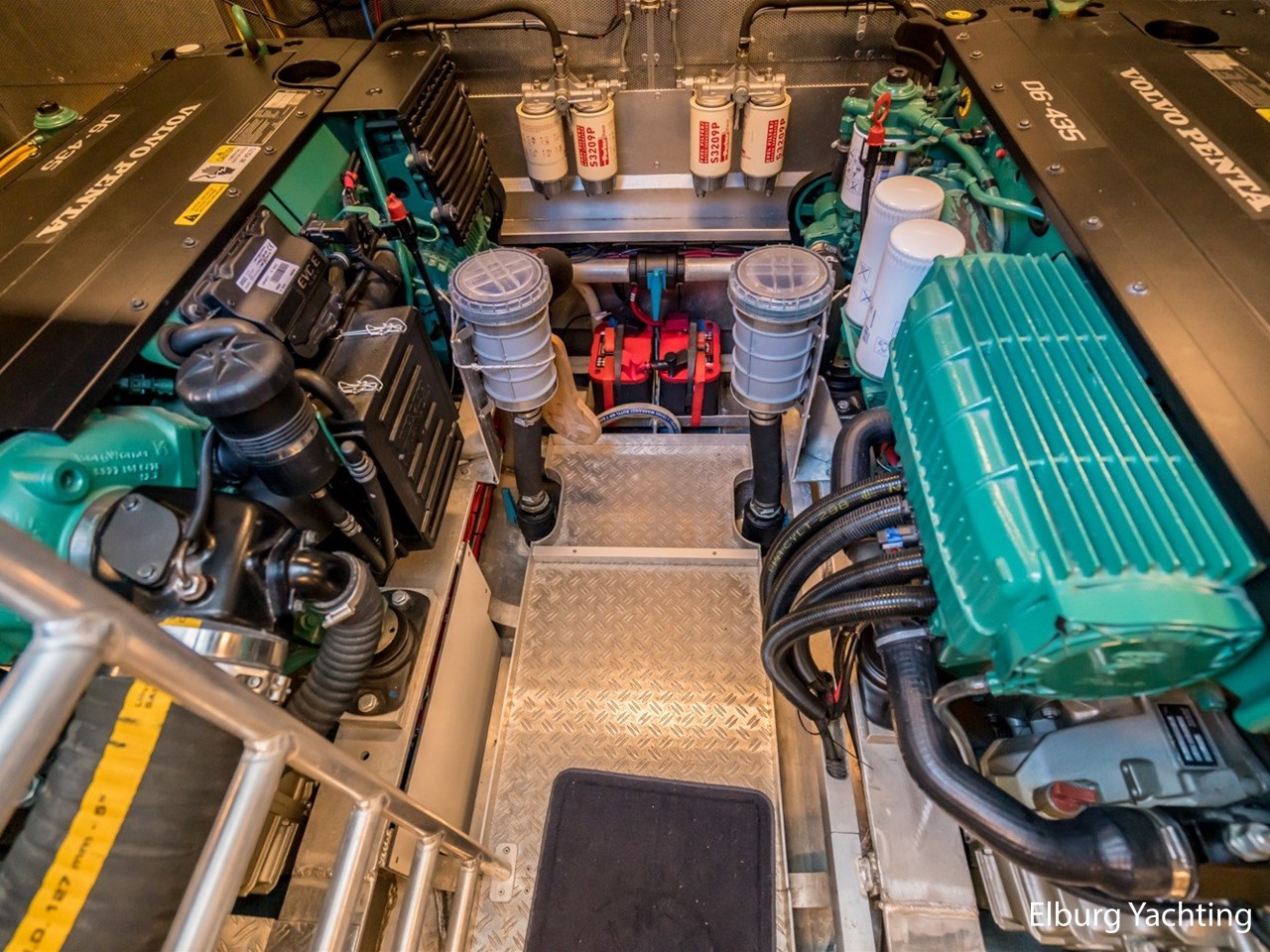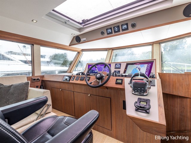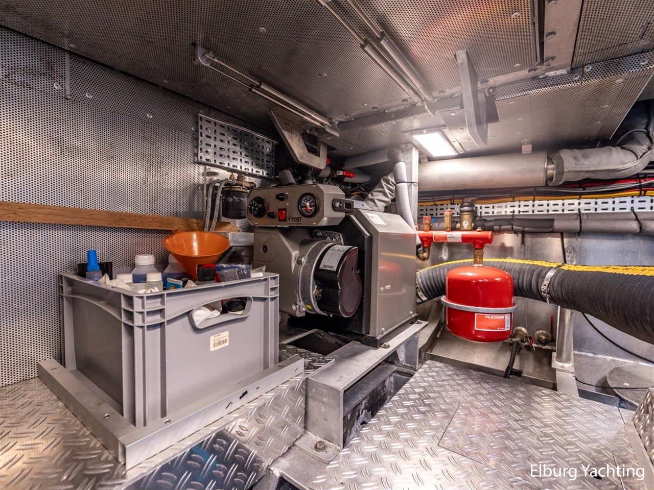 Het in 2016 gebouwde Pilot Yacht uit de Explorer-klasse van Next Generation Shipyards is een stoer en uiterst zeewaardig schip (CE-A Ocean-going) met zowel van binnen als van buiten de luxe van een jacht. Het is ontstaan door de ervaringen die de NG werfeigenaar alsmede enkele personeelsleden hebben opgedaan als toenmalig mede directeur/eigenaar en bouwers van “No limit“. Van deze “No Limits“ heeft hij er ruim 25 stuks gebouwd. Nadat de eigenaren van No Limit ieder hun eigen weg gegaan zijn wilde de nieuwe NG werf eigenaar een modernere versie van de “No Limit“ op de markt brengen wat resulteerde in het bovenstaande jacht. De werf is intussen enorm gegroeid en bouwt nu nog steeds professionele zeewaardige schepen zoals crewtenders, surveyschepen en pilot- boten voor de Nederlandse loodsdienst. Het schip is aantoonbaar goed onderhouden onder de huidige en tevens eerste eigenaar. De uitgebreide en professionele Simrad navigatiemiddelen, AIS-transponder en Simrad 4G radar zorgen voor een comfortabele tocht met hoge mate van veiligheid. De hoogwaardige 2 Component Polyurethaan blauwe romp coating is in goede staat samen met de rest van het schip. De Volvo Penta D6 dieselmotoren (elk 435 pk) drijven de in halve tunnels ingebouwde schroeven aan, wat zorgt voor minder kwetsbaarheid, betere bescherming en minder diepgang. De D-fenders rondom zorgen voor een nog grotere stabiliteit (=veiligheid) bij slecht weer. Veel bergruimte door talrijke kasten en lades door het gehele schip. Het schip is voorzien van: Ruime en verdiepte open kuip voor een beschutte zitting met vast zitbank incl. bijbehorende kussens, de kuip is voorzien van een overkapping met nacht/werk verlichting en te verlengen met een canvas zonnescherm, kuip met afgesloten (diepe) bakskisten, ruim bergluik in achterschip, klapbare spiegel te gebruiken als zwemplatform, entree stuurhuis/salon via achter- en zijdeur (SB), volledig zicht rondom vanaf stuurstand, luxe Norsapp stuurstoel, professioneel ingericht dashboard met hoogwaardige Simrad navigatie-instrumenten, Wifi boordnet via 4G, voor de co- pilot is er een in hoogte elektrisch verstelbare meevaar zitting aanwezig welke in ruststand tevens versteld kan worden naar een gezellige zit aan de borrel tafel, het interieur is voorzien van comfortabele vloerverwarming, luxaflex plisse´ zonwering, Samsung TV op lift in salon, Samsung TV in voorhut, groot schuifdak boven stuurstand, Bosch keukenapparatuur met een inductie kookplaat / magnetron oven / vaatwasmachine, muggenhorren, Samsung was/droogcombinatie, elektrisch gevoelige apparatuur ondergebracht “ technische ruimte”. In het vooronder is ruimte voor opslag van diversen zoals trossen en fenders maar ook de ankerketting. De machinekamer heeft een automatisch blussysteem & dubbele brandstoffilters. De radarbeugel is elektrisch klapbaar, evenals de spiegel die zowel in de kuip buiten als op het dashboard binnen elektrisch bedienbaar is. Een comfortabele vaarsnelheid voor binnenwateren ligt rondom de 6@7 knopen hierbij is het verbruik totaal ca. 10 liter p/uur. De maximale snelheid ligt op ca. 25 knopen. Een uitgebreidere verbruikstabel is verzoek beschikbaar. De doorvaarthoogte met geklapte beugel is ca. 3,60 meter en met beugel op ca. 6,20 meter. Voor vragen en/of het maken van een afspraak bent u 7 dagen per week van harte welkom bij Elburg Yachting.