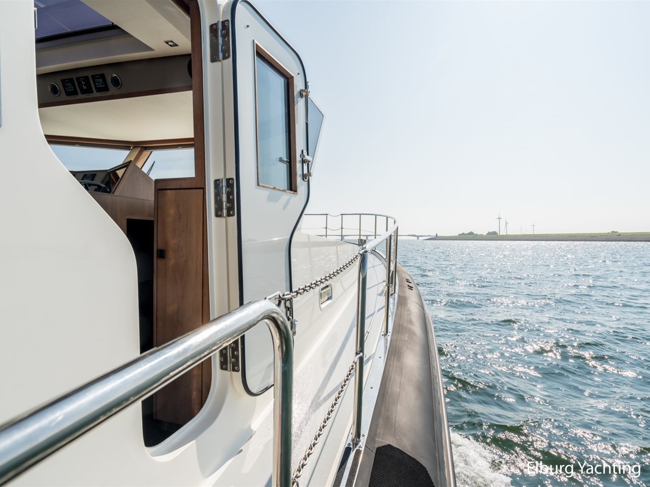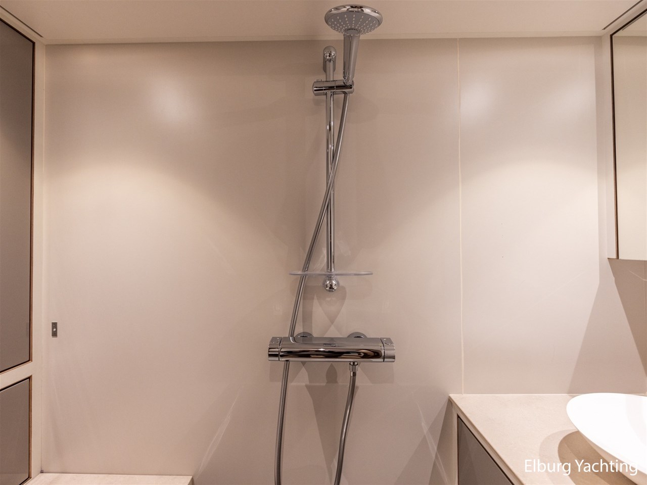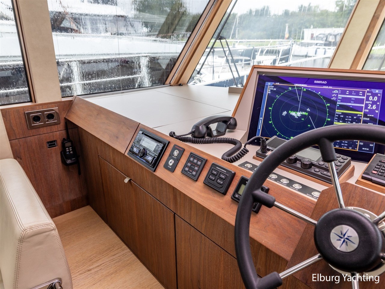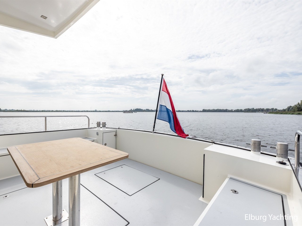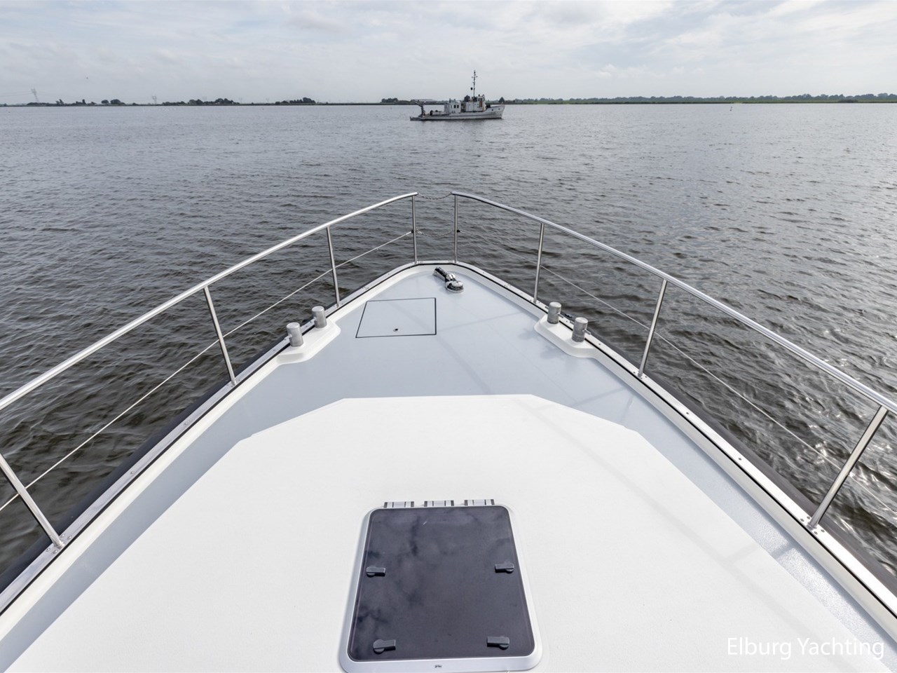 Het in 2016 gebouwde Pilot Yacht uit de Explorer-klasse van Next Generation Shipyards is een stoer en uiterst zeewaardig schip (CE-A Ocean-going) met zowel van binnen als van buiten de luxe van een jacht. Het is ontstaan door de ervaringen die de NG werfeigenaar alsmede enkele personeelsleden hebben opgedaan als toenmalig mede directeur/eigenaar en bouwers van “No limit“. Van deze “No Limits“ heeft hij er ruim 25 stuks gebouwd. Nadat de eigenaren van No Limit ieder hun eigen weg gegaan zijn wilde de nieuwe NG werf eigenaar een modernere versie van de “No Limit“ op de markt brengen wat resulteerde in het bovenstaande jacht. De werf is intussen enorm gegroeid en bouwt nu nog steeds professionele zeewaardige schepen zoals crewtenders, surveyschepen en pilot- boten voor de Nederlandse loodsdienst. Het schip is aantoonbaar goed onderhouden onder de huidige en tevens eerste eigenaar. De uitgebreide en professionele Simrad navigatiemiddelen, AIS-transponder en Simrad 4G radar zorgen voor een comfortabele tocht met hoge mate van veiligheid. De hoogwaardige 2 Component Polyurethaan blauwe romp coating is in goede staat samen met de rest van het schip. De Volvo Penta D6 dieselmotoren (elk 435 pk) drijven de in halve tunnels ingebouwde schroeven aan, wat zorgt voor minder kwetsbaarheid, betere bescherming en minder diepgang. De D-fenders rondom zorgen voor een nog grotere stabiliteit (=veiligheid) bij slecht weer. Veel bergruimte door talrijke kasten en lades door het gehele schip. Het schip is voorzien van: Ruime en verdiepte open kuip voor een beschutte zitting met vast zitbank incl. bijbehorende kussens, de kuip is voorzien van een overkapping met nacht/werk verlichting en te verlengen met een canvas zonnescherm, kuip met afgesloten (diepe) bakskisten, ruim bergluik in achterschip, klapbare spiegel te gebruiken als zwemplatform, entree stuurhuis/salon via achter- en zijdeur (SB), volledig zicht rondom vanaf stuurstand, luxe Norsapp stuurstoel, professioneel ingericht dashboard met hoogwaardige Simrad navigatie-instrumenten, Wifi boordnet via 4G, voor de co- pilot is er een in hoogte elektrisch verstelbare meevaar zitting aanwezig welke in ruststand tevens versteld kan worden naar een gezellige zit aan de borrel tafel, het interieur is voorzien van comfortabele vloerverwarming, luxaflex plisse´ zonwering, Samsung TV op lift in salon, Samsung TV in voorhut, groot schuifdak boven stuurstand, Bosch keukenapparatuur met een inductie kookplaat / magnetron oven / vaatwasmachine, muggenhorren, Samsung was/droogcombinatie, elektrisch gevoelige apparatuur ondergebracht “ technische ruimte”. In het vooronder is ruimte voor opslag van diversen zoals trossen en fenders maar ook de ankerketting. De machinekamer heeft een automatisch blussysteem & dubbele brandstoffilters. De radarbeugel is elektrisch klapbaar, evenals de spiegel die zowel in de kuip buiten als op het dashboard binnen elektrisch bedienbaar is. Een comfortabele vaarsnelheid voor binnenwateren ligt rondom de 6@7 knopen hierbij is het verbruik totaal ca. 10 liter p/uur. De maximale snelheid ligt op ca. 25 knopen. Een uitgebreidere verbruikstabel is verzoek beschikbaar. De doorvaarthoogte met geklapte beugel is ca. 3,60 meter en met beugel op ca. 6,20 meter. Voor vragen en/of het maken van een afspraak bent u 7 dagen per week van harte welkom bij Elburg Yachting.