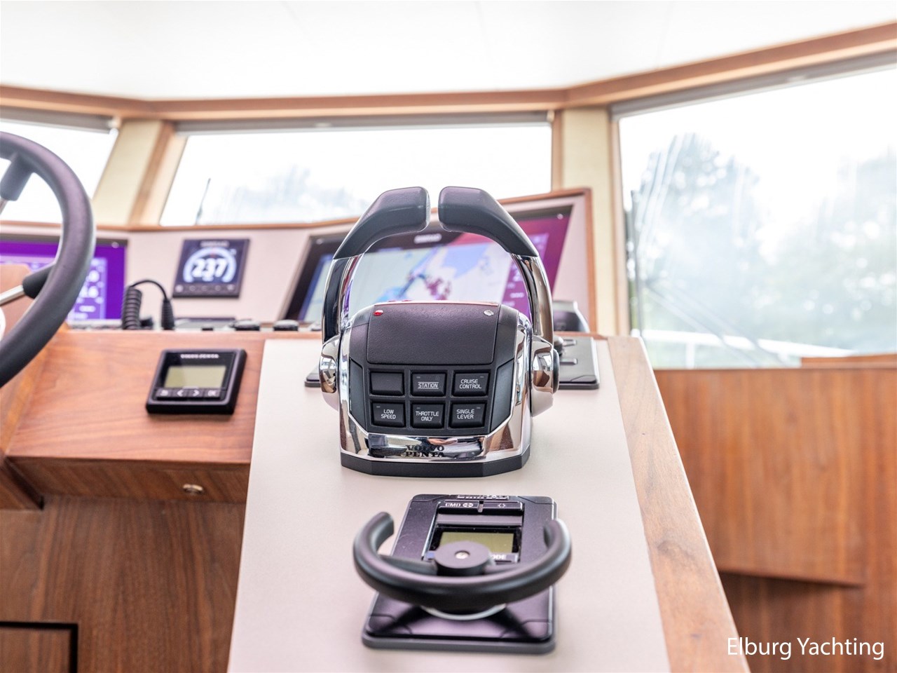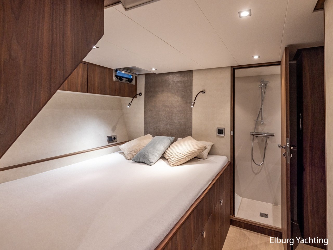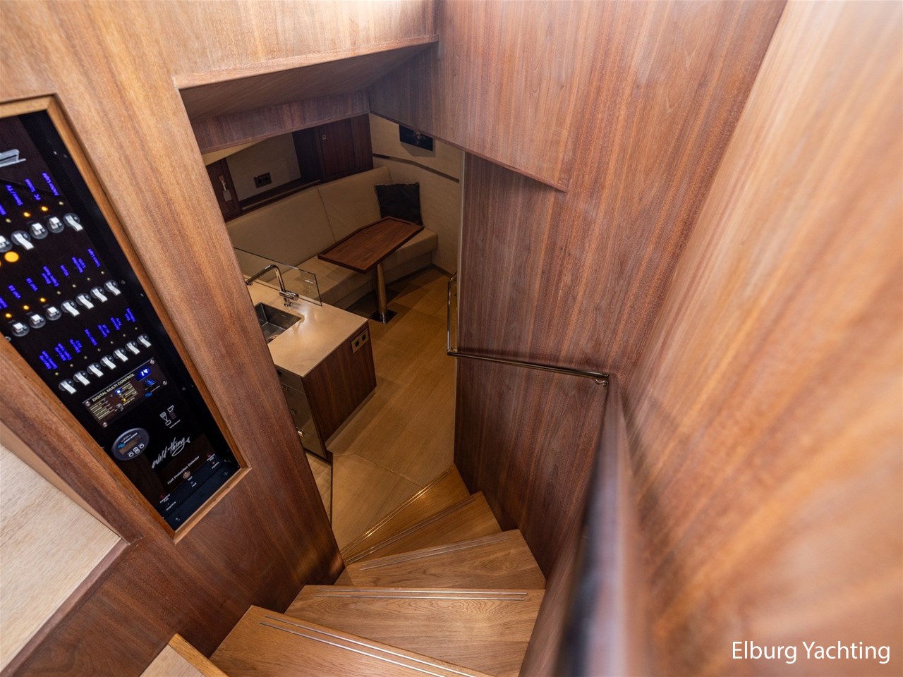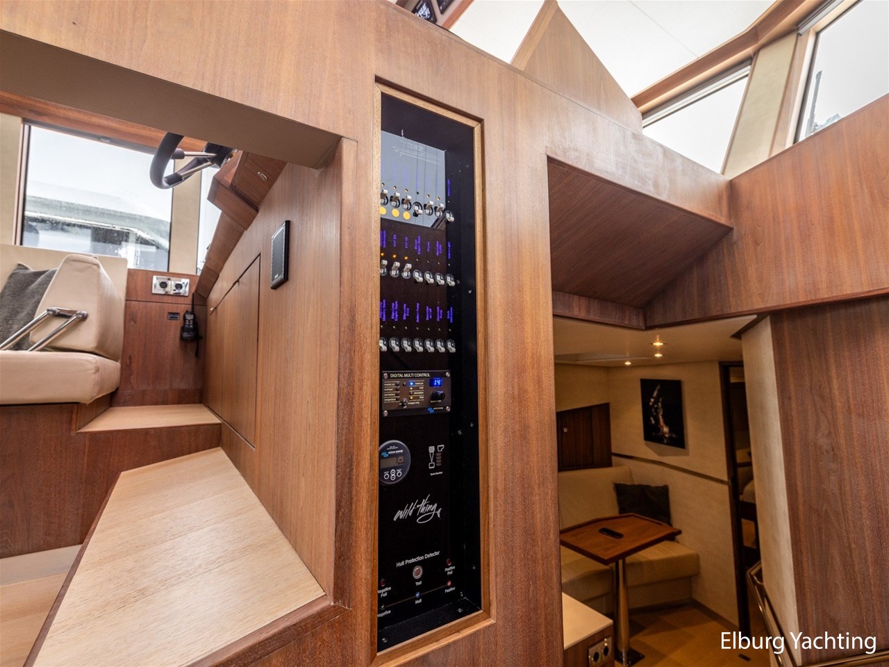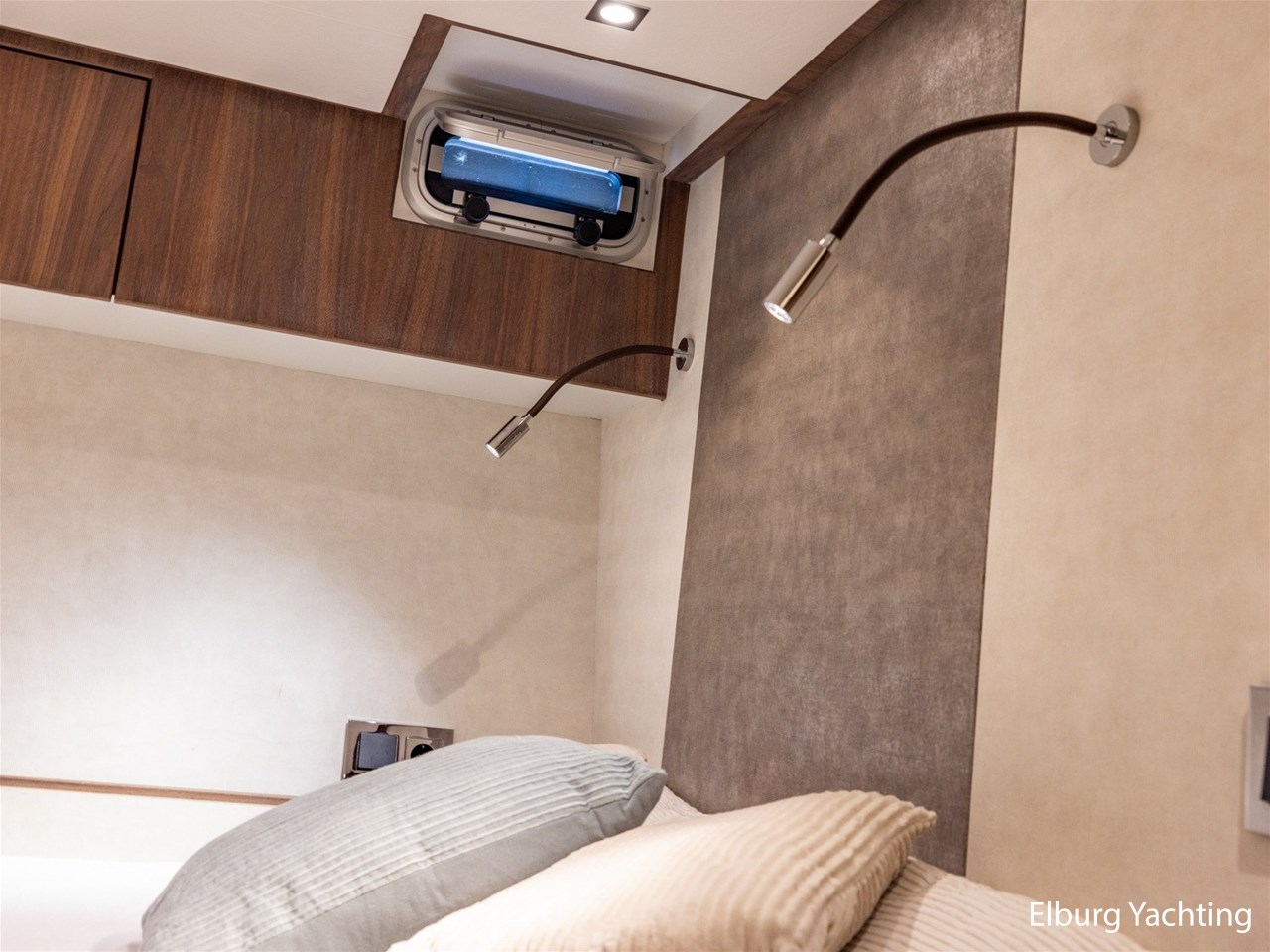 Het in 2016 gebouwde Pilot Yacht uit de Explorer-klasse van Next Generation Shipyards is een stoer en uiterst zeewaardig schip (CE-A Ocean-going) met zowel van binnen als van buiten de luxe van een jacht. Het is ontstaan door de ervaringen die de NG werfeigenaar alsmede enkele personeelsleden hebben opgedaan als toenmalig mede directeur/eigenaar en bouwers van “No limit“. Van deze “No Limits“ heeft hij er ruim 25 stuks gebouwd. Nadat de eigenaren van No Limit ieder hun eigen weg gegaan zijn wilde de nieuwe NG werf eigenaar een modernere versie van de “No Limit“ op de markt brengen wat resulteerde in het bovenstaande jacht. De werf is intussen enorm gegroeid en bouwt nu nog steeds professionele zeewaardige schepen zoals crewtenders, surveyschepen en pilot- boten voor de Nederlandse loodsdienst. Het schip is aantoonbaar goed onderhouden onder de huidige en tevens eerste eigenaar. De uitgebreide en professionele Simrad navigatiemiddelen, AIS-transponder en Simrad 4G radar zorgen voor een comfortabele tocht met hoge mate van veiligheid. De hoogwaardige 2 Component Polyurethaan blauwe romp coating is in goede staat samen met de rest van het schip. De Volvo Penta D6 dieselmotoren (elk 435 pk) drijven de in halve tunnels ingebouwde schroeven aan, wat zorgt voor minder kwetsbaarheid, betere bescherming en minder diepgang. De D-fenders rondom zorgen voor een nog grotere stabiliteit (=veiligheid) bij slecht weer. Veel bergruimte door talrijke kasten en lades door het gehele schip. Het schip is voorzien van: Ruime en verdiepte open kuip voor een beschutte zitting met vast zitbank incl. bijbehorende kussens, de kuip is voorzien van een overkapping met nacht/werk verlichting en te verlengen met een canvas zonnescherm, kuip met afgesloten (diepe) bakskisten, ruim bergluik in achterschip, klapbare spiegel te gebruiken als zwemplatform, entree stuurhuis/salon via achter- en zijdeur (SB), volledig zicht rondom vanaf stuurstand, luxe Norsapp stuurstoel, professioneel ingericht dashboard met hoogwaardige Simrad navigatie-instrumenten, Wifi boordnet via 4G, voor de co- pilot is er een in hoogte elektrisch verstelbare meevaar zitting aanwezig welke in ruststand tevens versteld kan worden naar een gezellige zit aan de borrel tafel, het interieur is voorzien van comfortabele vloerverwarming, luxaflex plisse´ zonwering, Samsung TV op lift in salon, Samsung TV in voorhut, groot schuifdak boven stuurstand, Bosch keukenapparatuur met een inductie kookplaat / magnetron oven / vaatwasmachine, muggenhorren, Samsung was/droogcombinatie, elektrisch gevoelige apparatuur ondergebracht “ technische ruimte”. In het vooronder is ruimte voor opslag van diversen zoals trossen en fenders maar ook de ankerketting. De machinekamer heeft een automatisch blussysteem & dubbele brandstoffilters. De radarbeugel is elektrisch klapbaar, evenals de spiegel die zowel in de kuip buiten als op het dashboard binnen elektrisch bedienbaar is. Een comfortabele vaarsnelheid voor binnenwateren ligt rondom de 6@7 knopen hierbij is het verbruik totaal ca. 10 liter p/uur. De maximale snelheid ligt op ca. 25 knopen. Een uitgebreidere verbruikstabel is verzoek beschikbaar. De doorvaarthoogte met geklapte beugel is ca. 3,60 meter en met beugel op ca. 6,20 meter. Voor vragen en/of het maken van een afspraak bent u 7 dagen per week van harte welkom bij Elburg Yachting.