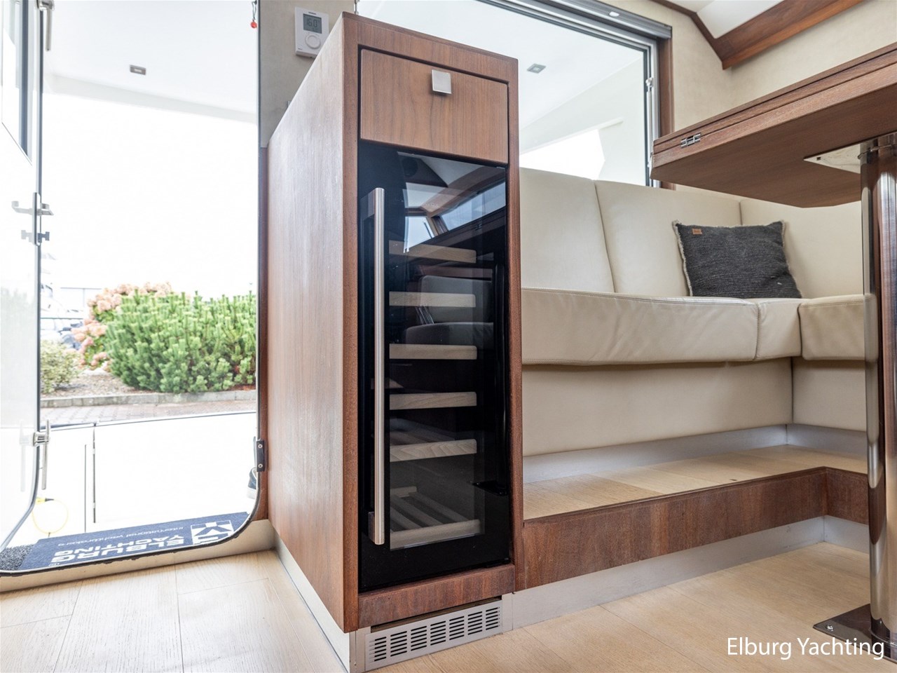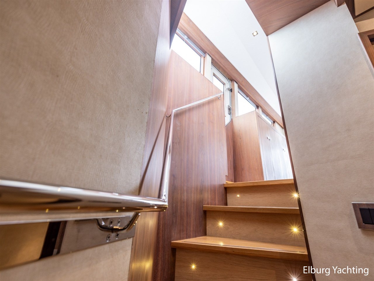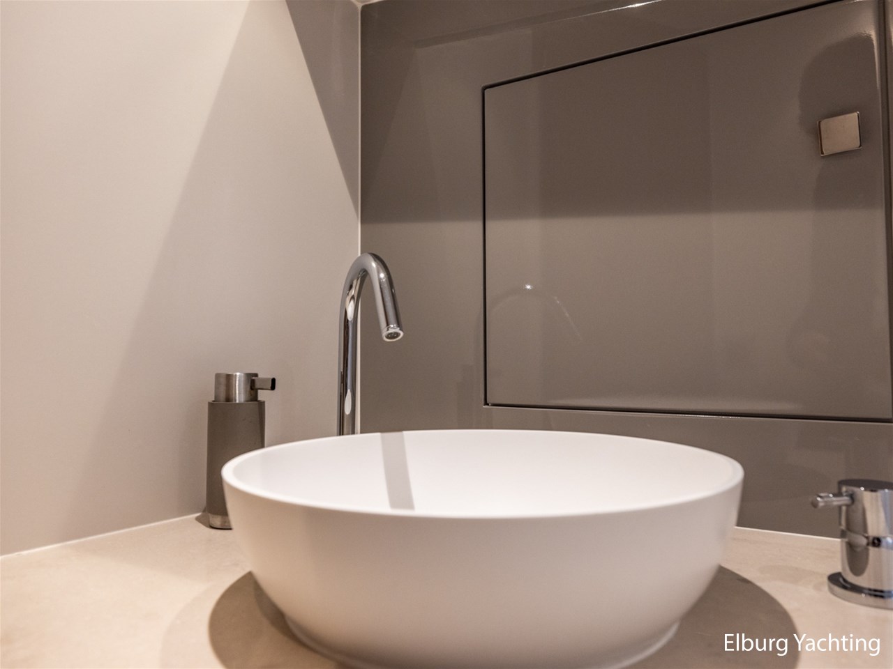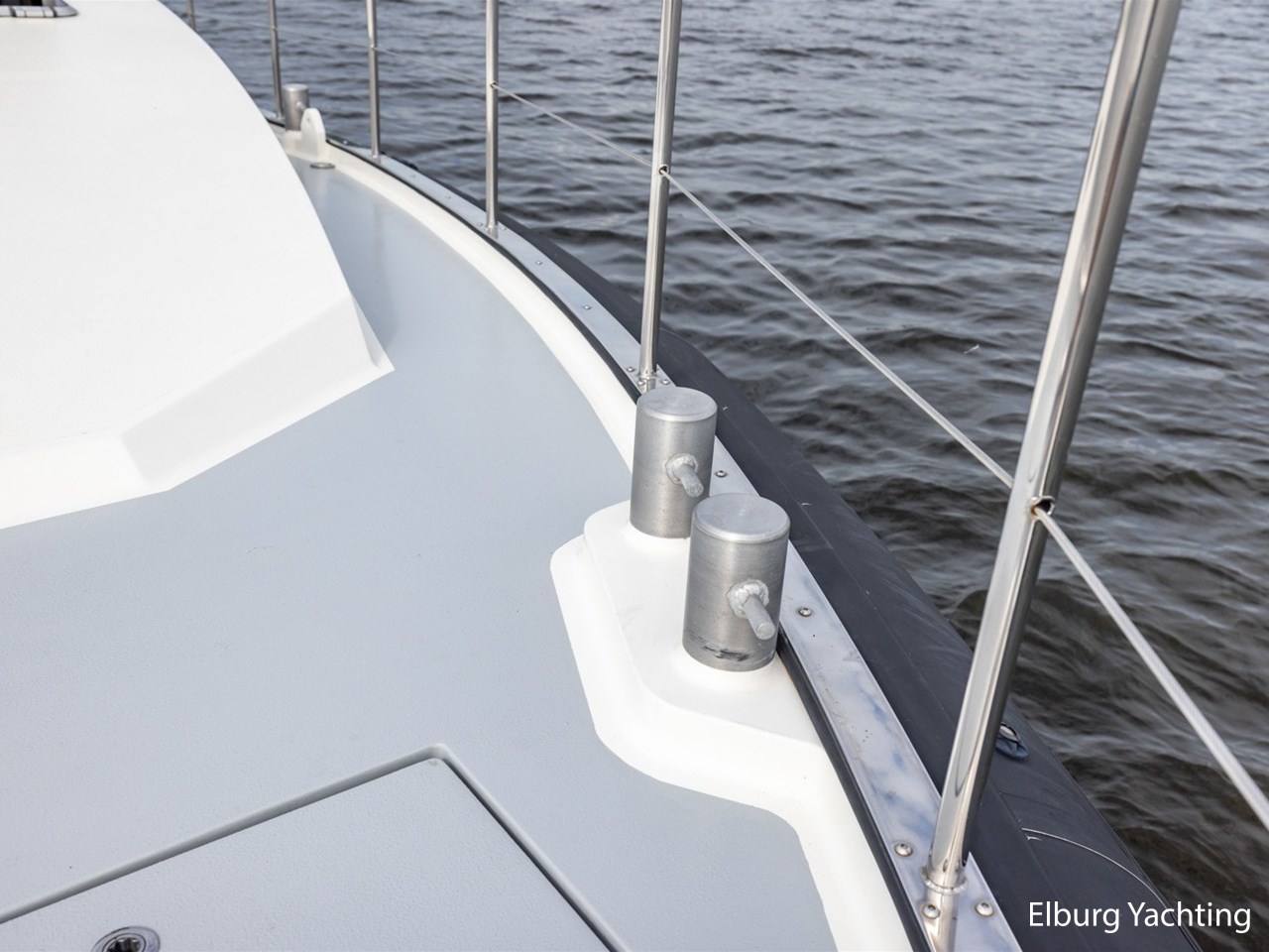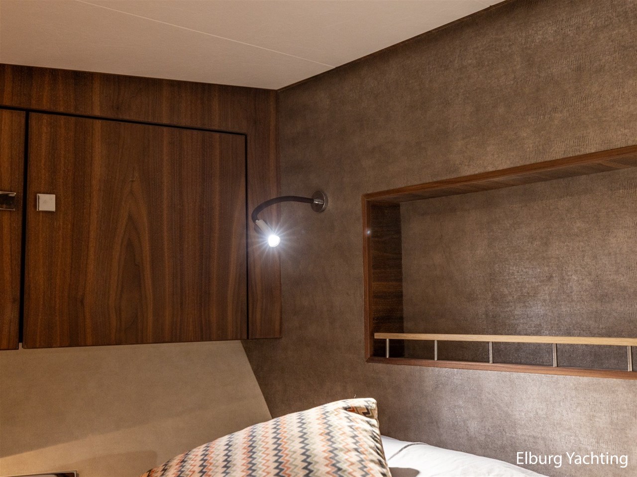 Het in 2016 gebouwde Pilot Yacht uit de Explorer-klasse van Next Generation Shipyards is een stoer en uiterst zeewaardig schip (CE-A Ocean-going) met zowel van binnen als van buiten de luxe van een jacht. Het is ontstaan door de ervaringen die de NG werfeigenaar alsmede enkele personeelsleden hebben opgedaan als toenmalig mede directeur/eigenaar en bouwers van “No limit“. Van deze “No Limits“ heeft hij er ruim 25 stuks gebouwd. Nadat de eigenaren van No Limit ieder hun eigen weg gegaan zijn wilde de nieuwe NG werf eigenaar een modernere versie van de “No Limit“ op de markt brengen wat resulteerde in het bovenstaande jacht. De werf is intussen enorm gegroeid en bouwt nu nog steeds professionele zeewaardige schepen zoals crewtenders, surveyschepen en pilot- boten voor de Nederlandse loodsdienst. Het schip is aantoonbaar goed onderhouden onder de huidige en tevens eerste eigenaar. De uitgebreide en professionele Simrad navigatiemiddelen, AIS-transponder en Simrad 4G radar zorgen voor een comfortabele tocht met hoge mate van veiligheid. De hoogwaardige 2 Component Polyurethaan blauwe romp coating is in goede staat samen met de rest van het schip. De Volvo Penta D6 dieselmotoren (elk 435 pk) drijven de in halve tunnels ingebouwde schroeven aan, wat zorgt voor minder kwetsbaarheid, betere bescherming en minder diepgang. De D-fenders rondom zorgen voor een nog grotere stabiliteit (=veiligheid) bij slecht weer. Veel bergruimte door talrijke kasten en lades door het gehele schip. Het schip is voorzien van: Ruime en verdiepte open kuip voor een beschutte zitting met vast zitbank incl. bijbehorende kussens, de kuip is voorzien van een overkapping met nacht/werk verlichting en te verlengen met een canvas zonnescherm, kuip met afgesloten (diepe) bakskisten, ruim bergluik in achterschip, klapbare spiegel te gebruiken als zwemplatform, entree stuurhuis/salon via achter- en zijdeur (SB), volledig zicht rondom vanaf stuurstand, luxe Norsapp stuurstoel, professioneel ingericht dashboard met hoogwaardige Simrad navigatie-instrumenten, Wifi boordnet via 4G, voor de co- pilot is er een in hoogte elektrisch verstelbare meevaar zitting aanwezig welke in ruststand tevens versteld kan worden naar een gezellige zit aan de borrel tafel, het interieur is voorzien van comfortabele vloerverwarming, luxaflex plisse´ zonwering, Samsung TV op lift in salon, Samsung TV in voorhut, groot schuifdak boven stuurstand, Bosch keukenapparatuur met een inductie kookplaat / magnetron oven / vaatwasmachine, muggenhorren, Samsung was/droogcombinatie, elektrisch gevoelige apparatuur ondergebracht “ technische ruimte”. In het vooronder is ruimte voor opslag van diversen zoals trossen en fenders maar ook de ankerketting. De machinekamer heeft een automatisch blussysteem & dubbele brandstoffilters. De radarbeugel is elektrisch klapbaar, evenals de spiegel die zowel in de kuip buiten als op het dashboard binnen elektrisch bedienbaar is. Een comfortabele vaarsnelheid voor binnenwateren ligt rondom de 6@7 knopen hierbij is het verbruik totaal ca. 10 liter p/uur. De maximale snelheid ligt op ca. 25 knopen. Een uitgebreidere verbruikstabel is verzoek beschikbaar. De doorvaarthoogte met geklapte beugel is ca. 3,60 meter en met beugel op ca. 6,20 meter. Voor vragen en/of het maken van een afspraak bent u 7 dagen per week van harte welkom bij Elburg Yachting.