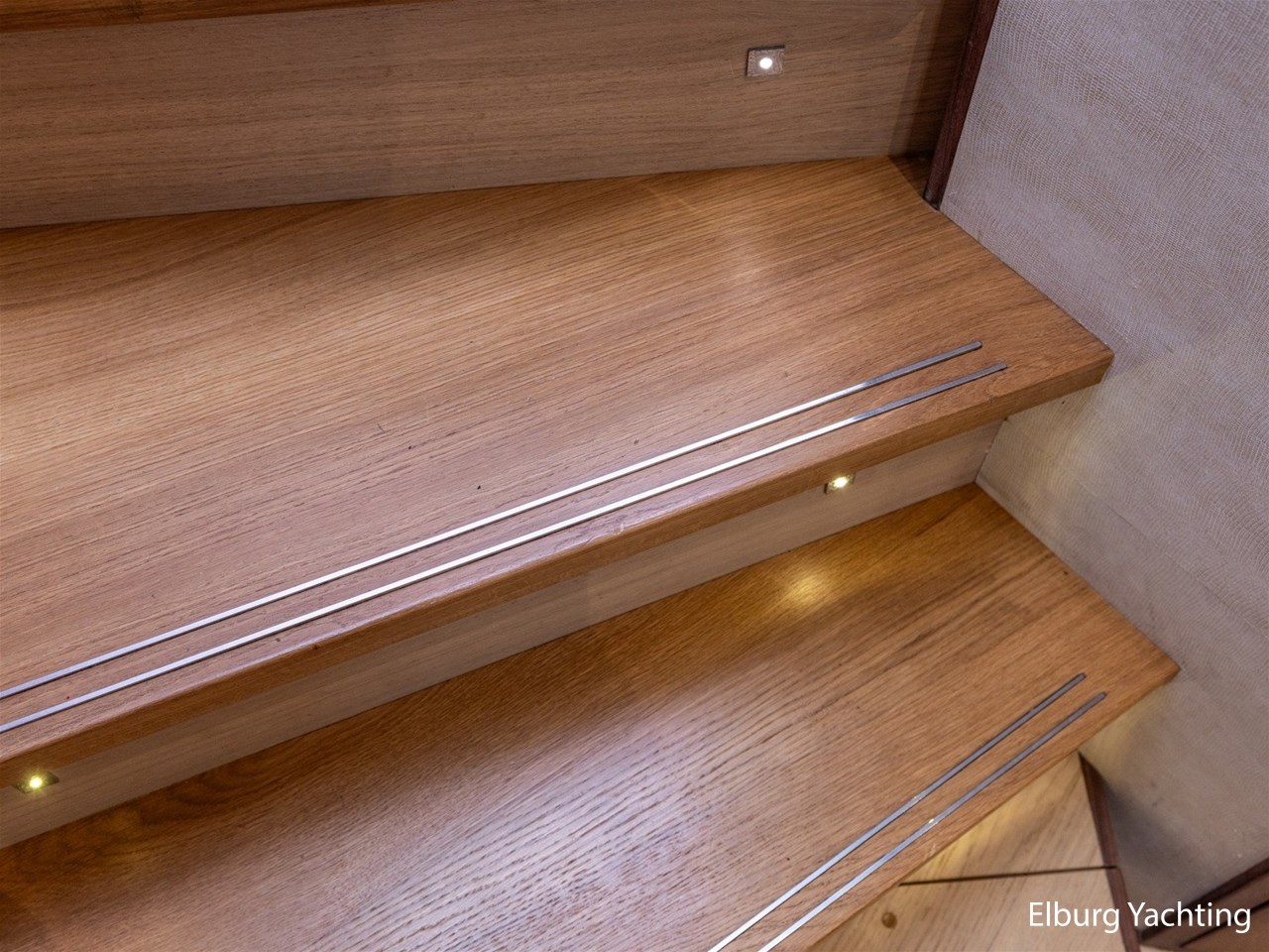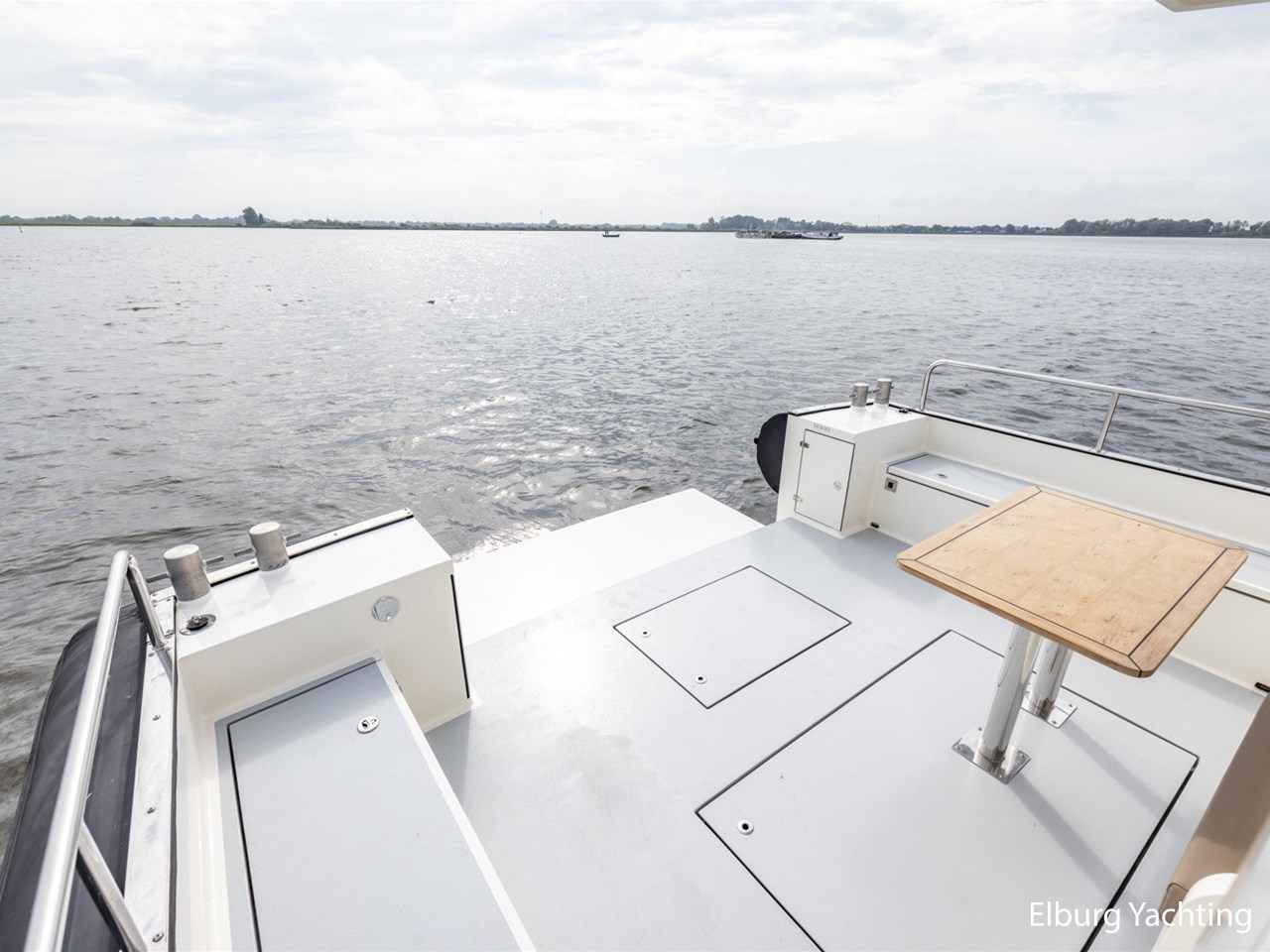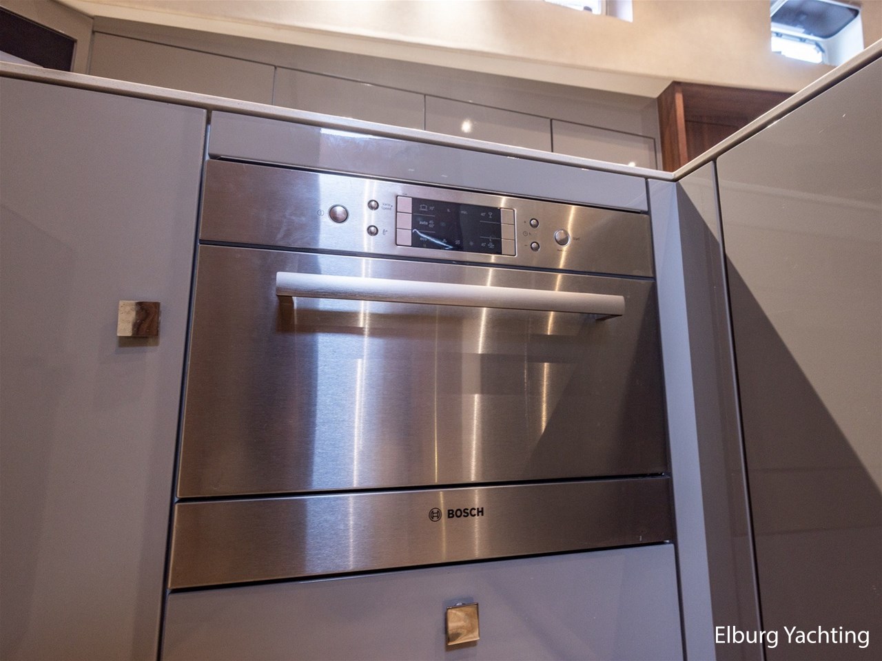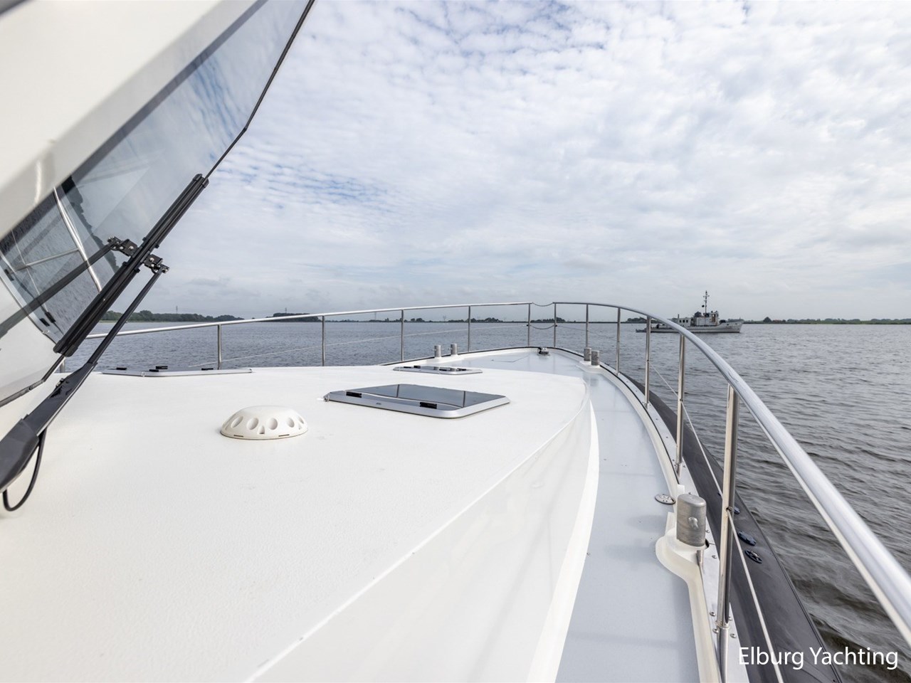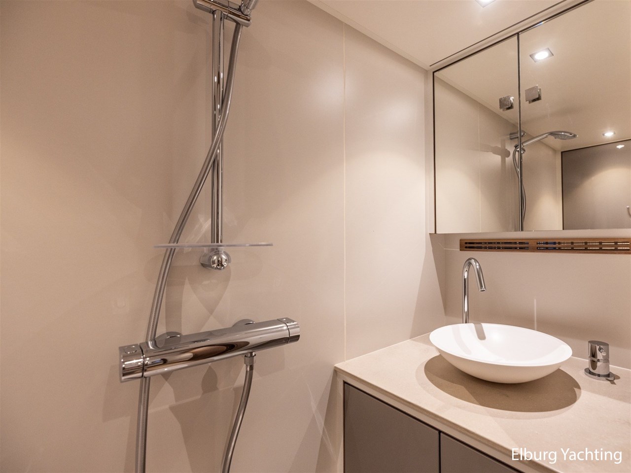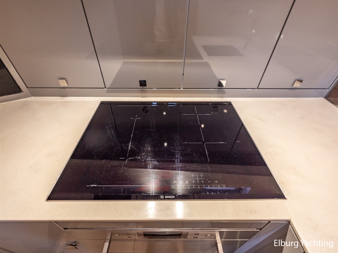 Het in 2016 gebouwde Pilot Yacht uit de Explorer-klasse van Next Generation Shipyards is een stoer en uiterst zeewaardig schip (CE-A Ocean-going) met zowel van binnen als van buiten de luxe van een jacht. Het is ontstaan door de ervaringen die de NG werfeigenaar alsmede enkele personeelsleden hebben opgedaan als toenmalig mede directeur/eigenaar en bouwers van “No limit“. Van deze “No Limits“ heeft hij er ruim 25 stuks gebouwd. Nadat de eigenaren van No Limit ieder hun eigen weg gegaan zijn wilde de nieuwe NG werf eigenaar een modernere versie van de “No Limit“ op de markt brengen wat resulteerde in het bovenstaande jacht. De werf is intussen enorm gegroeid en bouwt nu nog steeds professionele zeewaardige schepen zoals crewtenders, surveyschepen en pilot- boten voor de Nederlandse loodsdienst. Het schip is aantoonbaar goed onderhouden onder de huidige en tevens eerste eigenaar. De uitgebreide en professionele Simrad navigatiemiddelen, AIS-transponder en Simrad 4G radar zorgen voor een comfortabele tocht met hoge mate van veiligheid. De hoogwaardige 2 Component Polyurethaan blauwe romp coating is in goede staat samen met de rest van het schip. De Volvo Penta D6 dieselmotoren (elk 435 pk) drijven de in halve tunnels ingebouwde schroeven aan, wat zorgt voor minder kwetsbaarheid, betere bescherming en minder diepgang. De D-fenders rondom zorgen voor een nog grotere stabiliteit (=veiligheid) bij slecht weer. Veel bergruimte door talrijke kasten en lades door het gehele schip. Het schip is voorzien van: Ruime en verdiepte open kuip voor een beschutte zitting met vast zitbank incl. bijbehorende kussens, de kuip is voorzien van een overkapping met nacht/werk verlichting en te verlengen met een canvas zonnescherm, kuip met afgesloten (diepe) bakskisten, ruim bergluik in achterschip, klapbare spiegel te gebruiken als zwemplatform, entree stuurhuis/salon via achter- en zijdeur (SB), volledig zicht rondom vanaf stuurstand, luxe Norsapp stuurstoel, professioneel ingericht dashboard met hoogwaardige Simrad navigatie-instrumenten, Wifi boordnet via 4G, voor de co- pilot is er een in hoogte elektrisch verstelbare meevaar zitting aanwezig welke in ruststand tevens versteld kan worden naar een gezellige zit aan de borrel tafel, het interieur is voorzien van comfortabele vloerverwarming, luxaflex plisse´ zonwering, Samsung TV op lift in salon, Samsung TV in voorhut, groot schuifdak boven stuurstand, Bosch keukenapparatuur met een inductie kookplaat / magnetron oven / vaatwasmachine, muggenhorren, Samsung was/droogcombinatie, elektrisch gevoelige apparatuur ondergebracht “ technische ruimte”. In het vooronder is ruimte voor opslag van diversen zoals trossen en fenders maar ook de ankerketting. De machinekamer heeft een automatisch blussysteem & dubbele brandstoffilters. De radarbeugel is elektrisch klapbaar, evenals de spiegel die zowel in de kuip buiten als op het dashboard binnen elektrisch bedienbaar is. Een comfortabele vaarsnelheid voor binnenwateren ligt rondom de 6@7 knopen hierbij is het verbruik totaal ca. 10 liter p/uur. De maximale snelheid ligt op ca. 25 knopen. Een uitgebreidere verbruikstabel is verzoek beschikbaar. De doorvaarthoogte met geklapte beugel is ca. 3,60 meter en met beugel op ca. 6,20 meter. Voor vragen en/of het maken van een afspraak bent u 7 dagen per week van harte welkom bij Elburg Yachting.