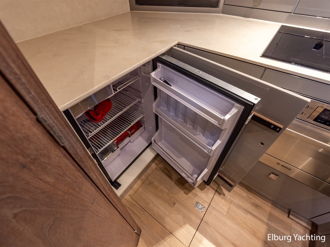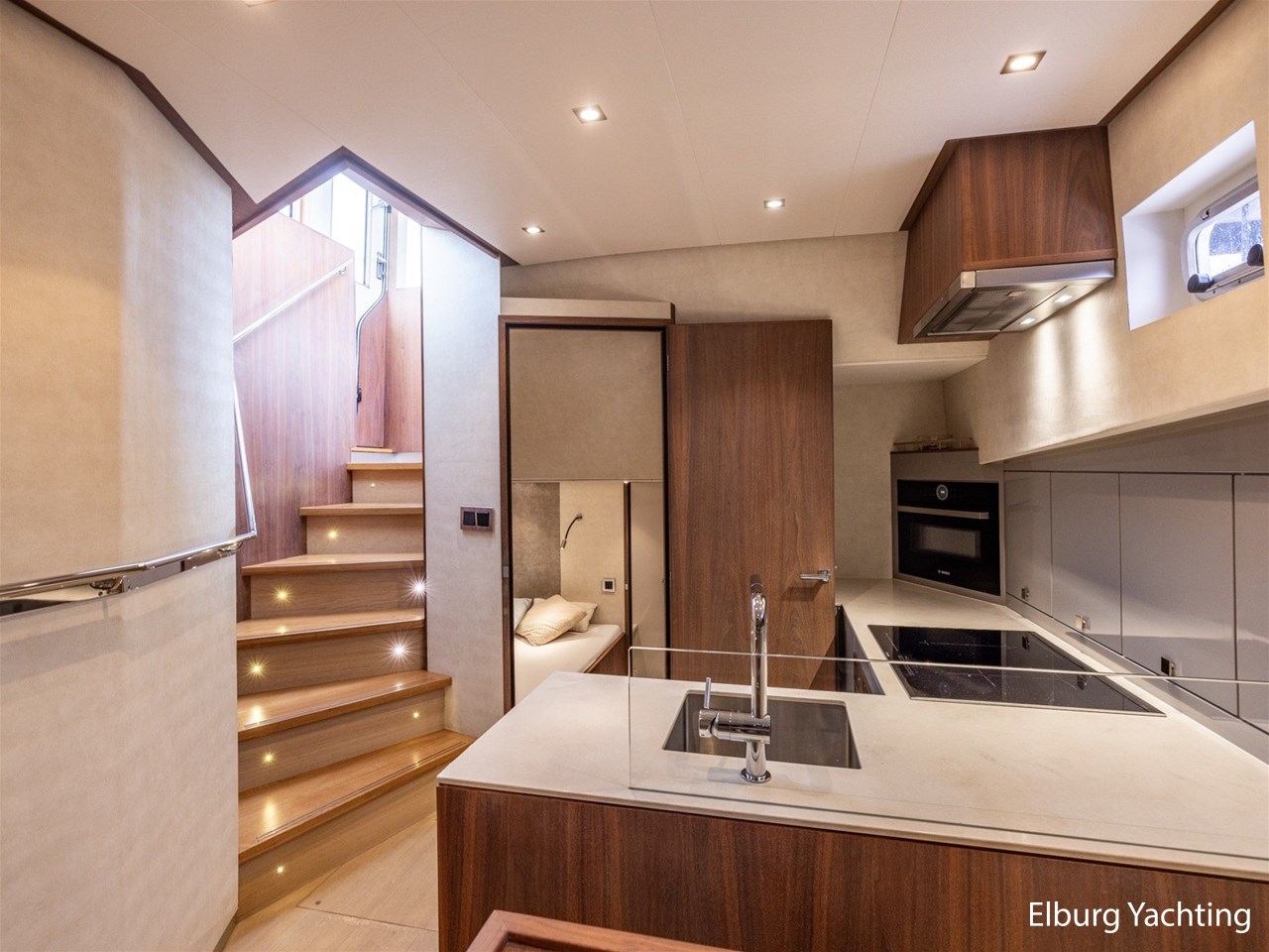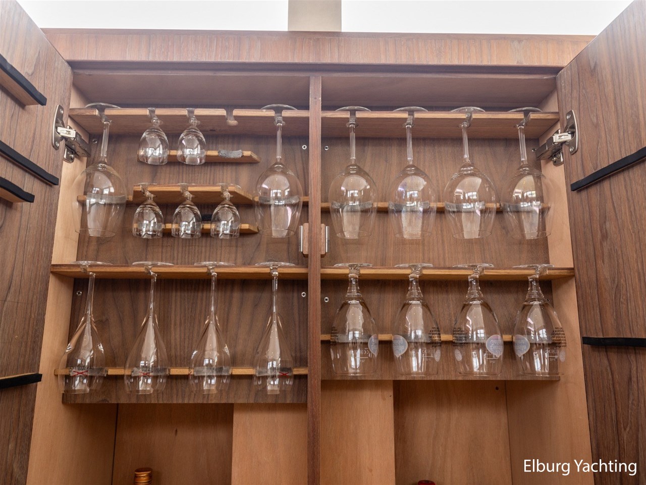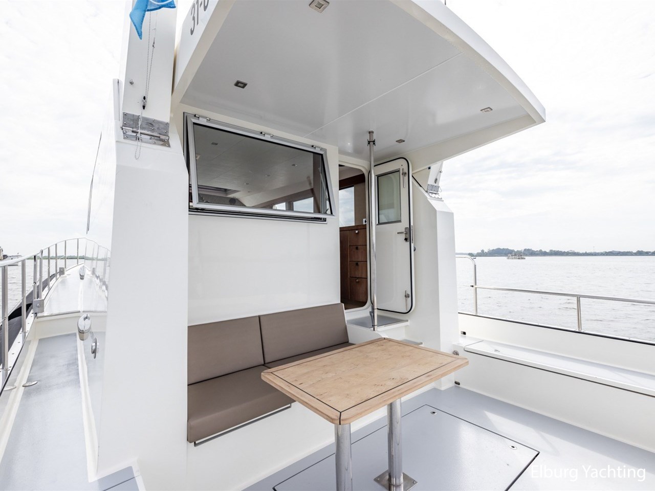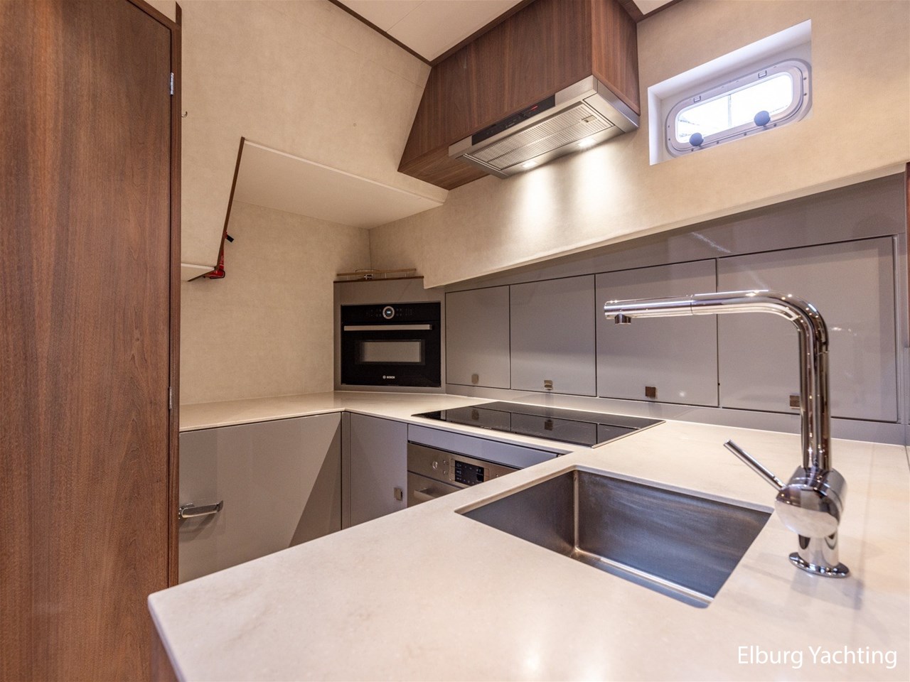 Het in 2016 gebouwde Pilot Yacht uit de Explorer-klasse van Next Generation Shipyards is een stoer en uiterst zeewaardig schip (CE-A Ocean-going) met zowel van binnen als van buiten de luxe van een jacht. Het is ontstaan door de ervaringen die de NG werfeigenaar alsmede enkele personeelsleden hebben opgedaan als toenmalig mede directeur/eigenaar en bouwers van “No limit“. Van deze “No Limits“ heeft hij er ruim 25 stuks gebouwd. Nadat de eigenaren van No Limit ieder hun eigen weg gegaan zijn wilde de nieuwe NG werf eigenaar een modernere versie van de “No Limit“ op de markt brengen wat resulteerde in het bovenstaande jacht. De werf is intussen enorm gegroeid en bouwt nu nog steeds professionele zeewaardige schepen zoals crewtenders, surveyschepen en pilot- boten voor de Nederlandse loodsdienst. Het schip is aantoonbaar goed onderhouden onder de huidige en tevens eerste eigenaar. De uitgebreide en professionele Simrad navigatiemiddelen, AIS-transponder en Simrad 4G radar zorgen voor een comfortabele tocht met hoge mate van veiligheid. De hoogwaardige 2 Component Polyurethaan blauwe romp coating is in goede staat samen met de rest van het schip. De Volvo Penta D6 dieselmotoren (elk 435 pk) drijven de in halve tunnels ingebouwde schroeven aan, wat zorgt voor minder kwetsbaarheid, betere bescherming en minder diepgang. De D-fenders rondom zorgen voor een nog grotere stabiliteit (=veiligheid) bij slecht weer. Veel bergruimte door talrijke kasten en lades door het gehele schip. Het schip is voorzien van: Ruime en verdiepte open kuip voor een beschutte zitting met vast zitbank incl. bijbehorende kussens, de kuip is voorzien van een overkapping met nacht/werk verlichting en te verlengen met een canvas zonnescherm, kuip met afgesloten (diepe) bakskisten, ruim bergluik in achterschip, klapbare spiegel te gebruiken als zwemplatform, entree stuurhuis/salon via achter- en zijdeur (SB), volledig zicht rondom vanaf stuurstand, luxe Norsapp stuurstoel, professioneel ingericht dashboard met hoogwaardige Simrad navigatie-instrumenten, Wifi boordnet via 4G, voor de co- pilot is er een in hoogte elektrisch verstelbare meevaar zitting aanwezig welke in ruststand tevens versteld kan worden naar een gezellige zit aan de borrel tafel, het interieur is voorzien van comfortabele vloerverwarming, luxaflex plisse´ zonwering, Samsung TV op lift in salon, Samsung TV in voorhut, groot schuifdak boven stuurstand, Bosch keukenapparatuur met een inductie kookplaat / magnetron oven / vaatwasmachine, muggenhorren, Samsung was/droogcombinatie, elektrisch gevoelige apparatuur ondergebracht “ technische ruimte”. In het vooronder is ruimte voor opslag van diversen zoals trossen en fenders maar ook de ankerketting. De machinekamer heeft een automatisch blussysteem & dubbele brandstoffilters. De radarbeugel is elektrisch klapbaar, evenals de spiegel die zowel in de kuip buiten als op het dashboard binnen elektrisch bedienbaar is. Een comfortabele vaarsnelheid voor binnenwateren ligt rondom de 6@7 knopen hierbij is het verbruik totaal ca. 10 liter p/uur. De maximale snelheid ligt op ca. 25 knopen. Een uitgebreidere verbruikstabel is verzoek beschikbaar. De doorvaarthoogte met geklapte beugel is ca. 3,60 meter en met beugel op ca. 6,20 meter. Voor vragen en/of het maken van een afspraak bent u 7 dagen per week van harte welkom bij Elburg Yachting.