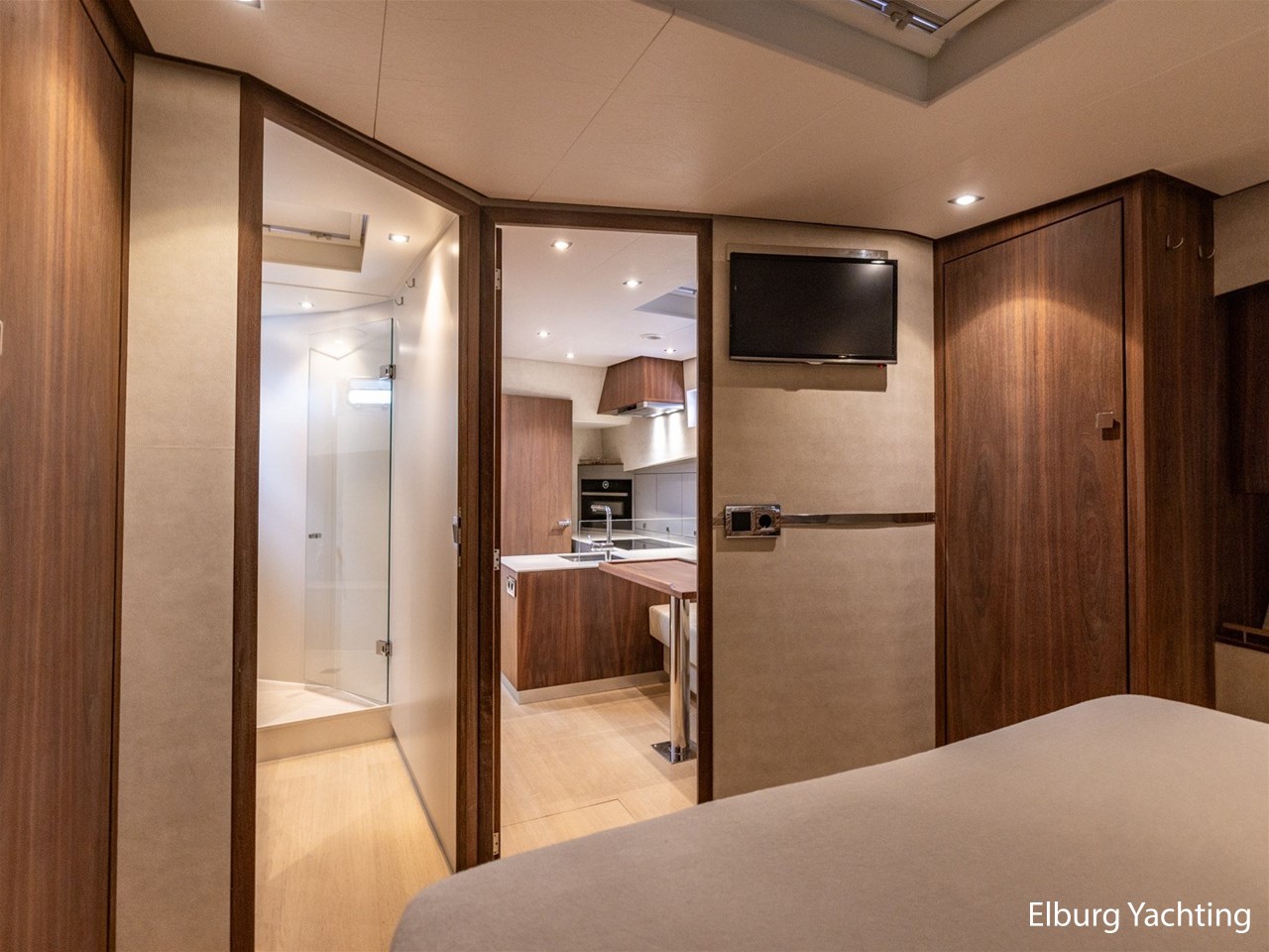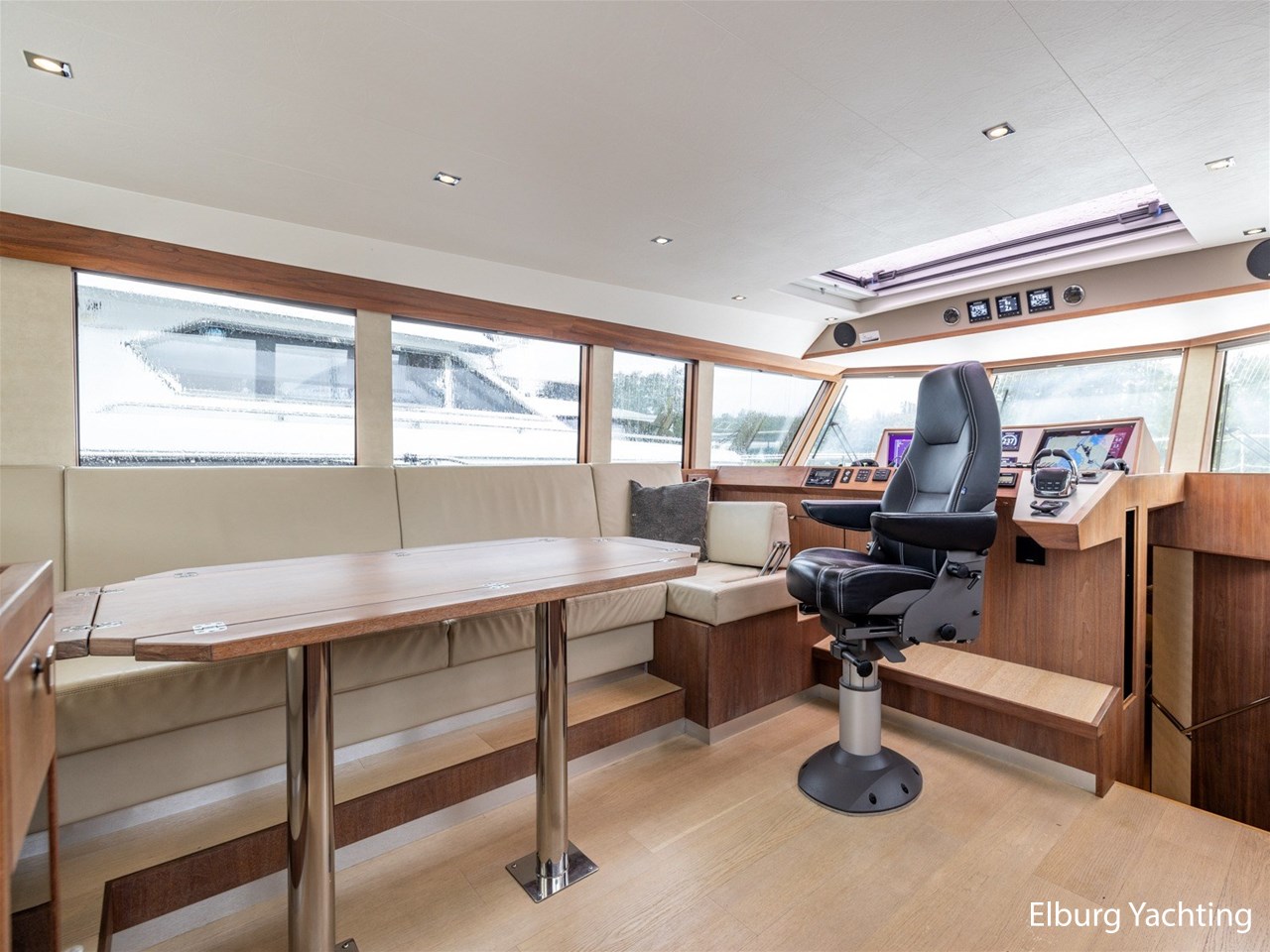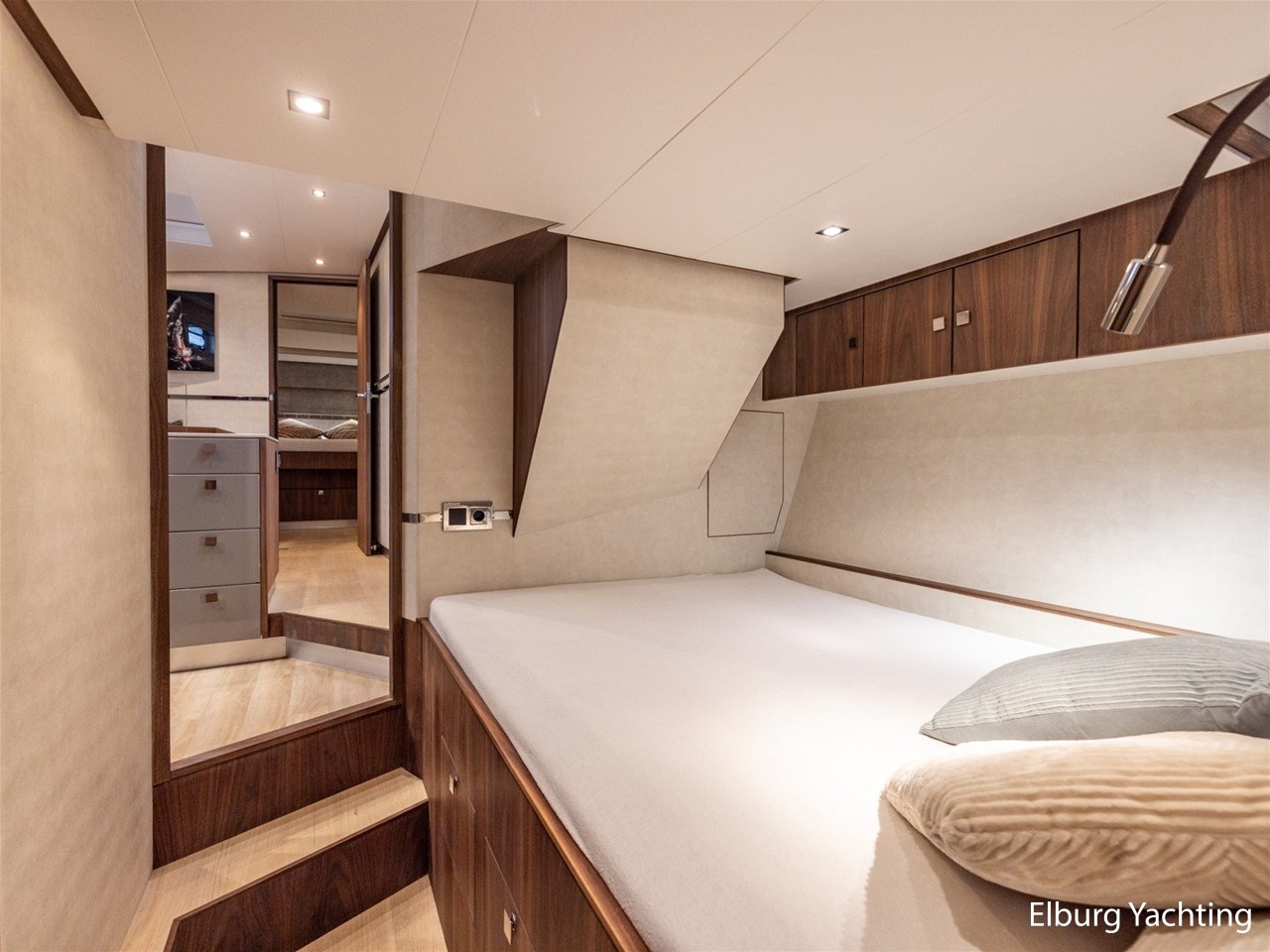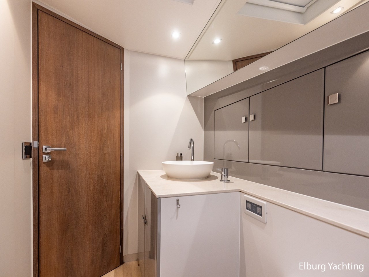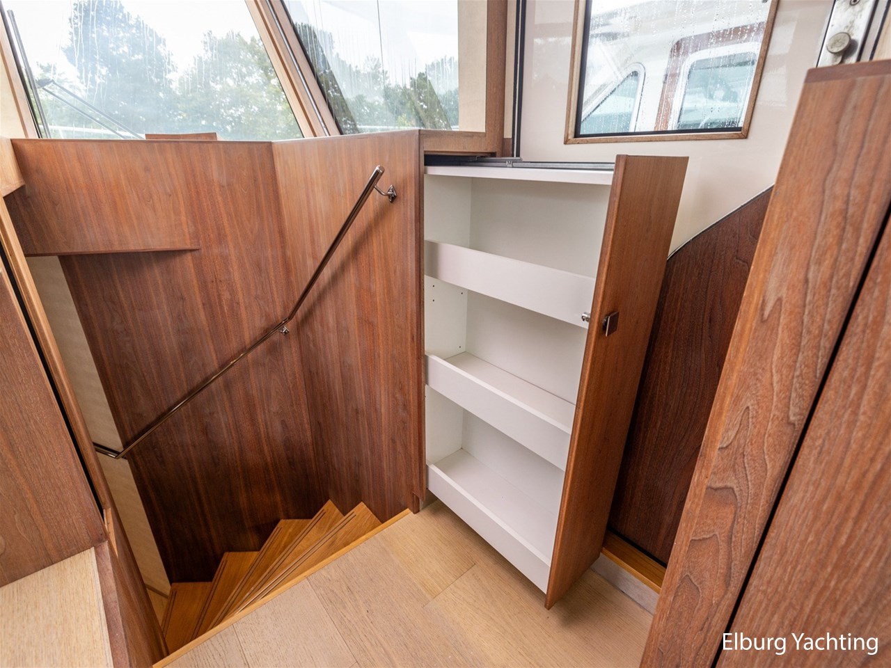 Het in 2016 gebouwde Pilot Yacht uit de Explorer-klasse van Next Generation Shipyards is een stoer en uiterst zeewaardig schip (CE-A Ocean-going) met zowel van binnen als van buiten de luxe van een jacht. Het is ontstaan door de ervaringen die de NG werfeigenaar alsmede enkele personeelsleden hebben opgedaan als toenmalig mede directeur/eigenaar en bouwers van “No limit“. Van deze “No Limits“ heeft hij er ruim 25 stuks gebouwd. Nadat de eigenaren van No Limit ieder hun eigen weg gegaan zijn wilde de nieuwe NG werf eigenaar een modernere versie van de “No Limit“ op de markt brengen wat resulteerde in het bovenstaande jacht. De werf is intussen enorm gegroeid en bouwt nu nog steeds professionele zeewaardige schepen zoals crewtenders, surveyschepen en pilot- boten voor de Nederlandse loodsdienst. Het schip is aantoonbaar goed onderhouden onder de huidige en tevens eerste eigenaar. De uitgebreide en professionele Simrad navigatiemiddelen, AIS-transponder en Simrad 4G radar zorgen voor een comfortabele tocht met hoge mate van veiligheid. De hoogwaardige 2 Component Polyurethaan blauwe romp coating is in goede staat samen met de rest van het schip. De Volvo Penta D6 dieselmotoren (elk 435 pk) drijven de in halve tunnels ingebouwde schroeven aan, wat zorgt voor minder kwetsbaarheid, betere bescherming en minder diepgang. De D-fenders rondom zorgen voor een nog grotere stabiliteit (=veiligheid) bij slecht weer. Veel bergruimte door talrijke kasten en lades door het gehele schip. Het schip is voorzien van: Ruime en verdiepte open kuip voor een beschutte zitting met vast zitbank incl. bijbehorende kussens, de kuip is voorzien van een overkapping met nacht/werk verlichting en te verlengen met een canvas zonnescherm, kuip met afgesloten (diepe) bakskisten, ruim bergluik in achterschip, klapbare spiegel te gebruiken als zwemplatform, entree stuurhuis/salon via achter- en zijdeur (SB), volledig zicht rondom vanaf stuurstand, luxe Norsapp stuurstoel, professioneel ingericht dashboard met hoogwaardige Simrad navigatie-instrumenten, Wifi boordnet via 4G, voor de co- pilot is er een in hoogte elektrisch verstelbare meevaar zitting aanwezig welke in ruststand tevens versteld kan worden naar een gezellige zit aan de borrel tafel, het interieur is voorzien van comfortabele vloerverwarming, luxaflex plisse´ zonwering, Samsung TV op lift in salon, Samsung TV in voorhut, groot schuifdak boven stuurstand, Bosch keukenapparatuur met een inductie kookplaat / magnetron oven / vaatwasmachine, muggenhorren, Samsung was/droogcombinatie, elektrisch gevoelige apparatuur ondergebracht “ technische ruimte”. In het vooronder is ruimte voor opslag van diversen zoals trossen en fenders maar ook de ankerketting. De machinekamer heeft een automatisch blussysteem & dubbele brandstoffilters. De radarbeugel is elektrisch klapbaar, evenals de spiegel die zowel in de kuip buiten als op het dashboard binnen elektrisch bedienbaar is. Een comfortabele vaarsnelheid voor binnenwateren ligt rondom de 6@7 knopen hierbij is het verbruik totaal ca. 10 liter p/uur. De maximale snelheid ligt op ca. 25 knopen. Een uitgebreidere verbruikstabel is verzoek beschikbaar. De doorvaarthoogte met geklapte beugel is ca. 3,60 meter en met beugel op ca. 6,20 meter. Voor vragen en/of het maken van een afspraak bent u 7 dagen per week van harte welkom bij Elburg Yachting.