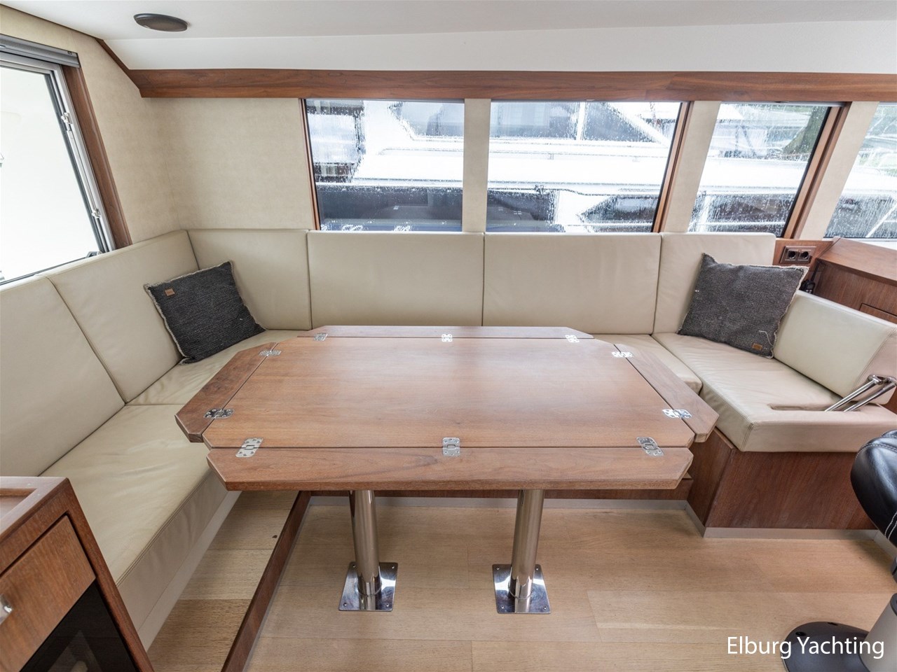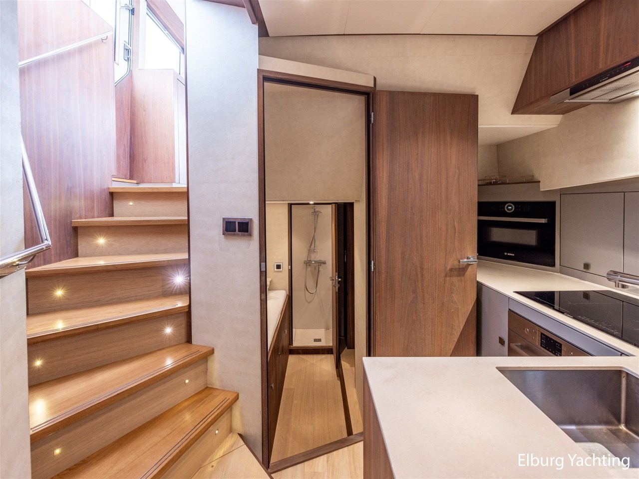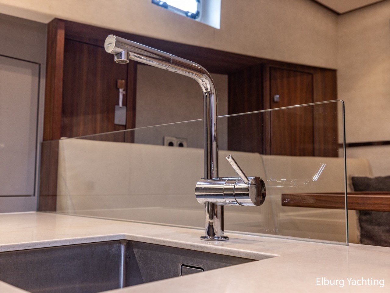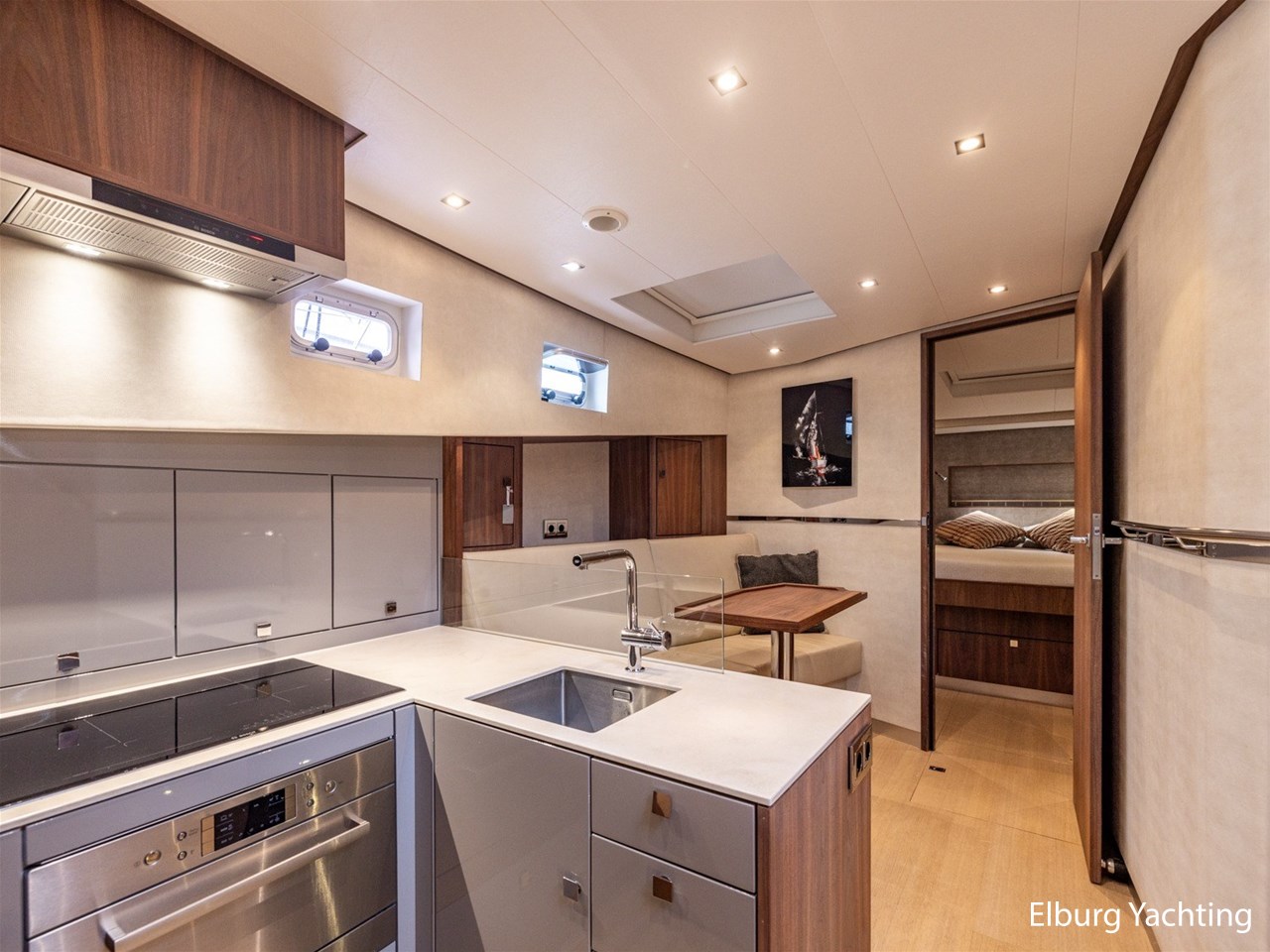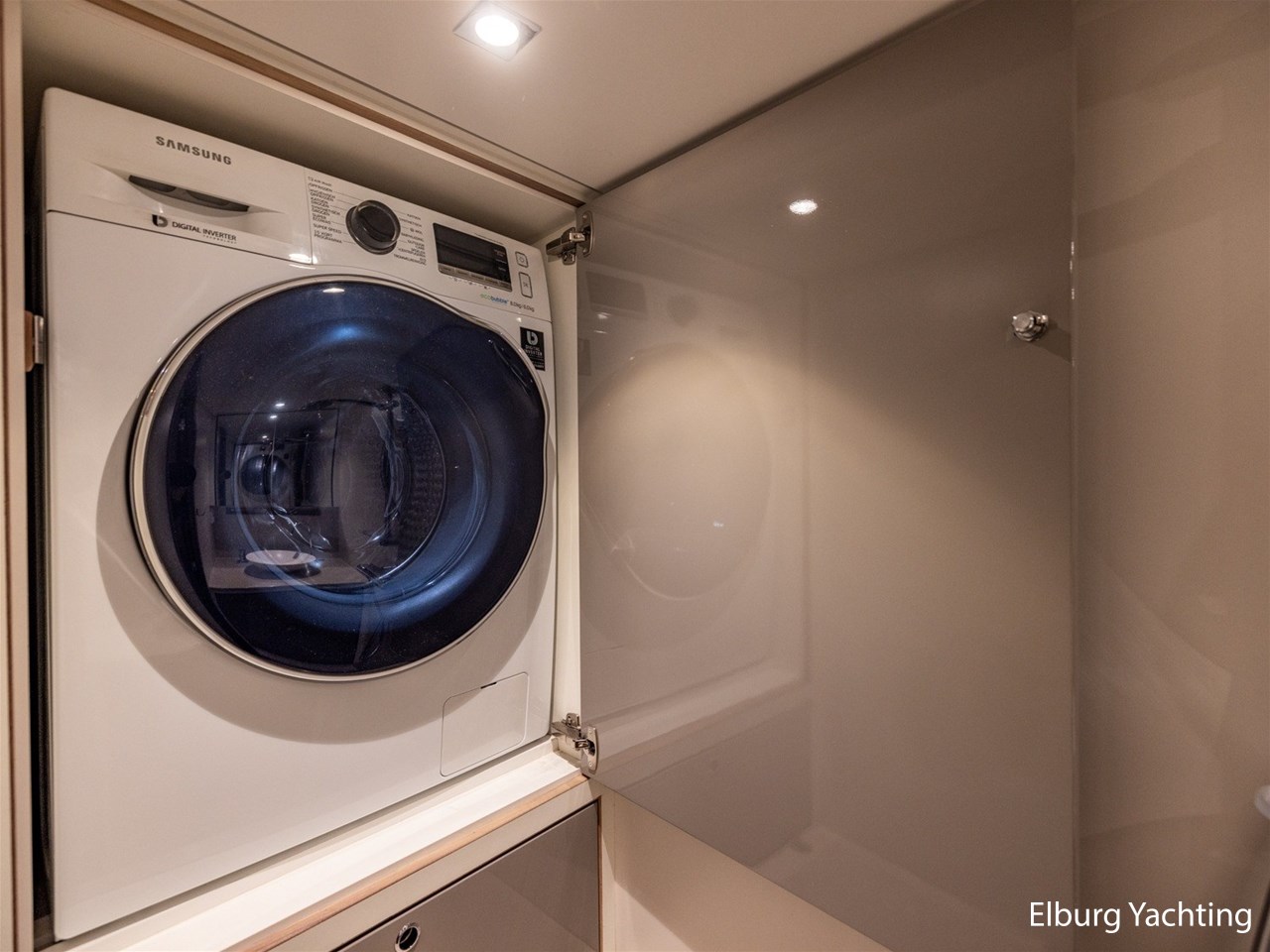 Het in 2016 gebouwde Pilot Yacht uit de Explorer-klasse van Next Generation Shipyards is een stoer en uiterst zeewaardig schip (CE-A Ocean-going) met zowel van binnen als van buiten de luxe van een jacht. Het is ontstaan door de ervaringen die de NG werfeigenaar alsmede enkele personeelsleden hebben opgedaan als toenmalig mede directeur/eigenaar en bouwers van “No limit“. Van deze “No Limits“ heeft hij er ruim 25 stuks gebouwd. Nadat de eigenaren van No Limit ieder hun eigen weg gegaan zijn wilde de nieuwe NG werf eigenaar een modernere versie van de “No Limit“ op de markt brengen wat resulteerde in het bovenstaande jacht. De werf is intussen enorm gegroeid en bouwt nu nog steeds professionele zeewaardige schepen zoals crewtenders, surveyschepen en pilot- boten voor de Nederlandse loodsdienst. Het schip is aantoonbaar goed onderhouden onder de huidige en tevens eerste eigenaar. De uitgebreide en professionele Simrad navigatiemiddelen, AIS-transponder en Simrad 4G radar zorgen voor een comfortabele tocht met hoge mate van veiligheid. De hoogwaardige 2 Component Polyurethaan blauwe romp coating is in goede staat samen met de rest van het schip. De Volvo Penta D6 dieselmotoren (elk 435 pk) drijven de in halve tunnels ingebouwde schroeven aan, wat zorgt voor minder kwetsbaarheid, betere bescherming en minder diepgang. De D-fenders rondom zorgen voor een nog grotere stabiliteit (=veiligheid) bij slecht weer. Veel bergruimte door talrijke kasten en lades door het gehele schip. Het schip is voorzien van: Ruime en verdiepte open kuip voor een beschutte zitting met vast zitbank incl. bijbehorende kussens, de kuip is voorzien van een overkapping met nacht/werk verlichting en te verlengen met een canvas zonnescherm, kuip met afgesloten (diepe) bakskisten, ruim bergluik in achterschip, klapbare spiegel te gebruiken als zwemplatform, entree stuurhuis/salon via achter- en zijdeur (SB), volledig zicht rondom vanaf stuurstand, luxe Norsapp stuurstoel, professioneel ingericht dashboard met hoogwaardige Simrad navigatie-instrumenten, Wifi boordnet via 4G, voor de co- pilot is er een in hoogte elektrisch verstelbare meevaar zitting aanwezig welke in ruststand tevens versteld kan worden naar een gezellige zit aan de borrel tafel, het interieur is voorzien van comfortabele vloerverwarming, luxaflex plisse´ zonwering, Samsung TV op lift in salon, Samsung TV in voorhut, groot schuifdak boven stuurstand, Bosch keukenapparatuur met een inductie kookplaat / magnetron oven / vaatwasmachine, muggenhorren, Samsung was/droogcombinatie, elektrisch gevoelige apparatuur ondergebracht “ technische ruimte”. In het vooronder is ruimte voor opslag van diversen zoals trossen en fenders maar ook de ankerketting. De machinekamer heeft een automatisch blussysteem & dubbele brandstoffilters. De radarbeugel is elektrisch klapbaar, evenals de spiegel die zowel in de kuip buiten als op het dashboard binnen elektrisch bedienbaar is. Een comfortabele vaarsnelheid voor binnenwateren ligt rondom de 6@7 knopen hierbij is het verbruik totaal ca. 10 liter p/uur. De maximale snelheid ligt op ca. 25 knopen. Een uitgebreidere verbruikstabel is verzoek beschikbaar. De doorvaarthoogte met geklapte beugel is ca. 3,60 meter en met beugel op ca. 6,20 meter. Voor vragen en/of het maken van een afspraak bent u 7 dagen per week van harte welkom bij Elburg Yachting.
