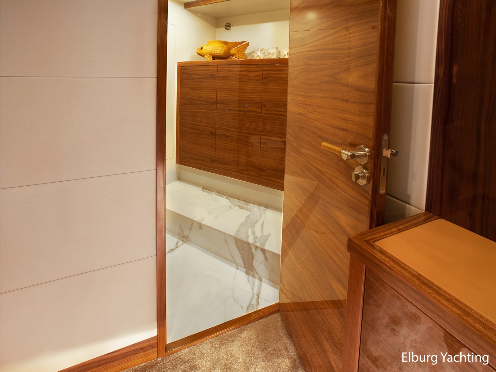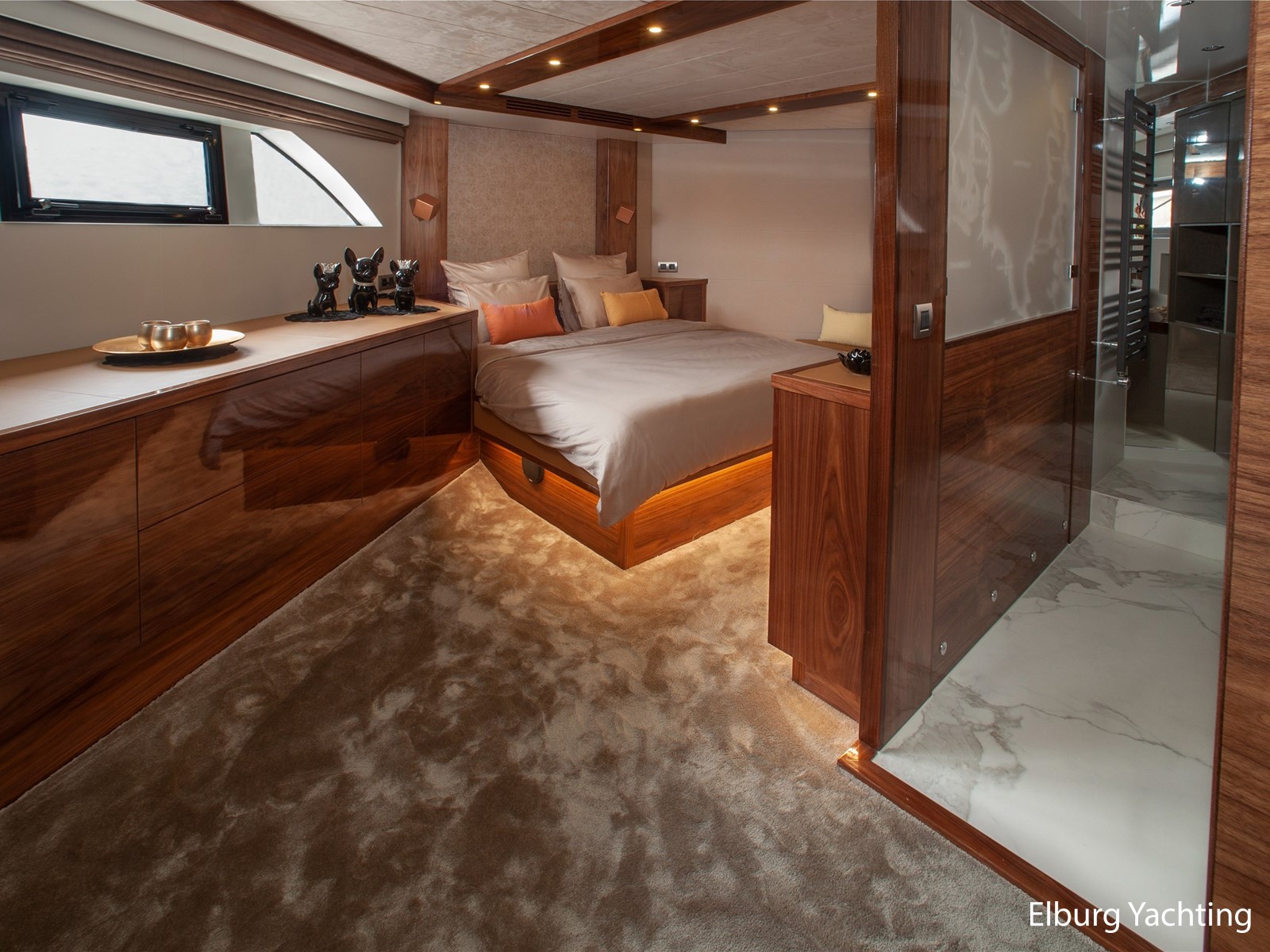 Deze Van den Hoven Executive 2100 is ontworpen voor wie graag langdurig en comfortabel aan boord verblijft. Dit jacht uit 2019 beschikt over één zeer royale eigenaarshut midscheeps, voorzien van een ruime inloopkast en een complete badkamer. De ruimte in de voorpunt doet momenteel dienst als berging, maar is voorbereid om te worden omgebouwd tot een tweede slaapkamer, indien gewenst. Daarnaast kan een deel van de inloopkast worden ingericht als derde slaapvertrek. Dergelijke wensen kunnen met de jachtwerf Van den Hoven worden besproken.