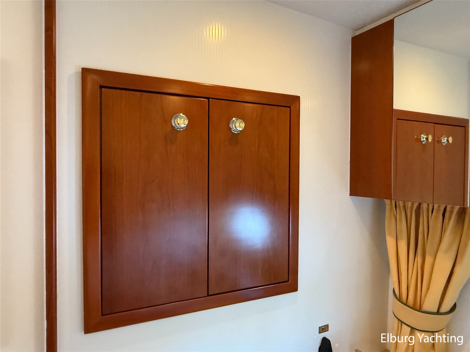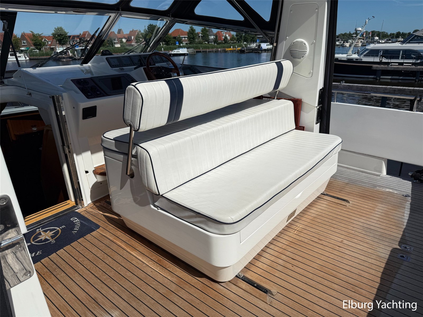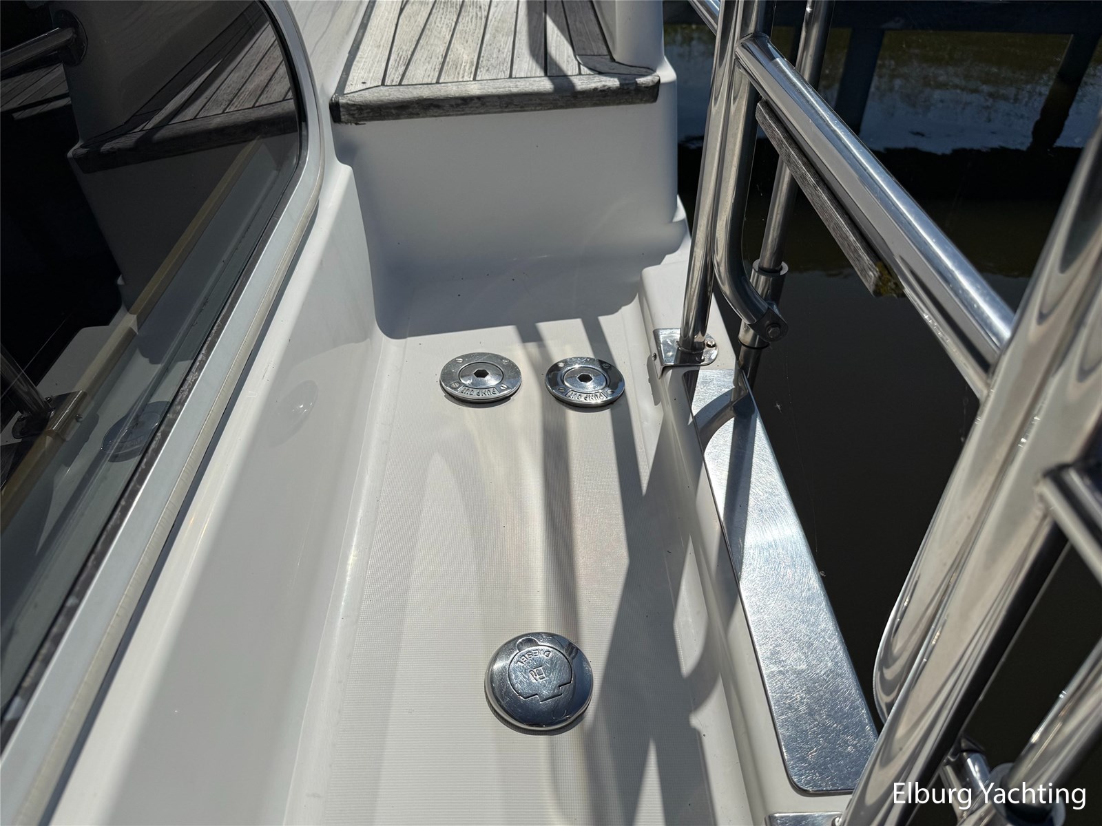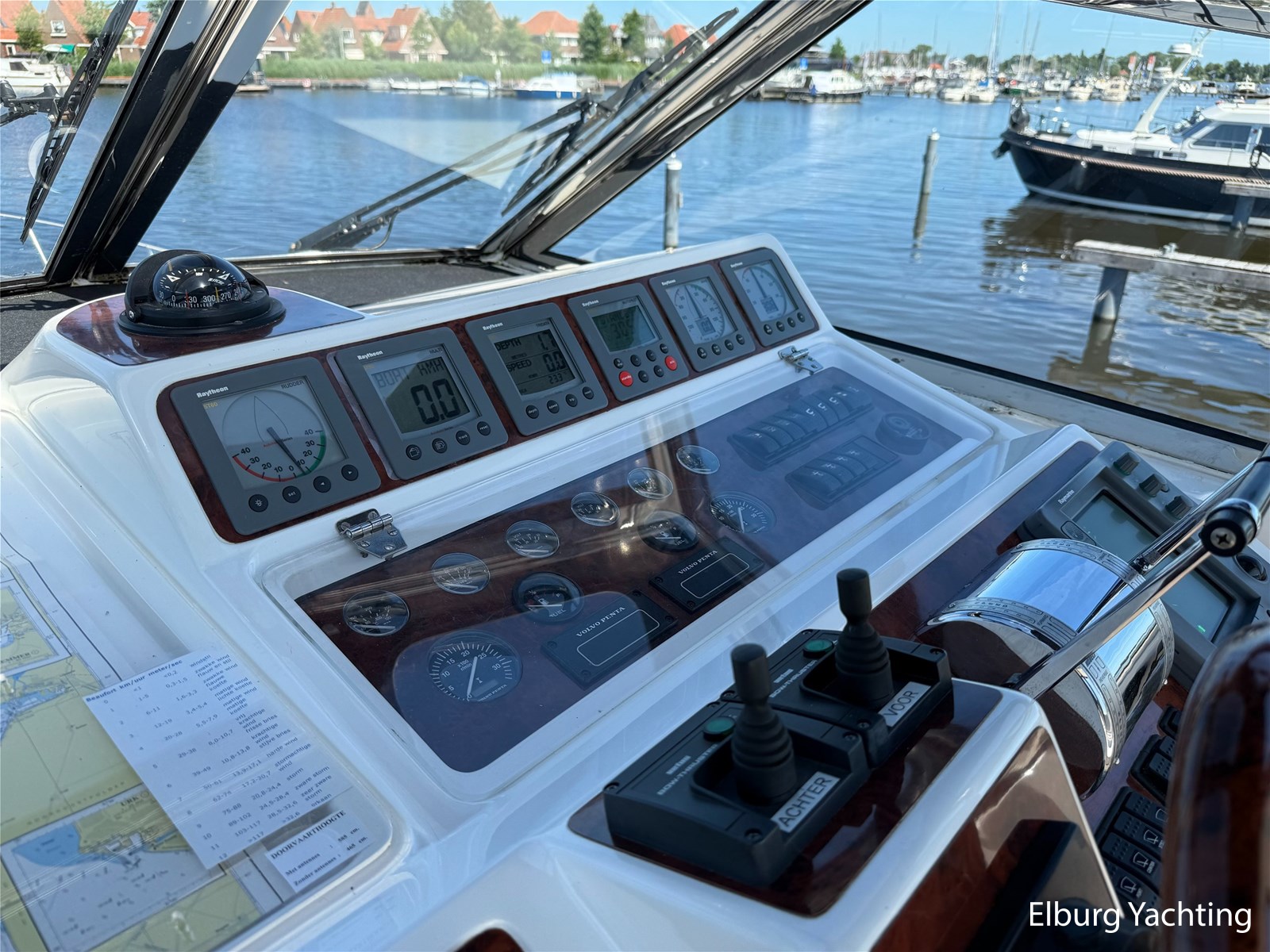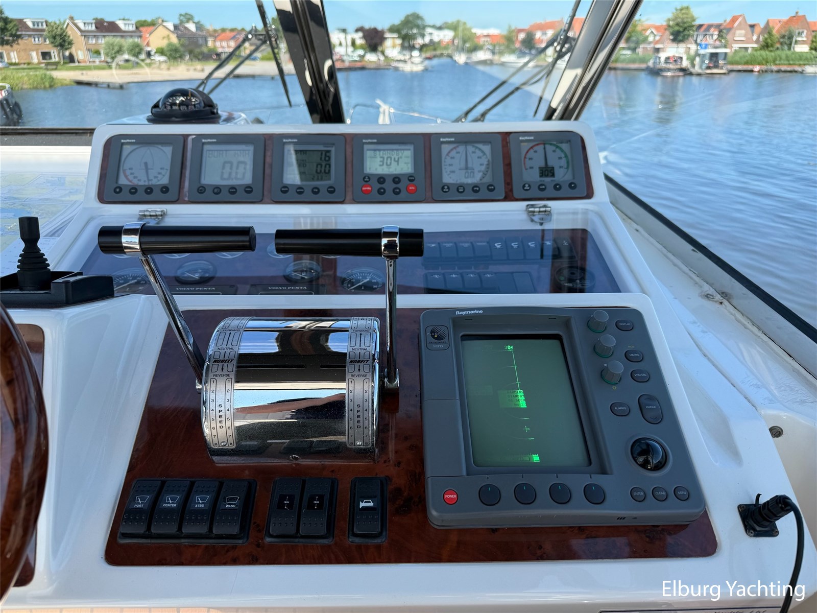 R.v.s. reling, biminitop over achterdek, geïntegreerde bank op achterdek, kunststof stootrand, Raytheon ST60 roerstandaanwijzer, Raytheon ST60 windmeter, elektrisch searchlight, 3 x dubbelarmige ruitenwissers, polyester radarbeugel, verstelbare stuurbank, Corian topbladen in keuken en toiletten, vaatwasser, vlucht- en ventilatieluiken, douche/toilet gescheiden in achterkajuit, r.v.s. fenderhouders, uitlaatslangen vernieuwd 2024, antifouling 2025, was- en droogcombinatie, verwarming bij stuurstand,, r.v.s. windscherm, houten vloer in keuken, blowers bij windscherm, voorkajuit heeft eigen ingang naar toilet, polyester verschansing, r.v.s. zijtrap in r.v.s. reling, ieder jaar servicebeurt, onderhoud is gelogd,, r.v.s. beugel voor bimini (ex. kap), nieuwe antraciet kuiptent, 12 x nieuwe verstuivers (2025), altijd in de winter verwarmd binnen gestaan, 2 x vuilwatertank (ongebruikt), accupakket is al volgt: service accu's ca. 2020 vernieuwd, 4 x start accu ( 2 x 2020 en 2 x 2024) 1 x generator accu. 2 x 2 boeg/hek. Victron Multiplus 24/3000/120, Victron Centaur voor boeg/hekaccu's.
