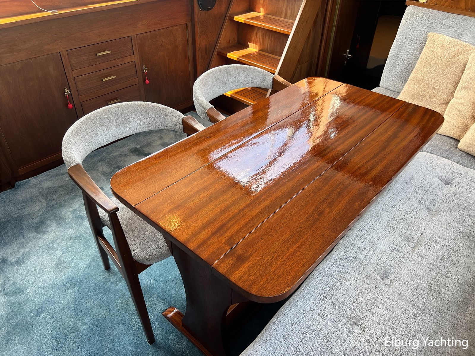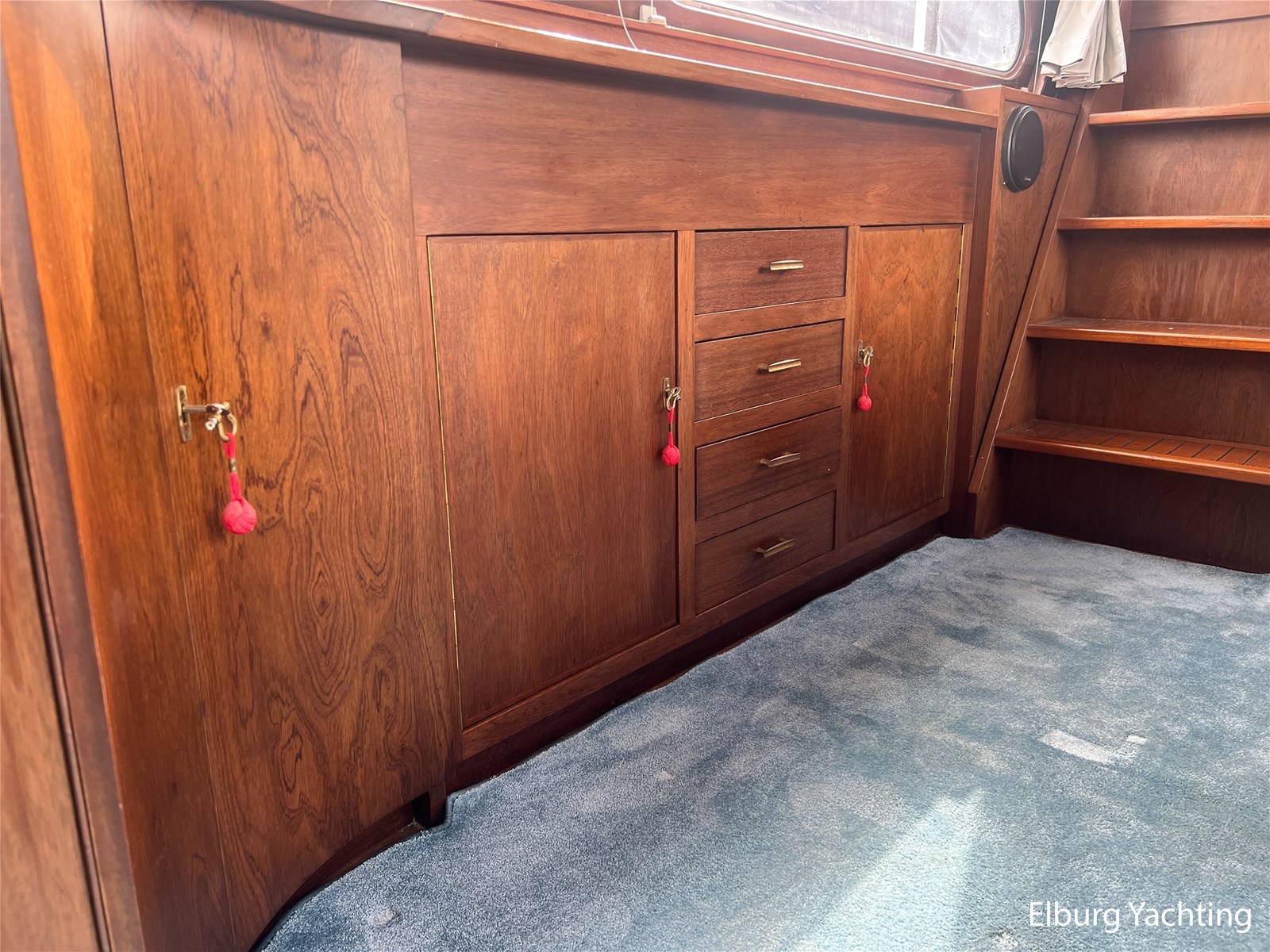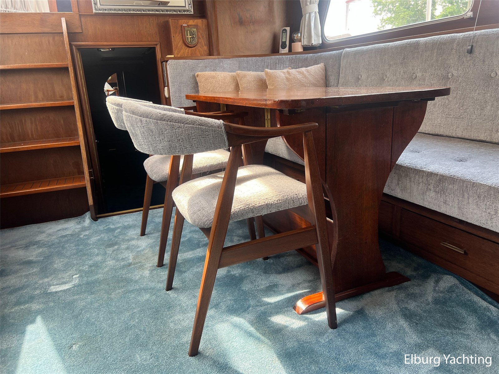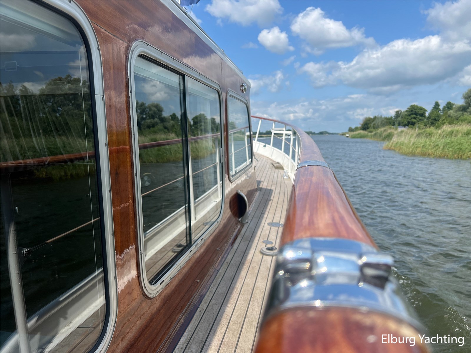 Deze mooie Super van Craft 13.80 met haar mooie klassieke lijn is een elegante verschijning op het water. Door haar geringe kruiphoogte is het schip geschikt om door de Franse kanalen te varen. De Super van Craft 13.80 heeft een ruime L-dinette in de salon met 2 stoelen, schuifluik in salon, scheepshouten interieur, U-dinette tegenover de kombuis, twee bedden in de eigenaarshut met recent vernieuwde matrassen, elektrisch koken, gastenhut met een separaat toilet, compleet met boeg en hekschroef, recent vernieuwde stoffering en vloerbedekking, recent vernieuwde tent over achterdek, volledige wintertent voor over de opbouw aanwezig. Voor vragen en/of het maken van een afspraak bent u 7 dagen per week van harte welkom bij Elburg Yachting.