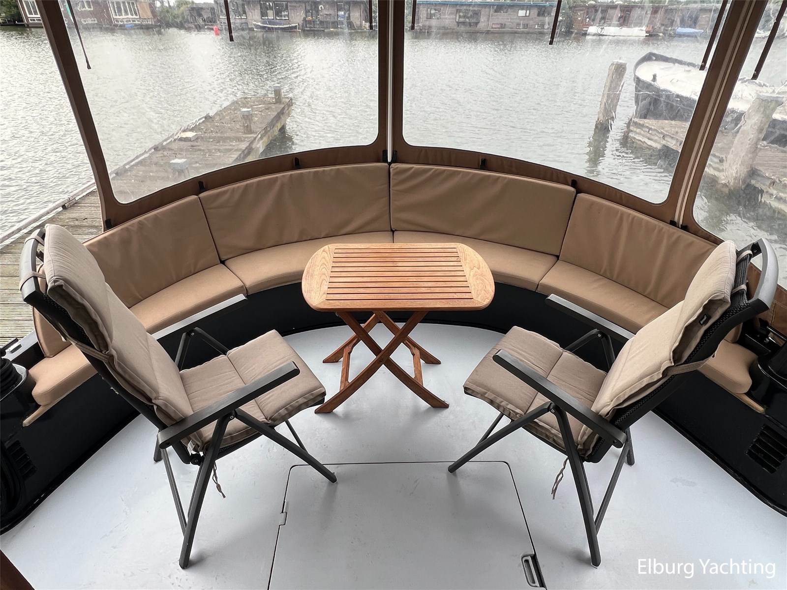 Halfronde dinette beneden + mogelijkheid in stuurhuis