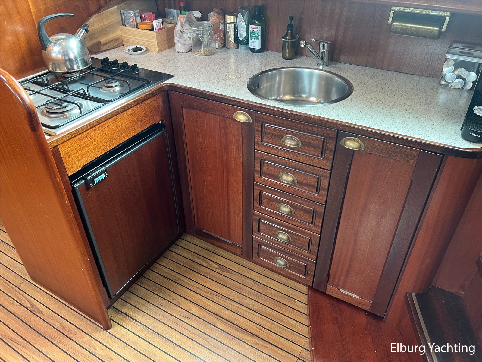 Mahonie met teak-look kunststof vloeren