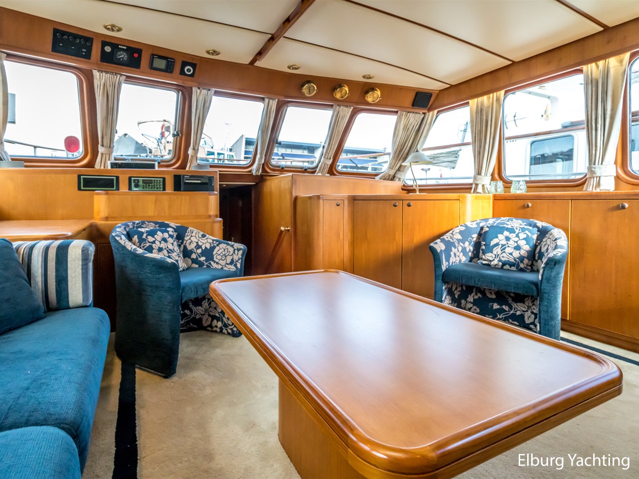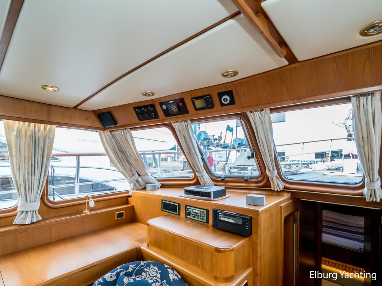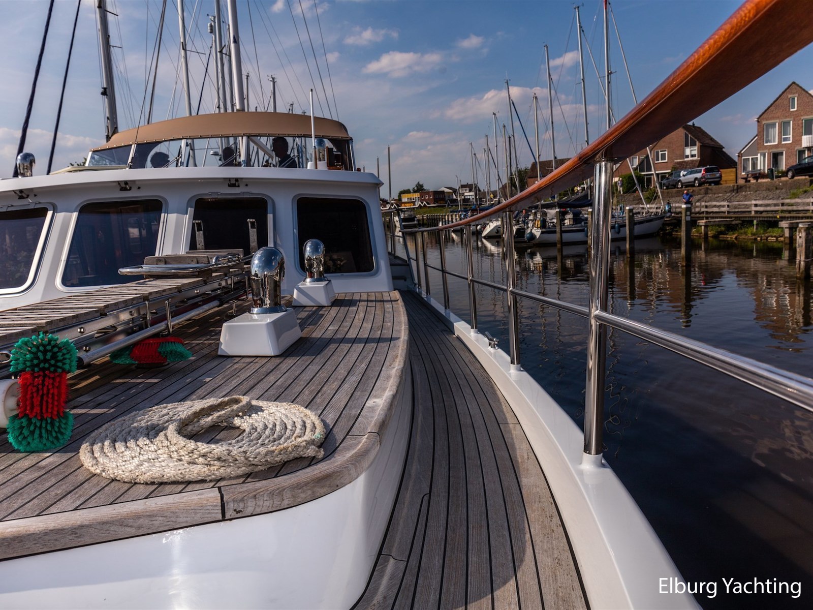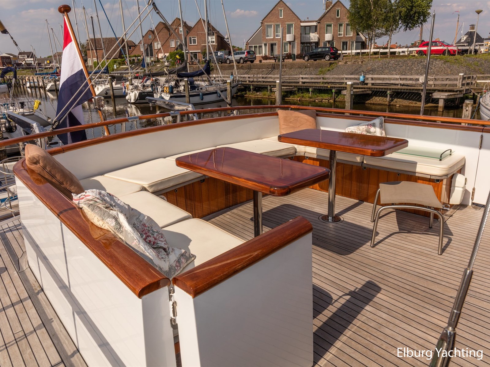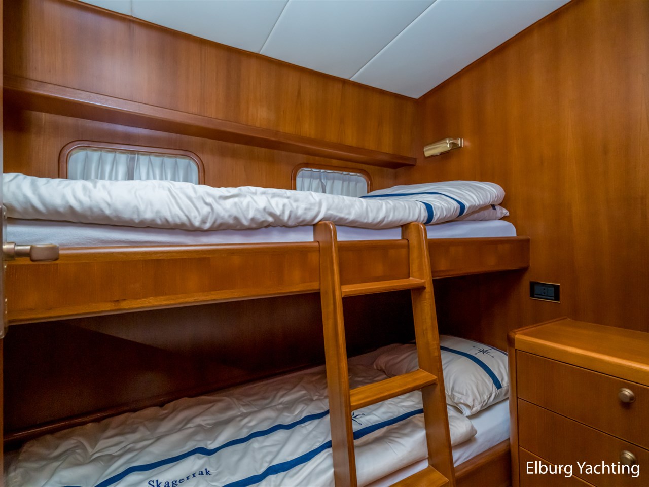 De Doggersbank motorjachten staan bekend om hun robuuste bouwkwaliteit en zeewaardige vaarcapaciteiten, maar bovenal is het een zeer hoogwaardig comfortabel gebouwd motorjacht. Deze Doggersbank 1900 genaamd 'Skagerrak' is gebouwd met een stalen rondspant gebouwde romp voorzien van Koopnautic hydraulische fin stabilisatoren en een lang doorlopende kiel. Op het achterdek is een zeer ruime U-vormig dinette gesitueerd met volledig vrijlopend gangboord rondom. Het achterdek kan worden voorzien van een afneembaar zonnescherm. De volledige stuurstand is overdekt met een eigen tent. Optioneel kan zowel de tent als het windscherm worden afgenomen of geklapt. De hoge reling rondom zorgt voor een veilige loop over het dek. Benedendeks is de centrale salon gesitueerd met vrijwel volledig zicht rondom naar buiten. In de salon is er een stuurmogelijkheid aanwezig. Via enkele traptreden kom je in het achterschip met de kombuis en ruime U-vormige dinette. Verder naar het achterschip bevind zich de eigenaarshut over de volledige breedte van het schip. De eigenaarshut heeft een royaal 2-persoons vrijstaandbed met eigen badkamer en-suite. In het voorship aan SB zijde bevindt zich de 1 x 2-persoons gasten hut met stapelbed. Verder naar voren bevind zich de derde hut met een 1 x 2-persoons vrijstaand bed met eigen badkamer en-suite. Aan bakboord zijde in het voorship bevind zich het dagtoilet en is er extra bergruimte en is de wasmachine te vinden. Vanuit het voorship wordt de machinekamer betreden. De techniek is goed toegankelijk waardoor de dagelijks inspectierondes een plezier worden en er in één oogopslag alle techniek kan worden beoordeeld. De aandrijving wordt verzorgt door een zeer degelijk en recent onderhouden MTU hoofdmotor met 220pk. De generator heeft ook de functie als hulpmotor met eigen schroefas aandrijving. Het schip is zeer geschikt voor langdurig verblijf aan boord of permanente bewoning. Deze Doggersbank 1900 is voorzien van: Geldig CVO+R certificaat geldig t/m 2031, AIS, 2-pers. vaarbank bij stuurstand, Bosch was- en droogmachine, Bosch vaatwasser, hydraulisch klapbare mast. Groot onderhoud uitgevoerd op de hoofdmotor en generator in 2024. De romp is in 2025 volledig professioneel gespoten in twee componenten lak de kleur 'Seagreen'. Momenteel is dit schip op afspraak in Nederland te bezichtigen. Wij maken graag met u een afspraak voor deze prachtige Doggersbank 1900 'Skagerrak'. Voor vragen en/of het maken van een afspraak bent u 7 dagen per week van harte welkom bij Elburg Yachting.