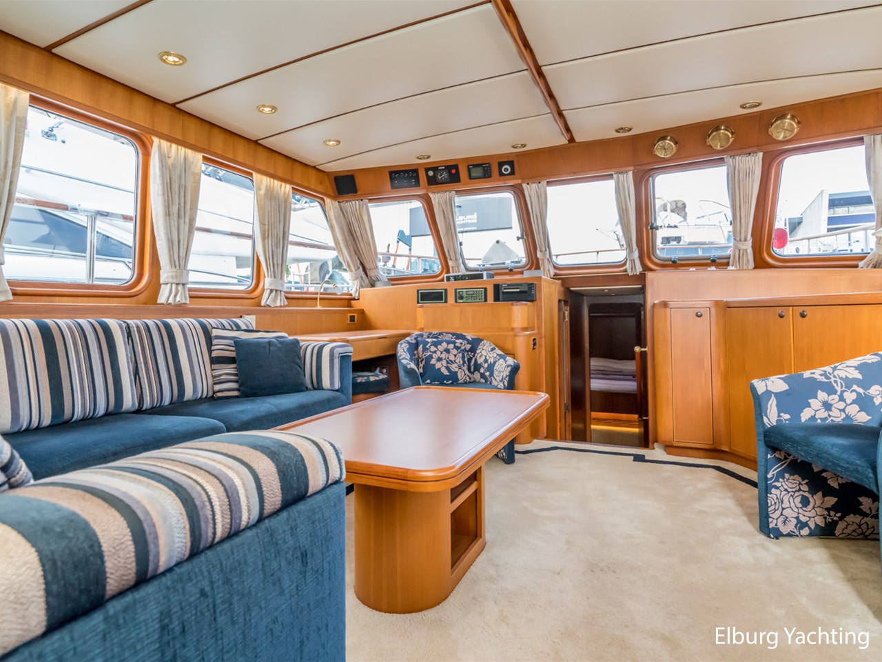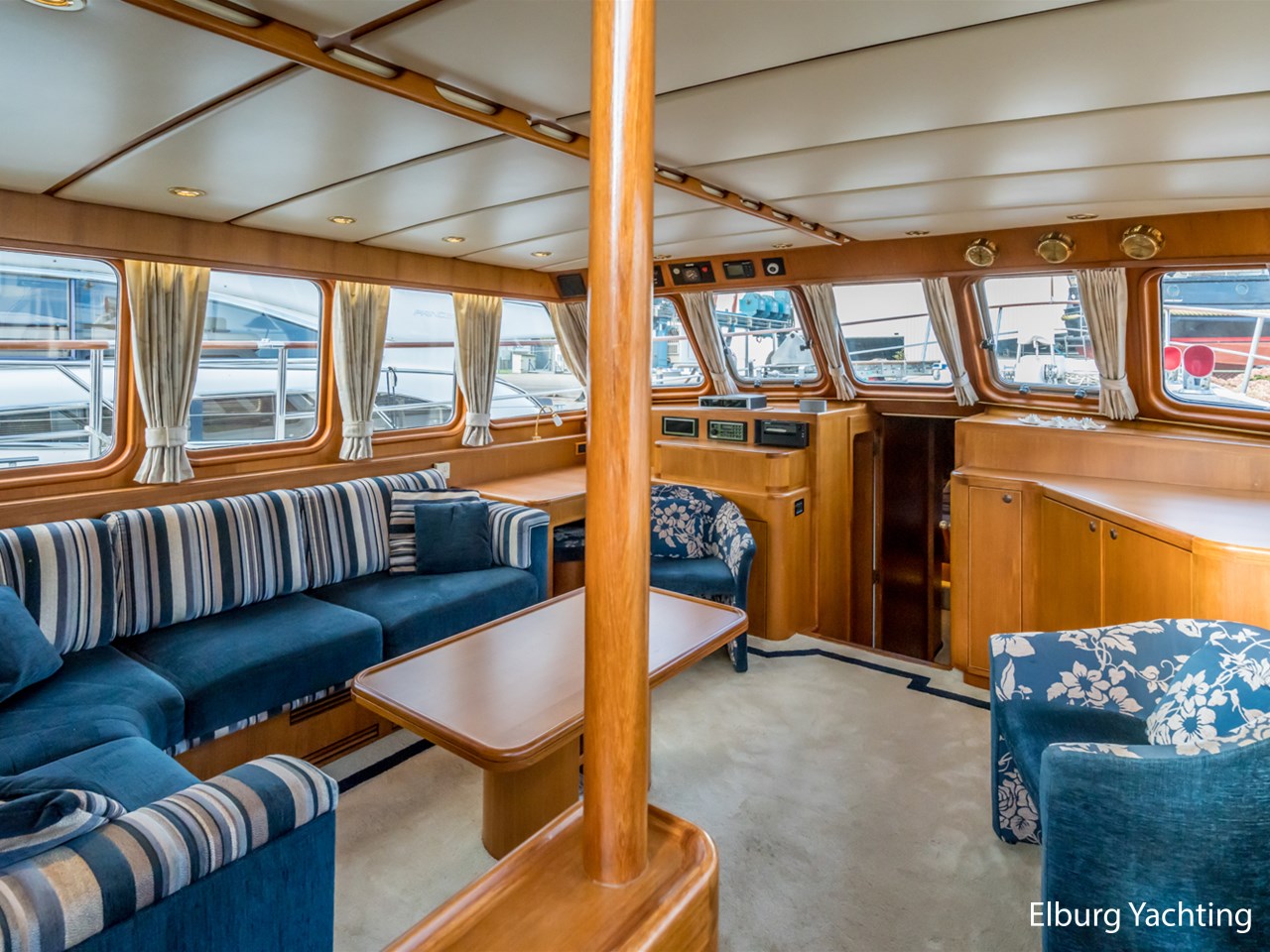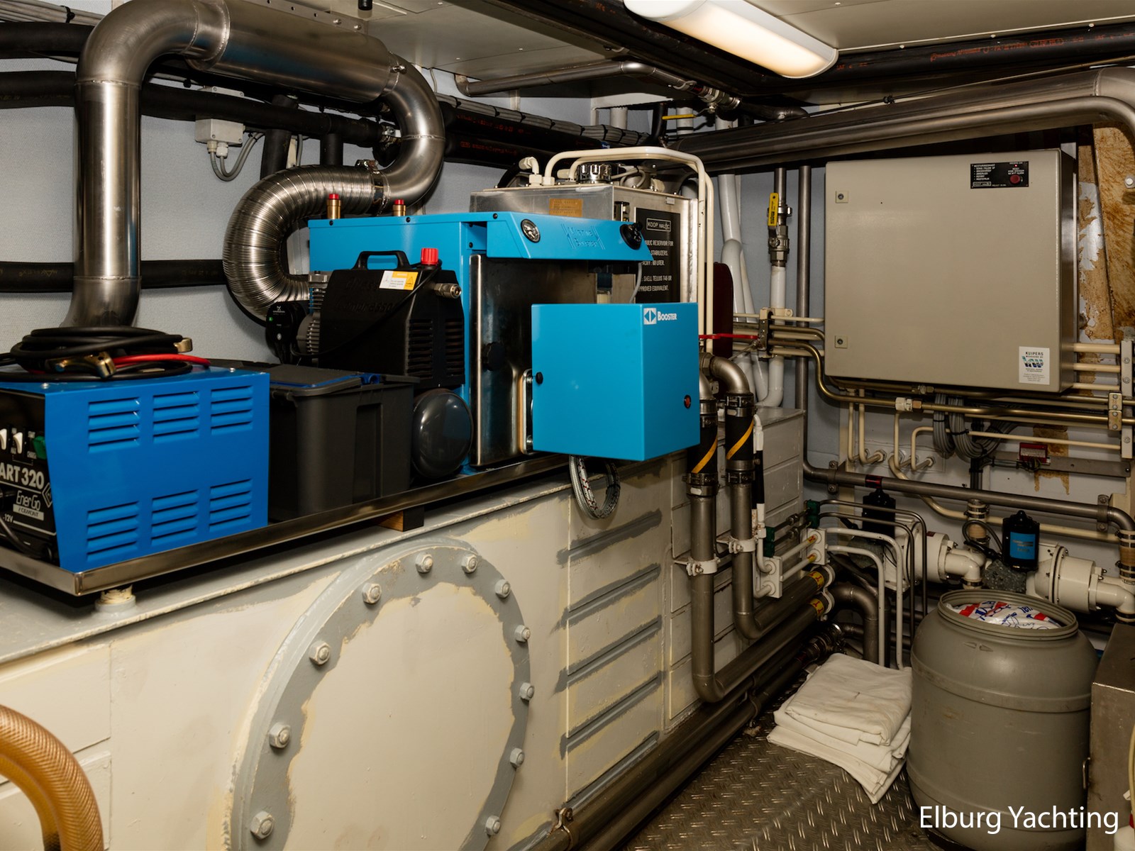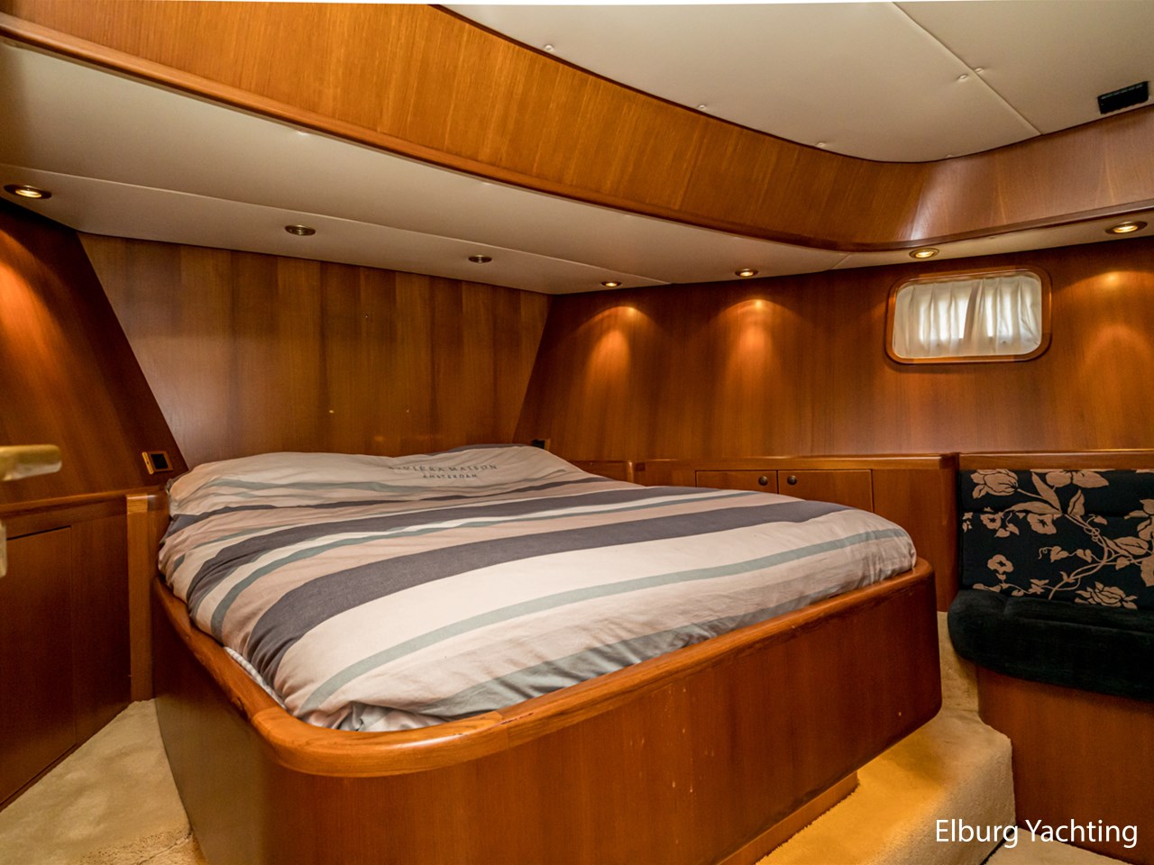 De Doggersbank motorjachten staan bekend om hun robuuste bouwkwaliteit en zeewaardige vaarcapaciteiten, maar bovenal is het een zeer hoogwaardig comfortabel gebouwd motorjacht. Deze Doggersbank 1900 genaamd 'Skagerrak' is gebouwd met een stalen rondspant gebouwde romp voorzien van Koopnautic hydraulische fin stabilisatoren en een lang doorlopende kiel. Op het achterdek is een zeer ruime U-vormig dinette gesitueerd met volledig vrijlopend gangboord rondom. Het achterdek kan worden voorzien van een afneembaar zonnescherm. De volledige stuurstand is overdekt met een eigen tent. Optioneel kan zowel de tent als het windscherm worden afgenomen of geklapt. De hoge reling rondom zorgt voor een veilige loop over het dek. Benedendeks is de centrale salon gesitueerd met vrijwel volledig zicht rondom naar buiten. In de salon is er een stuurmogelijkheid aanwezig. Via enkele traptreden kom je in het achterschip met de kombuis en ruime U-vormige dinette. Verder naar het achterschip bevind zich de eigenaarshut over de volledige breedte van het schip. De eigenaarshut heeft een royaal 2-persoons vrijstaandbed met eigen badkamer en-suite. In het voorship aan SB zijde bevindt zich de 1 x 2-persoons gasten hut met stapelbed. Verder naar voren bevind zich de derde hut met een 1 x 2-persoons vrijstaand bed met eigen badkamer en-suite. Aan bakboord zijde in het voorship bevind zich het dagtoilet en is er extra bergruimte en is de wasmachine te vinden. Vanuit het voorship wordt de machinekamer betreden. De techniek is goed toegankelijk waardoor de dagelijks inspectierondes een plezier worden en er in één oogopslag alle techniek kan worden beoordeeld. De aandrijving wordt verzorgt door een zeer degelijk en recent onderhouden MTU hoofdmotor met 220pk. De generator heeft ook de functie als hulpmotor met eigen schroefas aandrijving. Het schip is zeer geschikt voor langdurig verblijf aan boord of permanente bewoning. Deze Doggersbank 1900 is voorzien van: Geldig CVO+R certificaat geldig t/m 2031, AIS, 2-pers. vaarbank bij stuurstand, Bosch was- en droogmachine, Bosch vaatwasser, hydraulisch klapbare mast. Groot onderhoud uitgevoerd op de hoofdmotor en generator in 2024. De romp is in 2025 volledig professioneel gespoten in twee componenten lak de kleur 'Seagreen'. Momenteel is dit schip op afspraak in Nederland te bezichtigen. Wij maken graag met u een afspraak voor deze prachtige Doggersbank 1900 'Skagerrak'. Voor vragen en/of het maken van een afspraak bent u 7 dagen per week van harte welkom bij Elburg Yachting.