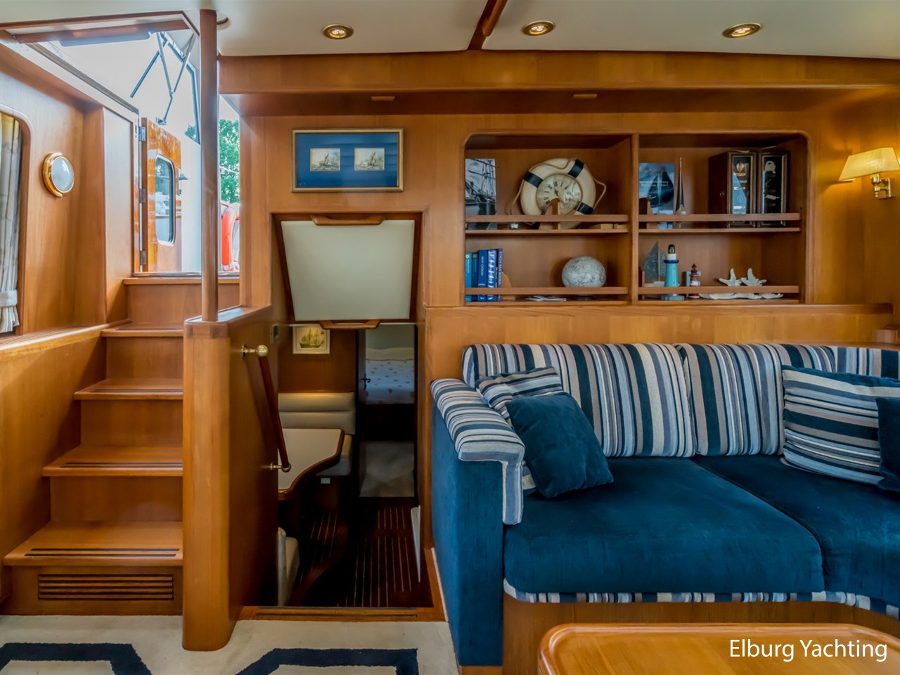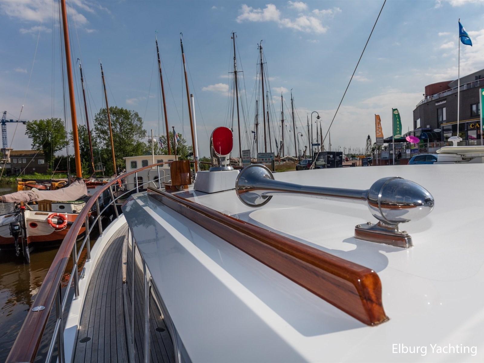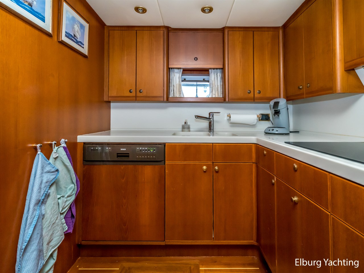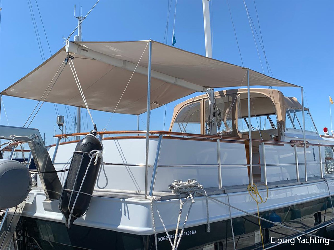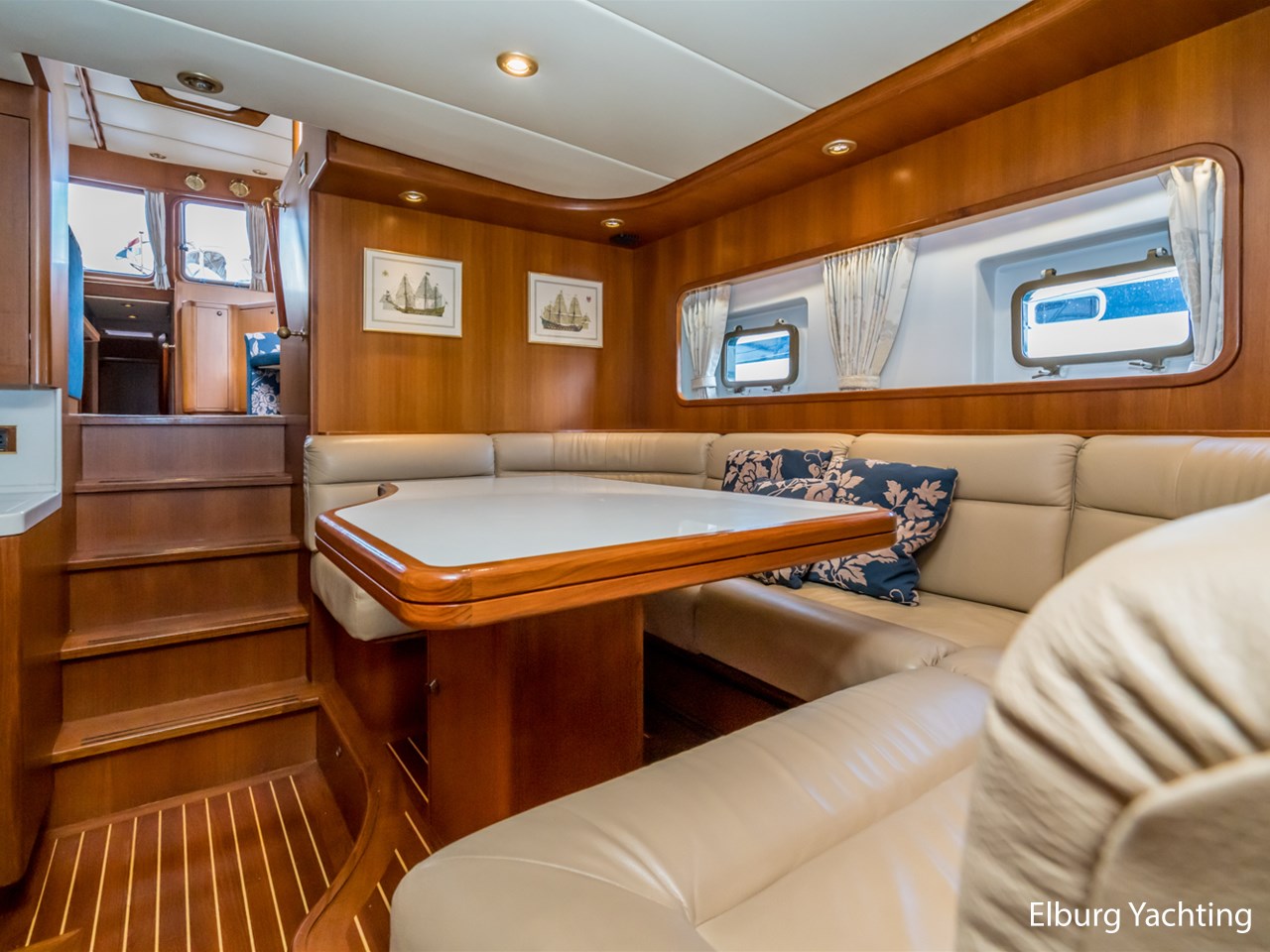 De Doggersbank motorjachten staan bekend om hun robuuste bouwkwaliteit en zeewaardige vaarcapaciteiten, maar bovenal is het een zeer hoogwaardig comfortabel gebouwd motorjacht. Deze Doggersbank 1900 genaamd 'Skagerrak' is gebouwd met een stalen rondspant gebouwde romp voorzien van Koopnautic hydraulische fin stabilisatoren en een lang doorlopende kiel. Op het achterdek is een zeer ruime U-vormig dinette gesitueerd met volledig vrijlopend gangboord rondom. Het achterdek kan worden voorzien van een afneembaar zonnescherm. De volledige stuurstand is overdekt met een eigen tent. Optioneel kan zowel de tent als het windscherm worden afgenomen of geklapt. De hoge reling rondom zorgt voor een veilige loop over het dek. Benedendeks is de centrale salon gesitueerd met vrijwel volledig zicht rondom naar buiten. In de salon is er een stuurmogelijkheid aanwezig. Via enkele traptreden kom je in het achterschip met de kombuis en ruime U-vormige dinette. Verder naar het achterschip bevind zich de eigenaarshut over de volledige breedte van het schip. De eigenaarshut heeft een royaal 2-persoons vrijstaandbed met eigen badkamer en-suite. In het voorship aan SB zijde bevindt zich de 1 x 2-persoons gasten hut met stapelbed. Verder naar voren bevind zich de derde hut met een 1 x 2-persoons vrijstaand bed met eigen badkamer en-suite. Aan bakboord zijde in het voorship bevind zich het dagtoilet en is er extra bergruimte en is de wasmachine te vinden. Vanuit het voorship wordt de machinekamer betreden. De techniek is goed toegankelijk waardoor de dagelijks inspectierondes een plezier worden en er in één oogopslag alle techniek kan worden beoordeeld. De aandrijving wordt verzorgt door een zeer degelijk en recent onderhouden MTU hoofdmotor met 220pk. De generator heeft ook de functie als hulpmotor met eigen schroefas aandrijving. Het schip is zeer geschikt voor langdurig verblijf aan boord of permanente bewoning. Deze Doggersbank 1900 is voorzien van: Geldig CVO+R certificaat geldig t/m 2031, AIS, 2-pers. vaarbank bij stuurstand, Bosch was- en droogmachine, Bosch vaatwasser, hydraulisch klapbare mast. Groot onderhoud uitgevoerd op de hoofdmotor en generator in 2024. De romp is in 2025 volledig professioneel gespoten in twee componenten lak de kleur 'Seagreen'. Momenteel is dit schip op afspraak in Nederland te bezichtigen. Wij maken graag met u een afspraak voor deze prachtige Doggersbank 1900 'Skagerrak'. Voor vragen en/of het maken van een afspraak bent u 7 dagen per week van harte welkom bij Elburg Yachting.