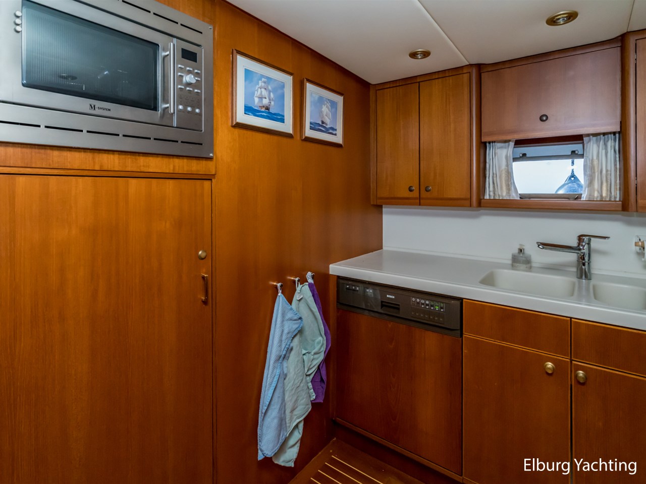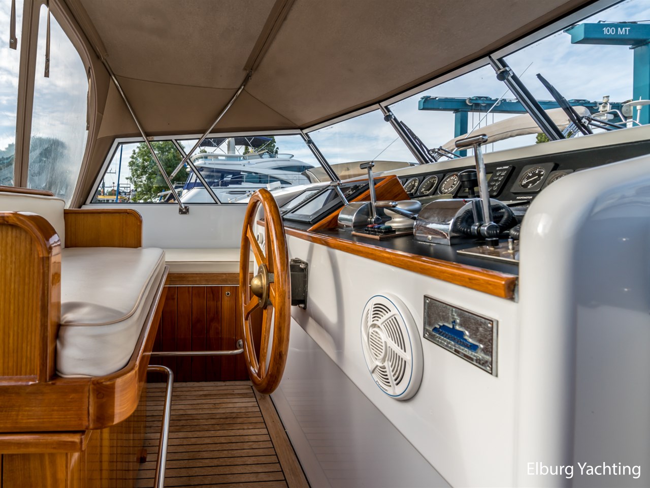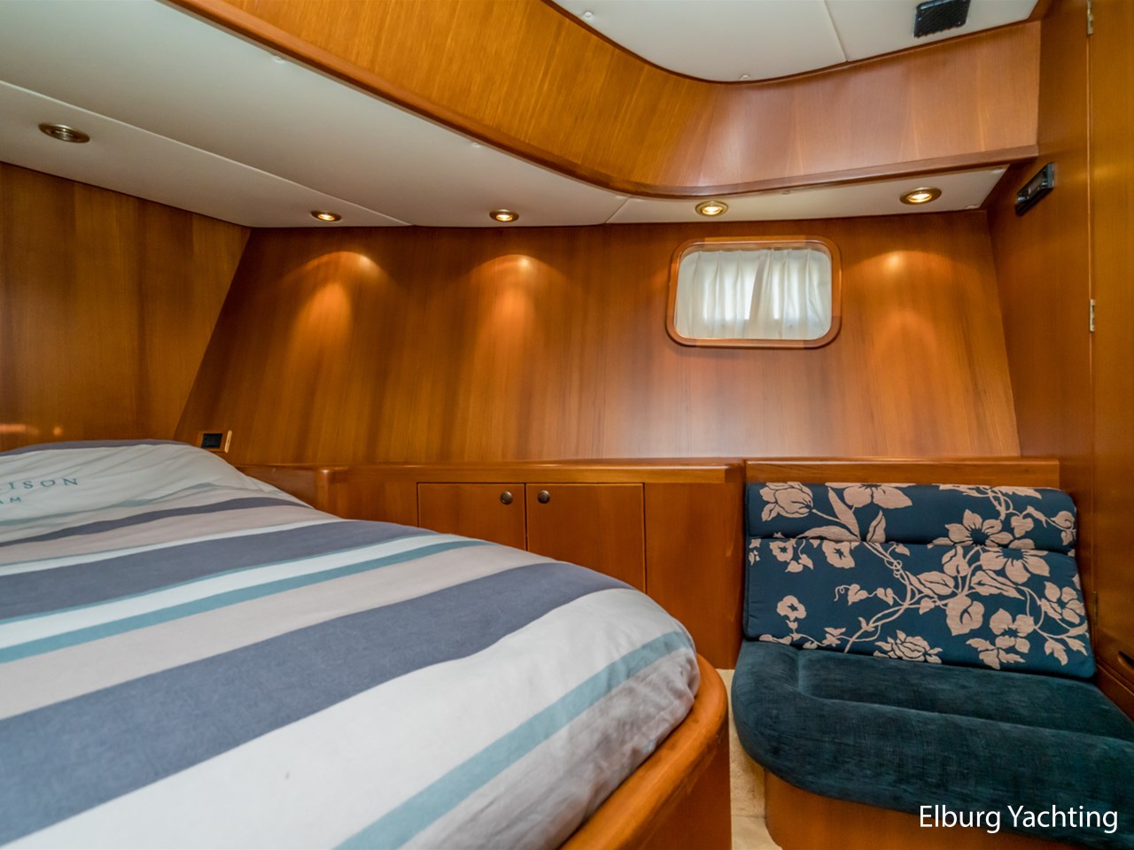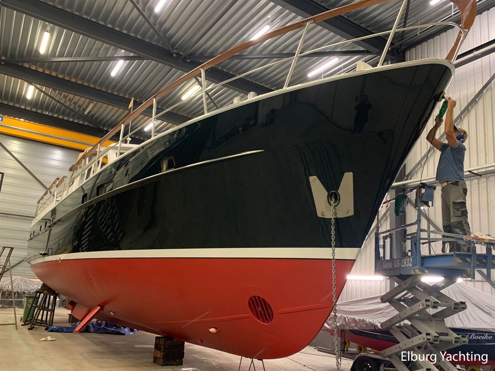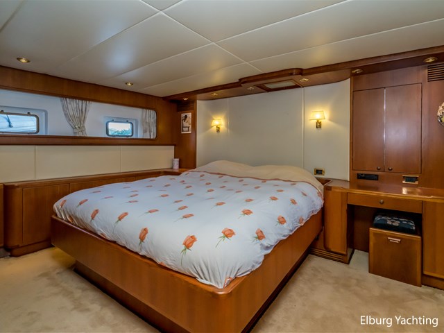 De Doggersbank motorjachten staan bekend om hun robuuste bouwkwaliteit en zeewaardige vaarcapaciteiten, maar bovenal is het een zeer hoogwaardig comfortabel gebouwd motorjacht. Deze Doggersbank 1900 genaamd 'Skagerrak' is gebouwd met een stalen rondspant gebouwde romp voorzien van Koopnautic hydraulische fin stabilisatoren en een lang doorlopende kiel. Op het achterdek is een zeer ruime U-vormig dinette gesitueerd met volledig vrijlopend gangboord rondom. Het achterdek kan worden voorzien van een afneembaar zonnescherm. De volledige stuurstand is overdekt met een eigen tent. Optioneel kan zowel de tent als het windscherm worden afgenomen of geklapt. De hoge reling rondom zorgt voor een veilige loop over het dek. Benedendeks is de centrale salon gesitueerd met vrijwel volledig zicht rondom naar buiten. In de salon is er een stuurmogelijkheid aanwezig. Via enkele traptreden kom je in het achterschip met de kombuis en ruime U-vormige dinette. Verder naar het achterschip bevind zich de eigenaarshut over de volledige breedte van het schip. De eigenaarshut heeft een royaal 2-persoons vrijstaandbed met eigen badkamer en-suite. In het voorship aan SB zijde bevindt zich de 1 x 2-persoons gasten hut met stapelbed. Verder naar voren bevind zich de derde hut met een 1 x 2-persoons vrijstaand bed met eigen badkamer en-suite. Aan bakboord zijde in het voorship bevind zich het dagtoilet en is er extra bergruimte en is de wasmachine te vinden. Vanuit het voorship wordt de machinekamer betreden. De techniek is goed toegankelijk waardoor de dagelijks inspectierondes een plezier worden en er in één oogopslag alle techniek kan worden beoordeeld. De aandrijving wordt verzorgt door een zeer degelijk en recent onderhouden MTU hoofdmotor met 220pk. De generator heeft ook de functie als hulpmotor met eigen schroefas aandrijving. Het schip is zeer geschikt voor langdurig verblijf aan boord of permanente bewoning. Deze Doggersbank 1900 is voorzien van: Geldig CVO+R certificaat geldig t/m 2031, AIS, 2-pers. vaarbank bij stuurstand, Bosch was- en droogmachine, Bosch vaatwasser, hydraulisch klapbare mast. Groot onderhoud uitgevoerd op de hoofdmotor en generator in 2024. De romp is in 2025 volledig professioneel gespoten in twee componenten lak de kleur 'Seagreen'. Momenteel is dit schip op afspraak in Nederland te bezichtigen. Wij maken graag met u een afspraak voor deze prachtige Doggersbank 1900 'Skagerrak'. Voor vragen en/of het maken van een afspraak bent u 7 dagen per week van harte welkom bij Elburg Yachting.