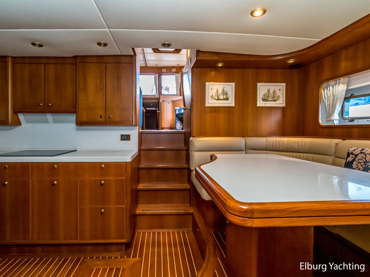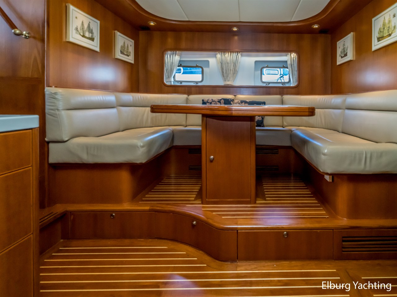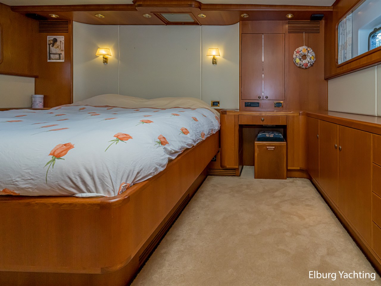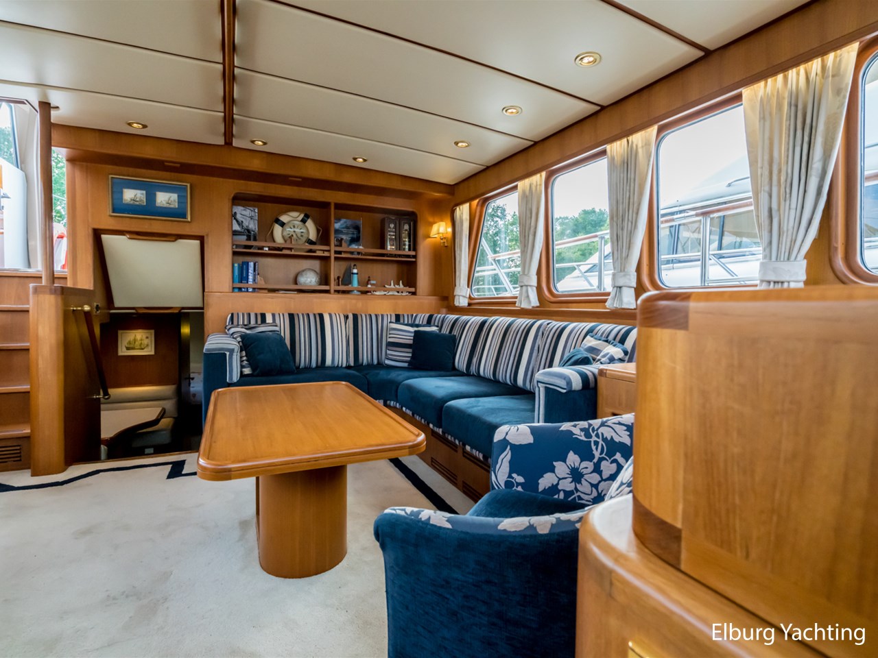 De Doggersbank motorjachten staan bekend om hun robuuste bouwkwaliteit en zeewaardige vaarcapaciteiten, maar bovenal is het een zeer hoogwaardig comfortabel gebouwd motorjacht. Deze Doggersbank 1900 genaamd 'Skagerrak' is gebouwd met een stalen rondspant gebouwde romp voorzien van Koopnautic hydraulische fin stabilisatoren en een lang doorlopende kiel. Op het achterdek is een zeer ruime U-vormig dinette gesitueerd met volledig vrijlopend gangboord rondom. Het achterdek kan worden voorzien van een afneembaar zonnescherm. De volledige stuurstand is overdekt met een eigen tent. Optioneel kan zowel de tent als het windscherm worden afgenomen of geklapt. De hoge reling rondom zorgt voor een veilige loop over het dek. Benedendeks is de centrale salon gesitueerd met vrijwel volledig zicht rondom naar buiten. In de salon is er een stuurmogelijkheid aanwezig. Via enkele traptreden kom je in het achterschip met de kombuis en ruime U-vormige dinette. Verder naar het achterschip bevind zich de eigenaarshut over de volledige breedte van het schip. De eigenaarshut heeft een royaal 2-persoons vrijstaandbed met eigen badkamer en-suite. In het voorship aan SB zijde bevindt zich de 1 x 2-persoons gasten hut met stapelbed. Verder naar voren bevind zich de derde hut met een 1 x 2-persoons vrijstaand bed met eigen badkamer en-suite. Aan bakboord zijde in het voorship bevind zich het dagtoilet en is er extra bergruimte en is de wasmachine te vinden. Vanuit het voorship wordt de machinekamer betreden. De techniek is goed toegankelijk waardoor de dagelijks inspectierondes een plezier worden en er in één oogopslag alle techniek kan worden beoordeeld. De aandrijving wordt verzorgt door een zeer degelijk en recent onderhouden MTU hoofdmotor met 220pk. De generator heeft ook de functie als hulpmotor met eigen schroefas aandrijving. Het schip is zeer geschikt voor langdurig verblijf aan boord of permanente bewoning. Deze Doggersbank 1900 is voorzien van: Geldig CVO+R certificaat geldig t/m 2031, AIS, 2-pers. vaarbank bij stuurstand, Bosch was- en droogmachine, Bosch vaatwasser, hydraulisch klapbare mast. Groot onderhoud uitgevoerd op de hoofdmotor en generator in 2024. De romp is in 2025 volledig professioneel gespoten in twee componenten lak de kleur 'Seagreen'. Momenteel is dit schip op afspraak in Nederland te bezichtigen. Wij maken graag met u een afspraak voor deze prachtige Doggersbank 1900 'Skagerrak'. Voor vragen en/of het maken van een afspraak bent u 7 dagen per week van harte welkom bij Elburg Yachting.
