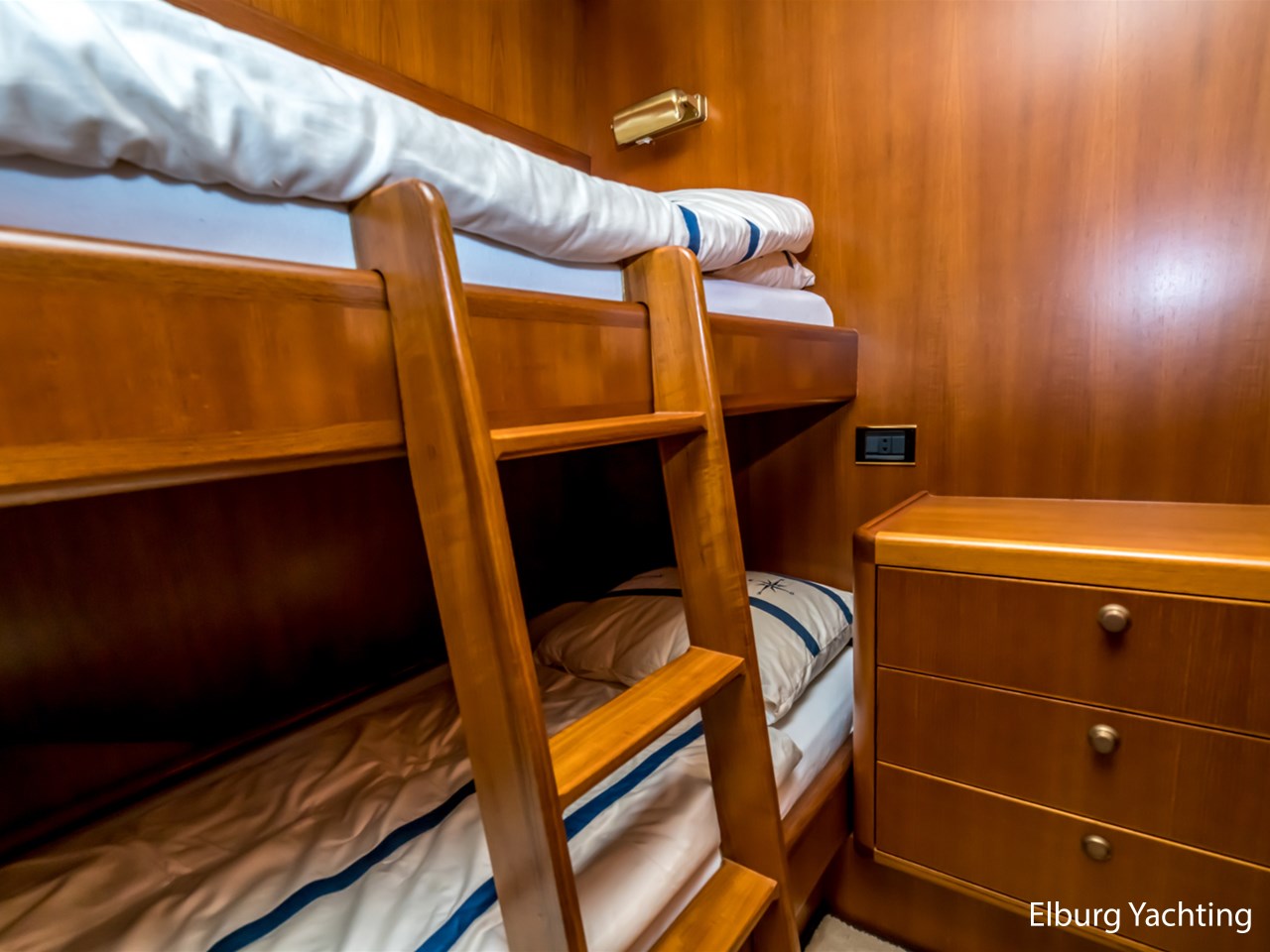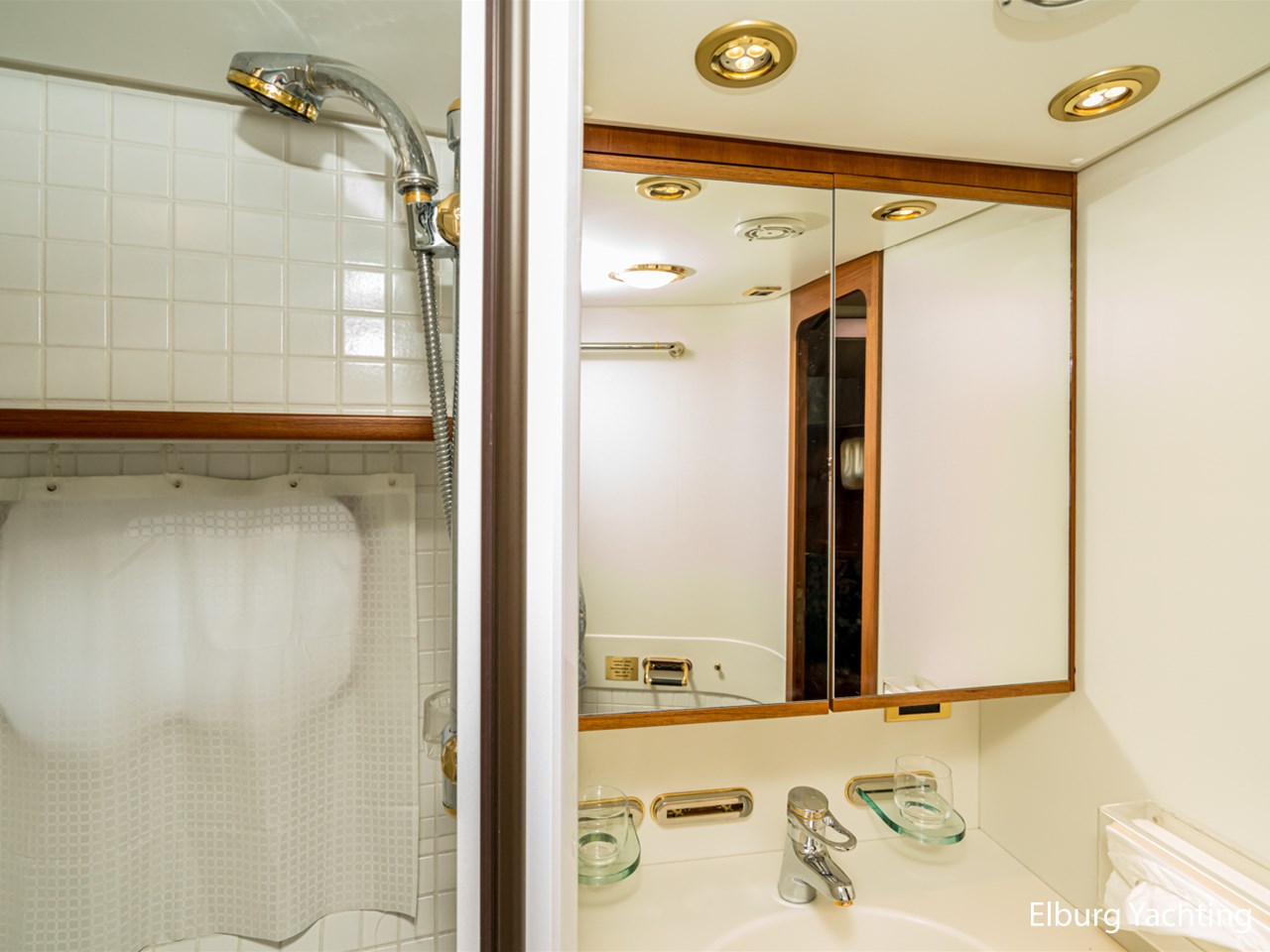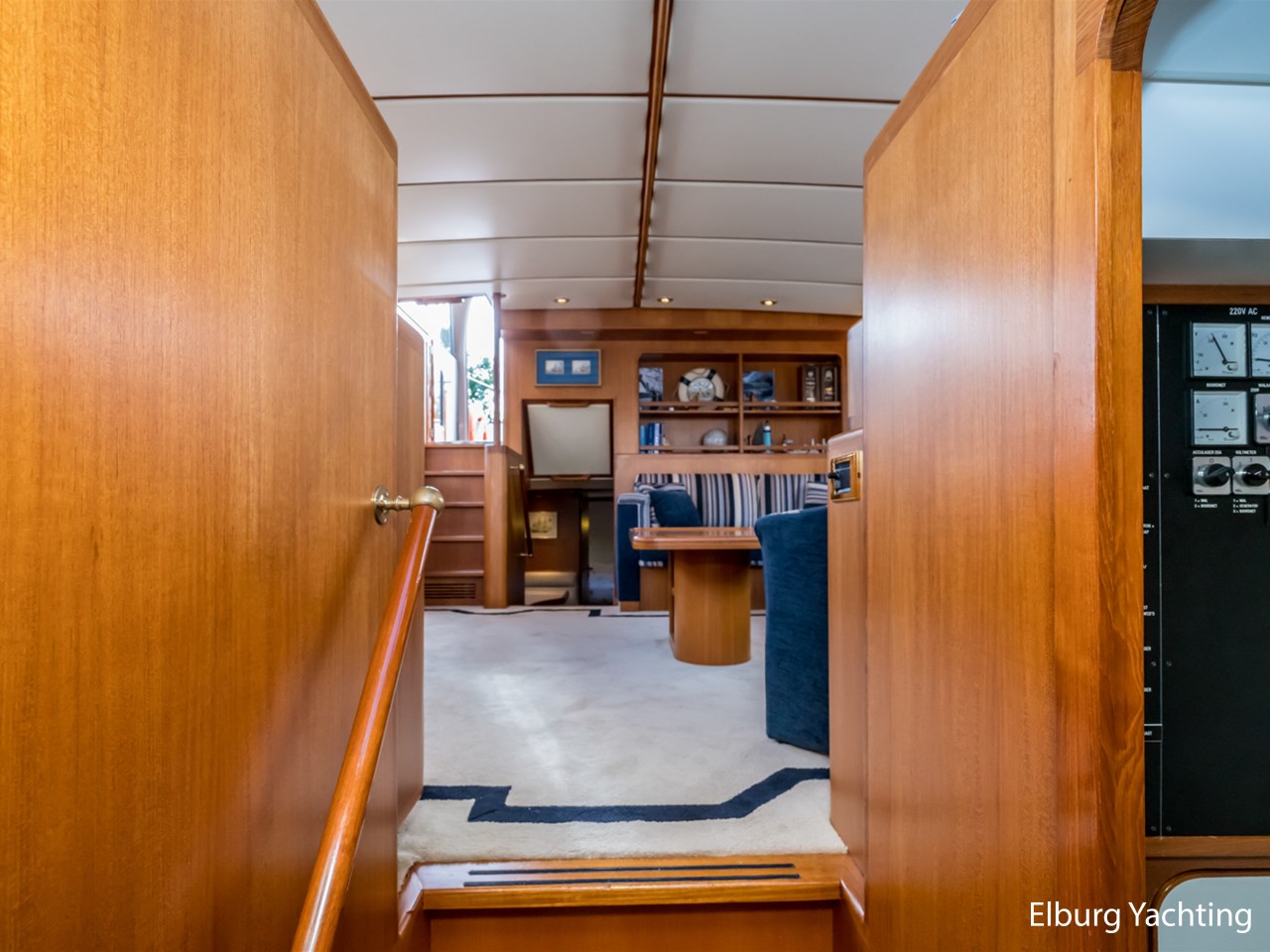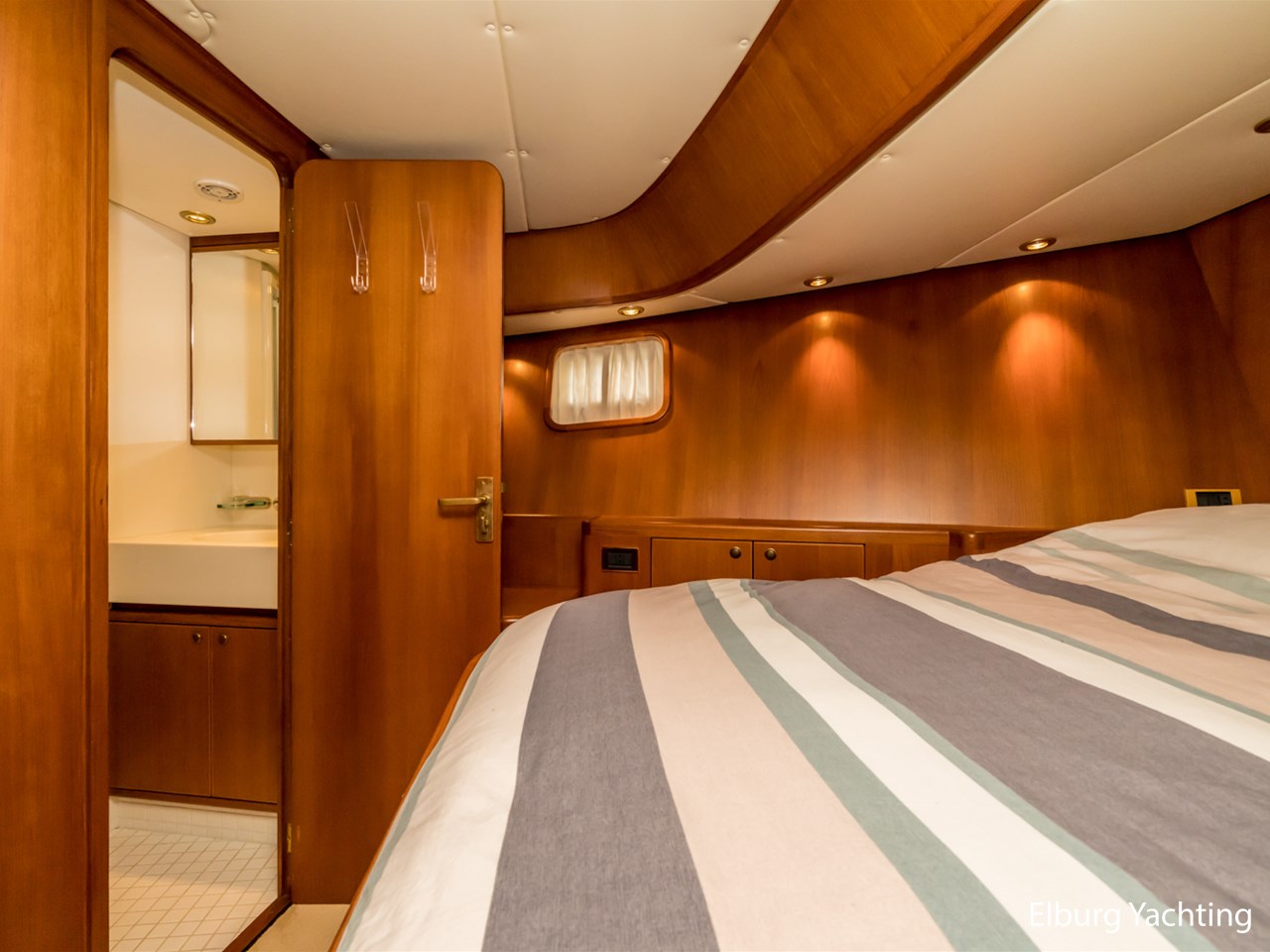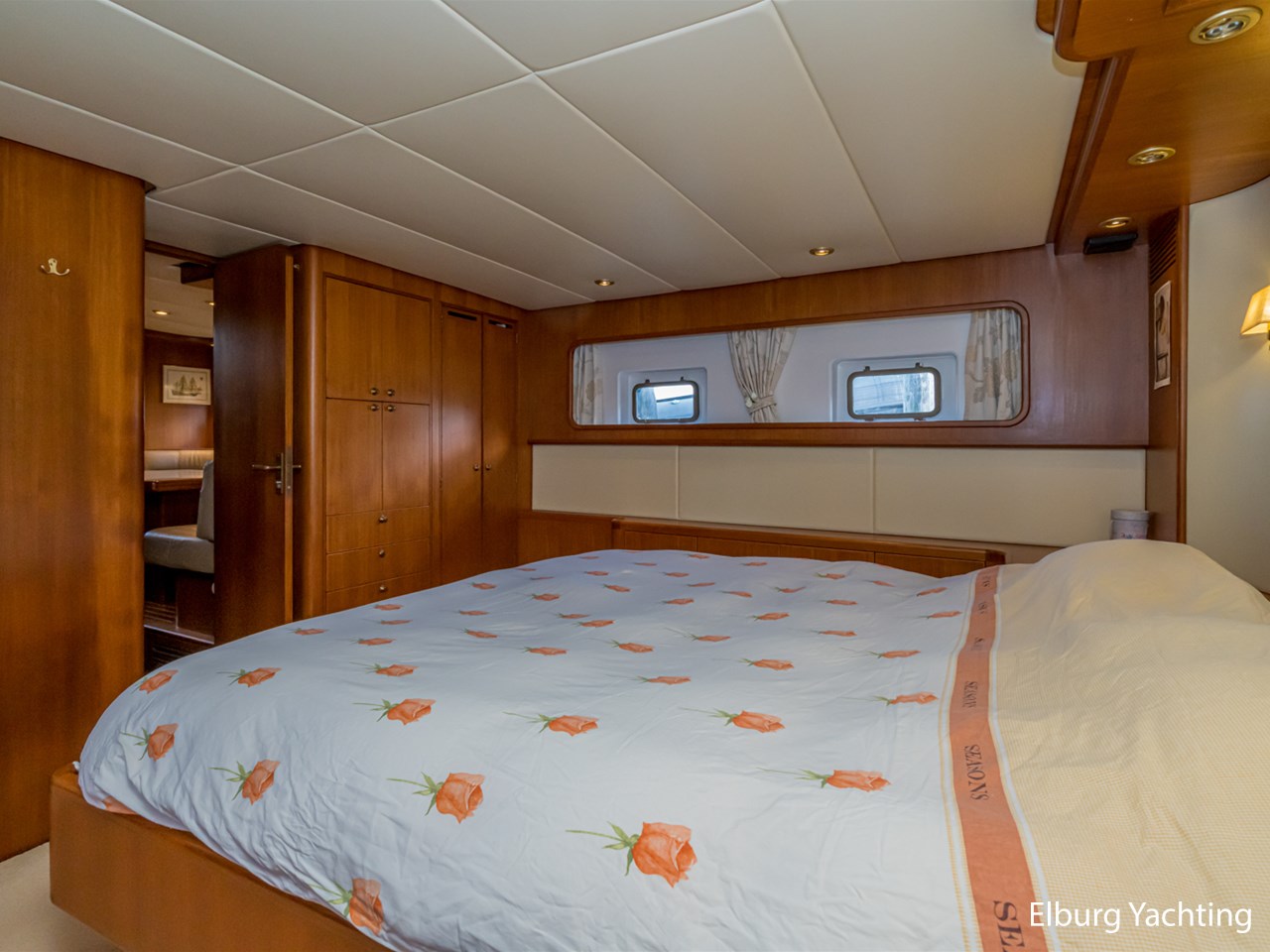 De Doggersbank motorjachten staan bekend om hun robuuste bouwkwaliteit en zeewaardige vaarcapaciteiten, maar bovenal is het een zeer hoogwaardig comfortabel gebouwd motorjacht. Deze Doggersbank 1900 genaamd 'Skagerrak' is gebouwd met een stalen rondspant gebouwde romp voorzien van Koopnautic hydraulische fin stabilisatoren en een lang doorlopende kiel. Op het achterdek is een zeer ruime U-vormig dinette gesitueerd met volledig vrijlopend gangboord rondom. Het achterdek kan worden voorzien van een afneembaar zonnescherm. De volledige stuurstand is overdekt met een eigen tent. Optioneel kan zowel de tent als het windscherm worden afgenomen of geklapt. De hoge reling rondom zorgt voor een veilige loop over het dek. Benedendeks is de centrale salon gesitueerd met vrijwel volledig zicht rondom naar buiten. In de salon is er een stuurmogelijkheid aanwezig. Via enkele traptreden kom je in het achterschip met de kombuis en ruime U-vormige dinette. Verder naar het achterschip bevind zich de eigenaarshut over de volledige breedte van het schip. De eigenaarshut heeft een royaal 2-persoons vrijstaandbed met eigen badkamer en-suite. In het voorship aan SB zijde bevindt zich de 1 x 2-persoons gasten hut met stapelbed. Verder naar voren bevind zich de derde hut met een 1 x 2-persoons vrijstaand bed met eigen badkamer en-suite. Aan bakboord zijde in het voorship bevind zich het dagtoilet en is er extra bergruimte en is de wasmachine te vinden. Vanuit het voorship wordt de machinekamer betreden. De techniek is goed toegankelijk waardoor de dagelijks inspectierondes een plezier worden en er in één oogopslag alle techniek kan worden beoordeeld. De aandrijving wordt verzorgt door een zeer degelijk en recent onderhouden MTU hoofdmotor met 220pk. De generator heeft ook de functie als hulpmotor met eigen schroefas aandrijving. Het schip is zeer geschikt voor langdurig verblijf aan boord of permanente bewoning. Deze Doggersbank 1900 is voorzien van: Geldig CVO+R certificaat geldig t/m 2031, AIS, 2-pers. vaarbank bij stuurstand, Bosch was- en droogmachine, Bosch vaatwasser, hydraulisch klapbare mast. Groot onderhoud uitgevoerd op de hoofdmotor en generator in 2024. De romp is in 2025 volledig professioneel gespoten in twee componenten lak de kleur 'Seagreen'. Momenteel is dit schip op afspraak in Nederland te bezichtigen. Wij maken graag met u een afspraak voor deze prachtige Doggersbank 1900 'Skagerrak'. Voor vragen en/of het maken van een afspraak bent u 7 dagen per week van harte welkom bij Elburg Yachting.