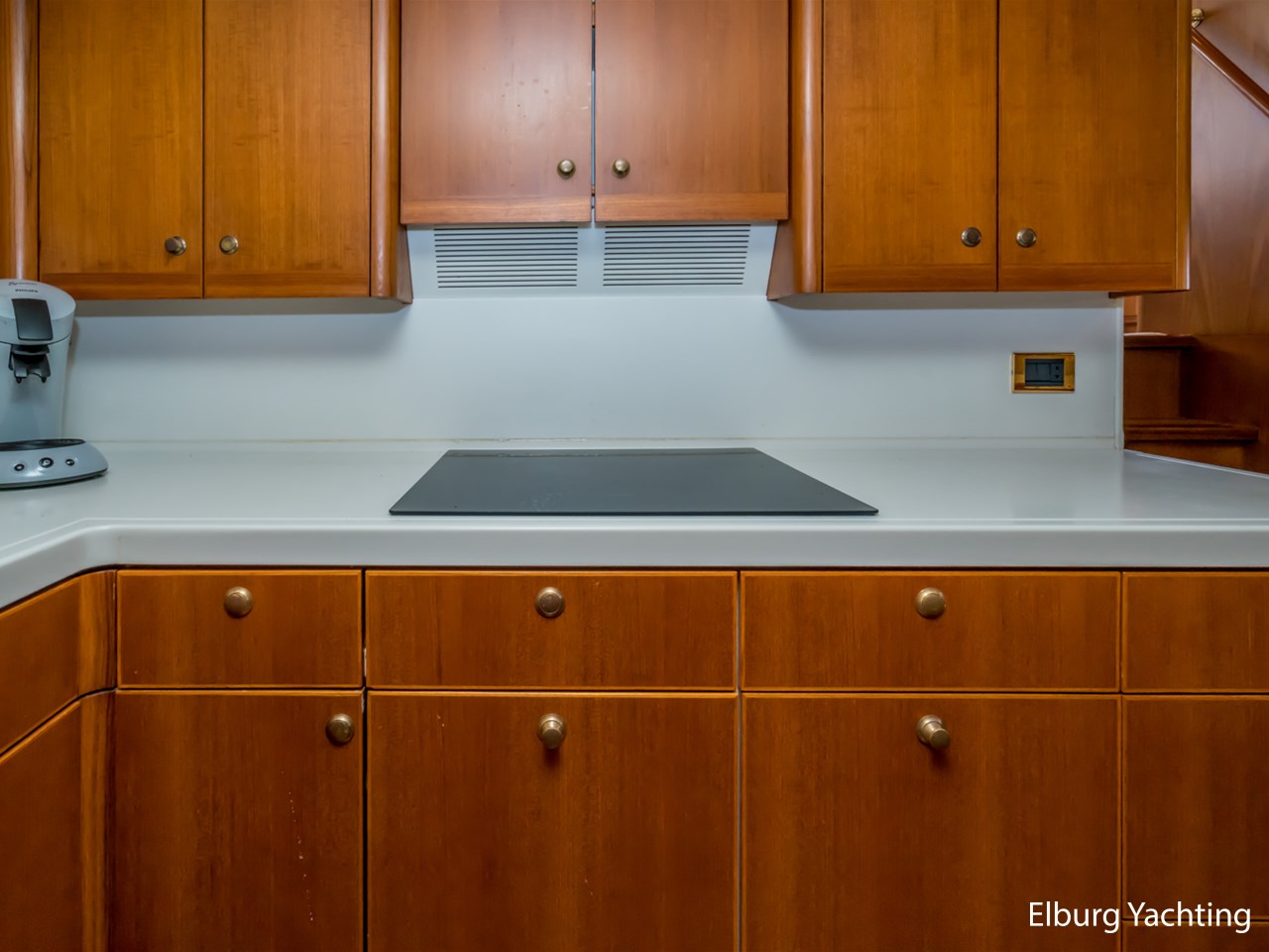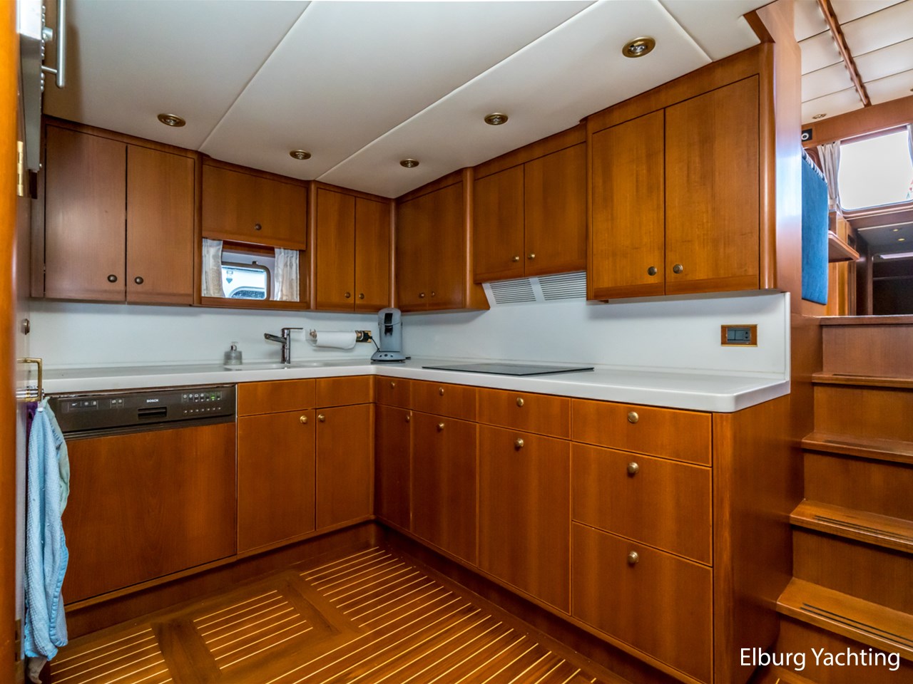 Hoogwaardig teak scheepsinterieur + teakvloer in de keuken