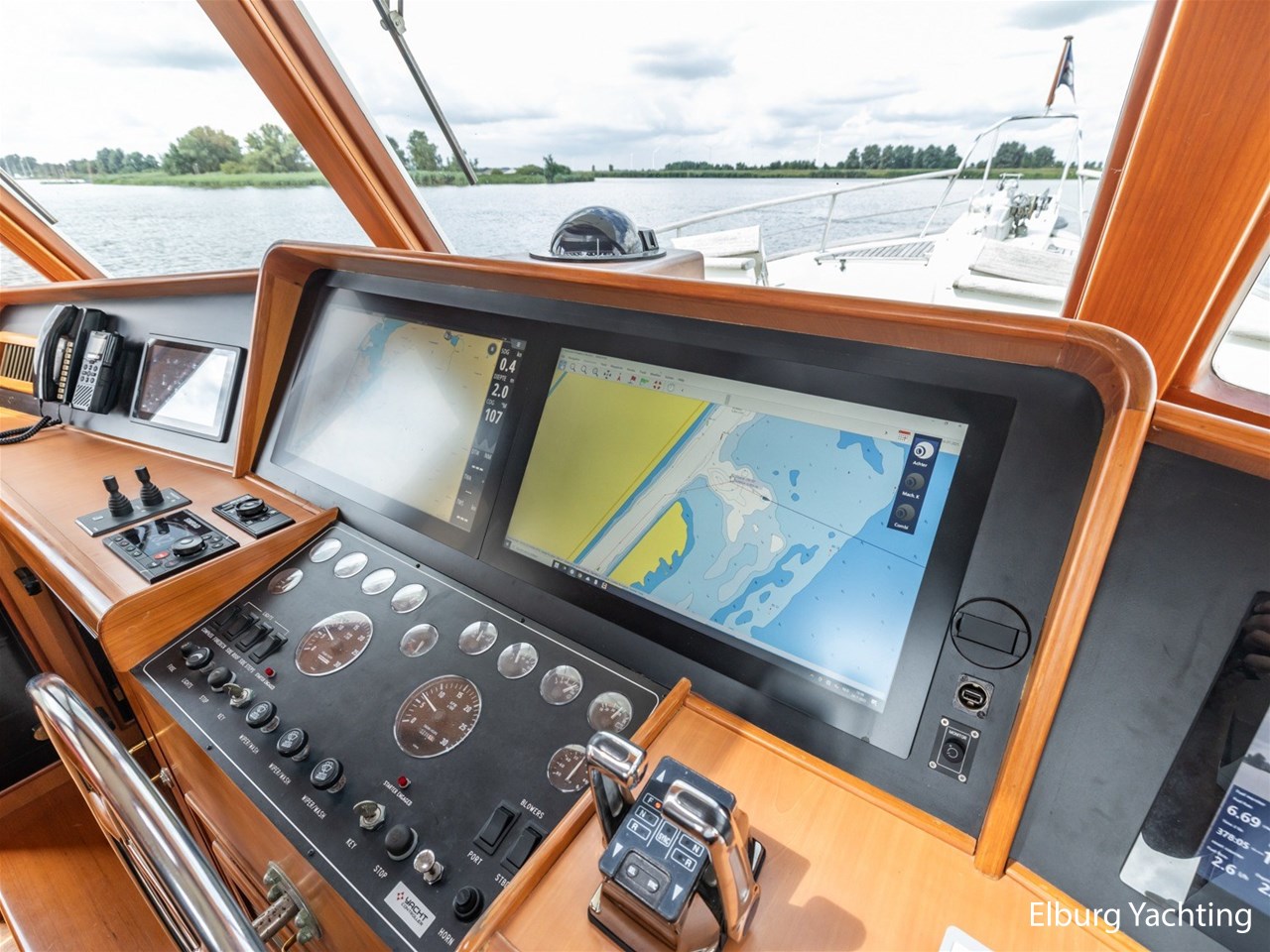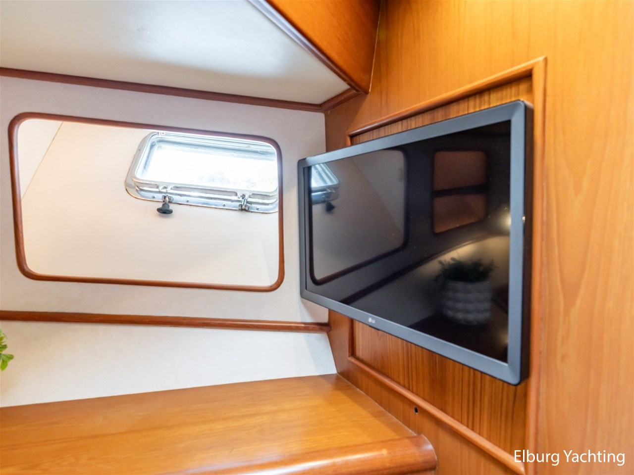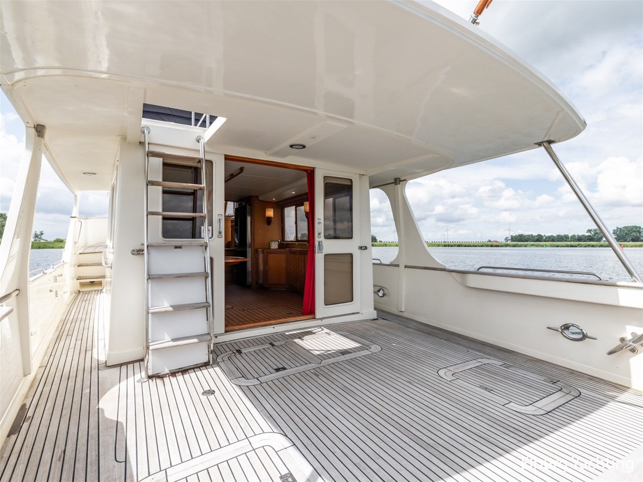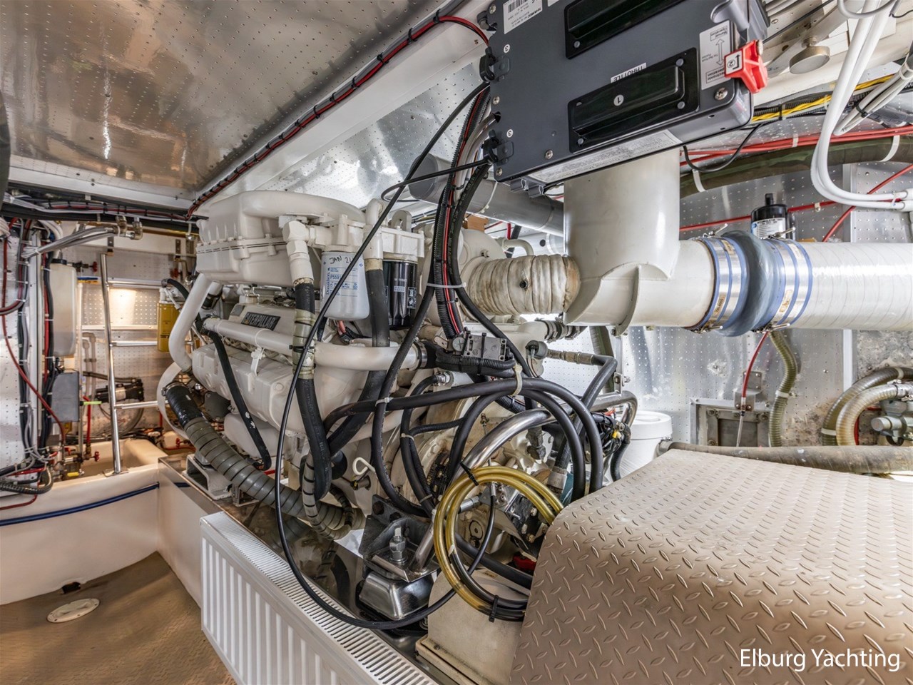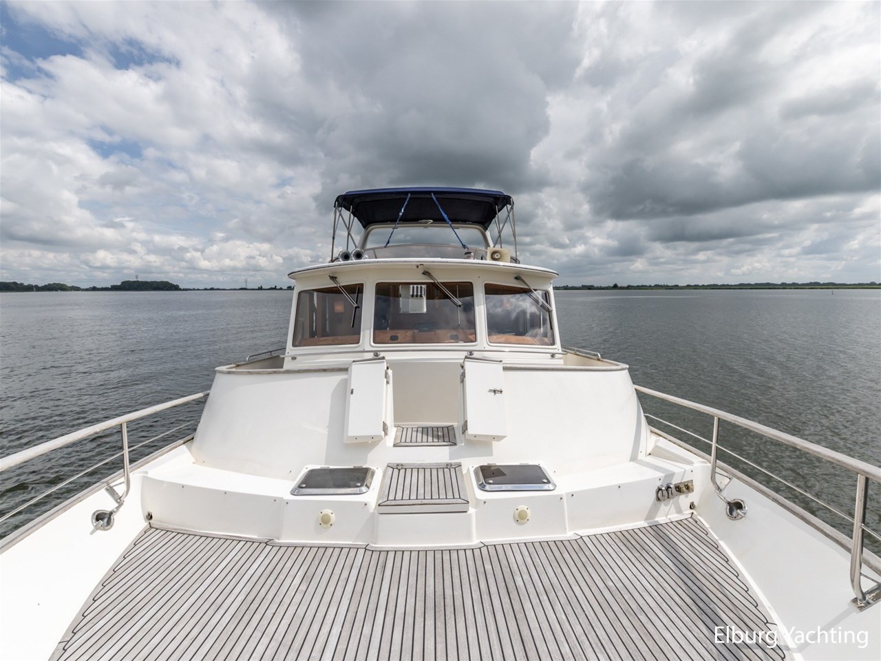 De indeling biedt een ruime eigenaarshut met kingsize 2 pers. bed en badkamer ensuite, twee extra slaaphutten met elk 2 x een 1 pers. bed. , drie dinette-opstellingen en een grote salon met veel daglicht. De flybridge is bereikbaar via zowel het stuurhuis als het achterdek., ruime zitgelegenheid op flybridge, bijbootsteunen op vaste dak. Het jacht is voorzien van een volledig teakdek rondom, ruime bergmogelijkheden en een separate toegang tot de machinekamer.