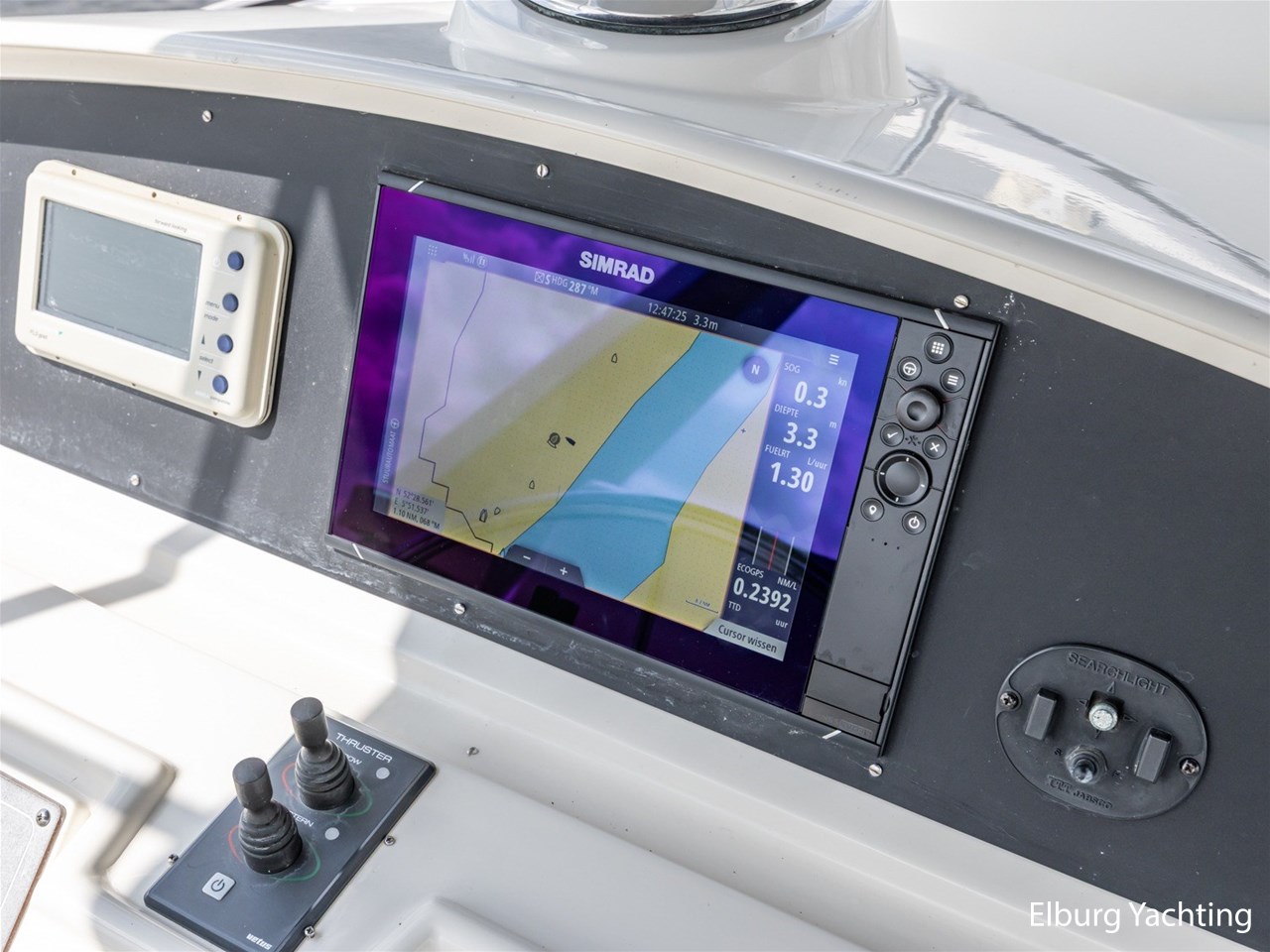 De Fleming 55 beschikt over een vloerverwarming, Post CV-installatie, elektrisch bedienbare boeg- en hekschroef, uitgebreide Simrad navigatieapparatuur en Yacht Controller, Naiad Stabilizers.
