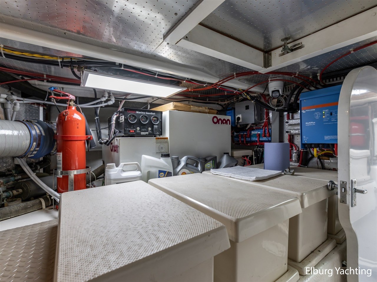 Dee Fleming 55 beschikt over een professioneel geïsoleerde machinekamer, vaste verschansing rondom, buiten ingang voor de machine kamer, r,v,s, stootrand, groot achterdek, vast achterdak over achterdek waardoor u zon vrij kan zitten, 2 x trap naar flybridge en via luie trap via stuurhuis, 2 x zijdeur + 1 x achterdeur gelijkvloers naar open kuip + ingang flybridge, 3 x camera (1 x machine +1 x achter+ 1 x zij)