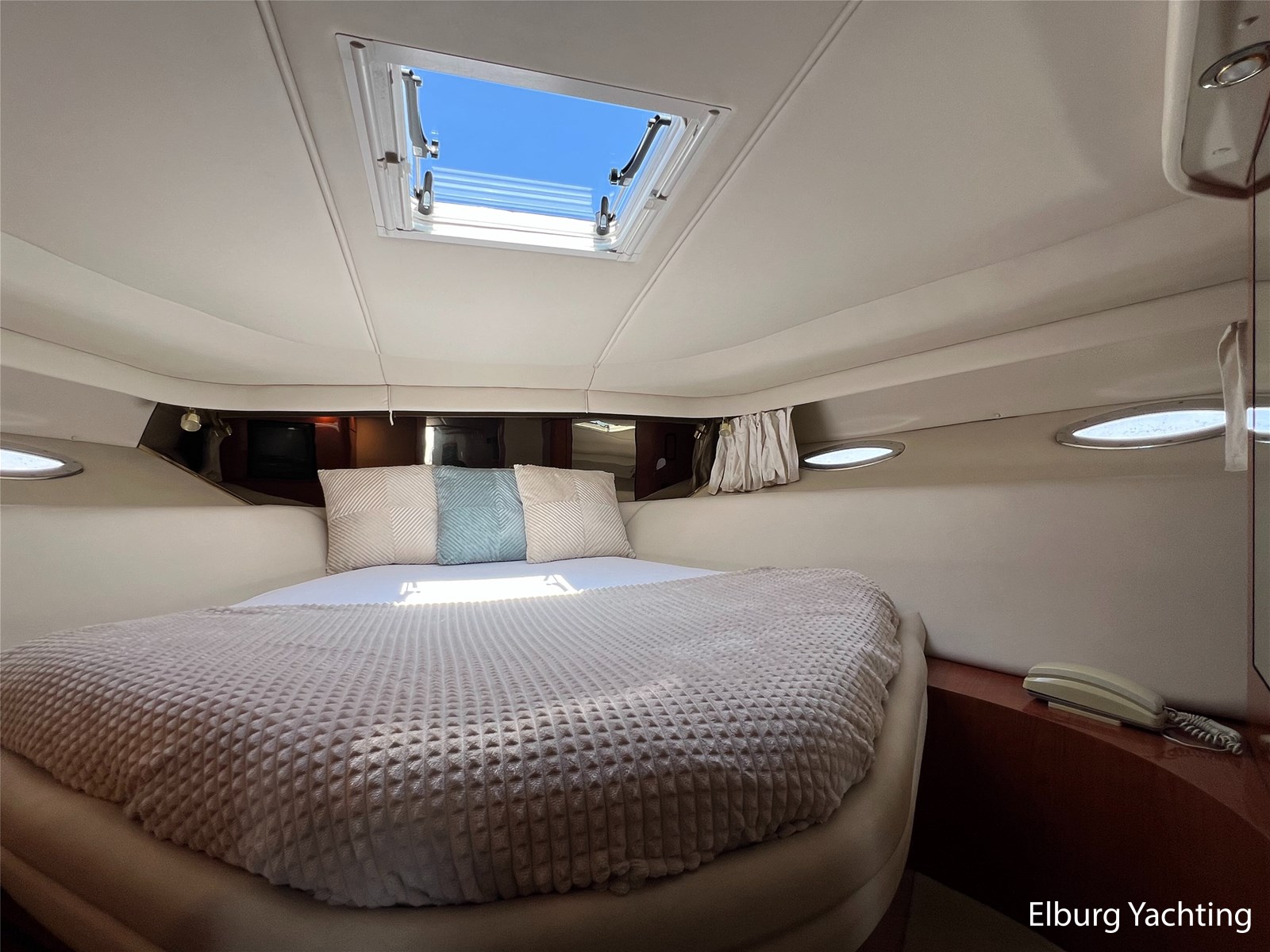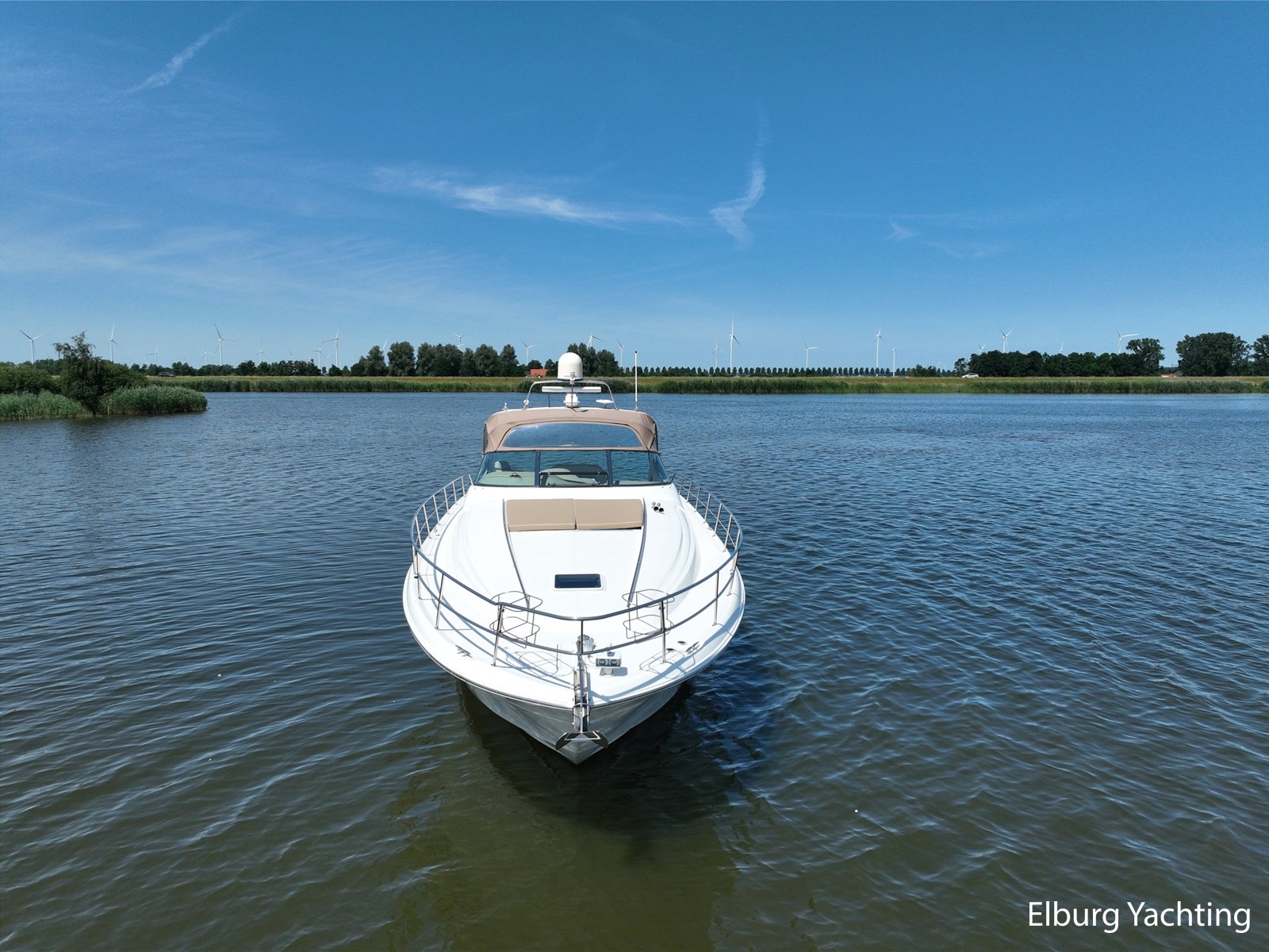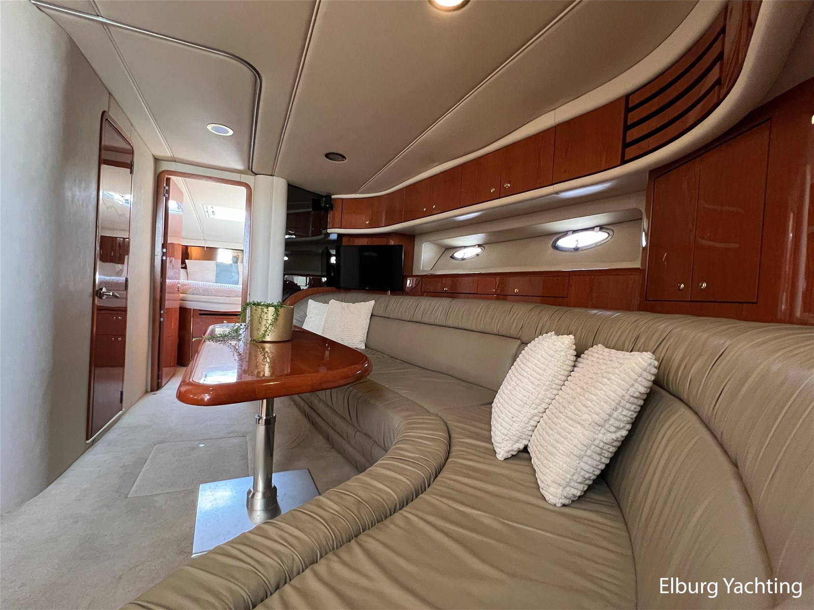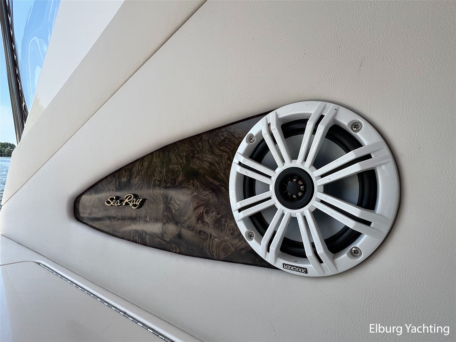 Deze Sea Ray 540 DA is oorspronkelijk ontworpen en gebouwd voor de Europese markt. De ruimte in de open kuip is zowel vanaf de oppervlakte als de hoogte indrukwekkend. Via het hydraulisch zwemplatform stap je in de ruime open kuip waar een ook grote groep mensen comfortabel kan zitten. De wetbar biedt een koelkast met spoelbak. De verhoogde stuurstand biedt plaats voor de kapitein en twee opvarenden. De stuurstand biedt hoog en goed zicht rondom. Benedendeks is er een zeer ruimte salon met aangesloten kombuis gesitueerd. Midscheeps bevindt zich de eigenaarshut met een vrij omloopbaar 2-persoons bed inclusief eigen sanitair en-suite. In het voorschip bevindt zich de gastenhut met eveneens een 2-persoons bed. De tweede badkamer in het voorschip kan ook door daggasten worden gebruikt. Deze Sea Ray 540 is uitgerust met: volledige tent over de open kuip, de kuip is afsluitbaar met een deur naar het zwemplatform, losse tafel, groot zonnebed op voordek, r.v.s. fenderhouders, wasmachine in voorhut, machinekamer toegankelijk vanuit open kuip. Volledige kuipten en bekleding van de banken in de kuip vernieuwd in 2022.
