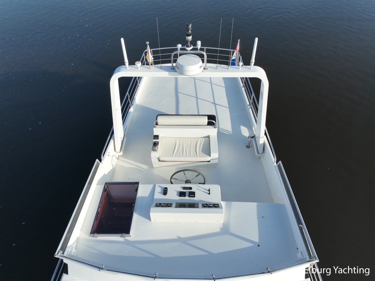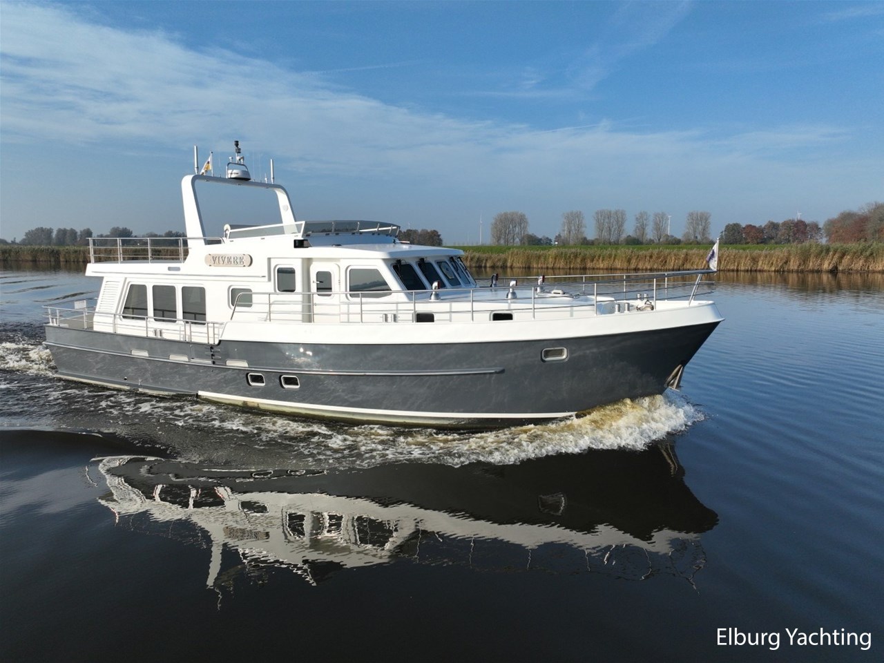 Het jacht kenmerkt zich door het robuuste ‘Trawler’ uiterlijk dat tot haar eveneens tot een breed inzetbaar jacht maakt. De dubbele John Deere motoren in combinatie met de DMS stabilisatoren zorgen voor een fijne vaarbeleving ook op de grotere watern. De doorvaarthoogte met de mast én de ramen op de flybridge naar beneden is ca. 3.45 meter waardoor de Franse kanalen bevaren kunnen worden.
