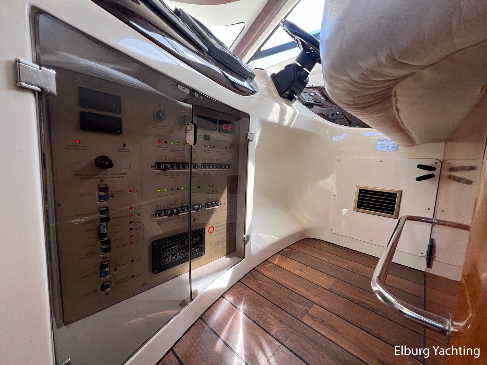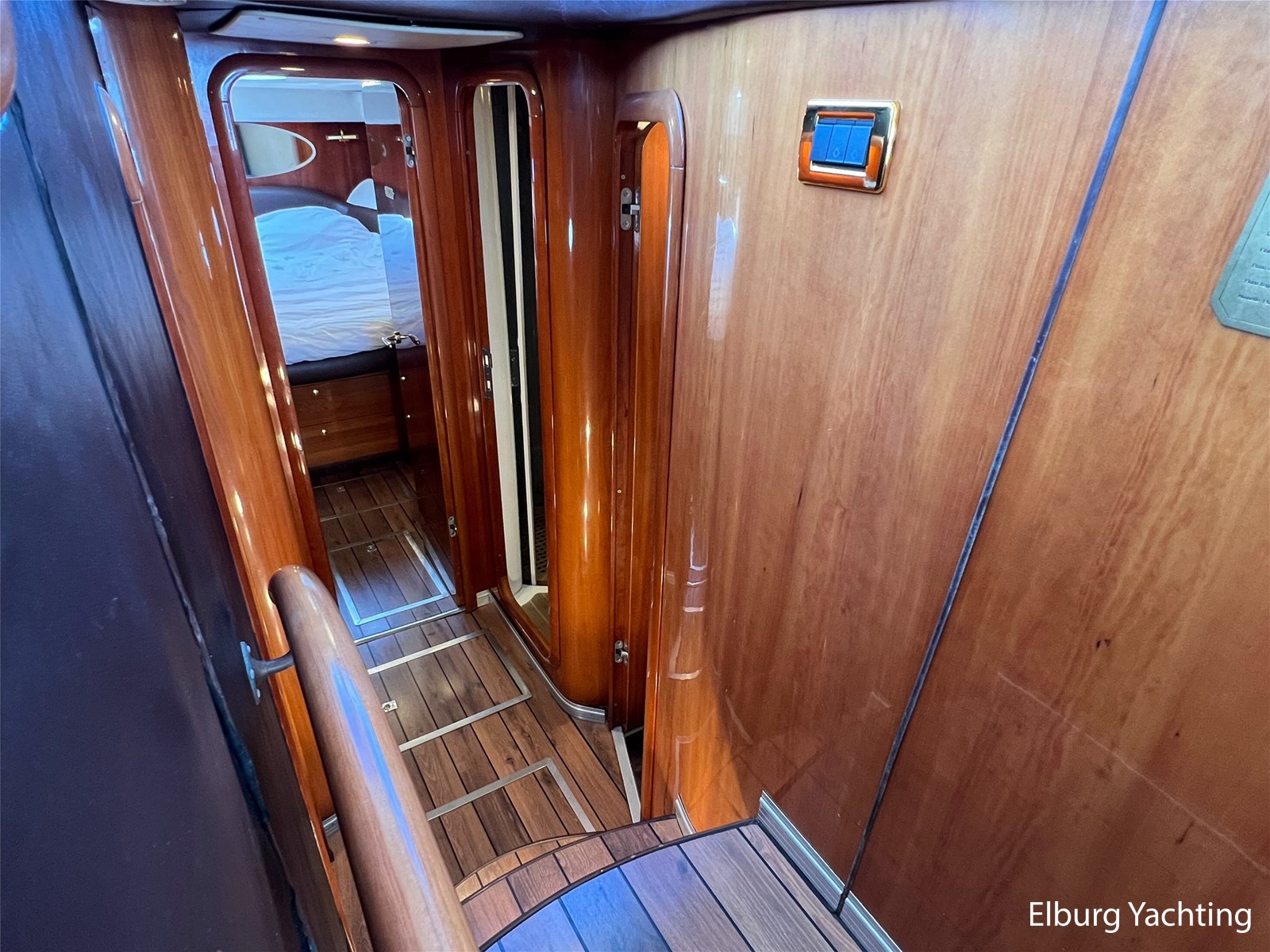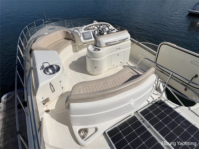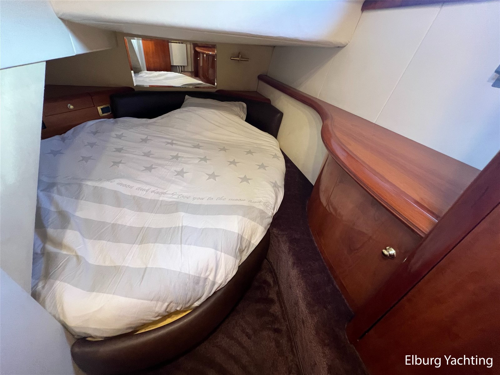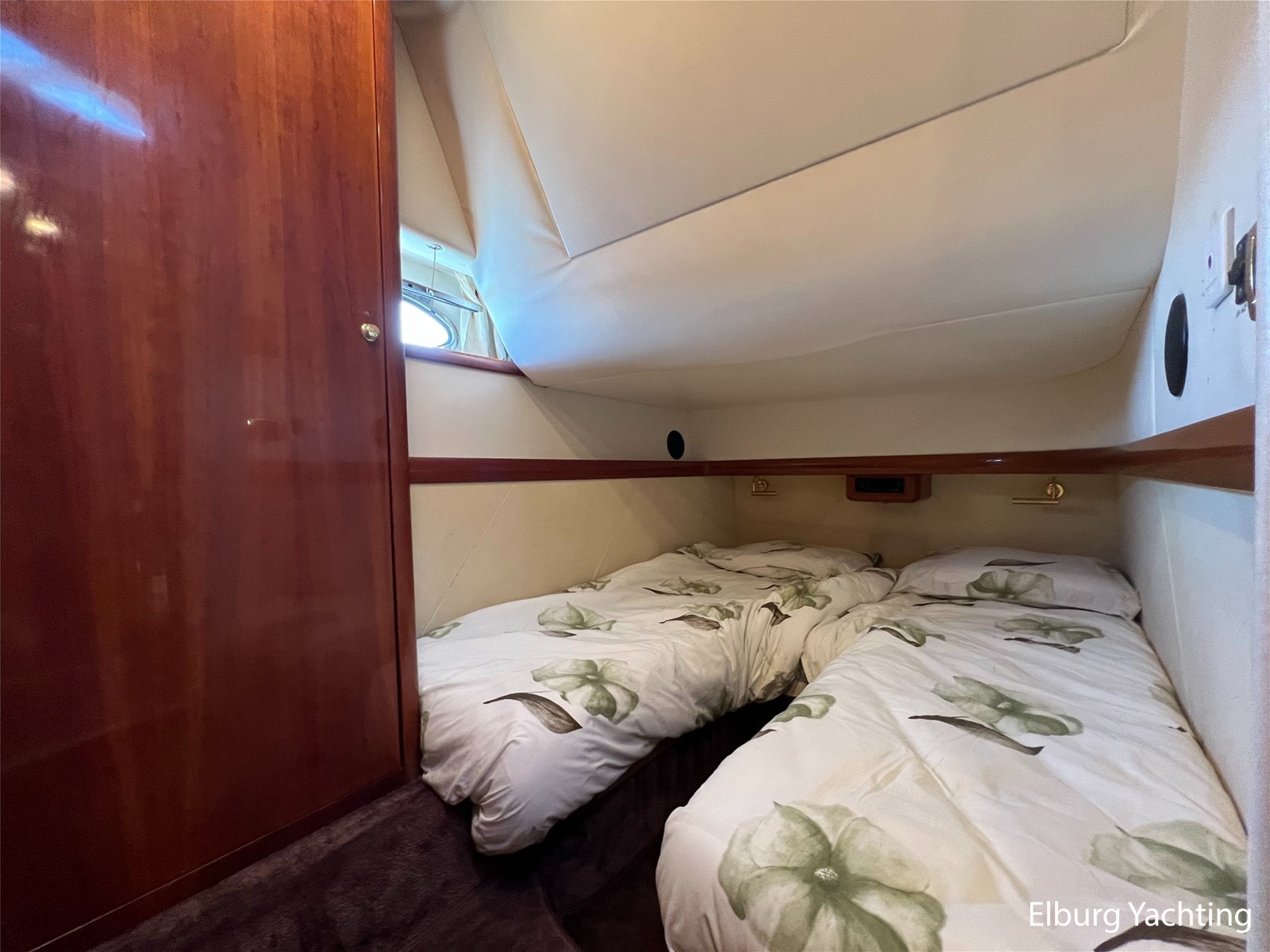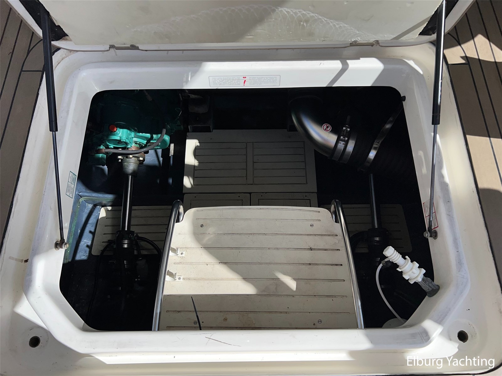 De Cranchi Atlantique 48 is een mooi gelijnd snelvarend polyester motorjacht. Het jacht beschikt over maar liefst 3 vaste hutten + crew cabin waarmee er plaats aan boord is voor minimaal 6 opvarenden. Doormiddel van de r.v.s. schuifpui is het achterdek en de salon met elkaar te verbinden. De salon is ruim opgezet met een aangesloten open keuken. Uniek voor dit schip is de Maritieme Booster CV dieselkachel voor een comfortabele verwarming aan boord in ieder vertrek inclusief motorruimte waardoor dit schip ook in de winter te gebruiken is en/of permanente bewoning. Dit jacht is voorzien van: Geïntegreerde kuipbanken inclusief bijbehorende kussens, ronde dinette in salon, entree naar flybridge via een trap in open kuip, koeling/verwarming per vertrek afzonderlijk regelbaar via de airconditioning, overzichtelijk elektrisch schakelpaneel, kleine praktische wasmachine in open kuip, 2 x zijraam in salon en bij stuurstand, 2-persoons stuurbank bij beide stuurstanden, afsluitbare kuip met spiegeldeur aan SB zijde, Benzensoni hydraulische gangway voor opstap op de steiger of het kranen van een bijboot op het zwemplateau, 2 x toegang naar machinekamer, r.v.s. fenderhouders op het voordek, de open kuip en het zwemplateau zijn volledige belegt met een kunststof teakdek voor minder onderhoudszorgen, 2 x zonnepanelen op de flybridge. Voor vragen en/of het maken van een afspraak bent u 7 dagen per week van harte welkom bij Elburg Yachting.