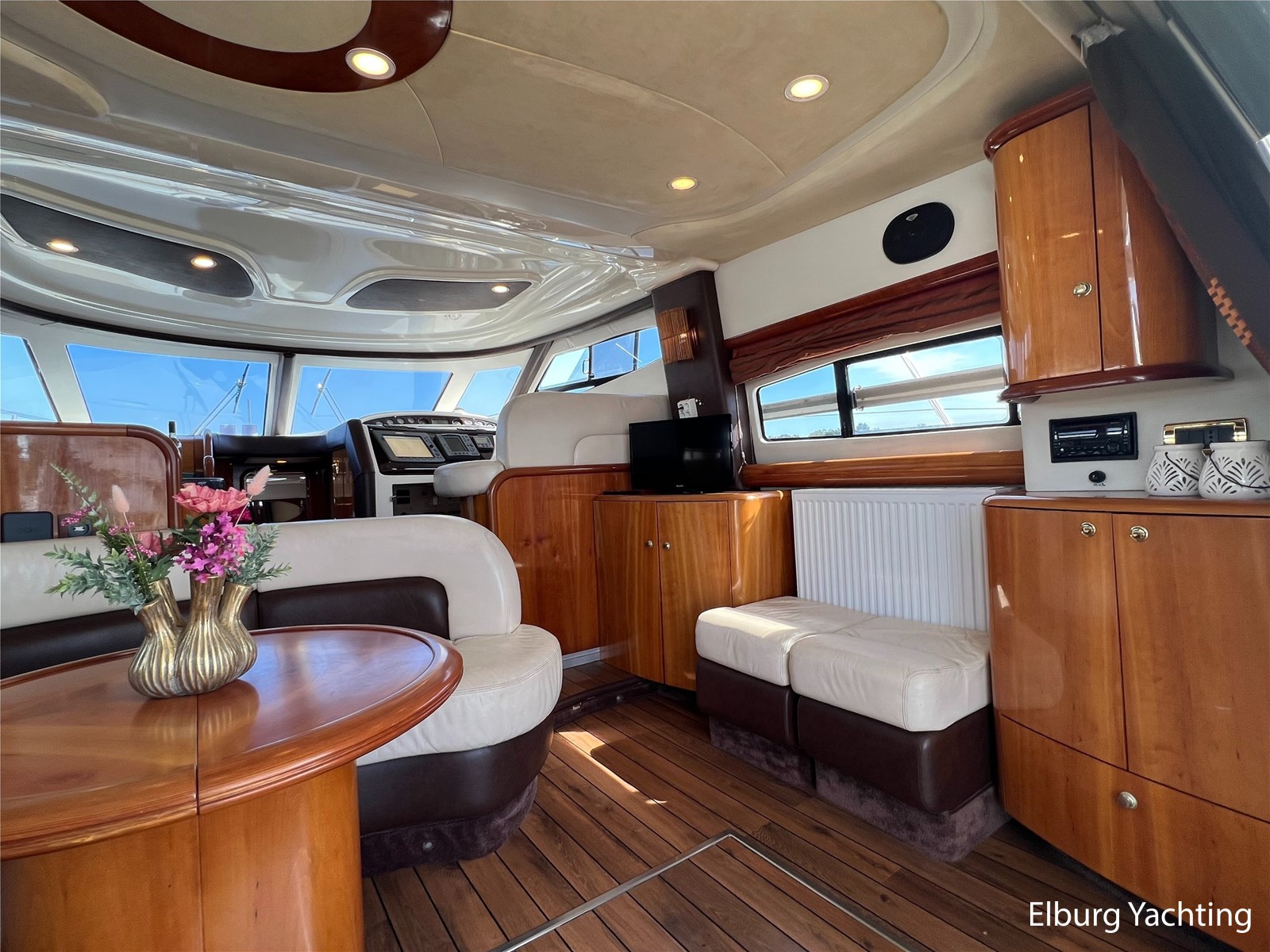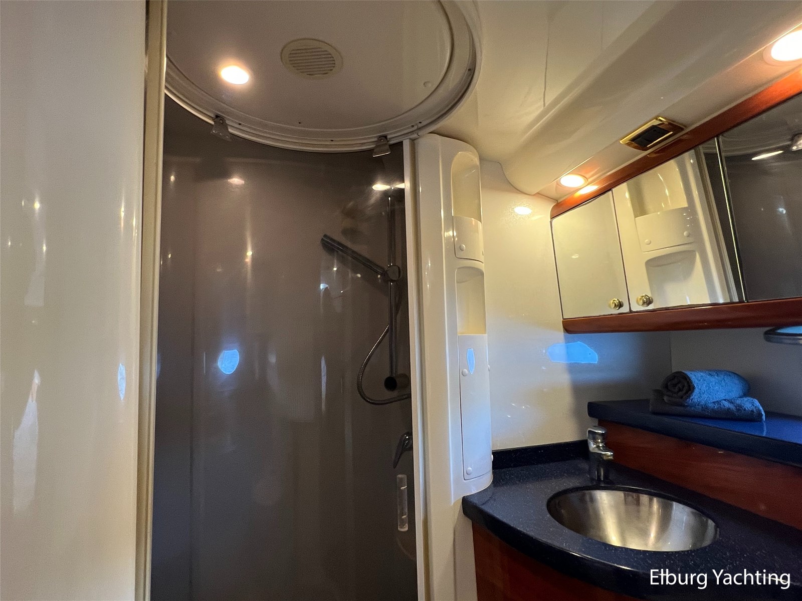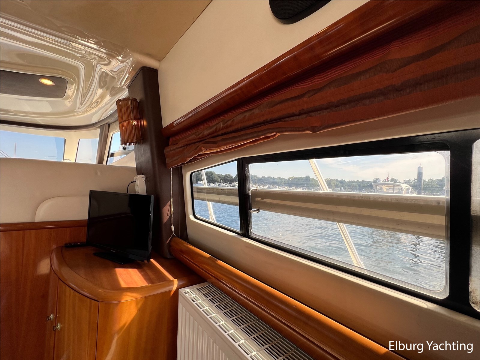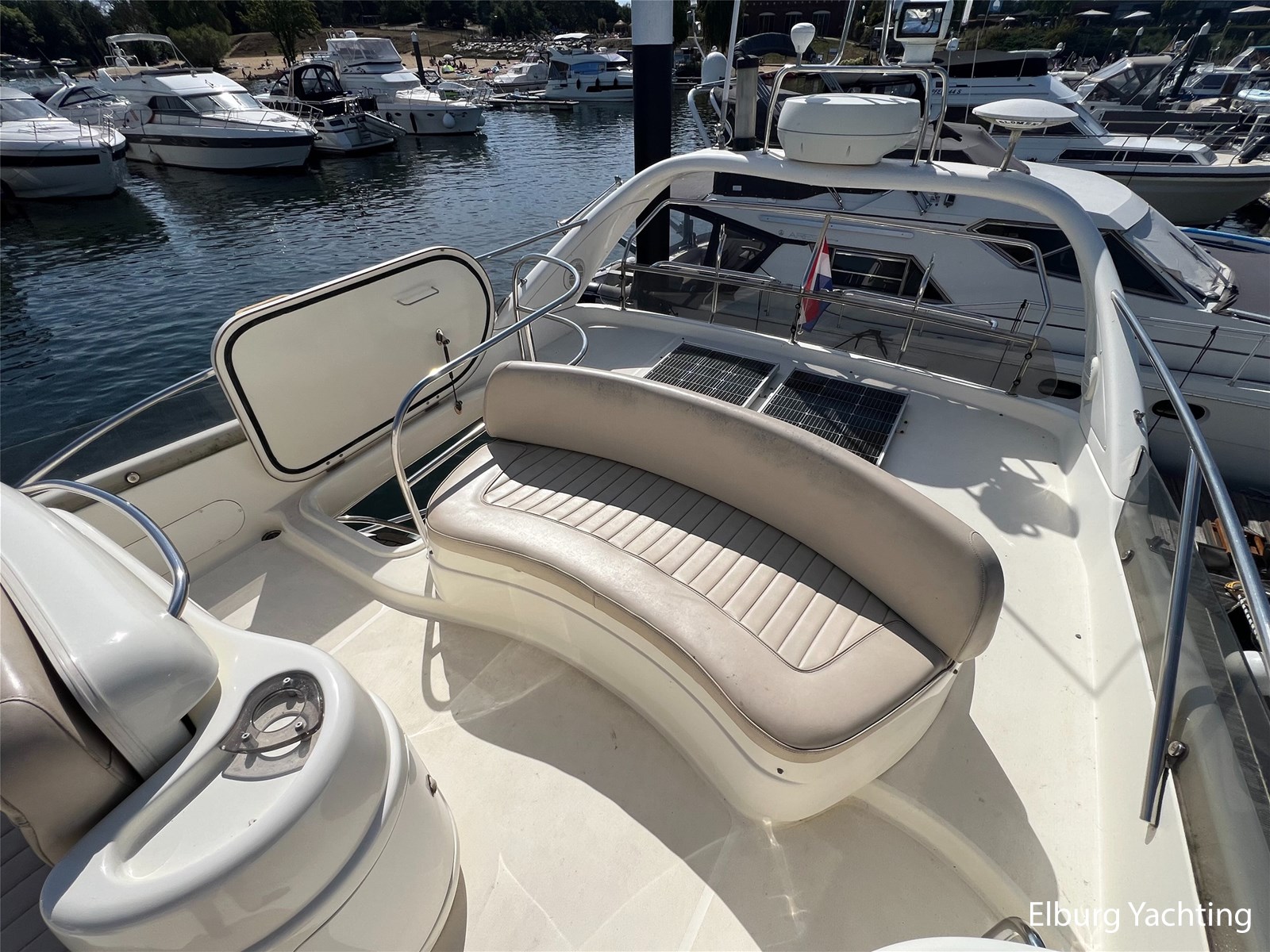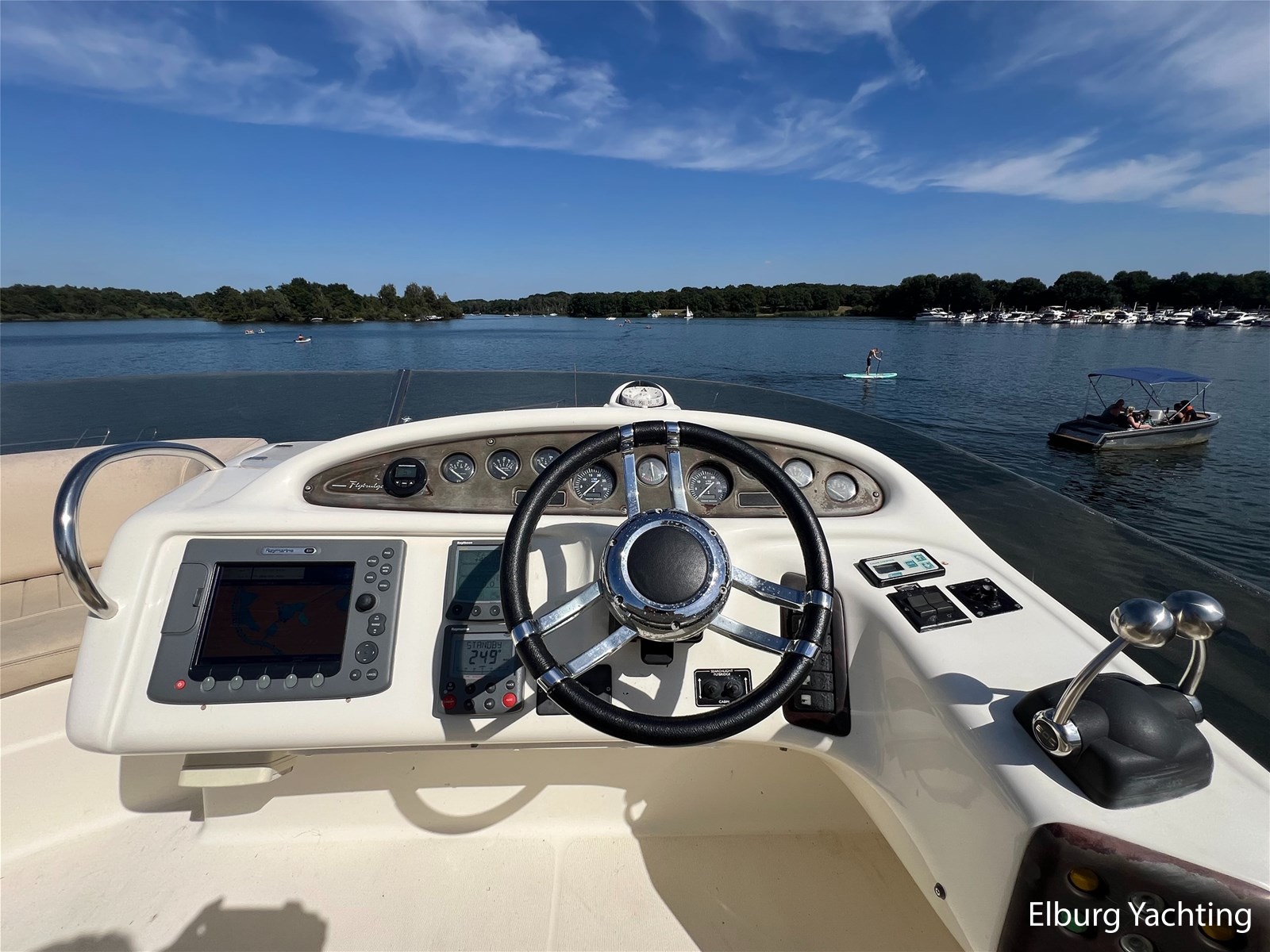 De Cranchi Atlantique 48 is een mooi gelijnd snelvarend polyester motorjacht. Het jacht beschikt over maar liefst 3 vaste hutten + crew cabin waarmee er plaats aan boord is voor minimaal 6 opvarenden. Doormiddel van de r.v.s. schuifpui is het achterdek en de salon met elkaar te verbinden. De salon is ruim opgezet met een aangesloten open keuken. Uniek voor dit schip is de Maritieme Booster CV dieselkachel voor een comfortabele verwarming aan boord in ieder vertrek inclusief motorruimte waardoor dit schip ook in de winter te gebruiken is en/of permanente bewoning. Dit jacht is voorzien van: Geïntegreerde kuipbanken inclusief bijbehorende kussens, ronde dinette in salon, entree naar flybridge via een trap in open kuip, koeling/verwarming per vertrek afzonderlijk regelbaar via de airconditioning, overzichtelijk elektrisch schakelpaneel, kleine praktische wasmachine in open kuip, 2 x zijraam in salon en bij stuurstand, 2-persoons stuurbank bij beide stuurstanden, afsluitbare kuip met spiegeldeur aan SB zijde, Benzensoni hydraulische gangway voor opstap op de steiger of het kranen van een bijboot op het zwemplateau, 2 x toegang naar machinekamer, r.v.s. fenderhouders op het voordek, de open kuip en het zwemplateau zijn volledige belegt met een kunststof teakdek voor minder onderhoudszorgen, 2 x zonnepanelen op de flybridge. Voor vragen en/of het maken van een afspraak bent u 7 dagen per week van harte welkom bij Elburg Yachting.