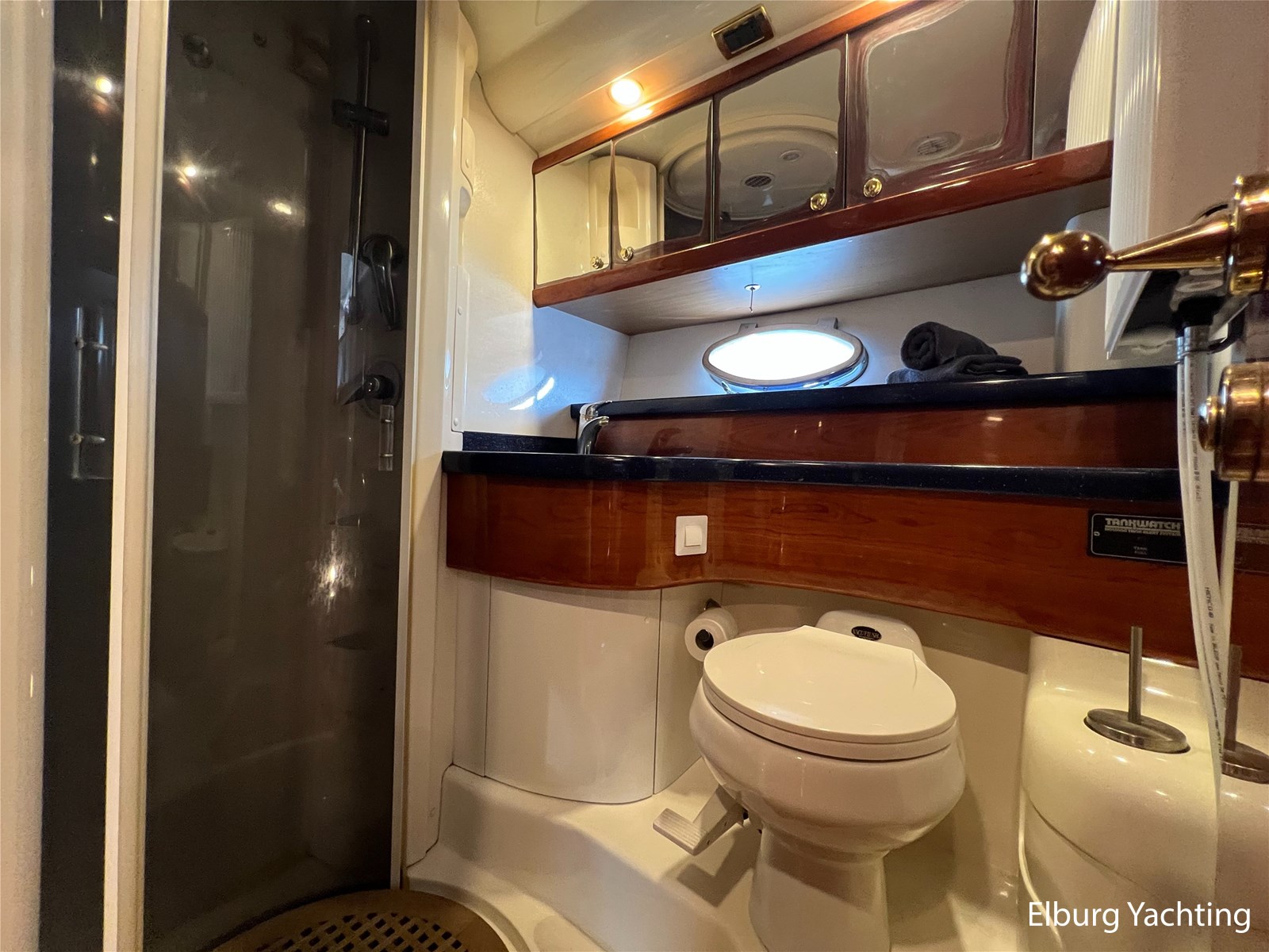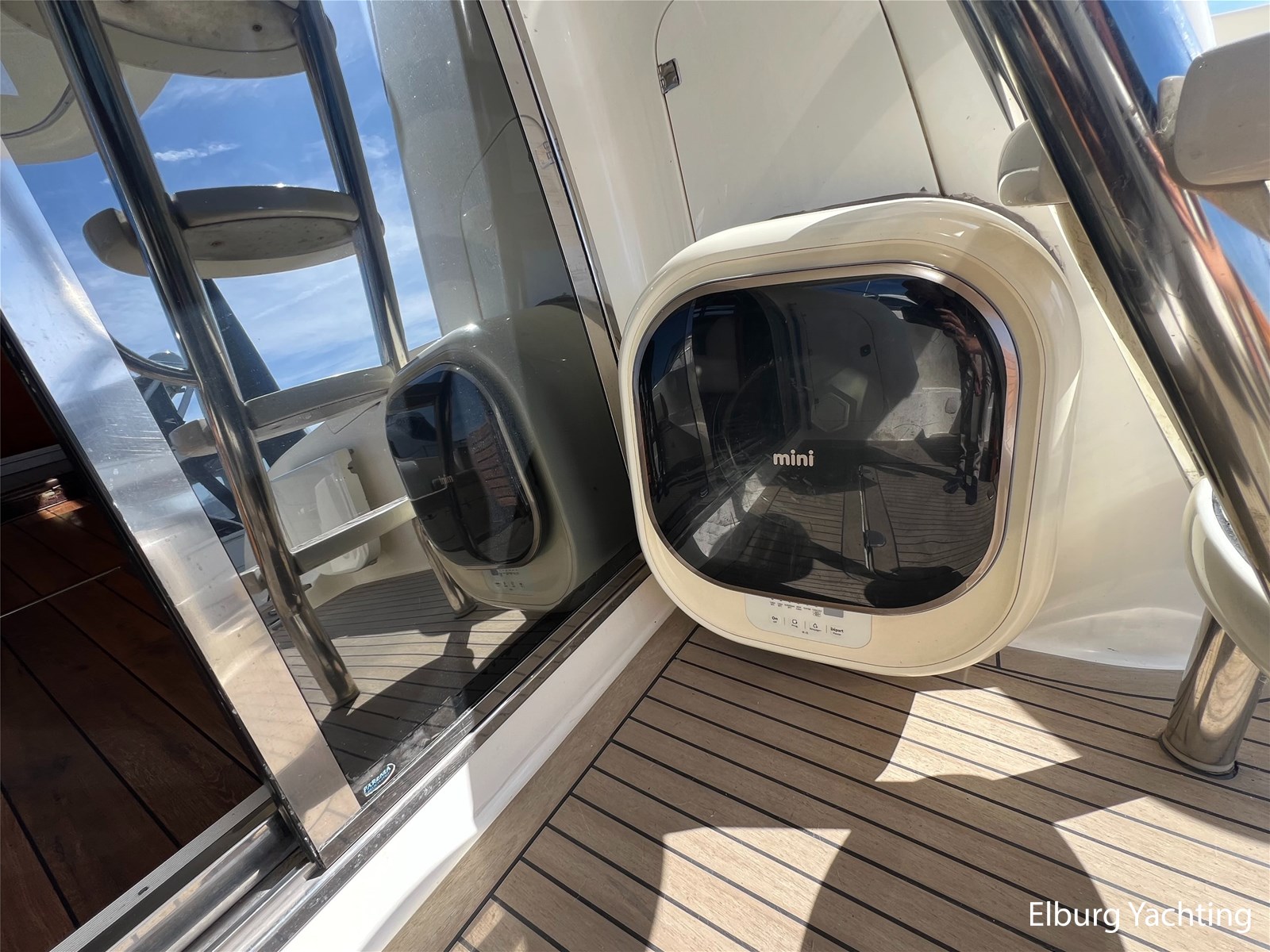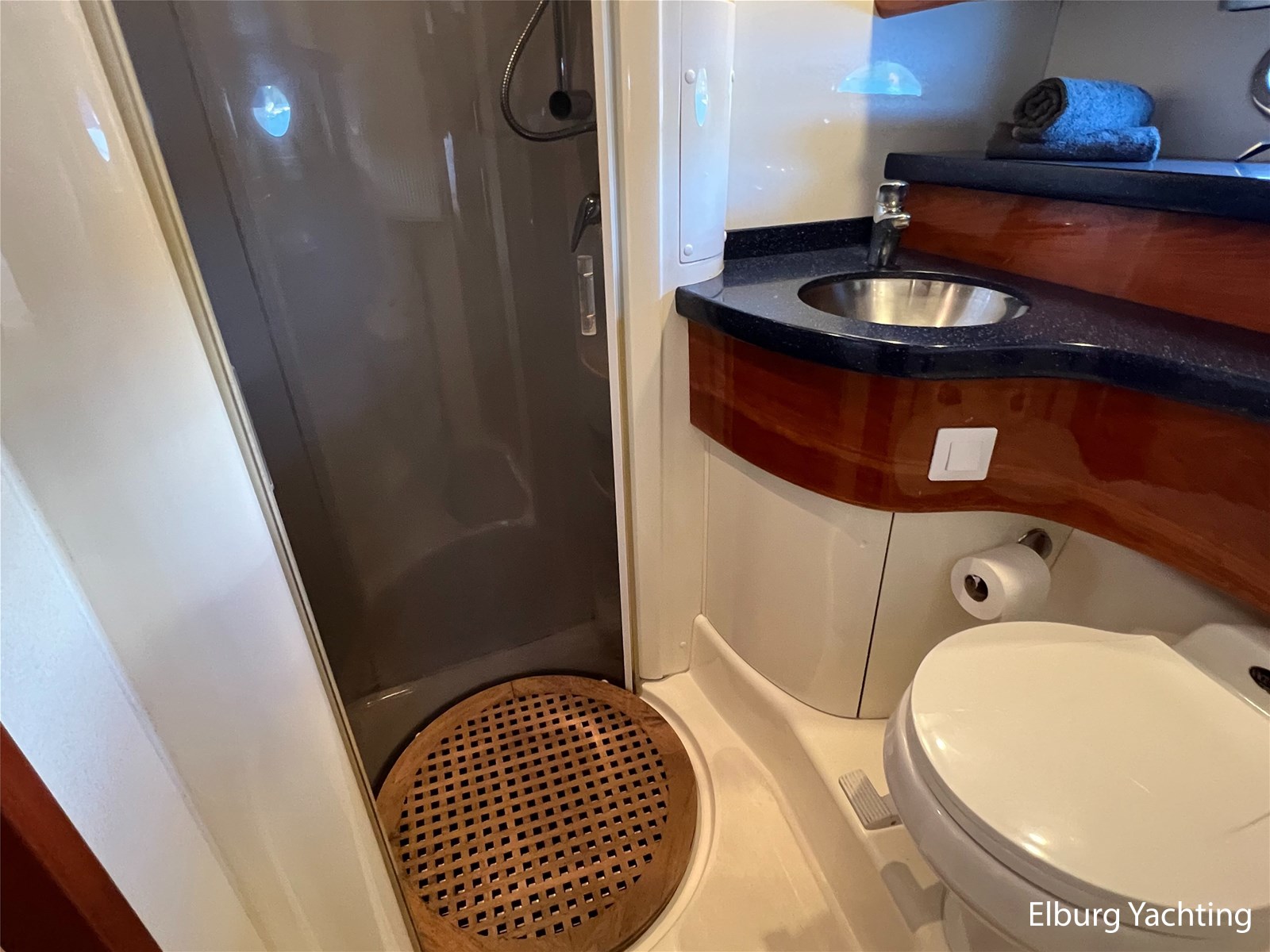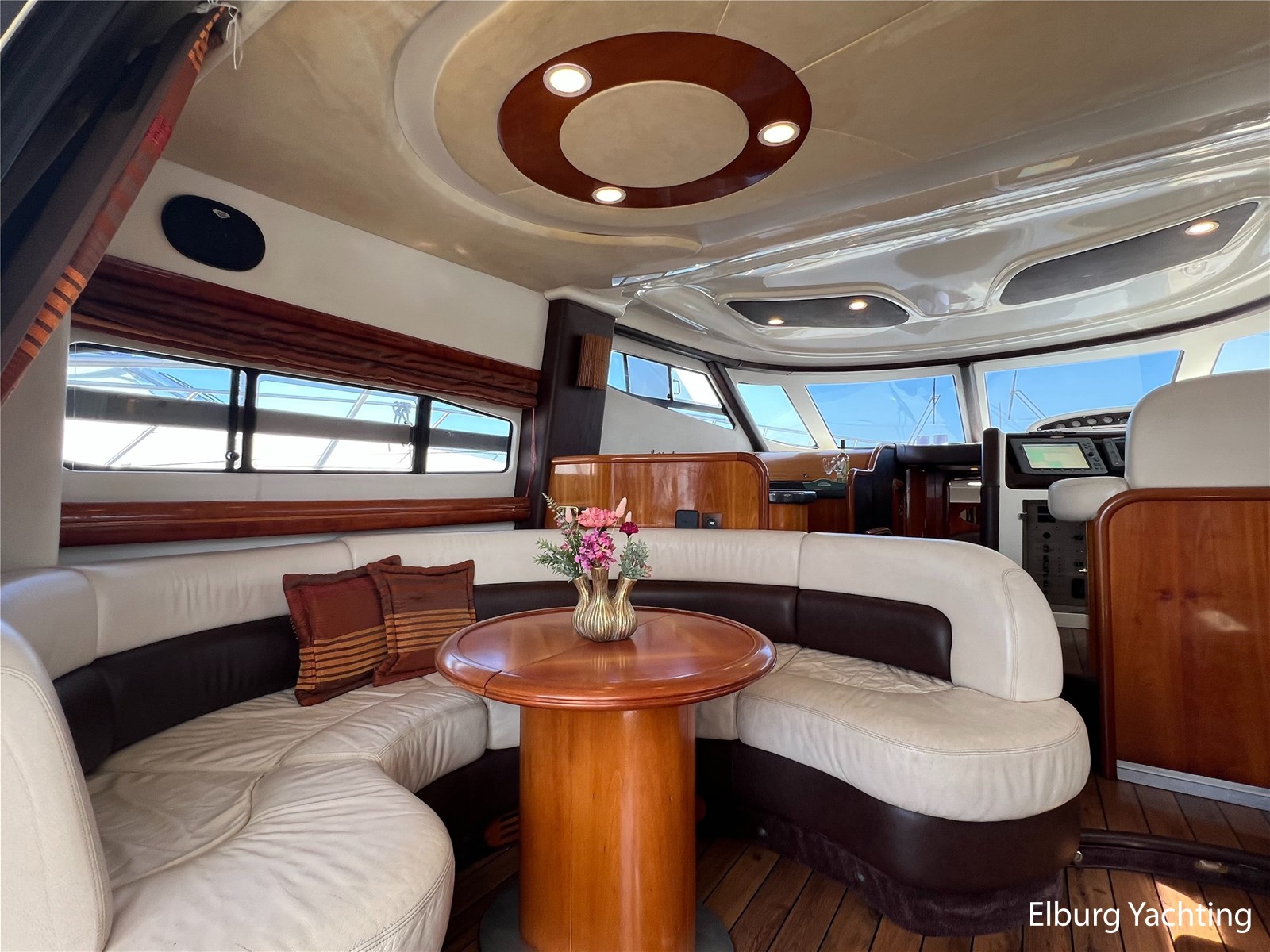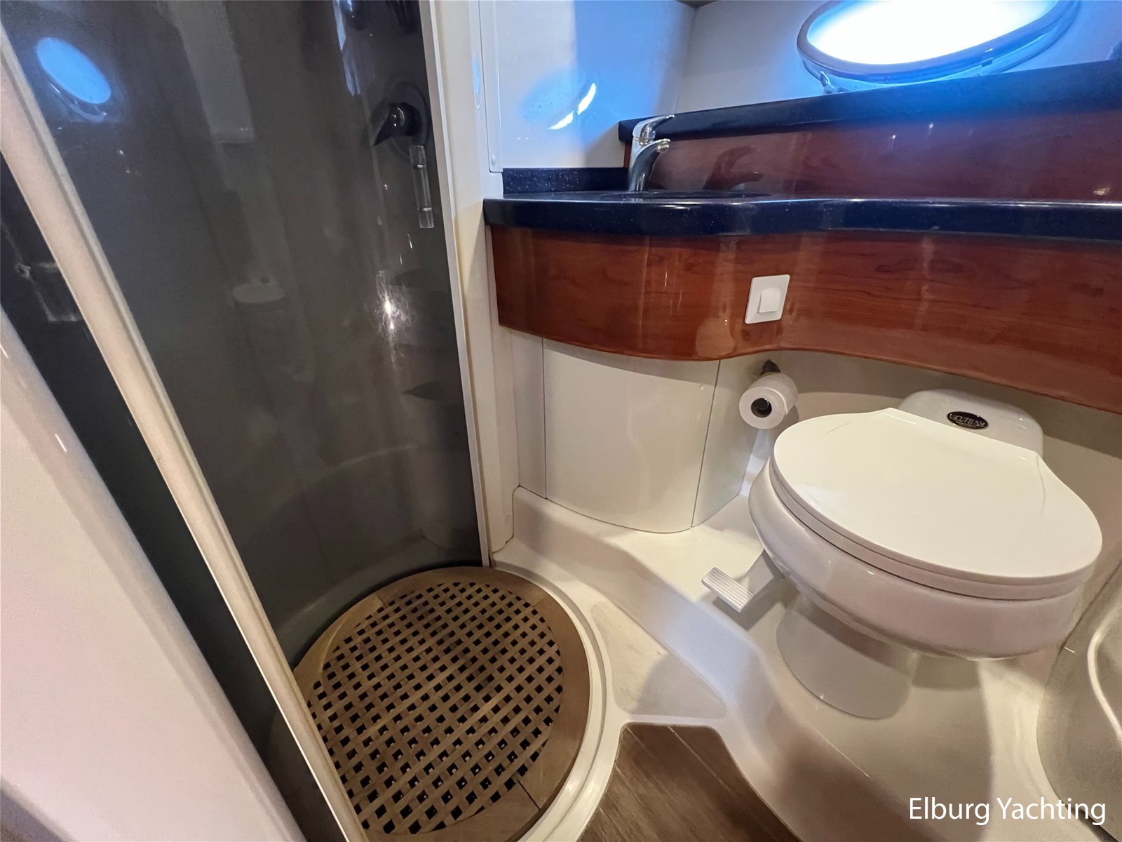 De Cranchi Atlantique 48 is een mooi gelijnd snelvarend polyester motorjacht. Het jacht beschikt over maar liefst 3 vaste hutten + crew cabin waarmee er plaats aan boord is voor minimaal 6 opvarenden. Doormiddel van de r.v.s. schuifpui is het achterdek en de salon met elkaar te verbinden. De salon is ruim opgezet met een aangesloten open keuken. Uniek voor dit schip is de Maritieme Booster CV dieselkachel voor een comfortabele verwarming aan boord in ieder vertrek inclusief motorruimte waardoor dit schip ook in de winter te gebruiken is en/of permanente bewoning. Dit jacht is voorzien van: Geïntegreerde kuipbanken inclusief bijbehorende kussens, ronde dinette in salon, entree naar flybridge via een trap in open kuip, koeling/verwarming per vertrek afzonderlijk regelbaar via de airconditioning, overzichtelijk elektrisch schakelpaneel, kleine praktische wasmachine in open kuip, 2 x zijraam in salon en bij stuurstand, 2-persoons stuurbank bij beide stuurstanden, afsluitbare kuip met spiegeldeur aan SB zijde, Benzensoni hydraulische gangway voor opstap op de steiger of het kranen van een bijboot op het zwemplateau, 2 x toegang naar machinekamer, r.v.s. fenderhouders op het voordek, de open kuip en het zwemplateau zijn volledige belegt met een kunststof teakdek voor minder onderhoudszorgen, 2 x zonnepanelen op de flybridge. Voor vragen en/of het maken van een afspraak bent u 7 dagen per week van harte welkom bij Elburg Yachting.