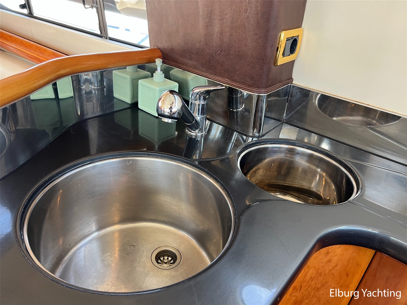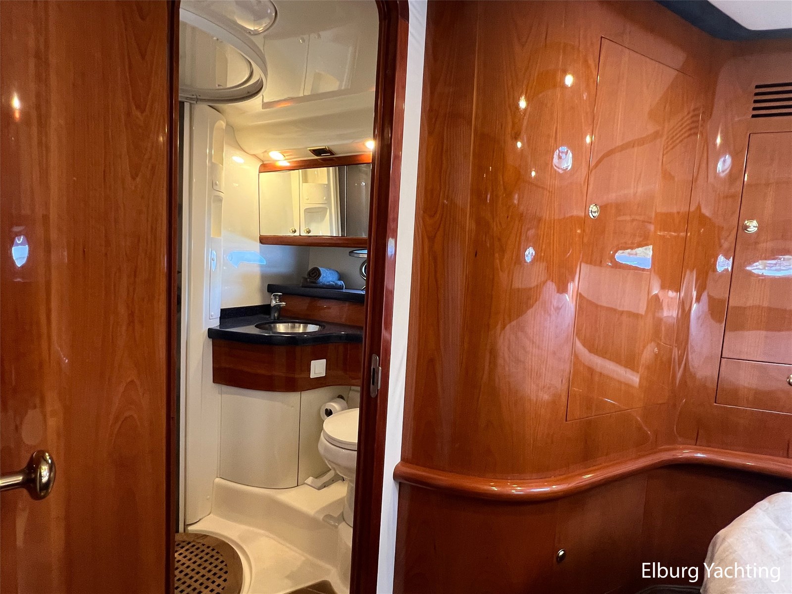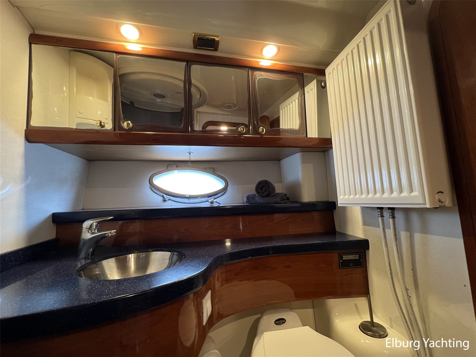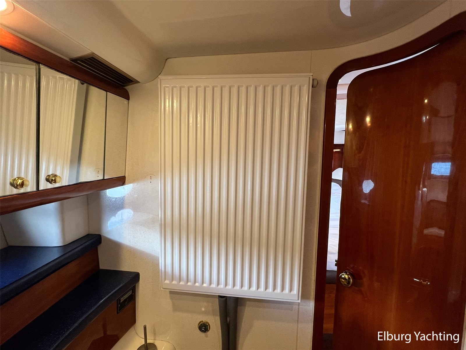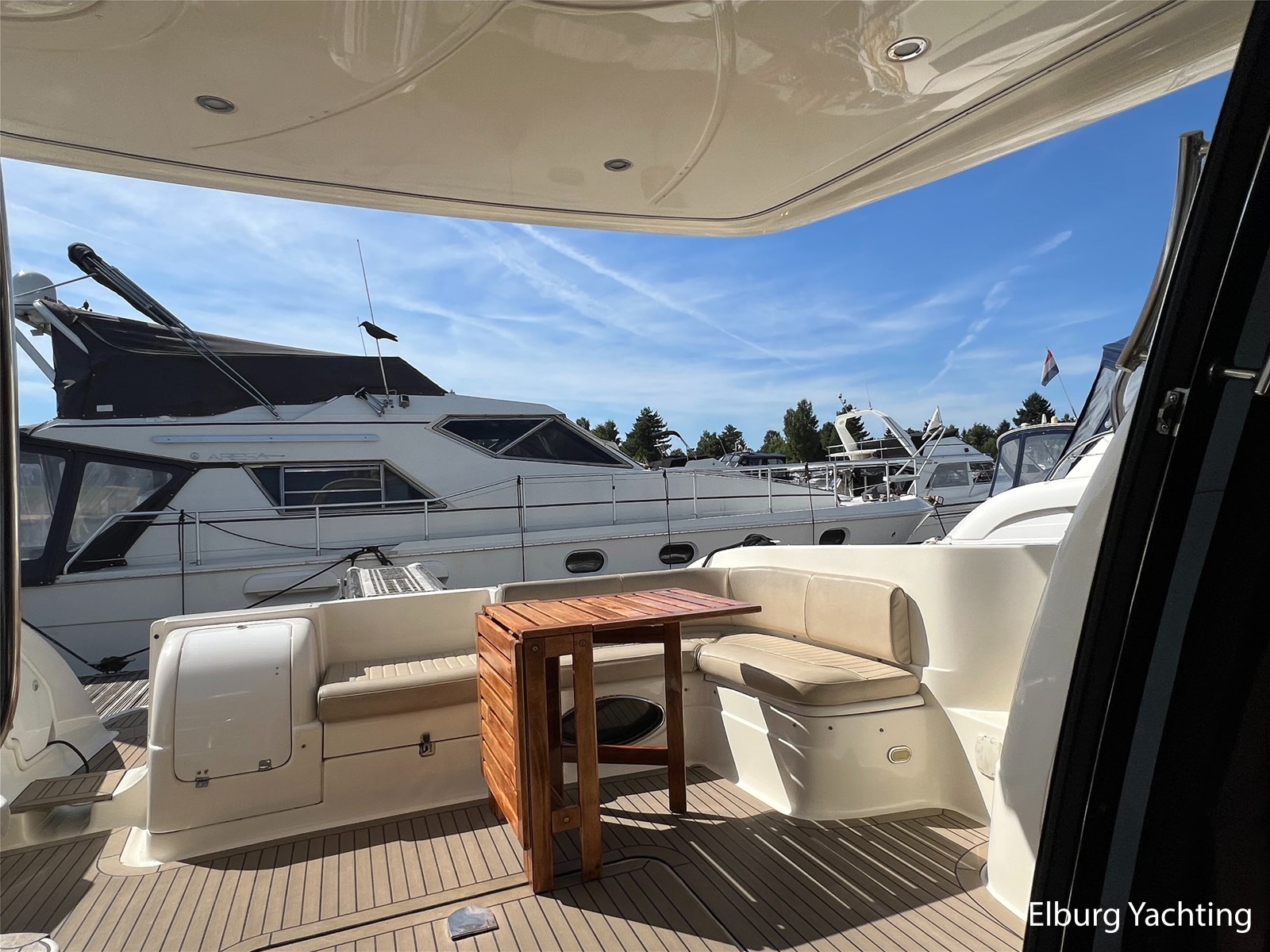 De Cranchi Atlantique 48 is een mooi gelijnd snelvarend polyester motorjacht. Het jacht beschikt over maar liefst 3 vaste hutten + crew cabin waarmee er plaats aan boord is voor minimaal 6 opvarenden. Doormiddel van de r.v.s. schuifpui is het achterdek en de salon met elkaar te verbinden. De salon is ruim opgezet met een aangesloten open keuken. Uniek voor dit schip is de Maritieme Booster CV dieselkachel voor een comfortabele verwarming aan boord in ieder vertrek inclusief motorruimte waardoor dit schip ook in de winter te gebruiken is en/of permanente bewoning. Dit jacht is voorzien van: Geïntegreerde kuipbanken inclusief bijbehorende kussens, ronde dinette in salon, entree naar flybridge via een trap in open kuip, koeling/verwarming per vertrek afzonderlijk regelbaar via de airconditioning, overzichtelijk elektrisch schakelpaneel, kleine praktische wasmachine in open kuip, 2 x zijraam in salon en bij stuurstand, 2-persoons stuurbank bij beide stuurstanden, afsluitbare kuip met spiegeldeur aan SB zijde, Benzensoni hydraulische gangway voor opstap op de steiger of het kranen van een bijboot op het zwemplateau, 2 x toegang naar machinekamer, r.v.s. fenderhouders op het voordek, de open kuip en het zwemplateau zijn volledige belegt met een kunststof teakdek voor minder onderhoudszorgen, 2 x zonnepanelen op de flybridge. Voor vragen en/of het maken van een afspraak bent u 7 dagen per week van harte welkom bij Elburg Yachting.