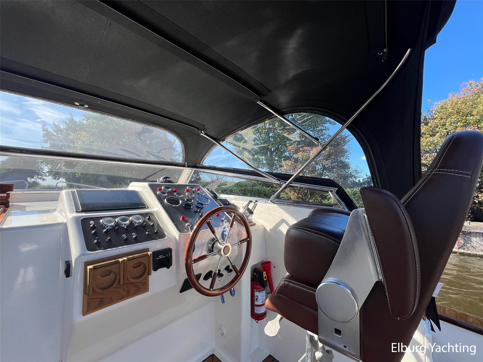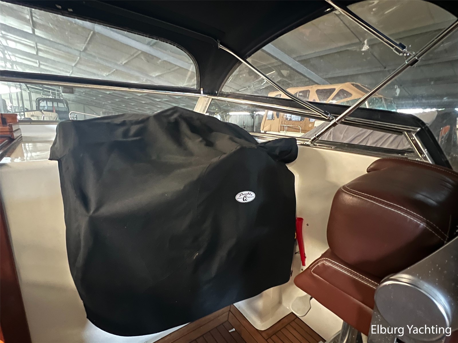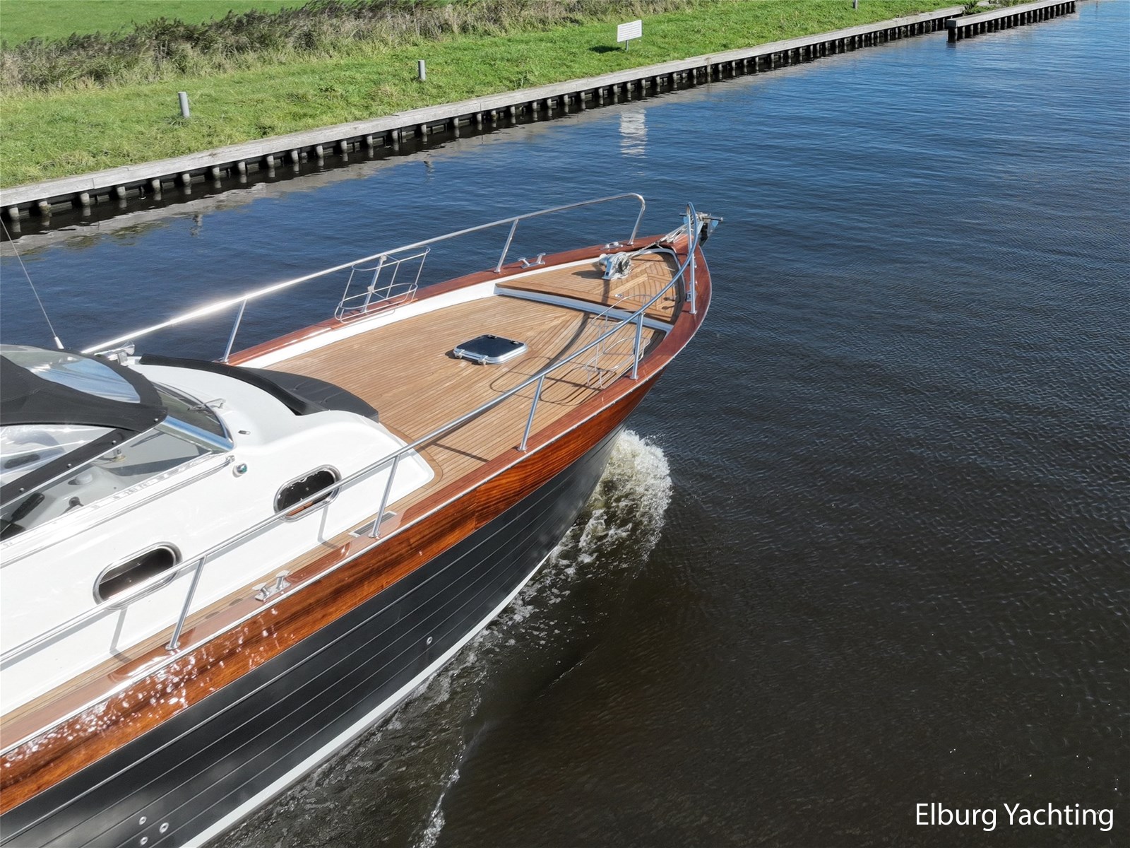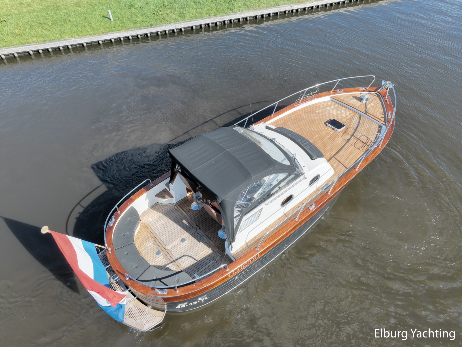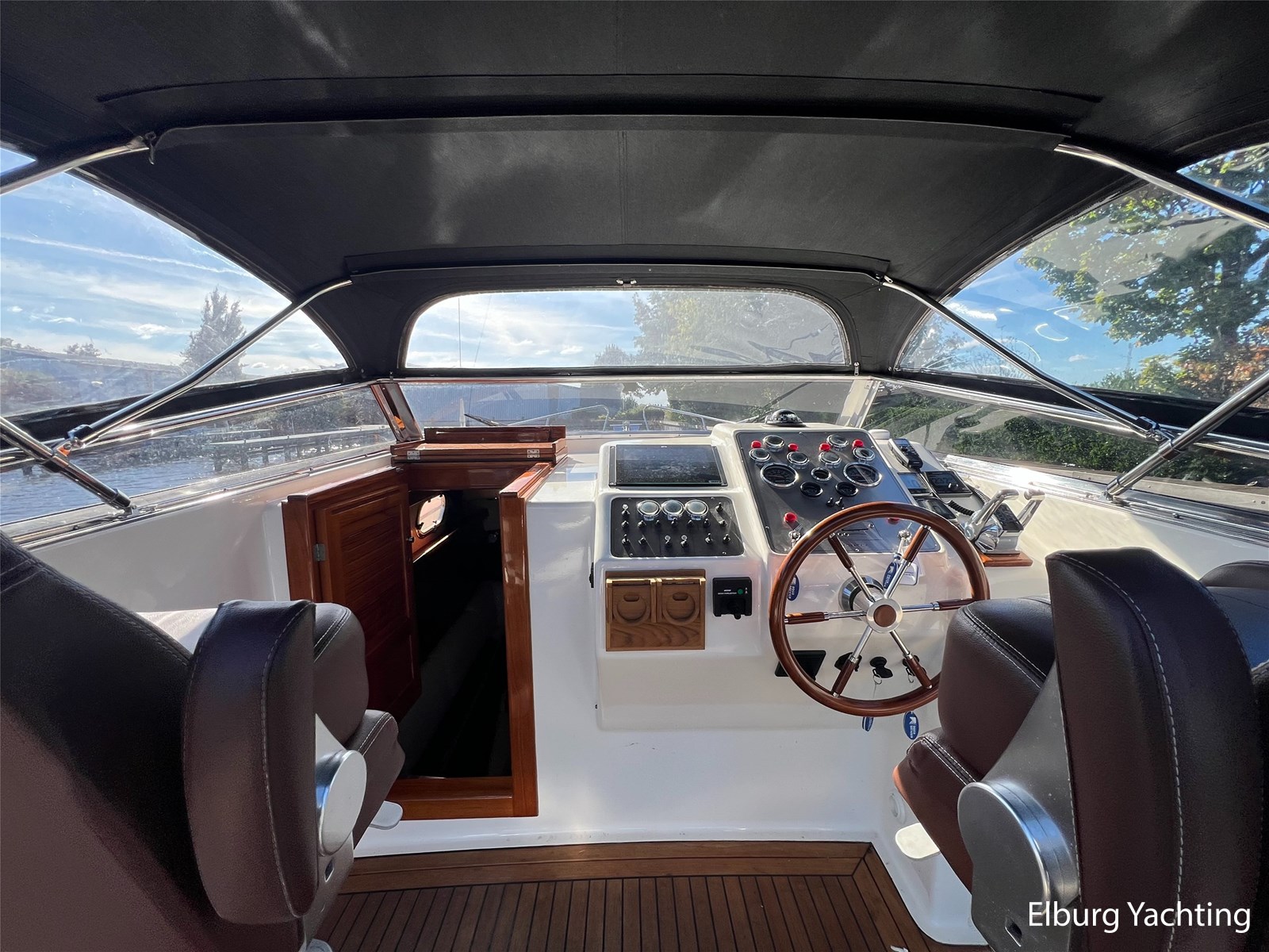 Prachtige Apreamare 10 Semi Cabinato met gezellige leefruimte buiten op zowel het voor- als achterdek. De huidige eigenaar heeft het afgelopen jaren vele zaken vernieuwd en verbeterd aan boord. De volgende werkzaamheden zijn uitgevoerd: Houtwerk/potdeksel in Q2 2025 opnieuw gelakt, keerkoppelingen zijn compleet gereviseerd, boiler 12 liter vervangen door nieuwe 40 liter boiler, Webasto heteluchtverwarming ingebouwd, nieuwe Raymarine plotter touchscreen en nieuwe Raymarine stuurautomaat, Garmin marifoon met AIS, 3000Watt omvormer Victron, Nieuwe accu's geplaatst, Nieuwe koelkast, Nieuwe lattenbodem en matrassen, onderwater schip kaal gehaald en opnieuw antifouling aangebracht. Sinds 2021 heeft dit schip het alle jaren in een schiphuis gelegen. Dit schiphuis in Ossenzijl is separaat overdraagbaar in de vorm van huur of koop. Deze Apreamare 10 Semi Cabinato is voorzien van: vaste bank in kuip en op het voordek met afneembare kussens, bakskisten, r.v.s. fenderhouders, volledige kuip tent over stuurstand met uitneembare delen, machinekamer bereikbaar via twee grote kuipluiken, dubbele Separ brandstoffilters, twee luxe vaarstoelen in hoogte verstelbaar, trimtabs, radio, victron battery display. De tent is over de stuurstand is neerklapbaar waarmee een minimale doorvaarthoogte van 2,20meter kan worden verkregen. Voor vragen en/of het maken van een afspraak bent u 7 dagen per week van harte welkom bij Elburg Yachting.