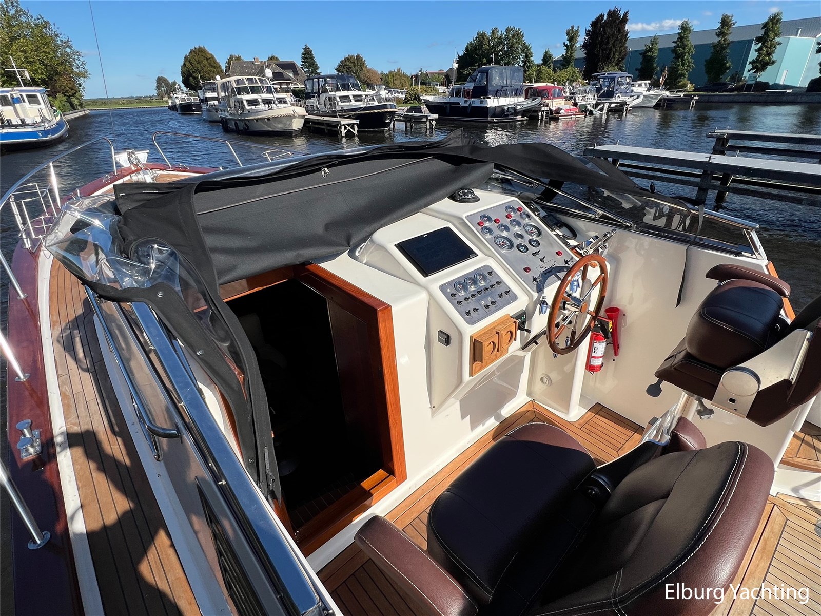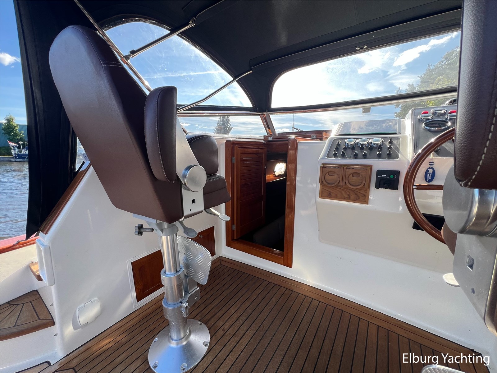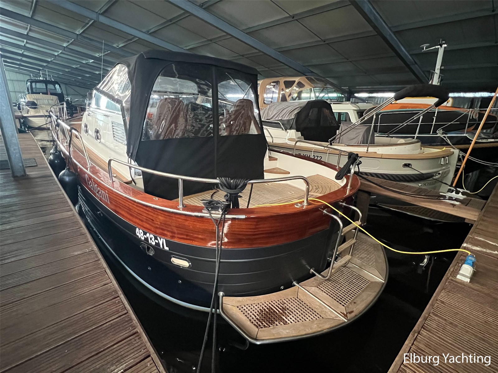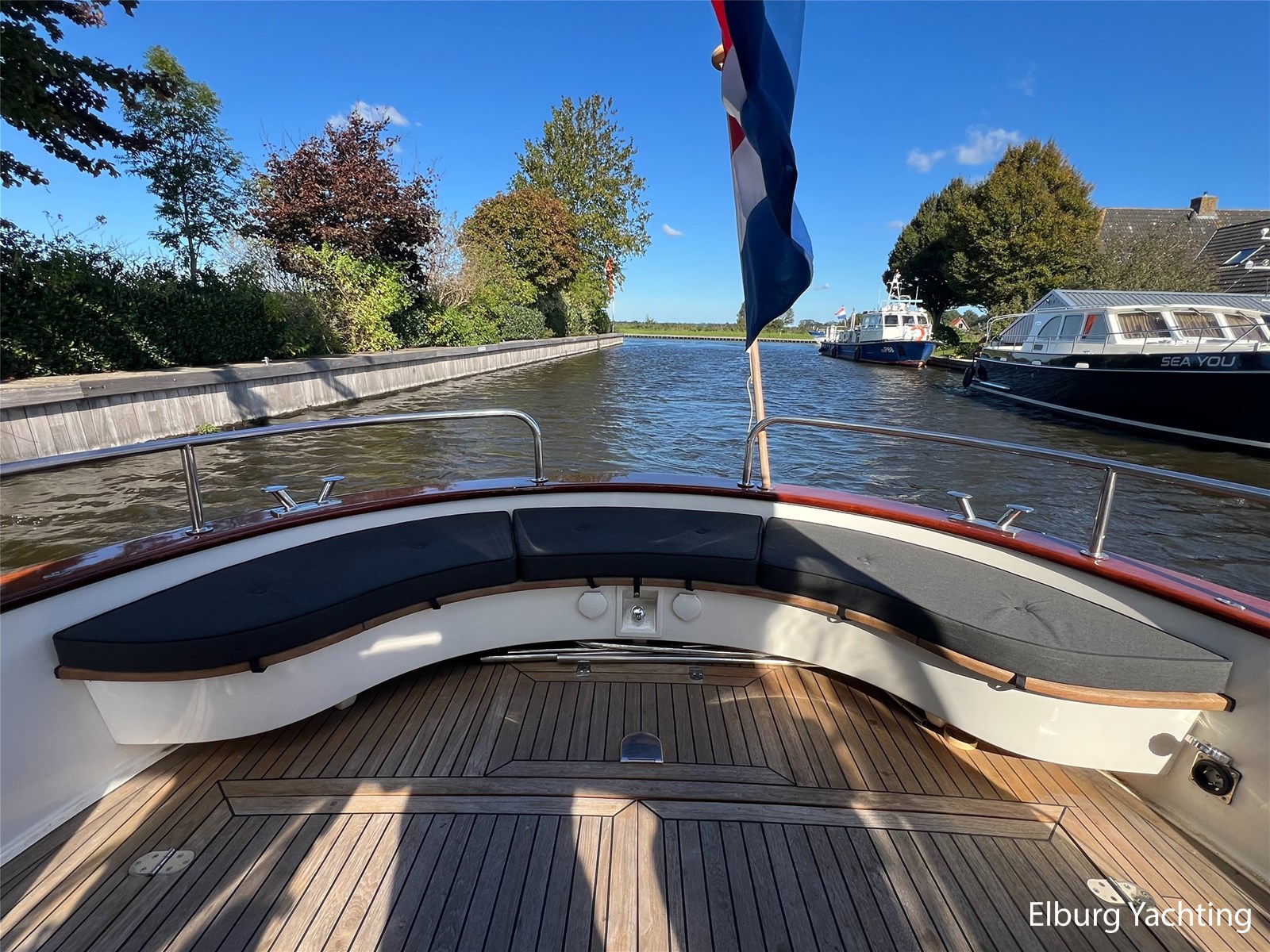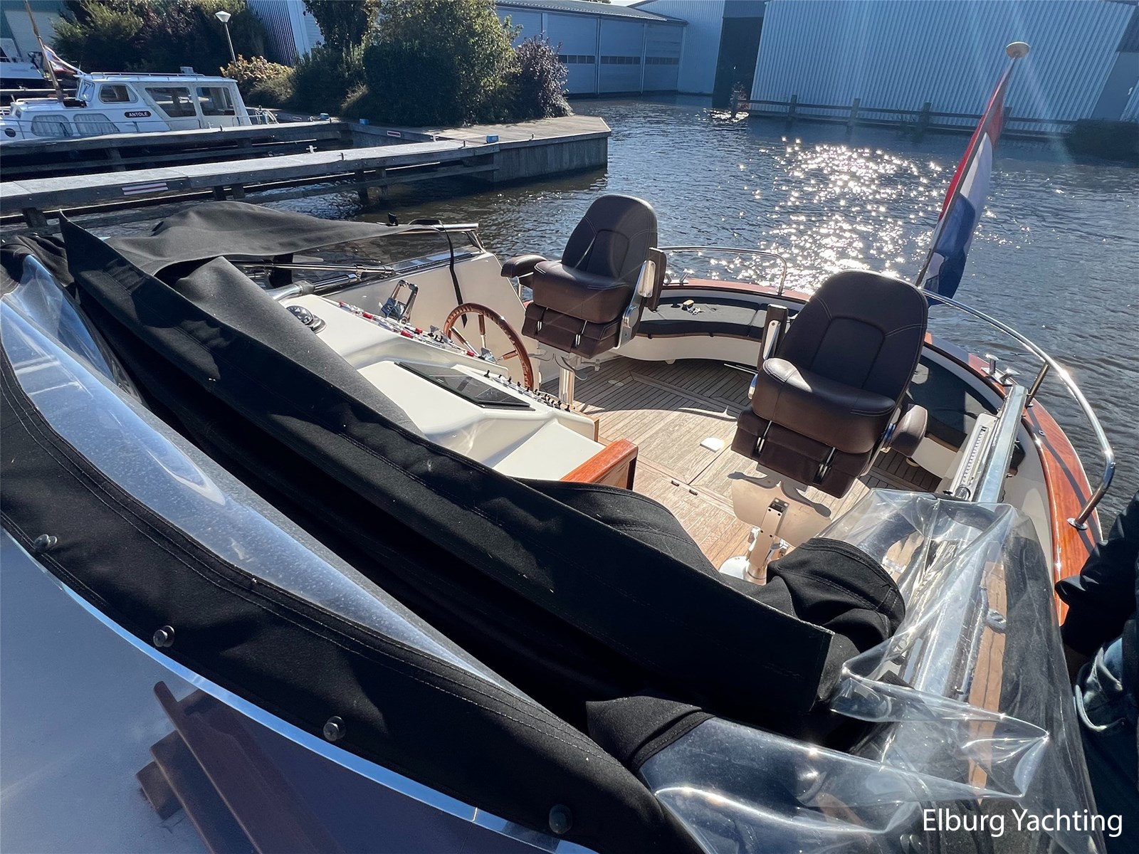 Prachtige Apreamare 10 Semi Cabinato met gezellige leefruimte buiten op zowel het voor- als achterdek. De huidige eigenaar heeft het afgelopen jaren vele zaken vernieuwd en verbeterd aan boord. De volgende werkzaamheden zijn uitgevoerd: Houtwerk/potdeksel in Q2 2025 opnieuw gelakt, keerkoppelingen zijn compleet gereviseerd, boiler 12 liter vervangen door nieuwe 40 liter boiler, Webasto heteluchtverwarming ingebouwd, nieuwe Raymarine plotter touchscreen en nieuwe Raymarine stuurautomaat, Garmin marifoon met AIS, 3000Watt omvormer Victron, Nieuwe accu's geplaatst, Nieuwe koelkast, Nieuwe lattenbodem en matrassen, onderwater schip kaal gehaald en opnieuw antifouling aangebracht. Sinds 2021 heeft dit schip het alle jaren in een schiphuis gelegen. Dit schiphuis in Ossenzijl is separaat overdraagbaar in de vorm van huur of koop. Deze Apreamare 10 Semi Cabinato is voorzien van: vaste bank in kuip en op het voordek met afneembare kussens, bakskisten, r.v.s. fenderhouders, volledige kuip tent over stuurstand met uitneembare delen, machinekamer bereikbaar via twee grote kuipluiken, dubbele Separ brandstoffilters, twee luxe vaarstoelen in hoogte verstelbaar, trimtabs, radio, victron battery display. De tent is over de stuurstand is neerklapbaar waarmee een minimale doorvaarthoogte van 2,20meter kan worden verkregen. Voor vragen en/of het maken van een afspraak bent u 7 dagen per week van harte welkom bij Elburg Yachting.