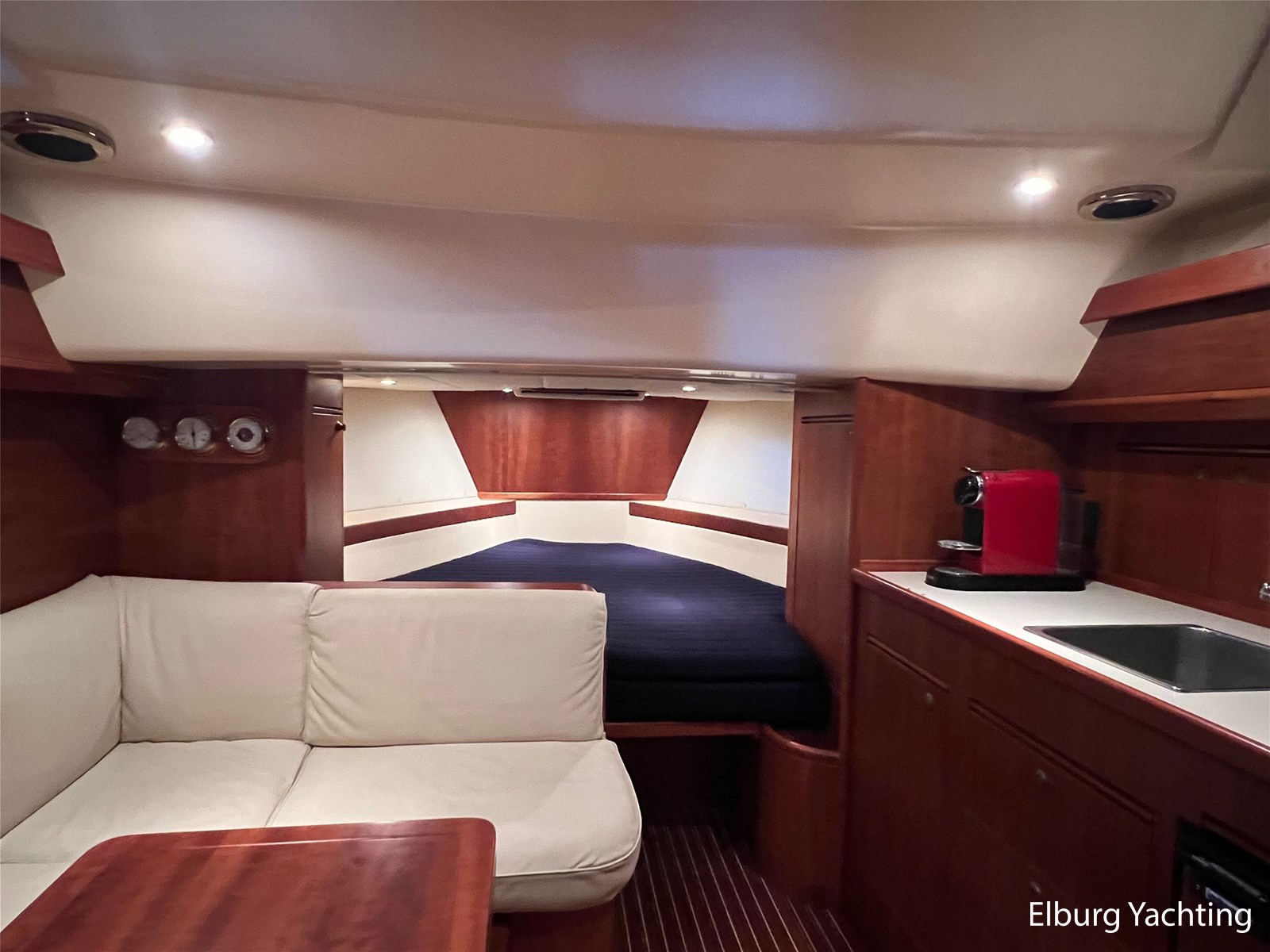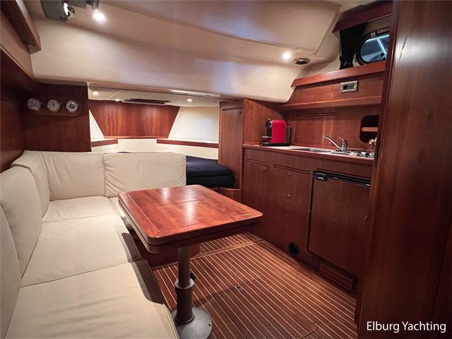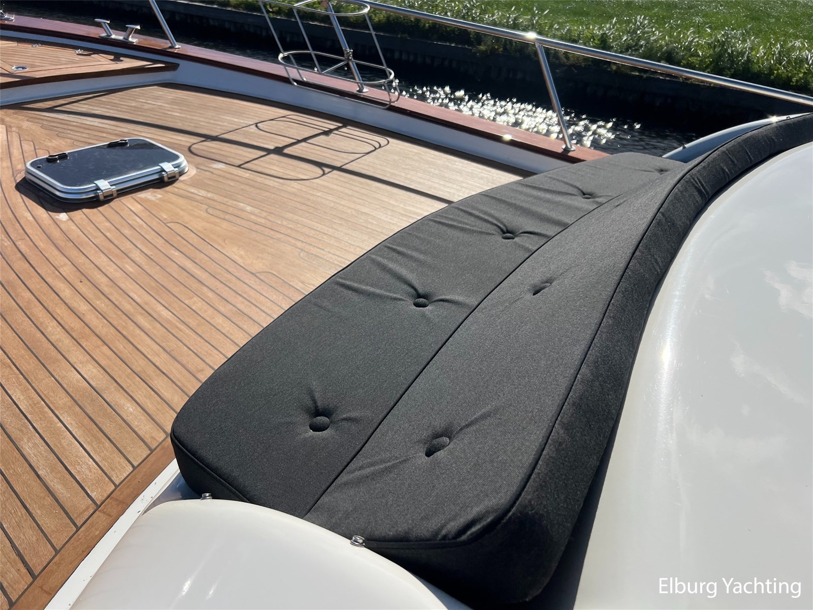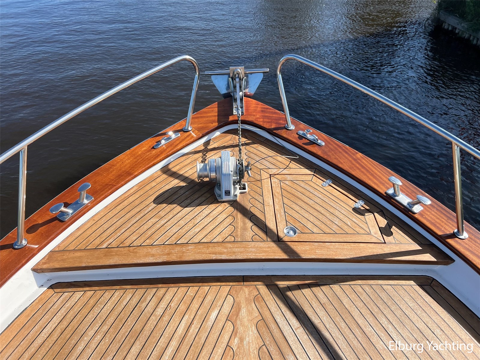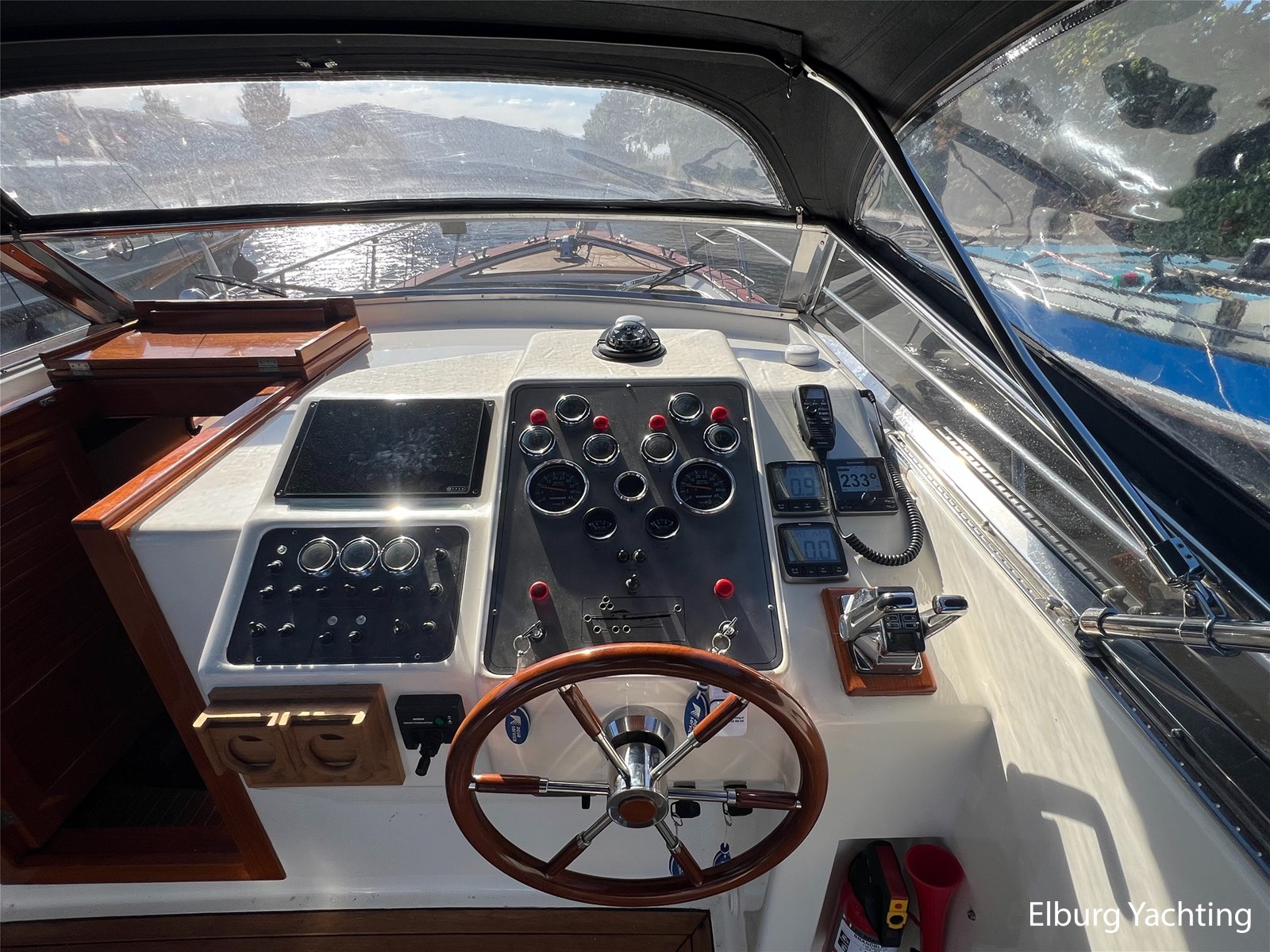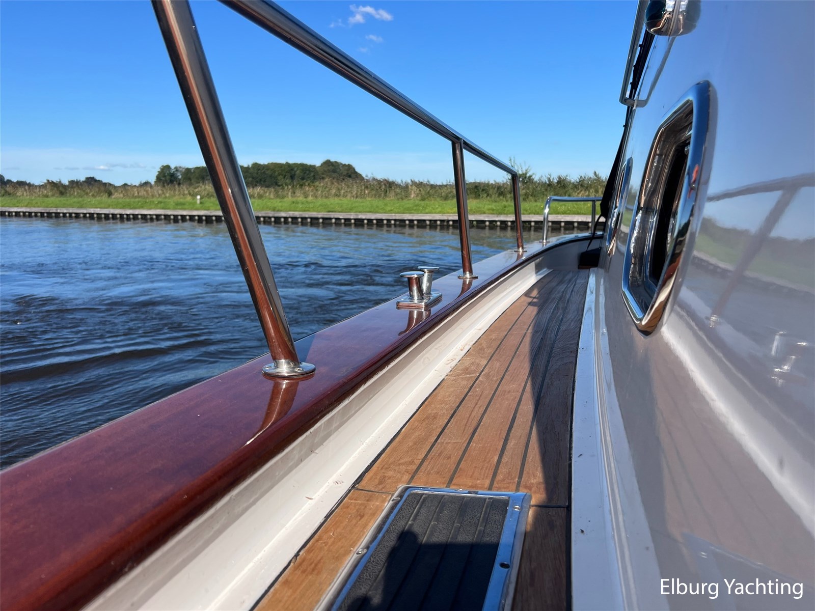 Prachtige Apreamare 10 Semi Cabinato met gezellige leefruimte buiten op zowel het voor- als achterdek. De huidige eigenaar heeft het afgelopen jaren vele zaken vernieuwd en verbeterd aan boord. De volgende werkzaamheden zijn uitgevoerd: Houtwerk/potdeksel in Q2 2025 opnieuw gelakt, keerkoppelingen zijn compleet gereviseerd, boiler 12 liter vervangen door nieuwe 40 liter boiler, Webasto heteluchtverwarming ingebouwd, nieuwe Raymarine plotter touchscreen en nieuwe Raymarine stuurautomaat, Garmin marifoon met AIS, 3000Watt omvormer Victron, Nieuwe accu's geplaatst, Nieuwe koelkast, Nieuwe lattenbodem en matrassen, onderwater schip kaal gehaald en opnieuw antifouling aangebracht. Sinds 2021 heeft dit schip het alle jaren in een schiphuis gelegen. Dit schiphuis in Ossenzijl is separaat overdraagbaar in de vorm van huur of koop. Deze Apreamare 10 Semi Cabinato is voorzien van: vaste bank in kuip en op het voordek met afneembare kussens, bakskisten, r.v.s. fenderhouders, volledige kuip tent over stuurstand met uitneembare delen, machinekamer bereikbaar via twee grote kuipluiken, dubbele Separ brandstoffilters, twee luxe vaarstoelen in hoogte verstelbaar, trimtabs, radio, victron battery display. De tent is over de stuurstand is neerklapbaar waarmee een minimale doorvaarthoogte van 2,20meter kan worden verkregen. Voor vragen en/of het maken van een afspraak bent u 7 dagen per week van harte welkom bij Elburg Yachting.