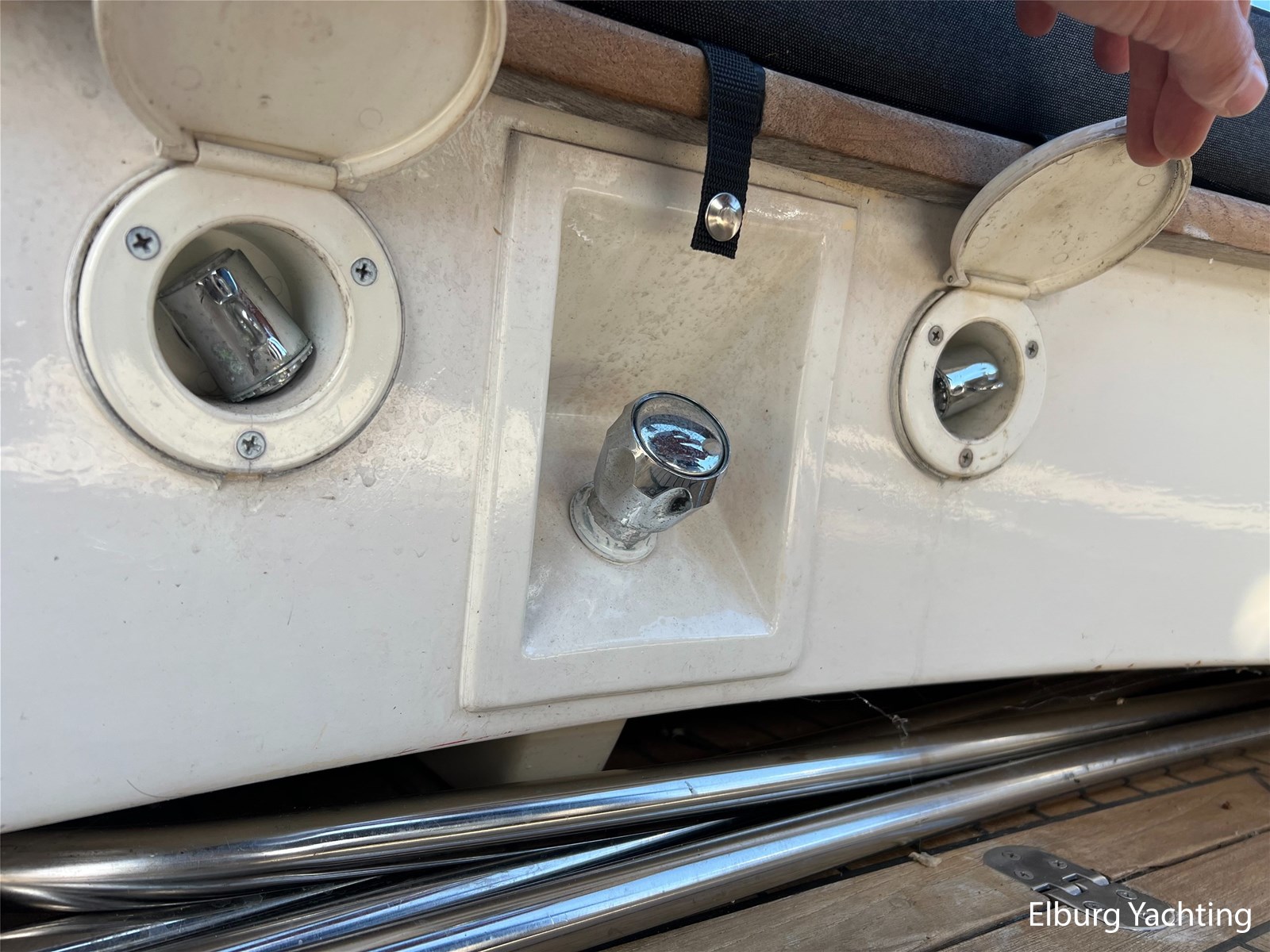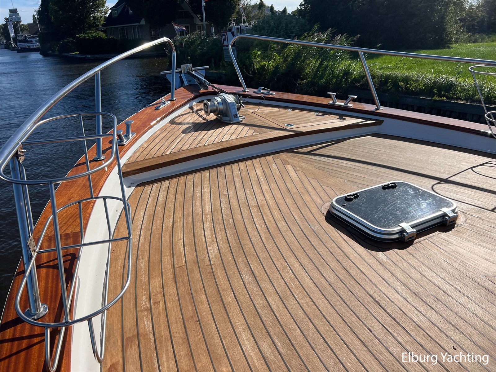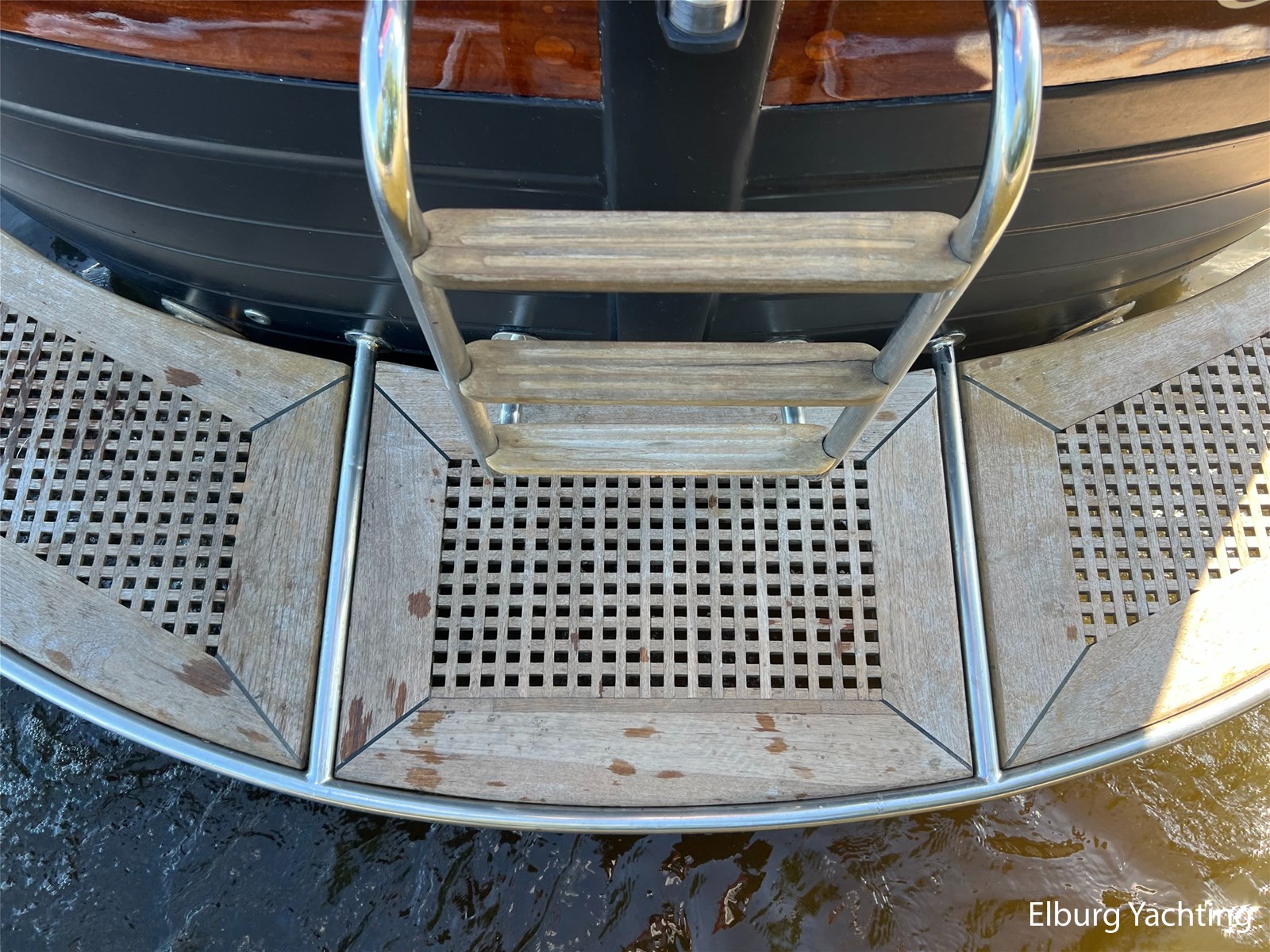 Aangehangen met teak belegd + r.v.s. zwemtrap
