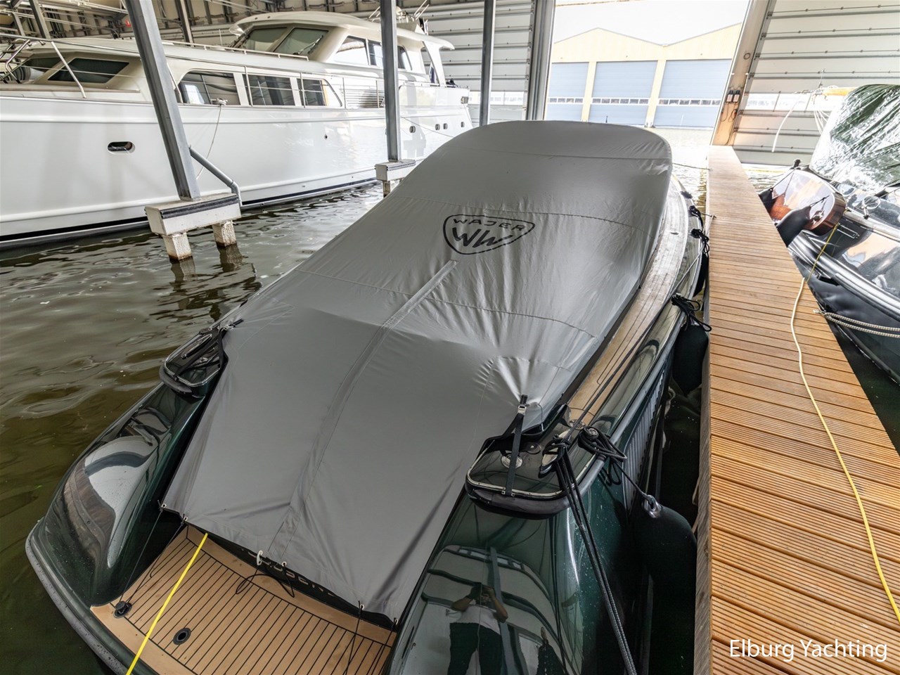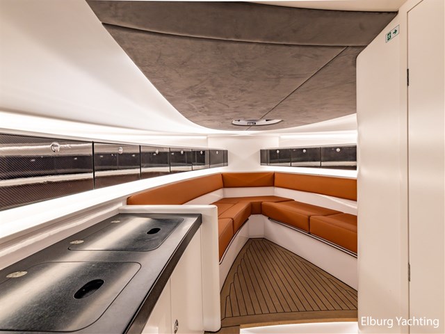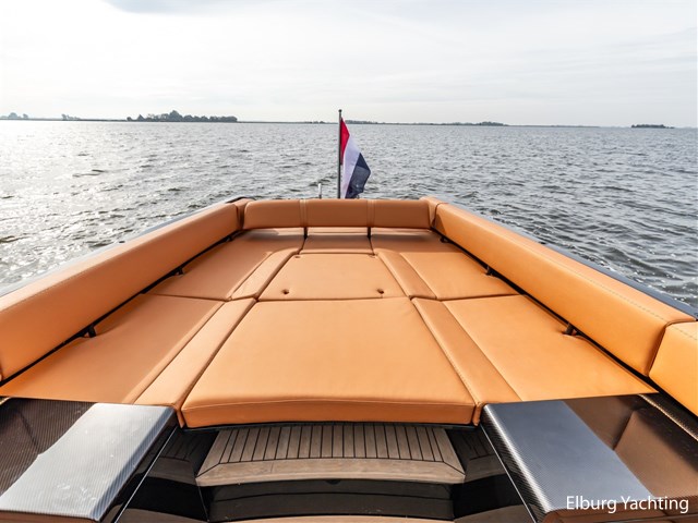 Prachtig uitgevoerde Wajer 38 met de IPS600 topmotorisering van Volvo Penta. Deze Wajer 38 is begin 2025 volledig door Wajer Yachts herspoten in de kleur Bentley Cumbrian Green, de binnen- en buitenbekleding is vernieuwd, er is een uitneembaar ligbed in het achterdek toegevoegd en de zwemtrap is vergemakkelijkt met een uitneembare handreling. In het oog springende elementen is het carbon fiber afgewerkte exterieur design, zwart geanodiseerd r.v.s. dekbeslag, Fusion audio met 4 versterkers / 8 speakers / 2 woofers, onderwaterverlichting, Webasto verwarming en airconditioning. Verder is deze Wajer 38 uitgerust met: dimbare sfeerverlichting in de kuip en kajuit, zonnebed op het voordek met afdekhoes, ankerkluis met bergruimte en water aansluiting, inklapbare fenderogen en bolders, wegneembare r.v.s. handgeleiders voor op- en afstappen van boord, klapbare voorruit, multifunctioneel display voor bediening boordsystemen en verlichting, drie keer Stidd stoelen met X-craft vering, afneembare zwarte biminitop over de stuurstand, volledige Wajer afdekhoes over de kuip. De kuipbank kan gebruikt worden in U-opstelling, volledig zonnebed of door het wegnemen van het middenstuk wordt er een volledige doorloop gecreëerd naar het zwemplateau. Topsnelheid ca. 45 knopen, kruissnelheid ca. 25 knopen.