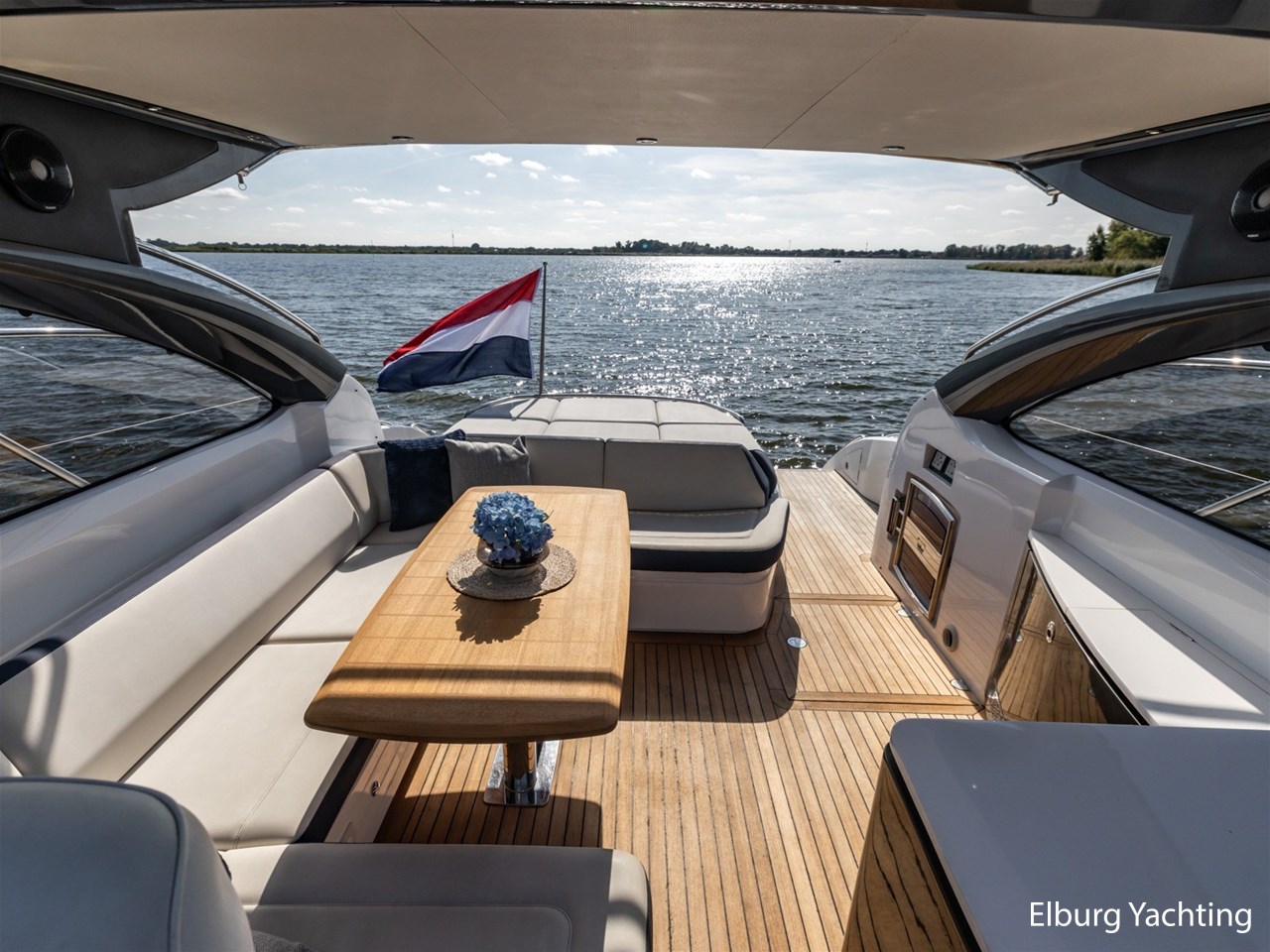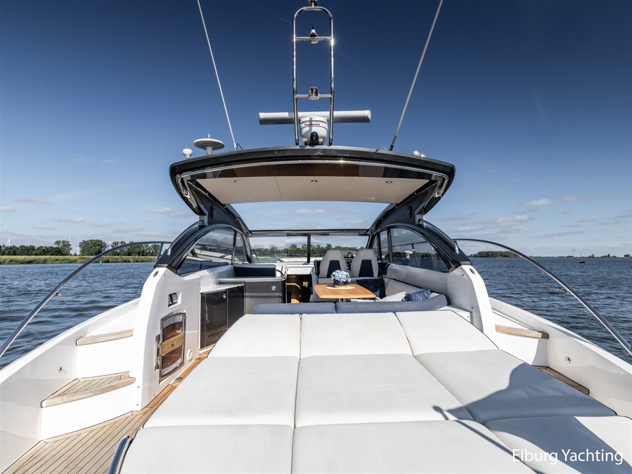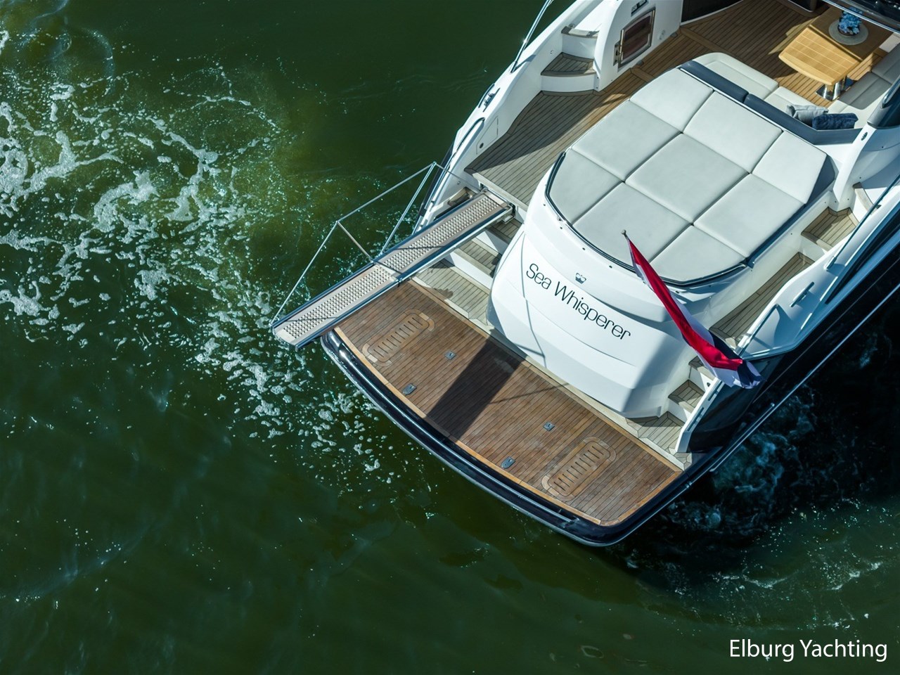 Deze mooie Princess V48 is met haar sportieve lijn een mooie verschijning op het water. Het schip beschikt over onder andere: hydraulisch zwemplatform voor de ultieme waterbeleving, garage voor bijboot van 3.25m, zonnebed in kuip. gangway, airconditioning per ruimte, hetelucht verwarming, elektrisch schuifdak over de kuip, motorservice april 2025, generator service april 2025, gepolijst oktober 2025, Volvo Penta IPS systeem voor eenvoudig manoeuvreren, Volvo Penta motormanagement systeem, roerstandaanwijzer, Dockmate afstandsbediening, volledig afsluitbare tent rondom kuip, uitstroomopening voor verwarming in kuip, houten vloer in salon + keuken, bed in gastenhut is verstelbaar en te gebruiken als V-bed of vrijstaand bed, muggenhorren, Fisher en paykel vaatwasser, Electrolux 1-3 kg wasmachine, buitenkeuken met grill en spoelbak, 2 x luxe vaarstoel.