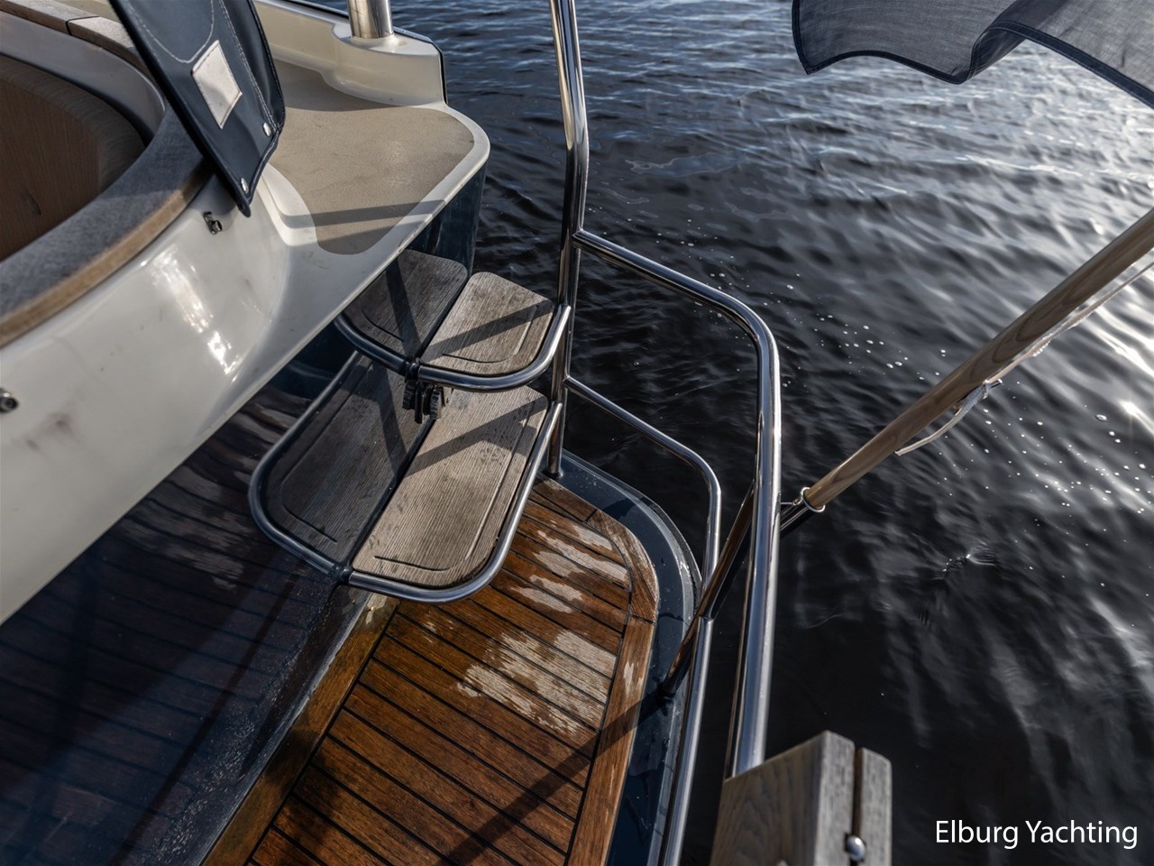 Geïntegreerd met teak + 2 x opstap naar gangboord + r.v.s. zwemtrap