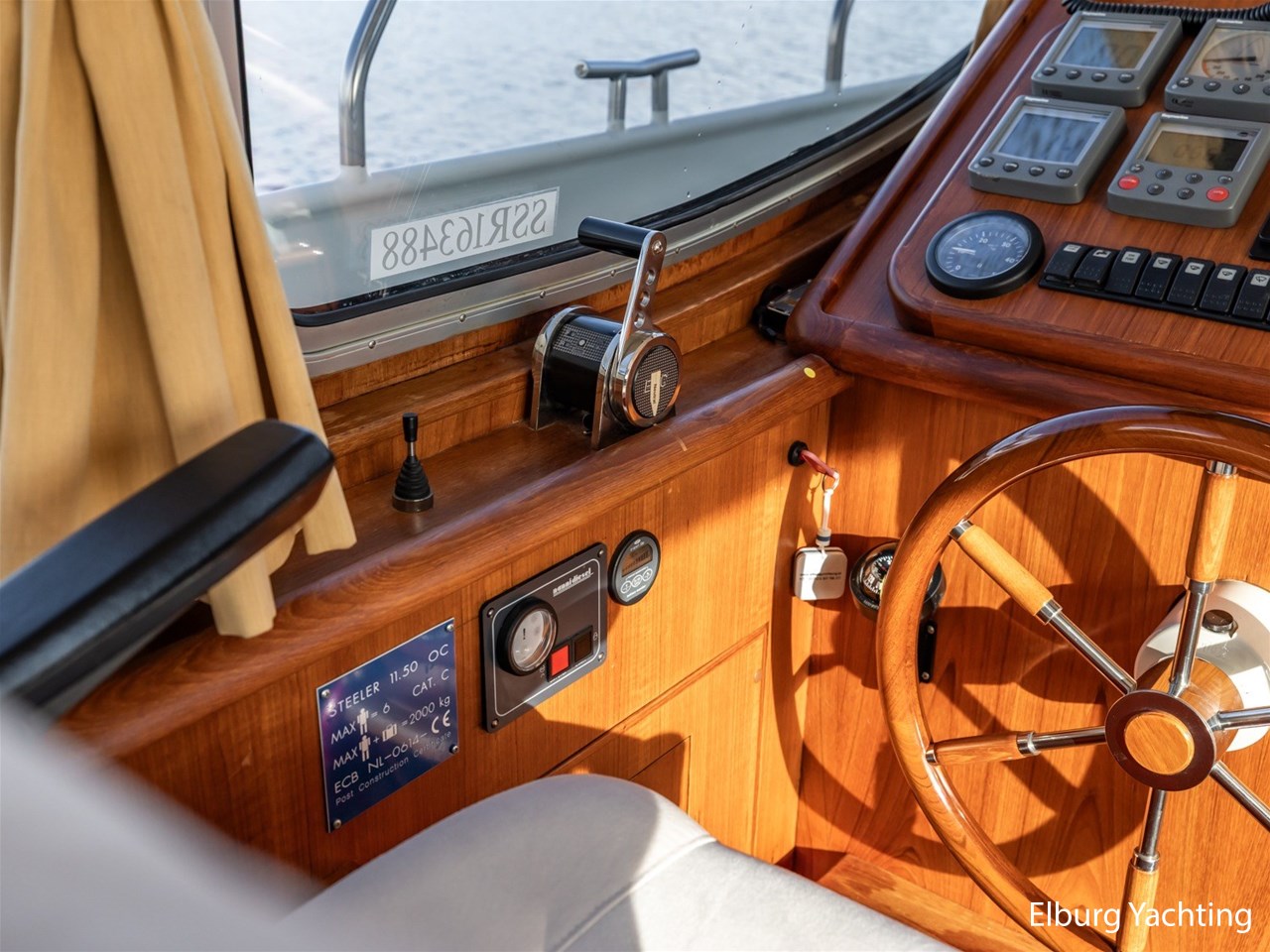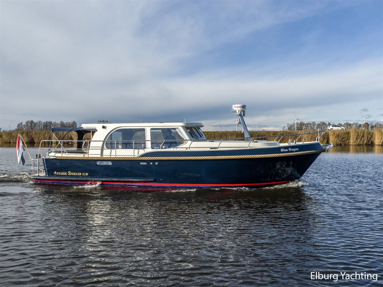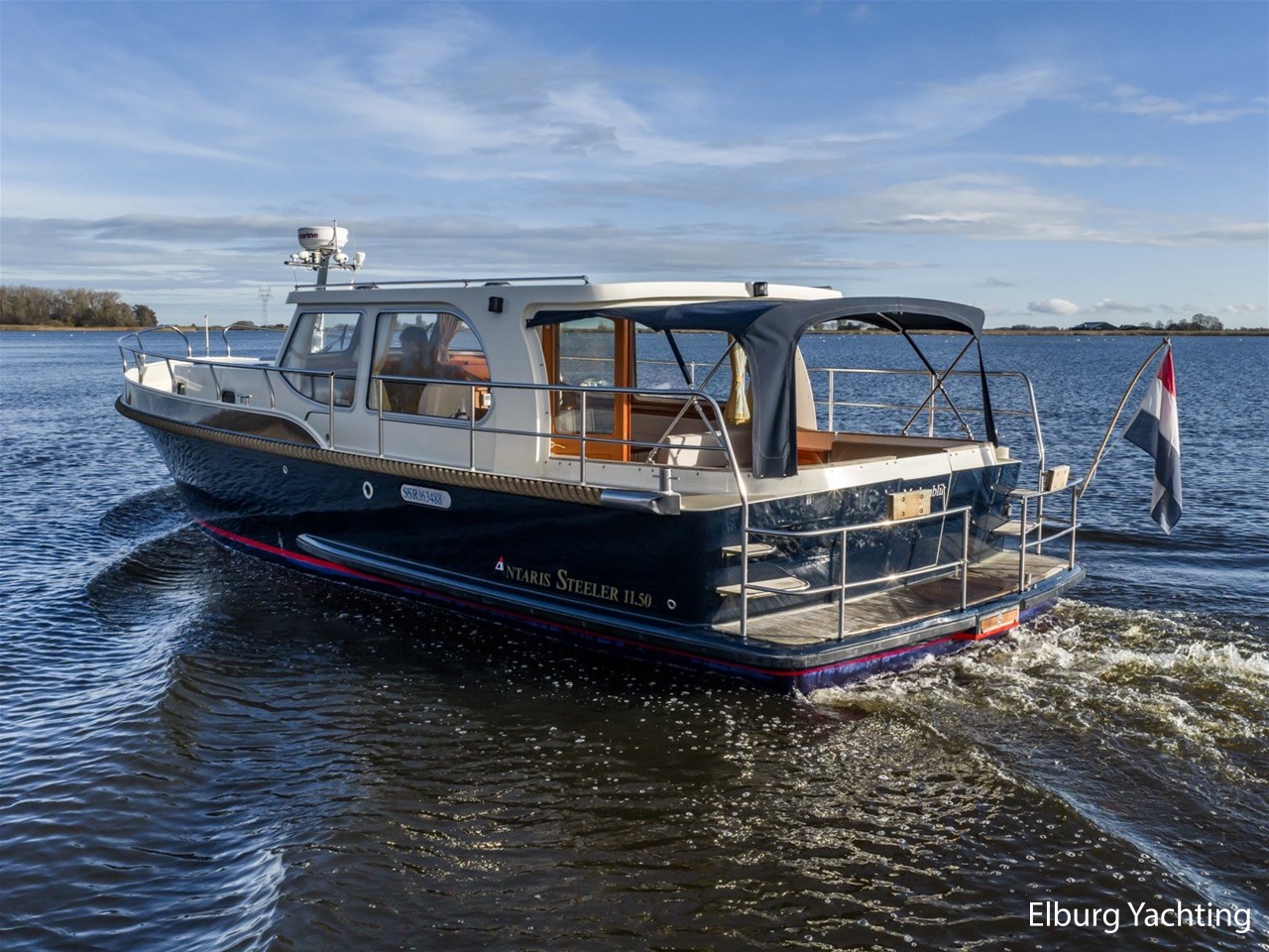 Zeer stijlvol en comfortabel gebouwde Antaris Steeler 11.50 open kuip. Het schip biedt voor zijn lengte veel ruimte aan boord met een royale open kuip, aangesloten salon en kombuis en twee hutten indeling. Deze Antaris Steeler 11.50 is zeer rijk uigerust qua techniek en voorzien van: Volledig afsluitbare kuiptent, 4 x gelakte houten klapdeur naar achterdek (waardoor salon en achterdek een grote leefruimte worden), romp geschilderd 2023, bekleding in salon + stuurstoel 2025, service accu's 2025, kabelaring rondom, Corian topbladen, salonbank met een extra inzetstuk ook te gebruiken als tweepersoons bed, muggenhorren, separate wasmachine, extra geïsoleerde motorbekisting, kuipverlichting, eenvoudige opstap van zwemplateau naar gangboord d.m.v. traptreden, de Hydronautica afstandsbediening maakt het aan- en afmeren kinderspel met een directe bediening voor de boeg- en hekschroef / motor voor- en achteruit / ankerlier, zitbank in kuip met bijbehorende kussens, groot opbergluik, klapbare r.v.s. doorvaarthoogte met staande mast ca. 3,70 m en met gestreken mast ca. 2,40 m. Voor vragen en/of het maken van een afspraak bent u 7 dagen per week van harte welkom bij Elburg Yachting.