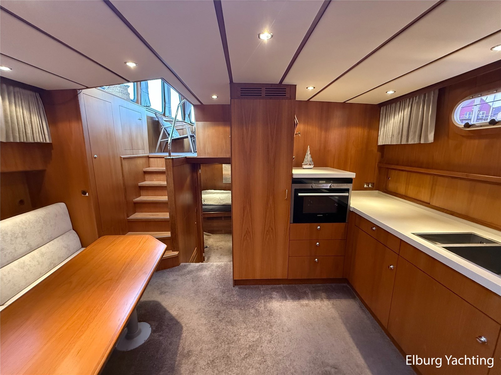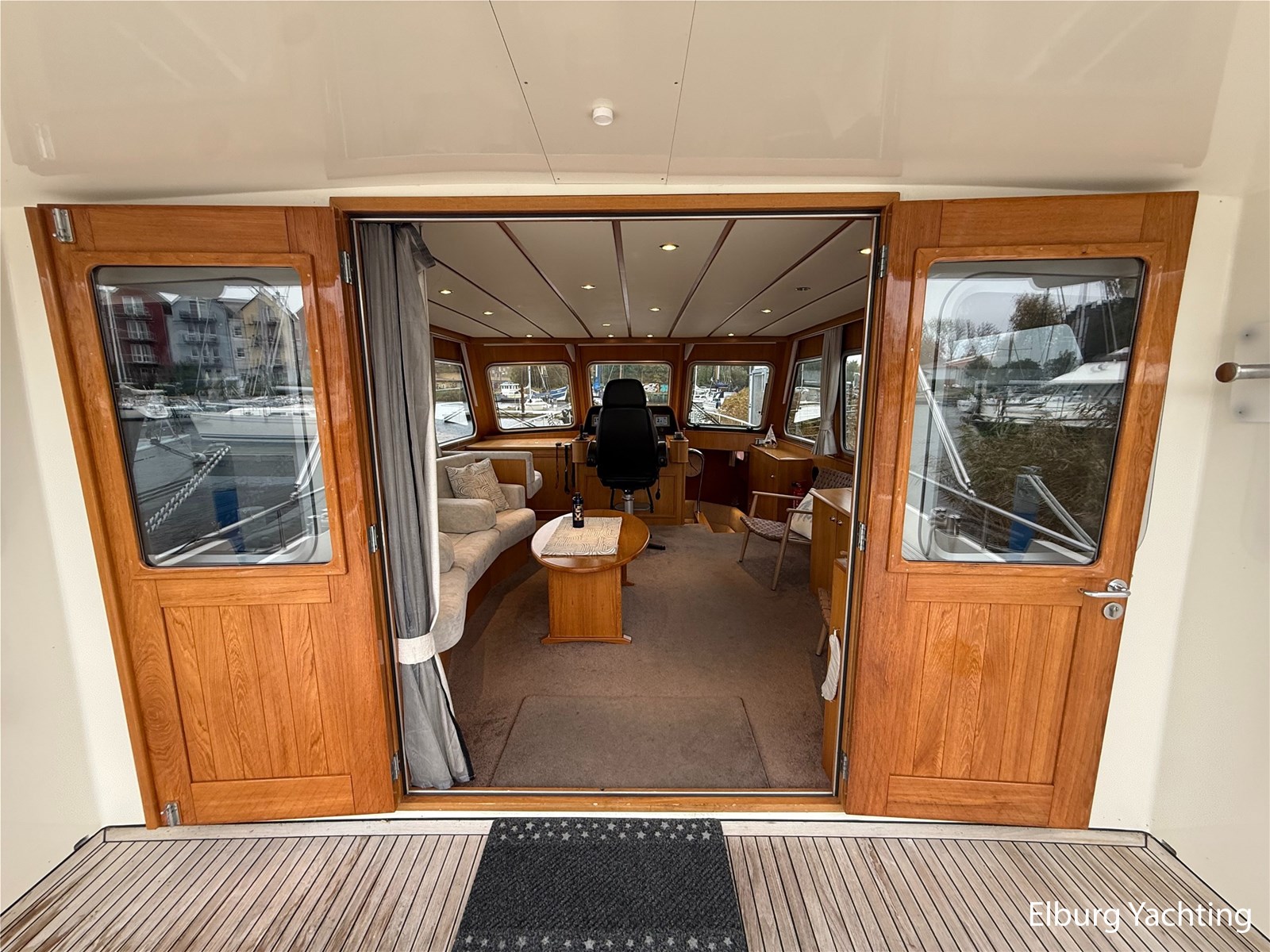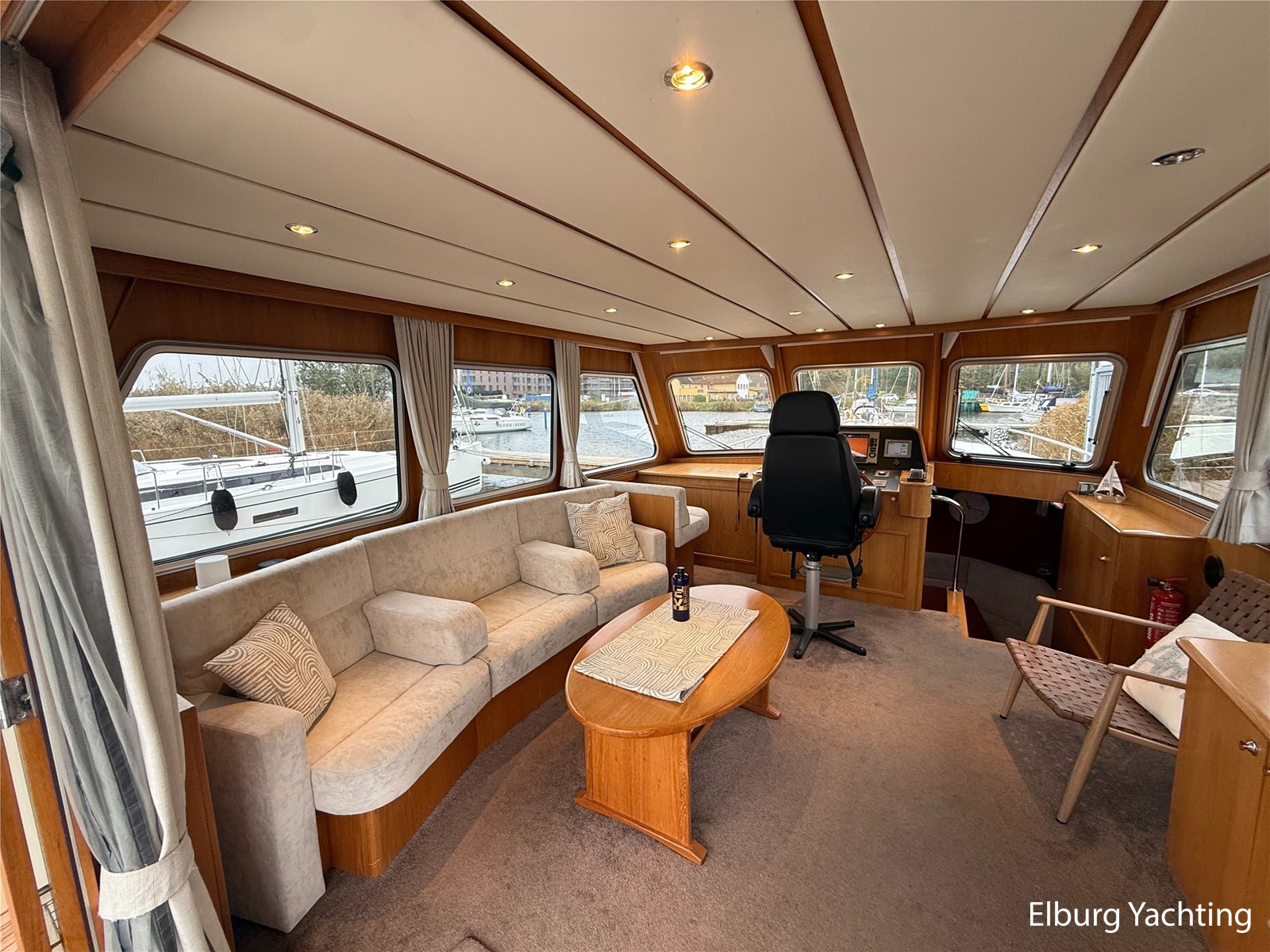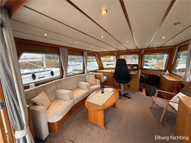 Deze ruime combi kotter 1500 Open Kuip is een schip met veel ruimte boven en beneden deks. Dit schip wordt geleverd met o.a: R.v.s. reling, geïntegreerde bakskisten op achterdek (inclusief teak klep), Hydronautica, 2 x houten openslaande deuren naar open kuip (inclusief dubbel glas), camerasysteem op spiegel (uit te lezen met Raymarine E140W), vlucht/ventilatie luiken, halogeen verlichting, kunststof topbladen in keuken, Siemens vaatwasser, dubbele verschansing, Siemens was/droger combinatie, elektrisch klapbare mast, r.v.s. stootrand, 2 x trap naar zwemplatvorm, lederen stuurstoel, groot achterdek, opslag onder de kuip, r.v.s. zwemtrap tevens te gebuiken als zijladder en ladder naar dak salon.
