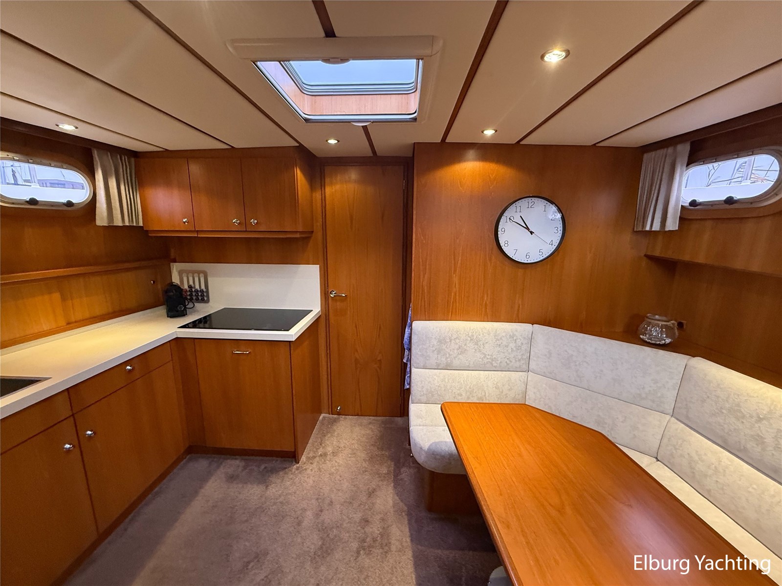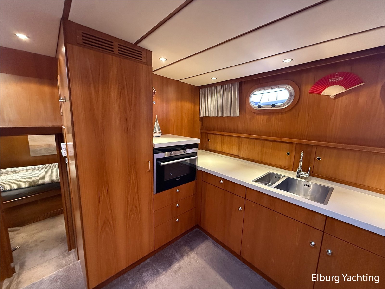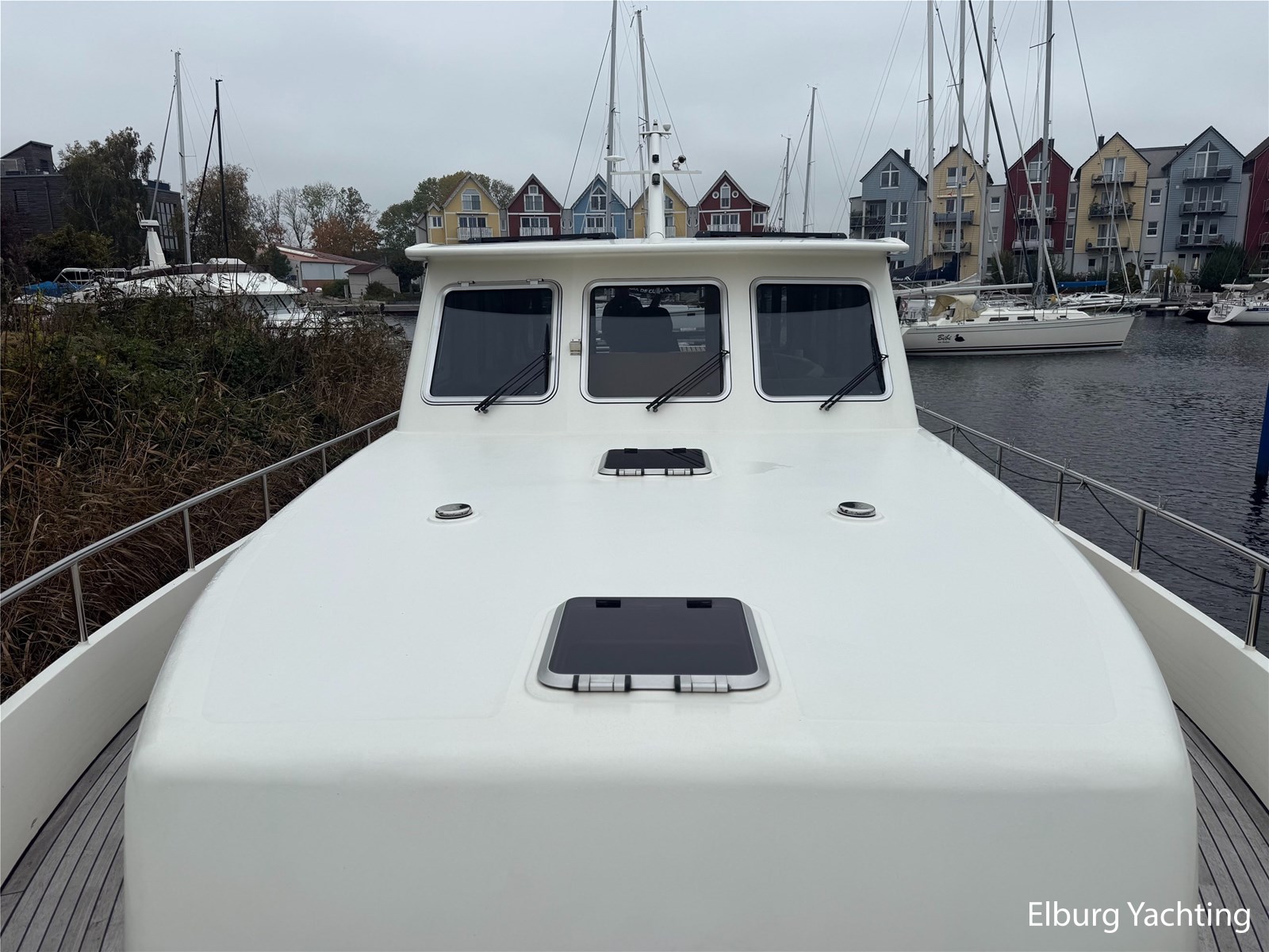 Deze ruime combi kotter 1500 Open Kuip is een schip met veel ruimte boven en beneden deks. Dit schip wordt geleverd met o.a: R.v.s. reling, geïntegreerde bakskisten op achterdek (inclusief teak klep), Hydronautica, 2 x houten openslaande deuren naar open kuip (inclusief dubbel glas), camerasysteem op spiegel (uit te lezen met Raymarine E140W), vlucht/ventilatie luiken, halogeen verlichting, kunststof topbladen in keuken, Siemens vaatwasser, dubbele verschansing, Siemens was/droger combinatie, elektrisch klapbare mast, r.v.s. stootrand, 2 x trap naar zwemplatvorm, lederen stuurstoel, groot achterdek, opslag onder de kuip, r.v.s. zwemtrap tevens te gebuiken als zijladder en ladder naar dak salon.