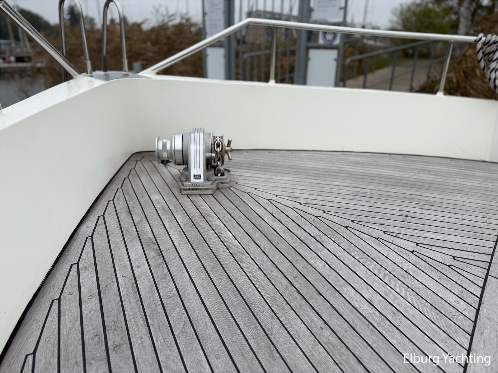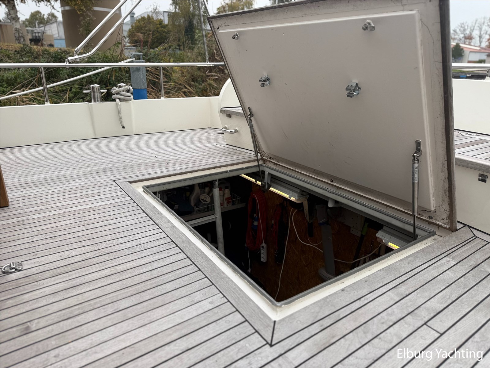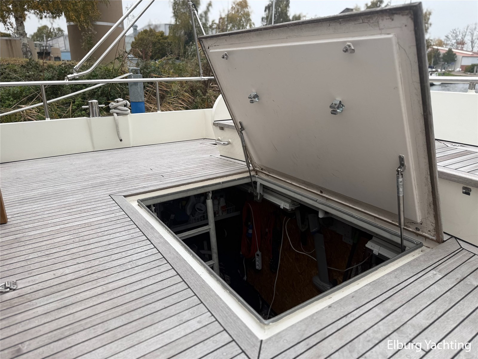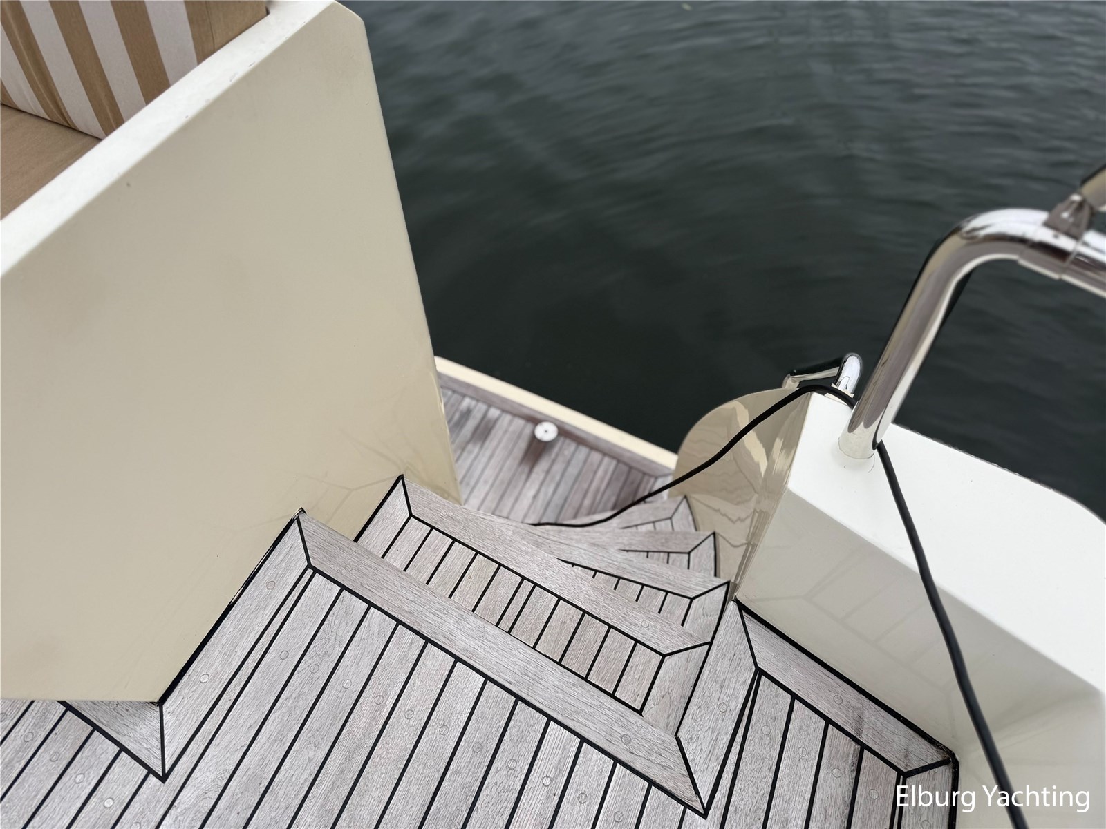 - Geïntegreerd + teak dek + r.v.s. zwemtrap + 2 x trap van achterdek naar zwemplatvorm
