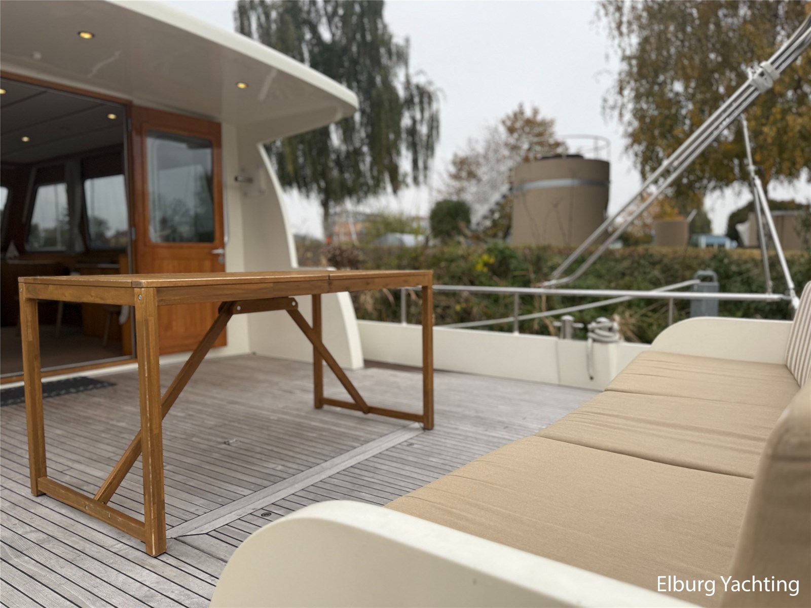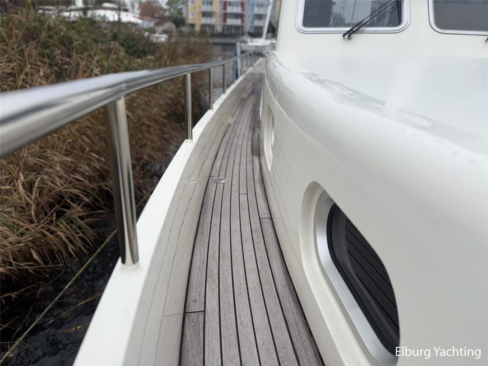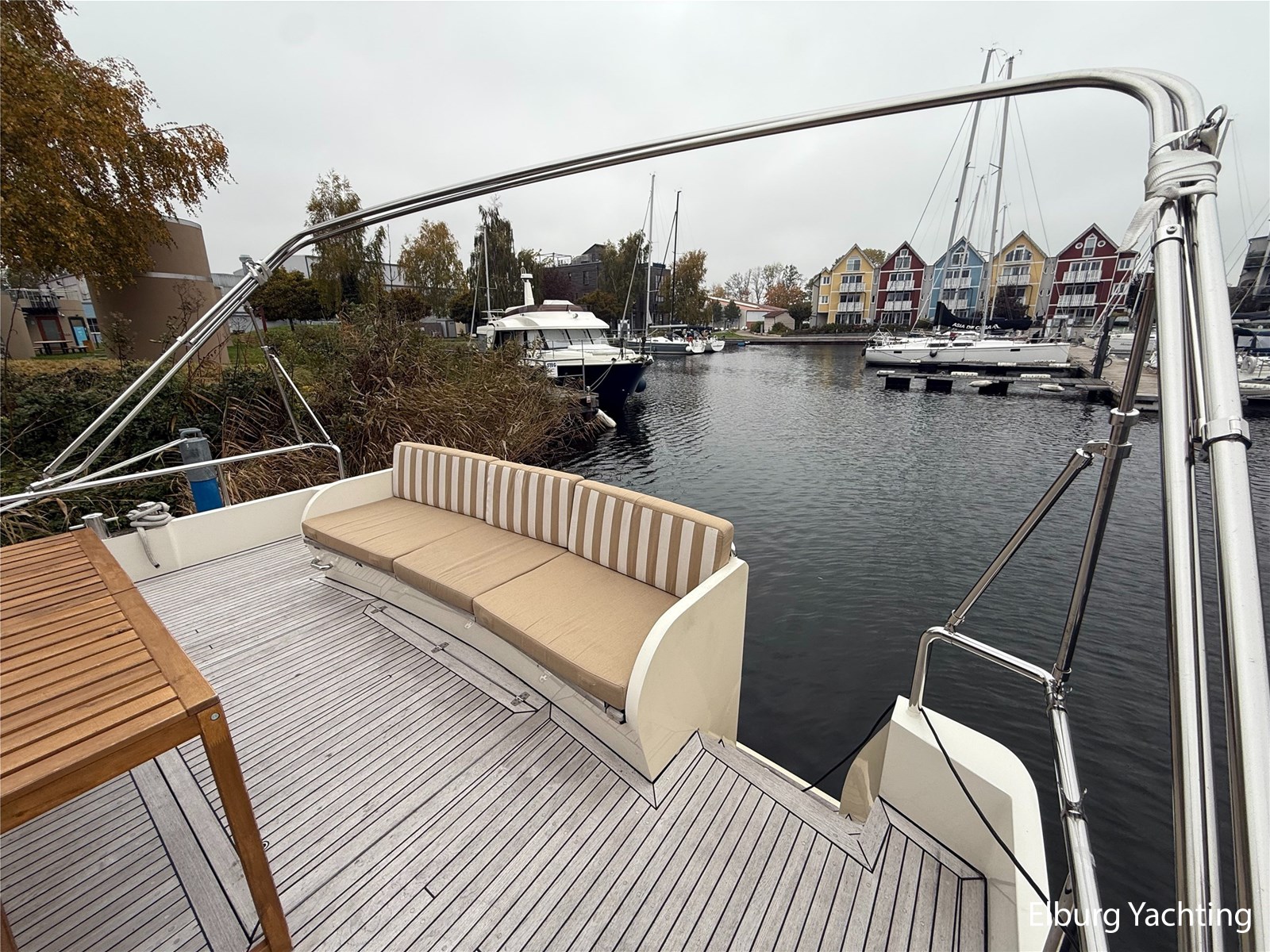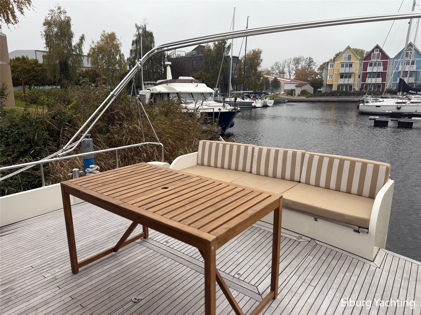 - Geïntegreerd + teak dek + r.v.s. zwemtrap + 2 x trap van achterdek naar zwemplatvorm