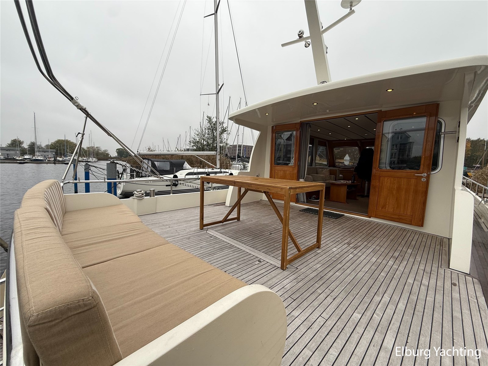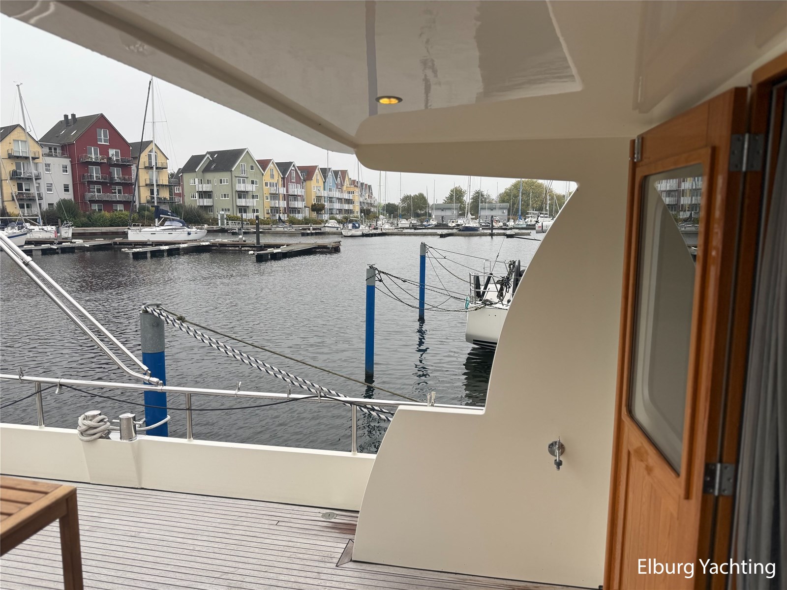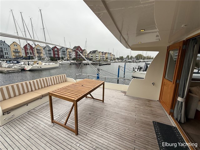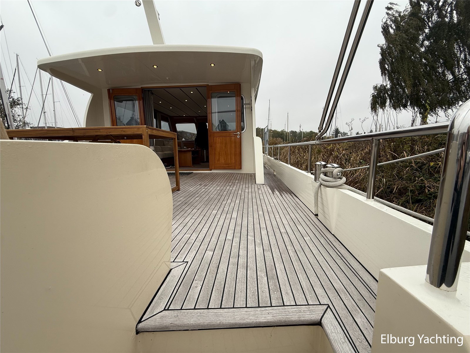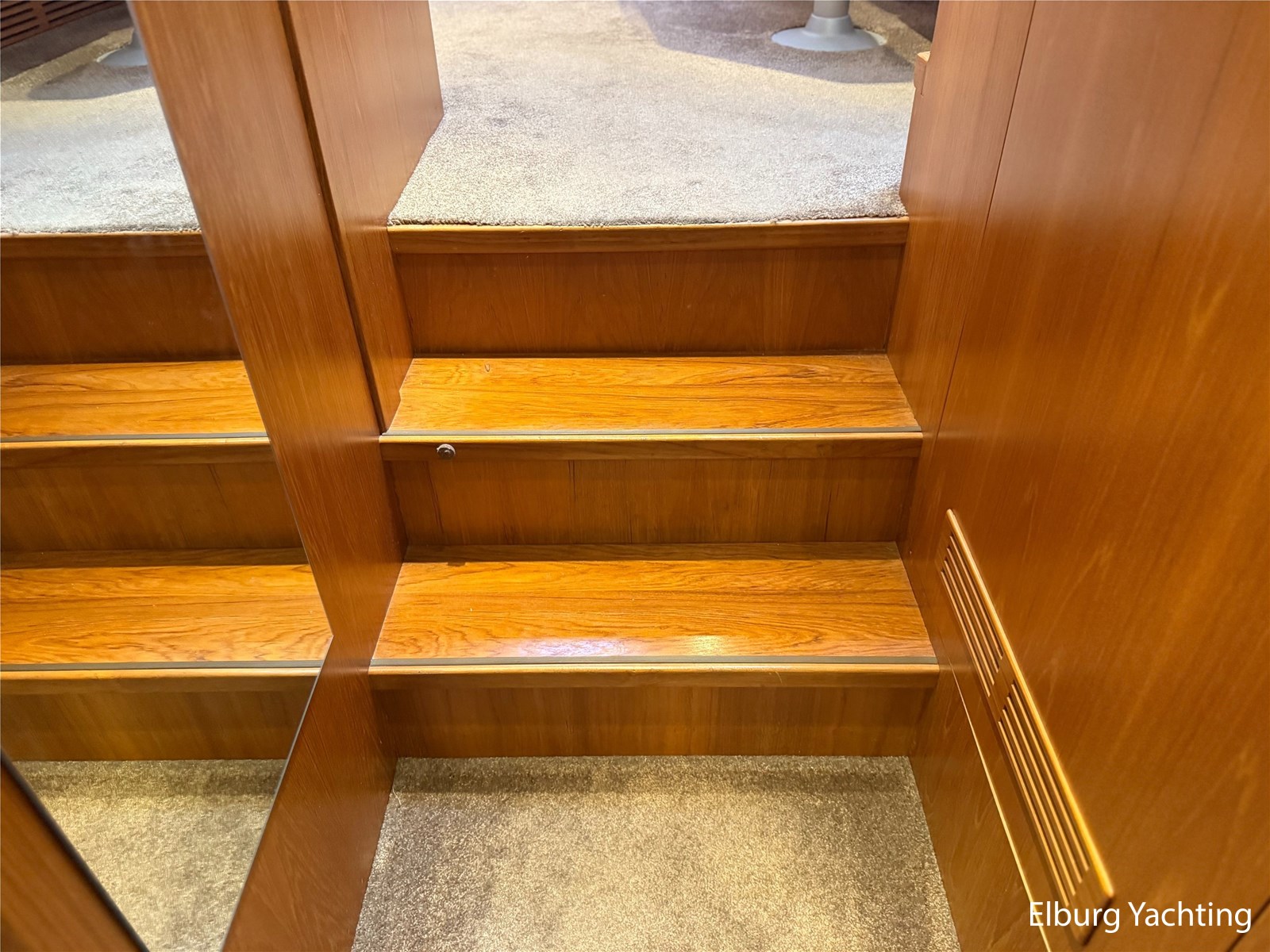 - Geïntegreerd + teak dek + r.v.s. zwemtrap + 2 x trap van achterdek naar zwemplatvorm