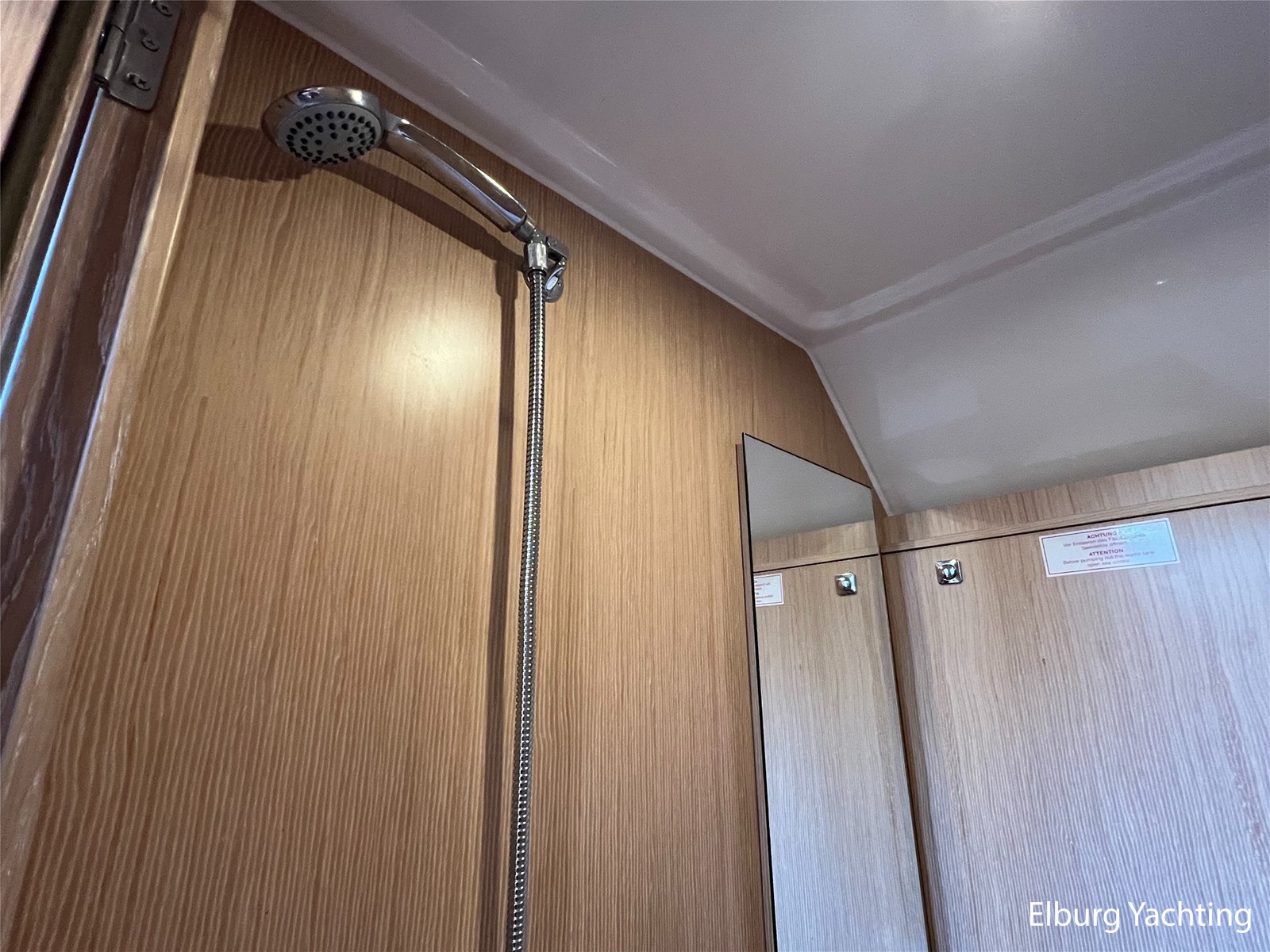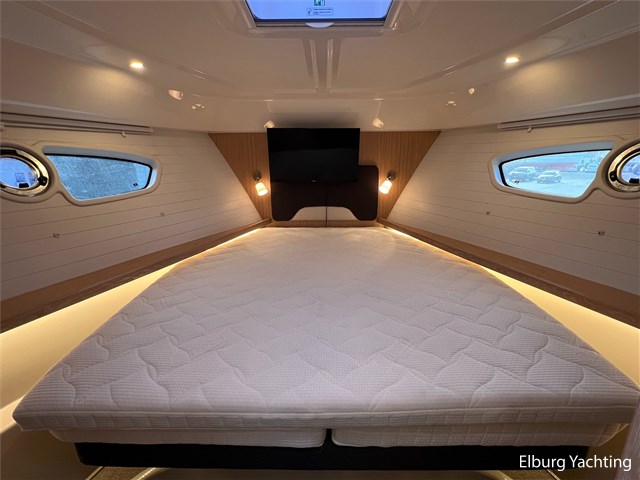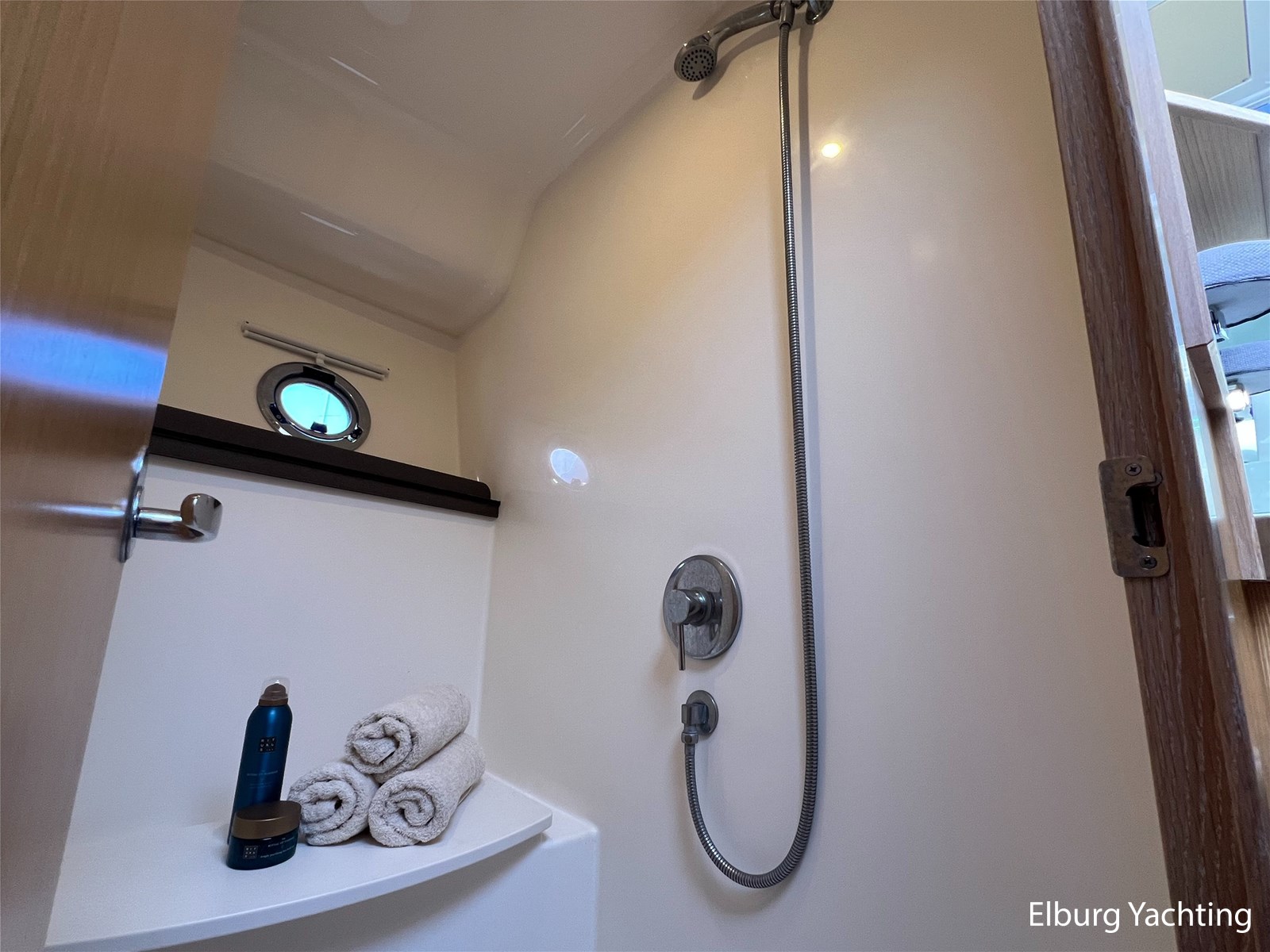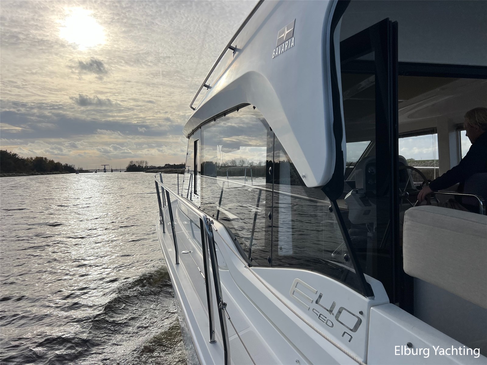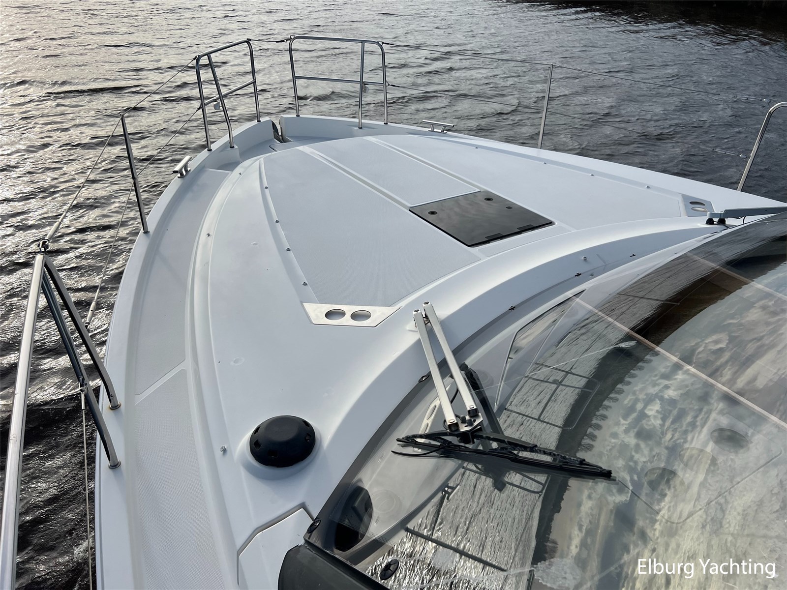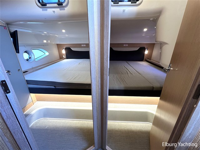 Deze jonge Bavaria E40 wordt aangeboden door haar tweede eigenaar. De Bavaria E40 Sedan is gebouwd met heel veel praktische ruimte voor haar afmeting en is voorzien van 3 volwaardige hutten. Dit exemplaar is uitgerust met de topmotorisering van 1 x 300 pk Volvo Penta D4 en heeft een vast schroefas aandrijving, waarmee een maximale snelheid wordt bereikt van ca. 13 knopen. De kuip biedt plaats voor ca. 8 personen en loopt gelijkvloers rond met de gangboorden. Vanuit de kuip is er een korte doorloop naar de salon, waar zich aan de rechterzijde de verhoogde stuurstand bevind. De stuurstand biedt plek voor minimaal 2 personen en beschikt over alle benodigde moderne navigatie apparatuur; zoals een een elektrische boeg- en hekschroef bediening, een vaste Simrad HS35 marifoon met daarnaast een tweede gekoppelde handheld toestel, een Simrad NSS Evo 3 plotter met autopilot en een Fusion audiosysteem met volumeregeling in de salon en kuip. Aan bakboordzijde van de salon is er een ruim opgezette keuken gesitueerd met aan de stuurboordzijde de dinette die volledig uitzicht rondom biedt. De salon is voorzien van grote raampartijen die zorgen voor een ruimtelijk gevoel en veel lichtinval. Tussen de stuurstand en de kuip bevinden zich wegschuifbare ramen, zodat de kapitein en zijn bezoek samen de tocht ervaren. Naar voren in het schip bevind zich een 2 persoons hut, met aan de bakboordzijde een toilet en aan stuurboordzijde een douchecabine. Achter de stuurstand is via een trap naar beneden de tweede en derde hut te bereikbaar, elk voorzien van een tweepersoonsbed. Ook is er een tweede badkamer met een gezamenlijk douche en toilet aanwezig. Deze Bavaria E40 is verder voorzien van: Geïntegreerde kuipbanken met afneembare kussens, afsluitbare kuiptent (2025), afneembare r.v.s. davits, klapbaar zwemplateau in spiegel, 2 x dakluik in salon + 2 x schuifraam (SB+BB), kussens voor zonnebed op voordek aanwezig, groot bergluik in voorschip, TV in salon en in alle hutten, klapbare r.v.s. mast met toplicht waarmee een minimale hoogte verkregen wordt van ca. 3,80m. Voor vragen en/of het maken van een afspraak bent u 7 dagen per week van harte welkom bij Elburg Yachting