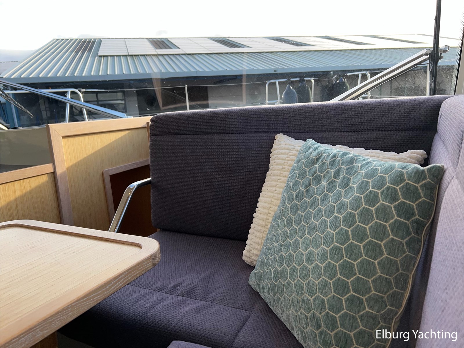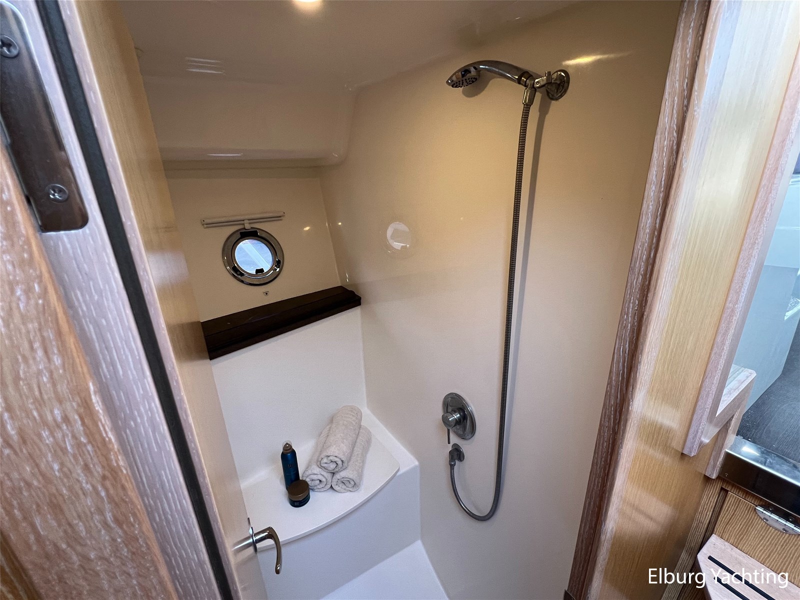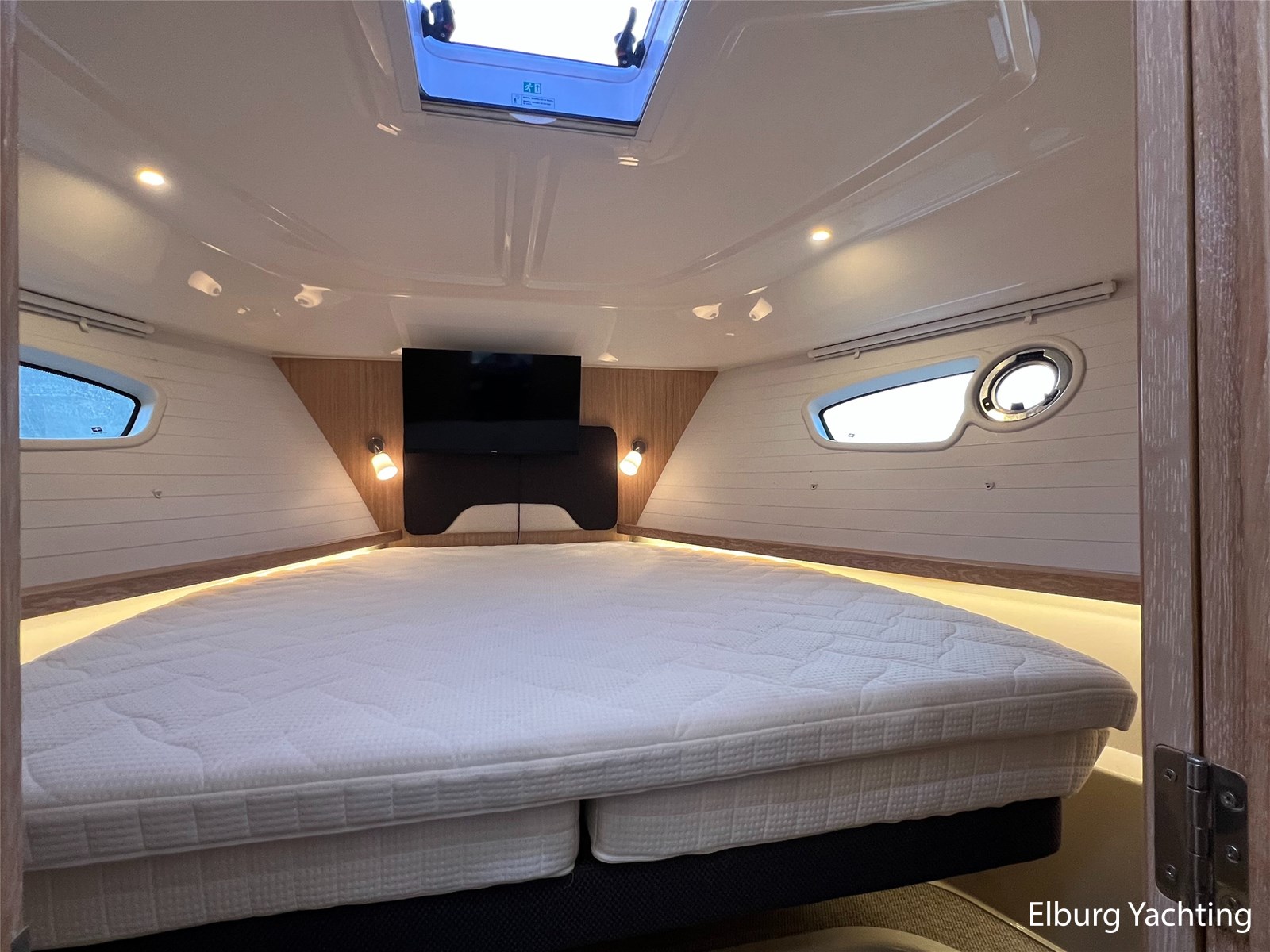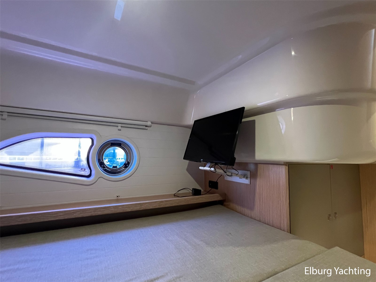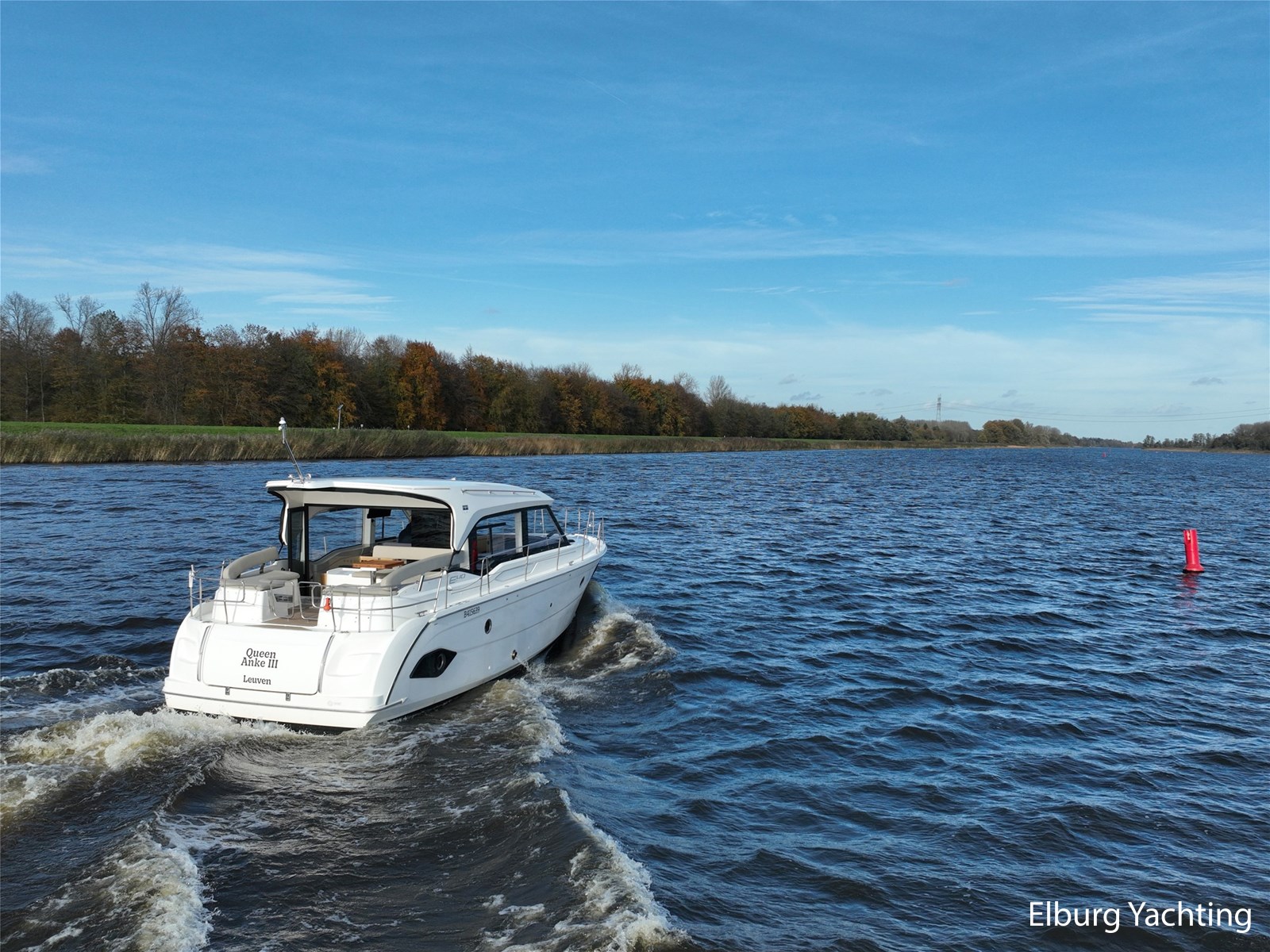 Deze jonge Bavaria E40 wordt aangeboden door haar tweede eigenaar. De Bavaria E40 Sedan is gebouwd met heel veel praktische ruimte voor haar afmeting en is voorzien van 3 volwaardige hutten. Dit exemplaar is uitgerust met de topmotorisering van 1 x 300 pk Volvo Penta D4 en heeft een vast schroefas aandrijving, waarmee een maximale snelheid wordt bereikt van ca. 13 knopen. De kuip biedt plaats voor ca. 8 personen en loopt gelijkvloers rond met de gangboorden. Vanuit de kuip is er een korte doorloop naar de salon, waar zich aan de rechterzijde de verhoogde stuurstand bevind. De stuurstand biedt plek voor minimaal 2 personen en beschikt over alle benodigde moderne navigatie apparatuur; zoals een een elektrische boeg- en hekschroef bediening, een vaste Simrad HS35 marifoon met daarnaast een tweede gekoppelde handheld toestel, een Simrad NSS Evo 3 plotter met autopilot en een Fusion audiosysteem met volumeregeling in de salon en kuip. Aan bakboordzijde van de salon is er een ruim opgezette keuken gesitueerd met aan de stuurboordzijde de dinette die volledig uitzicht rondom biedt. De salon is voorzien van grote raampartijen die zorgen voor een ruimtelijk gevoel en veel lichtinval. Tussen de stuurstand en de kuip bevinden zich wegschuifbare ramen, zodat de kapitein en zijn bezoek samen de tocht ervaren. Naar voren in het schip bevind zich een 2 persoons hut, met aan de bakboordzijde een toilet en aan stuurboordzijde een douchecabine. Achter de stuurstand is via een trap naar beneden de tweede en derde hut te bereikbaar, elk voorzien van een tweepersoonsbed. Ook is er een tweede badkamer met een gezamenlijk douche en toilet aanwezig. Deze Bavaria E40 is verder voorzien van: Geïntegreerde kuipbanken met afneembare kussens, afsluitbare kuiptent (2025), afneembare r.v.s. davits, klapbaar zwemplateau in spiegel, 2 x dakluik in salon + 2 x schuifraam (SB+BB), kussens voor zonnebed op voordek aanwezig, groot bergluik in voorschip, TV in salon en in alle hutten, klapbare r.v.s. mast met toplicht waarmee een minimale hoogte verkregen wordt van ca. 3,80m. Voor vragen en/of het maken van een afspraak bent u 7 dagen per week van harte welkom bij Elburg Yachting