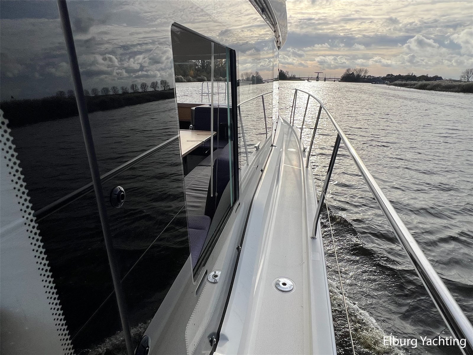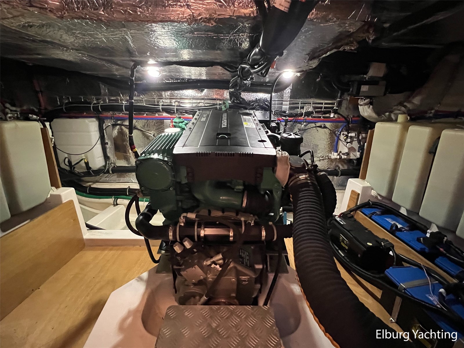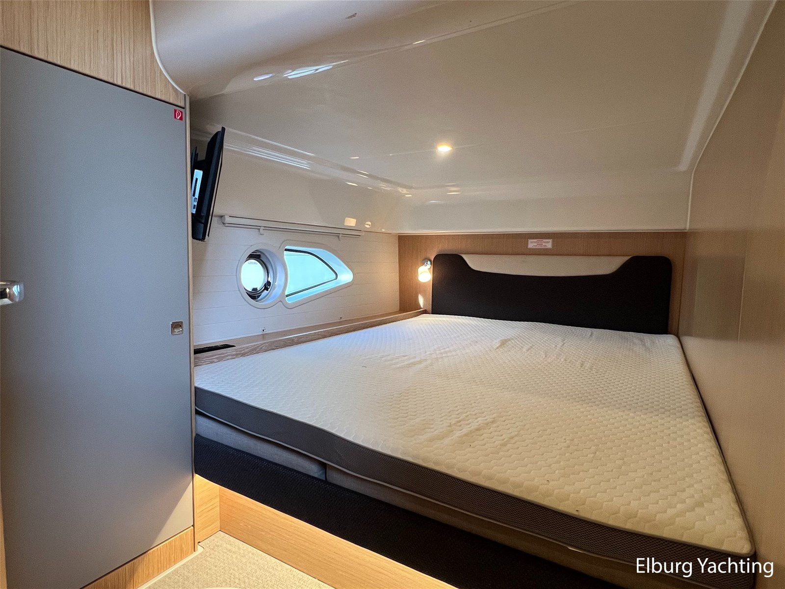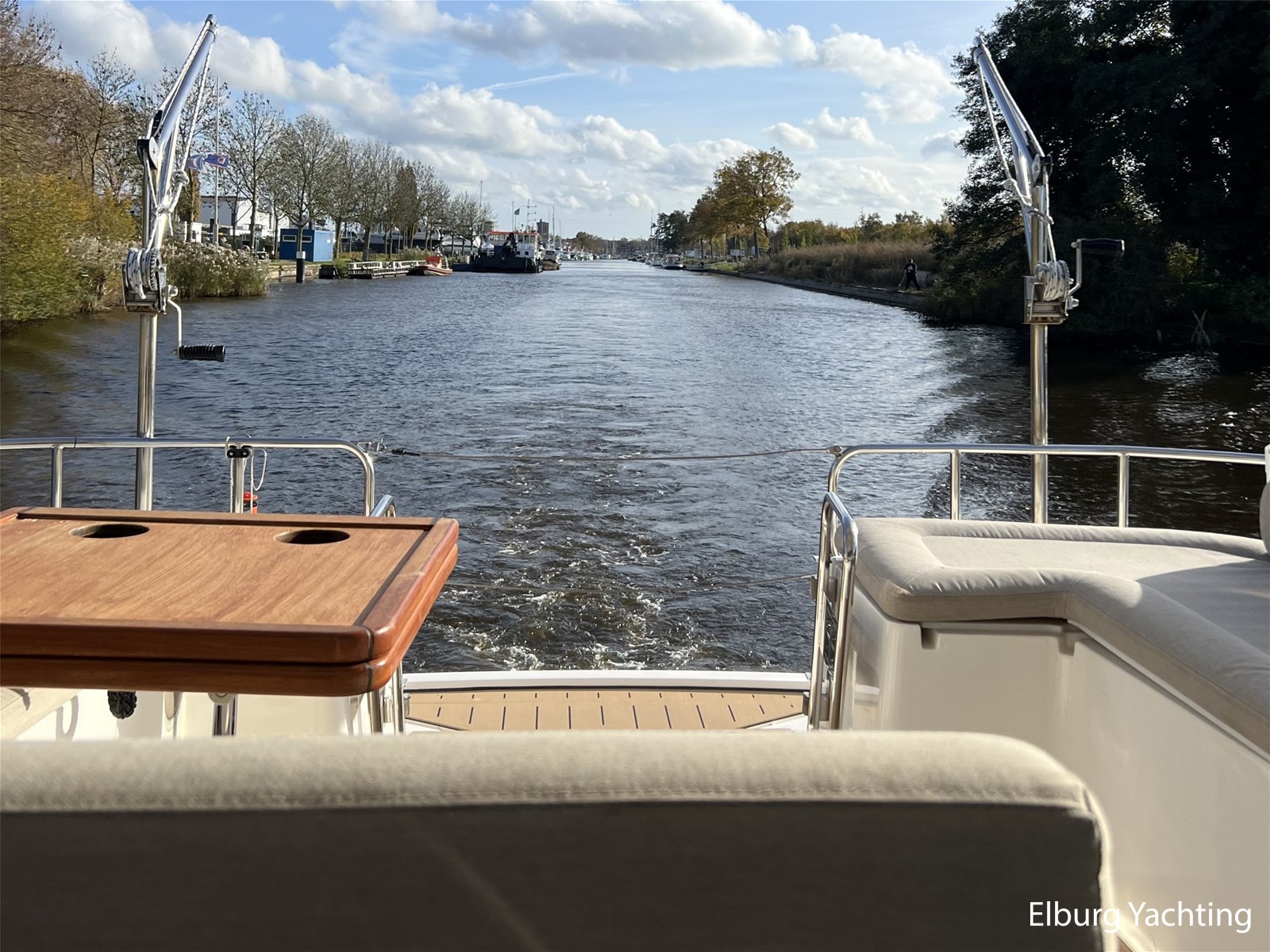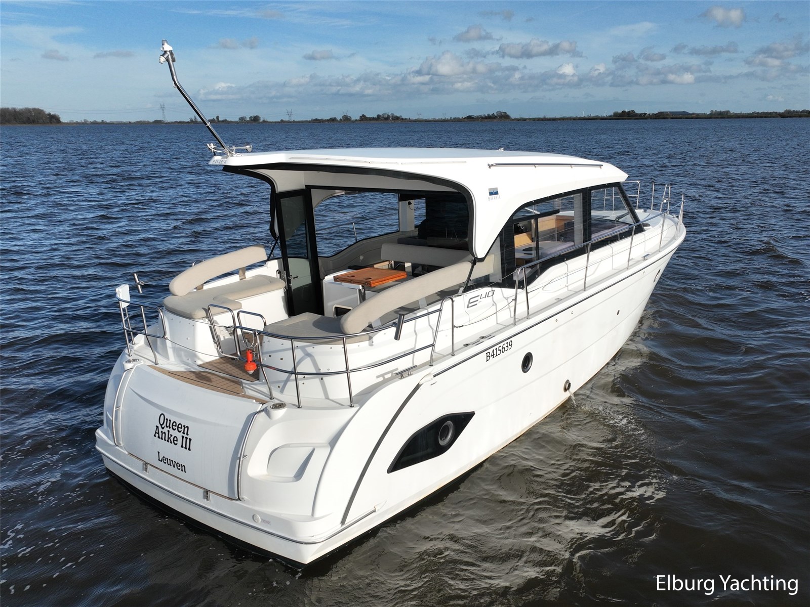 Deze jonge Bavaria E40 wordt aangeboden door haar tweede eigenaar. De Bavaria E40 Sedan is gebouwd met heel veel praktische ruimte voor haar afmeting en is voorzien van 3 volwaardige hutten. Dit exemplaar is uitgerust met de topmotorisering van 1 x 300 pk Volvo Penta D4 en heeft een vast schroefas aandrijving, waarmee een maximale snelheid wordt bereikt van ca. 13 knopen. De kuip biedt plaats voor ca. 8 personen en loopt gelijkvloers rond met de gangboorden. Vanuit de kuip is er een korte doorloop naar de salon, waar zich aan de rechterzijde de verhoogde stuurstand bevind. De stuurstand biedt plek voor minimaal 2 personen en beschikt over alle benodigde moderne navigatie apparatuur; zoals een een elektrische boeg- en hekschroef bediening, een vaste Simrad HS35 marifoon met daarnaast een tweede gekoppelde handheld toestel, een Simrad NSS Evo 3 plotter met autopilot en een Fusion audiosysteem met volumeregeling in de salon en kuip. Aan bakboordzijde van de salon is er een ruim opgezette keuken gesitueerd met aan de stuurboordzijde de dinette die volledig uitzicht rondom biedt. De salon is voorzien van grote raampartijen die zorgen voor een ruimtelijk gevoel en veel lichtinval. Tussen de stuurstand en de kuip bevinden zich wegschuifbare ramen, zodat de kapitein en zijn bezoek samen de tocht ervaren. Naar voren in het schip bevind zich een 2 persoons hut, met aan de bakboordzijde een toilet en aan stuurboordzijde een douchecabine. Achter de stuurstand is via een trap naar beneden de tweede en derde hut te bereikbaar, elk voorzien van een tweepersoonsbed. Ook is er een tweede badkamer met een gezamenlijk douche en toilet aanwezig. Deze Bavaria E40 is verder voorzien van: Geïntegreerde kuipbanken met afneembare kussens, afsluitbare kuiptent (2025), afneembare r.v.s. davits, klapbaar zwemplateau in spiegel, 2 x dakluik in salon + 2 x schuifraam (SB+BB), kussens voor zonnebed op voordek aanwezig, groot bergluik in voorschip, TV in salon en in alle hutten, klapbare r.v.s. mast met toplicht waarmee een minimale hoogte verkregen wordt van ca. 3,80m. Voor vragen en/of het maken van een afspraak bent u 7 dagen per week van harte welkom bij Elburg Yachting