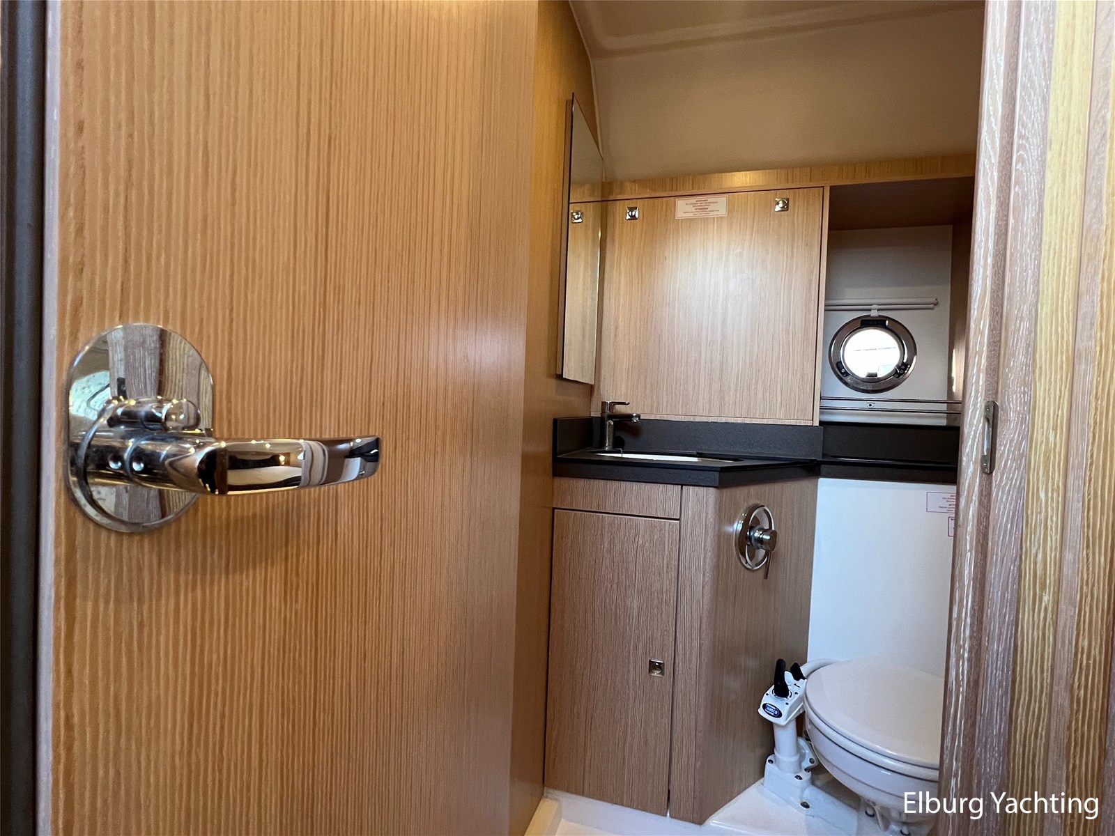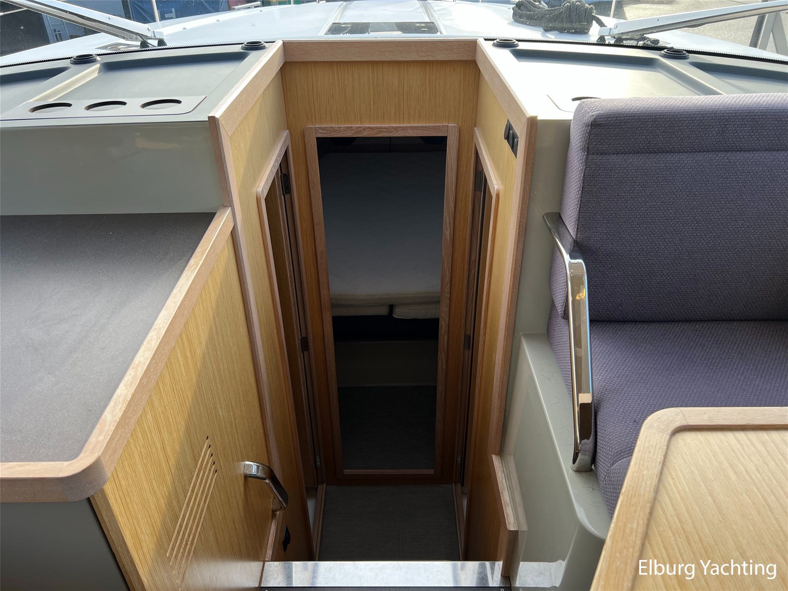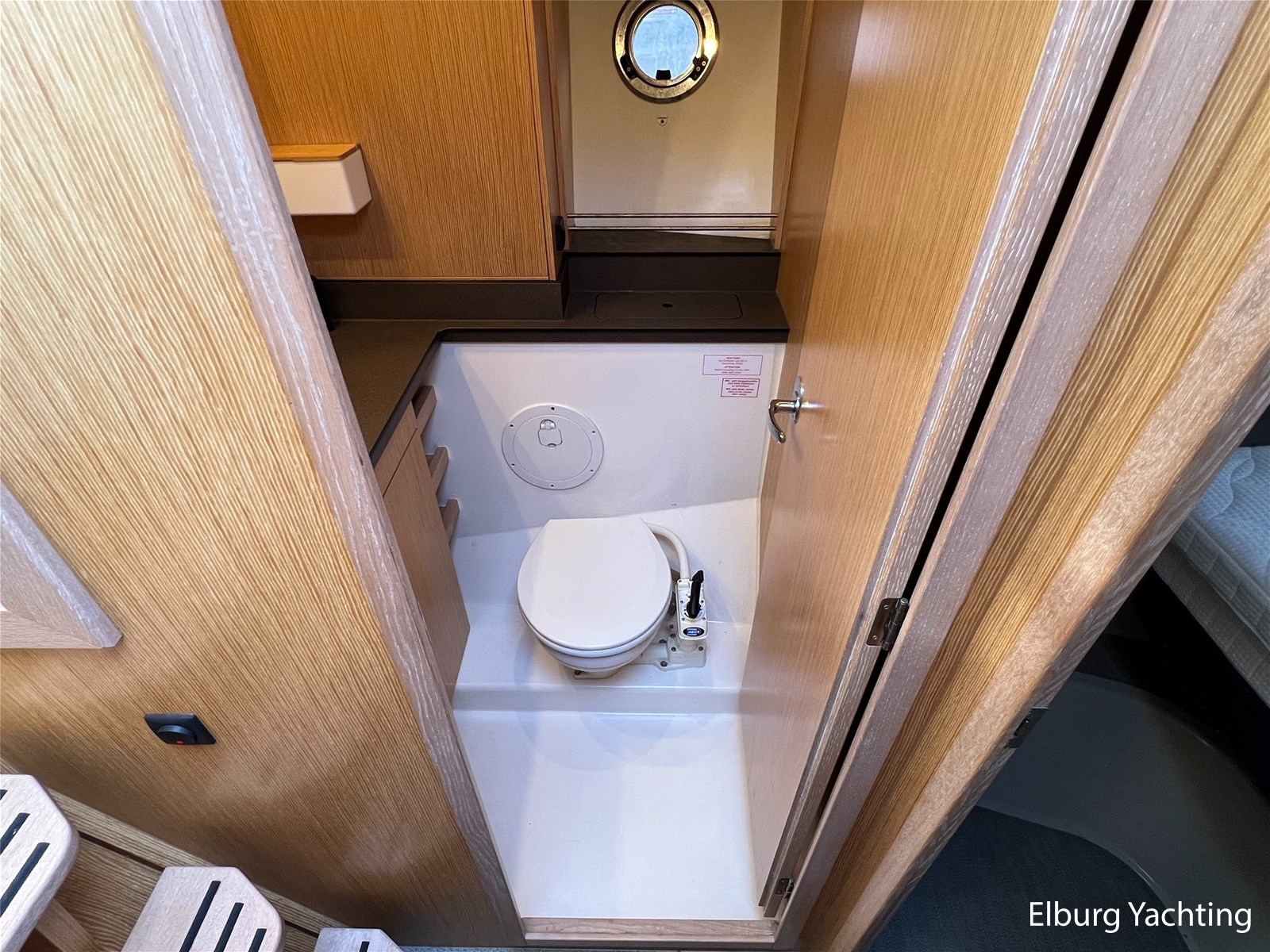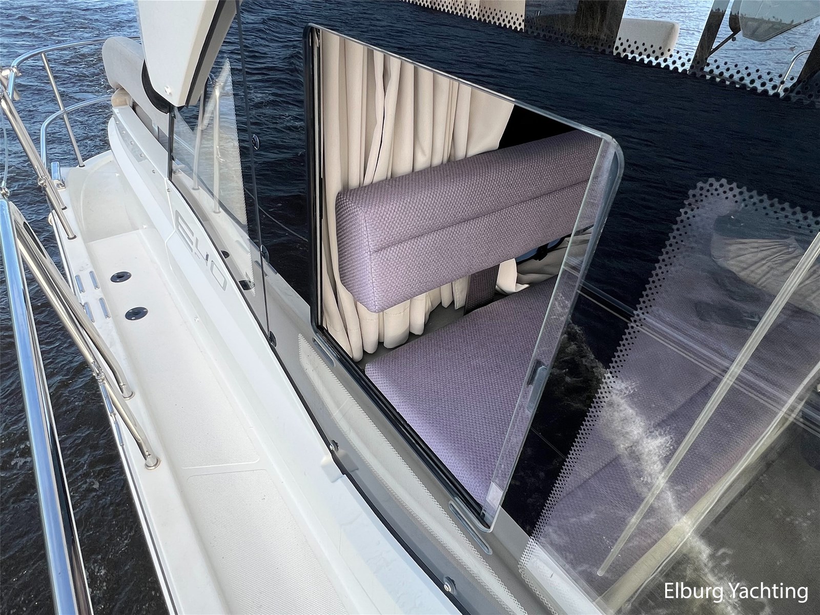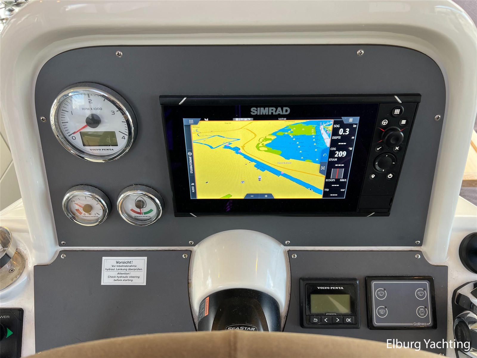 Deze jonge Bavaria E40 wordt aangeboden door haar tweede eigenaar. De Bavaria E40 Sedan is gebouwd met heel veel praktische ruimte voor haar afmeting en is voorzien van 3 volwaardige hutten. Dit exemplaar is uitgerust met de topmotorisering van 1 x 300 pk Volvo Penta D4 en heeft een vast schroefas aandrijving, waarmee een maximale snelheid wordt bereikt van ca. 13 knopen. De kuip biedt plaats voor ca. 8 personen en loopt gelijkvloers rond met de gangboorden. Vanuit de kuip is er een korte doorloop naar de salon, waar zich aan de rechterzijde de verhoogde stuurstand bevind. De stuurstand biedt plek voor minimaal 2 personen en beschikt over alle benodigde moderne navigatie apparatuur; zoals een een elektrische boeg- en hekschroef bediening, een vaste Simrad HS35 marifoon met daarnaast een tweede gekoppelde handheld toestel, een Simrad NSS Evo 3 plotter met autopilot en een Fusion audiosysteem met volumeregeling in de salon en kuip. Aan bakboordzijde van de salon is er een ruim opgezette keuken gesitueerd met aan de stuurboordzijde de dinette die volledig uitzicht rondom biedt. De salon is voorzien van grote raampartijen die zorgen voor een ruimtelijk gevoel en veel lichtinval. Tussen de stuurstand en de kuip bevinden zich wegschuifbare ramen, zodat de kapitein en zijn bezoek samen de tocht ervaren. Naar voren in het schip bevind zich een 2 persoons hut, met aan de bakboordzijde een toilet en aan stuurboordzijde een douchecabine. Achter de stuurstand is via een trap naar beneden de tweede en derde hut te bereikbaar, elk voorzien van een tweepersoonsbed. Ook is er een tweede badkamer met een gezamenlijk douche en toilet aanwezig. Deze Bavaria E40 is verder voorzien van: Geïntegreerde kuipbanken met afneembare kussens, afsluitbare kuiptent (2025), afneembare r.v.s. davits, klapbaar zwemplateau in spiegel, 2 x dakluik in salon + 2 x schuifraam (SB+BB), kussens voor zonnebed op voordek aanwezig, groot bergluik in voorschip, TV in salon en in alle hutten, klapbare r.v.s. mast met toplicht waarmee een minimale hoogte verkregen wordt van ca. 3,80m. Voor vragen en/of het maken van een afspraak bent u 7 dagen per week van harte welkom bij Elburg Yachting