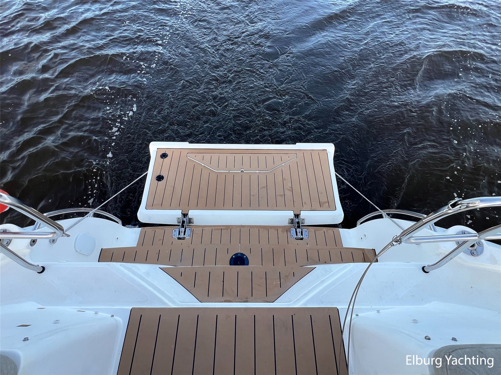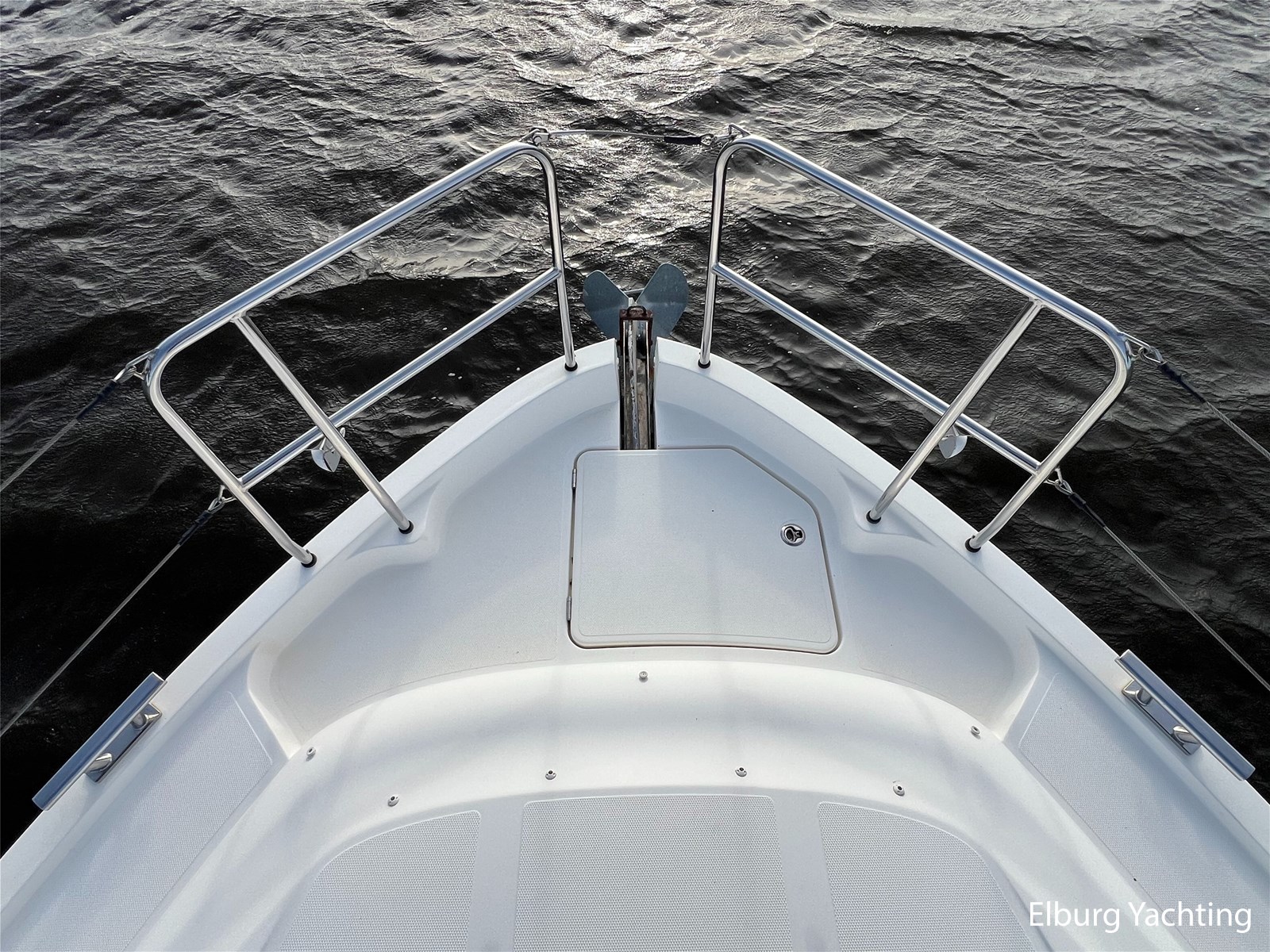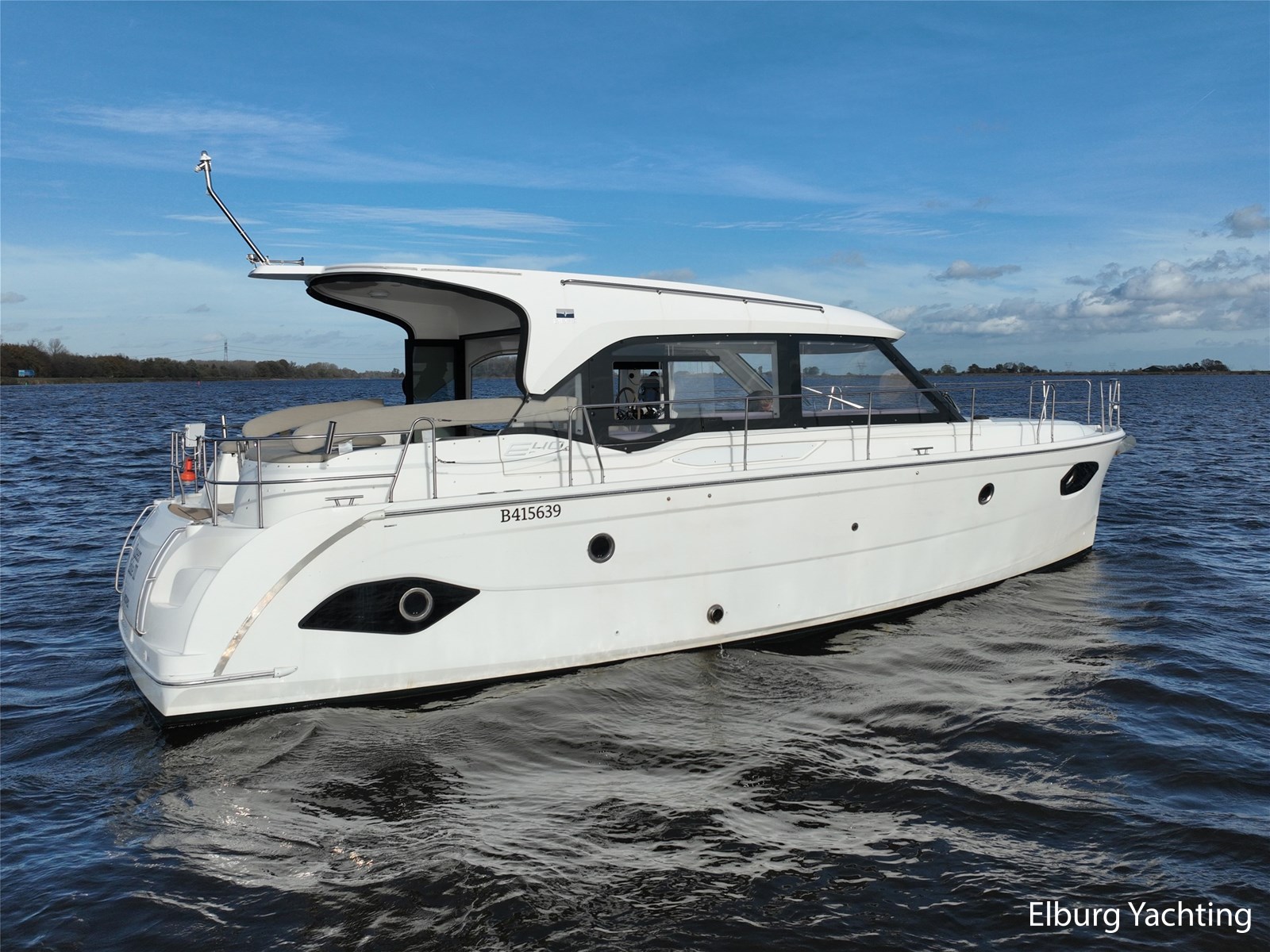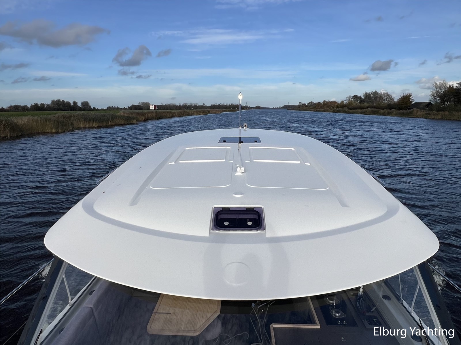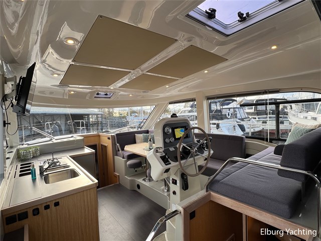 Deze jonge Bavaria E40 wordt aangeboden door haar tweede eigenaar. De Bavaria E40 Sedan is gebouwd met heel veel praktische ruimte voor haar afmeting en is voorzien van 3 volwaardige hutten. Dit exemplaar is uitgerust met de topmotorisering van 1 x 300 pk Volvo Penta D4 en heeft een vast schroefas aandrijving, waarmee een maximale snelheid wordt bereikt van ca. 13 knopen. De kuip biedt plaats voor ca. 8 personen en loopt gelijkvloers rond met de gangboorden. Vanuit de kuip is er een korte doorloop naar de salon, waar zich aan de rechterzijde de verhoogde stuurstand bevind. De stuurstand biedt plek voor minimaal 2 personen en beschikt over alle benodigde moderne navigatie apparatuur; zoals een een elektrische boeg- en hekschroef bediening, een vaste Simrad HS35 marifoon met daarnaast een tweede gekoppelde handheld toestel, een Simrad NSS Evo 3 plotter met autopilot en een Fusion audiosysteem met volumeregeling in de salon en kuip. Aan bakboordzijde van de salon is er een ruim opgezette keuken gesitueerd met aan de stuurboordzijde de dinette die volledig uitzicht rondom biedt. De salon is voorzien van grote raampartijen die zorgen voor een ruimtelijk gevoel en veel lichtinval. Tussen de stuurstand en de kuip bevinden zich wegschuifbare ramen, zodat de kapitein en zijn bezoek samen de tocht ervaren. Naar voren in het schip bevind zich een 2 persoons hut, met aan de bakboordzijde een toilet en aan stuurboordzijde een douchecabine. Achter de stuurstand is via een trap naar beneden de tweede en derde hut te bereikbaar, elk voorzien van een tweepersoonsbed. Ook is er een tweede badkamer met een gezamenlijk douche en toilet aanwezig. Deze Bavaria E40 is verder voorzien van: Geïntegreerde kuipbanken met afneembare kussens, afsluitbare kuiptent (2025), afneembare r.v.s. davits, klapbaar zwemplateau in spiegel, 2 x dakluik in salon + 2 x schuifraam (SB+BB), kussens voor zonnebed op voordek aanwezig, groot bergluik in voorschip, TV in salon en in alle hutten, klapbare r.v.s. mast met toplicht waarmee een minimale hoogte verkregen wordt van ca. 3,80m. Voor vragen en/of het maken van een afspraak bent u 7 dagen per week van harte welkom bij Elburg Yachting